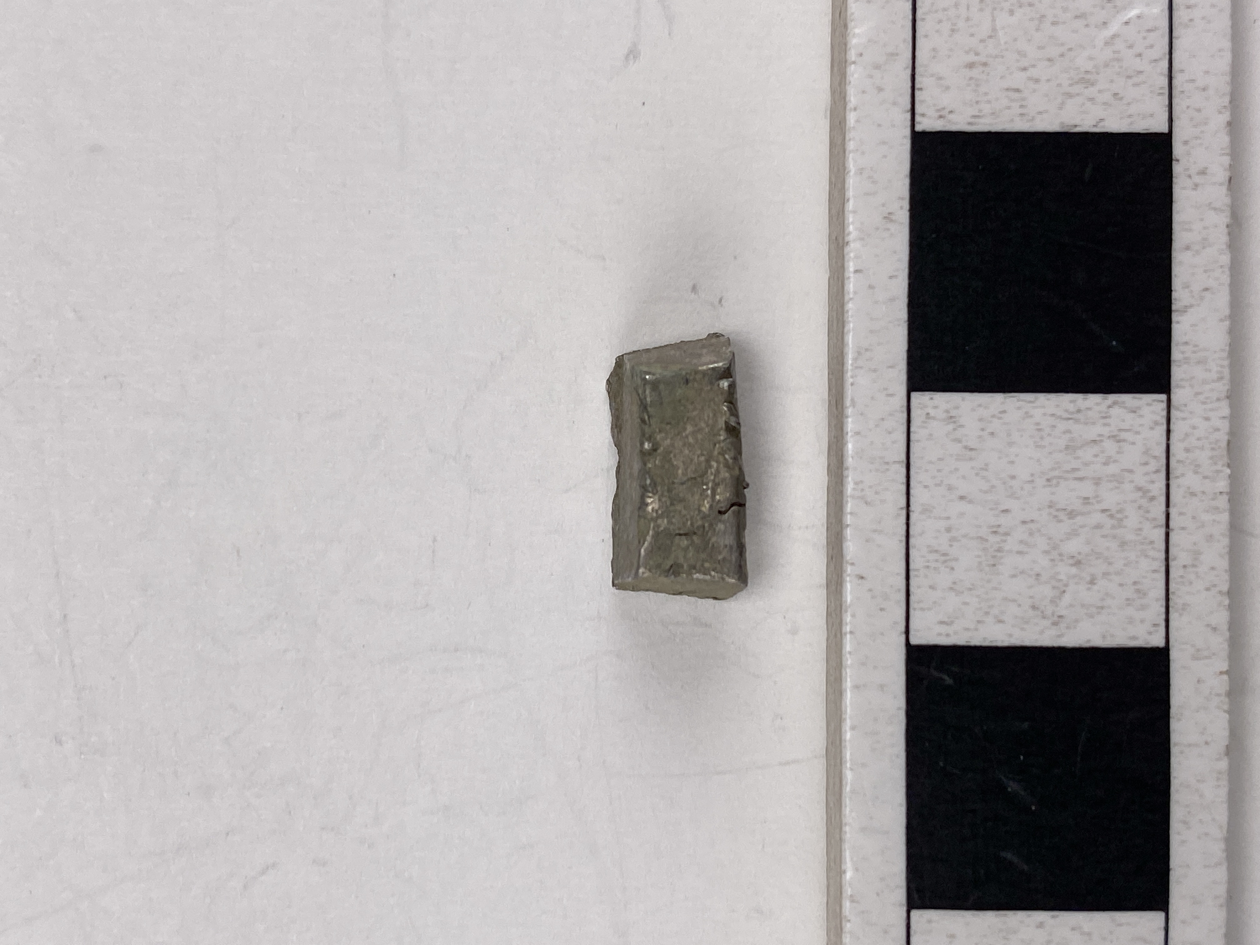 Silverstycke, avhugget/knipsat på flera sidor.