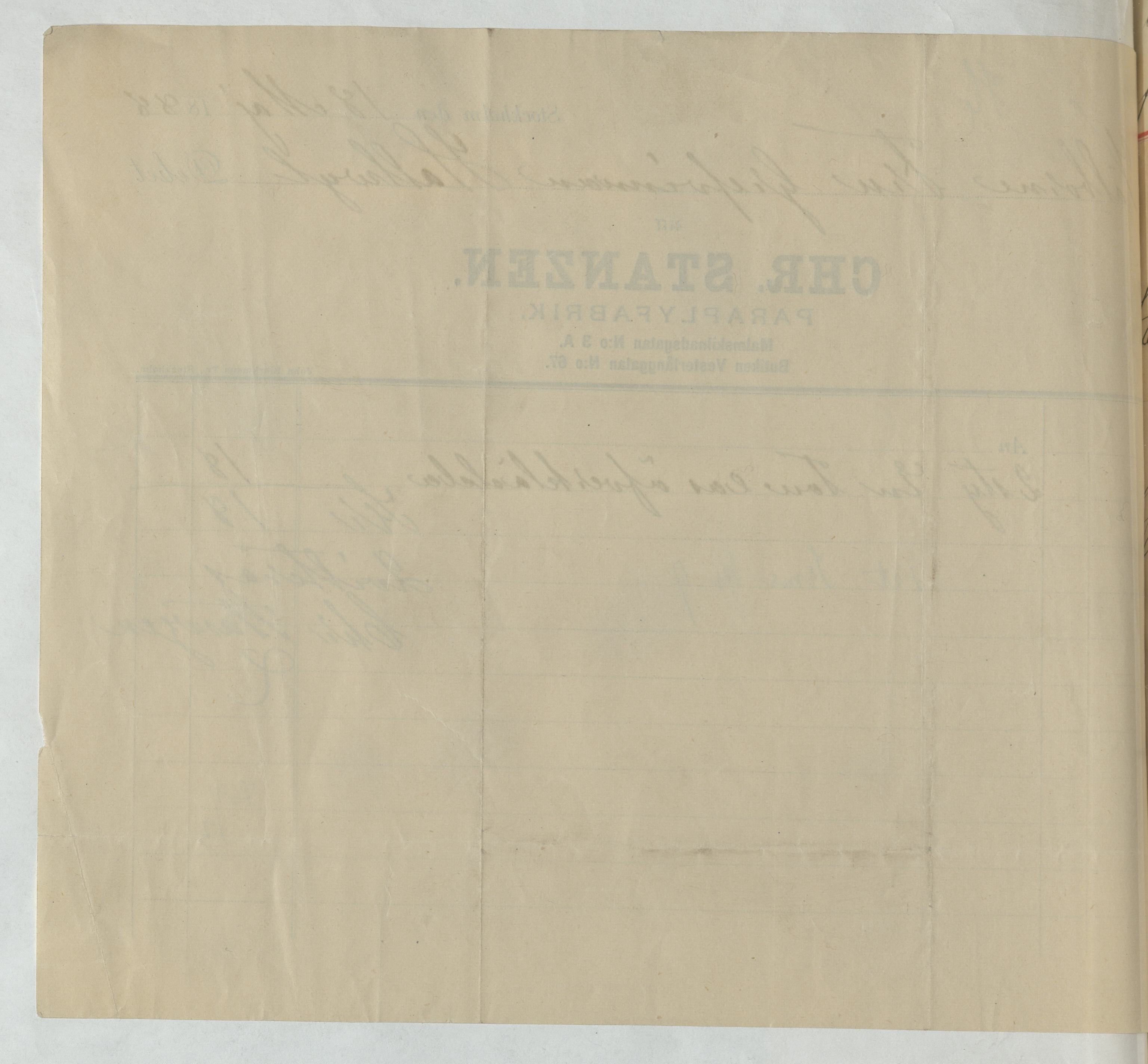 Kvitto från Chr. Stanzen Paraplyfabrik