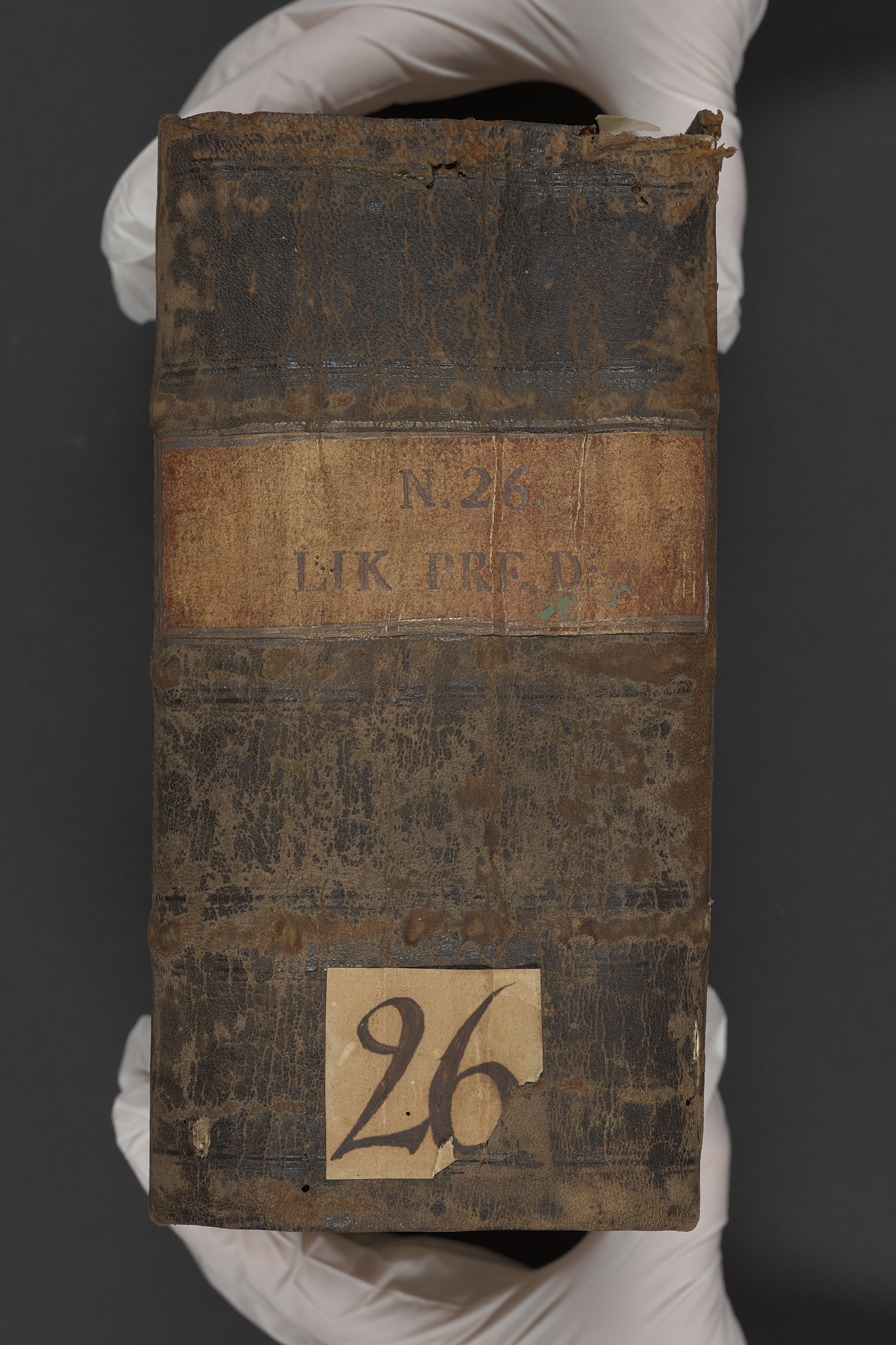 10 skrifter samlade i en volym. Band m. pärmar överdragna med marmorerat papper, rygg och hörn av kalvskinn. Pärmfyllnad: papp. Inlagan häftad på tre bind, fast rygg. Titeletikett av rött skinn. Påklistrad pappersetikett på ryggen. Volymen märkt "26" på titeletikett samt pappersetikett. Kvartovolym nummer 26 enligt det av Carl Gustaf Bielke upprättade registret över samlingen.