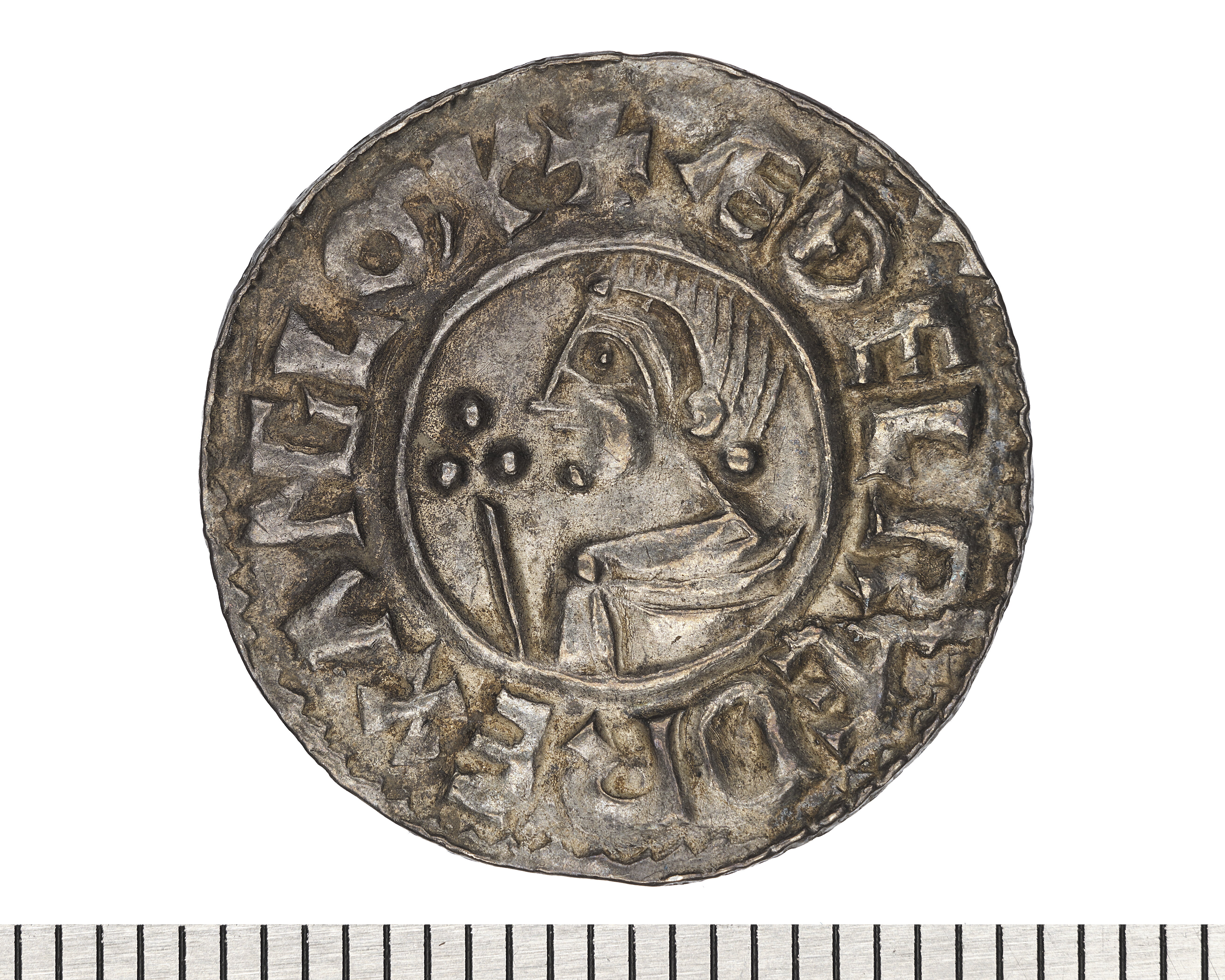 Upphov: Ethelred II. Media: Bonnevier, Helena. Ekonomiska museet - Kungliga myntkabinettet/SHM, (CC BY 4.0) Du får bearbeta och dela verket för alla ändamål, även kommersiella, så länge du anger upphovsperson och licensgivare.