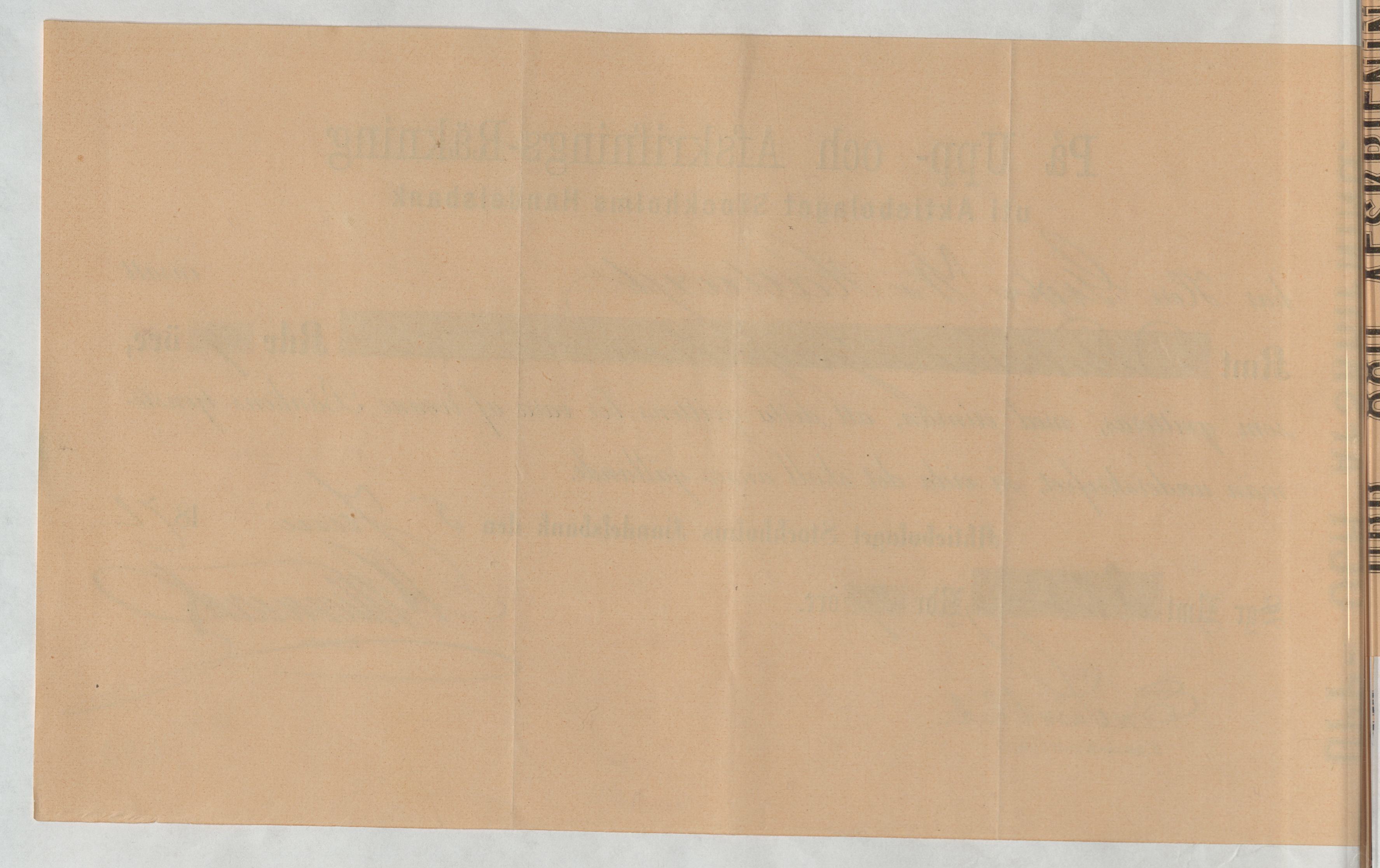 A. Anhalt und Wagener Nachf. Berlin B. Bayerischen Vereinsbank, München C. Boucicaut, Aristide, Paris D. Erikson, L. E. Spannmålshandlare E. Loewe, M. Innsbruck F. Mallet, Frères & C:ie, Paris G. Munktells Mekaniska Werkstads AB H. Passavant & Comp. Basel; Knörr, Frédéric & fils, Lucerne: Anhalt & Wagener, Berlin (på samma räkning) I. Schultess Erben, Zürich J. Sjöberg, Gustaf, Operasångare K. Stametz & C:o, I. H. Nachfolger, Wien L. Upp- och Afskrifnings-Besked och andra verifikationer