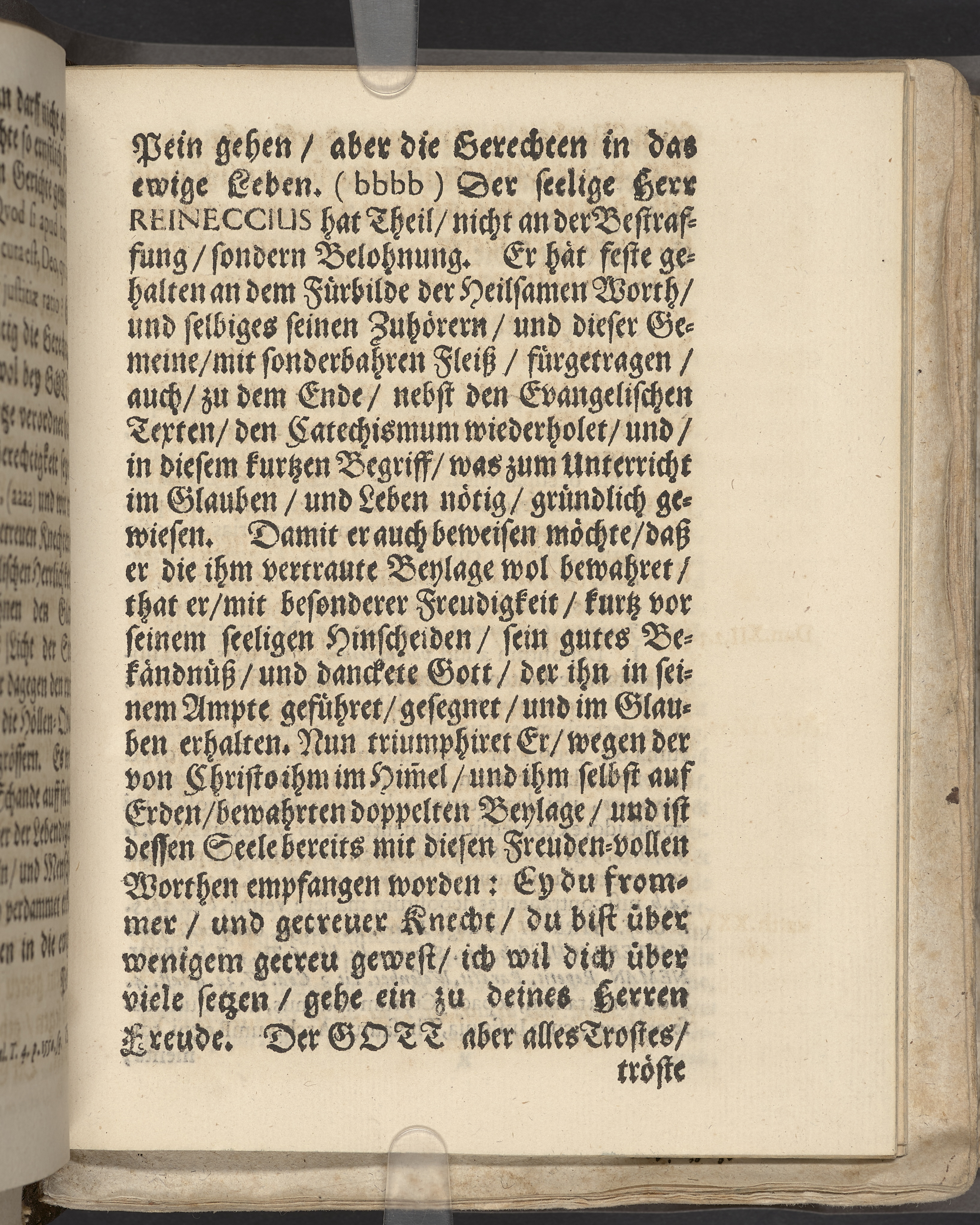 Trauer- und Trost-Predigt ... bey christ-rühmlicher Beerdigung des woll-ehrwürdigen, grosz-achtbahren, und wolgelahrten Herrn Heinrici Reineccii, betreuen, und wolverdienten pastoris an Petri und Pauli Kirchen, un des königlichen hospitals inspectoris, anno MDCLXXXVII. d. 16. junii, in gemeldeter Kirchen gehalten