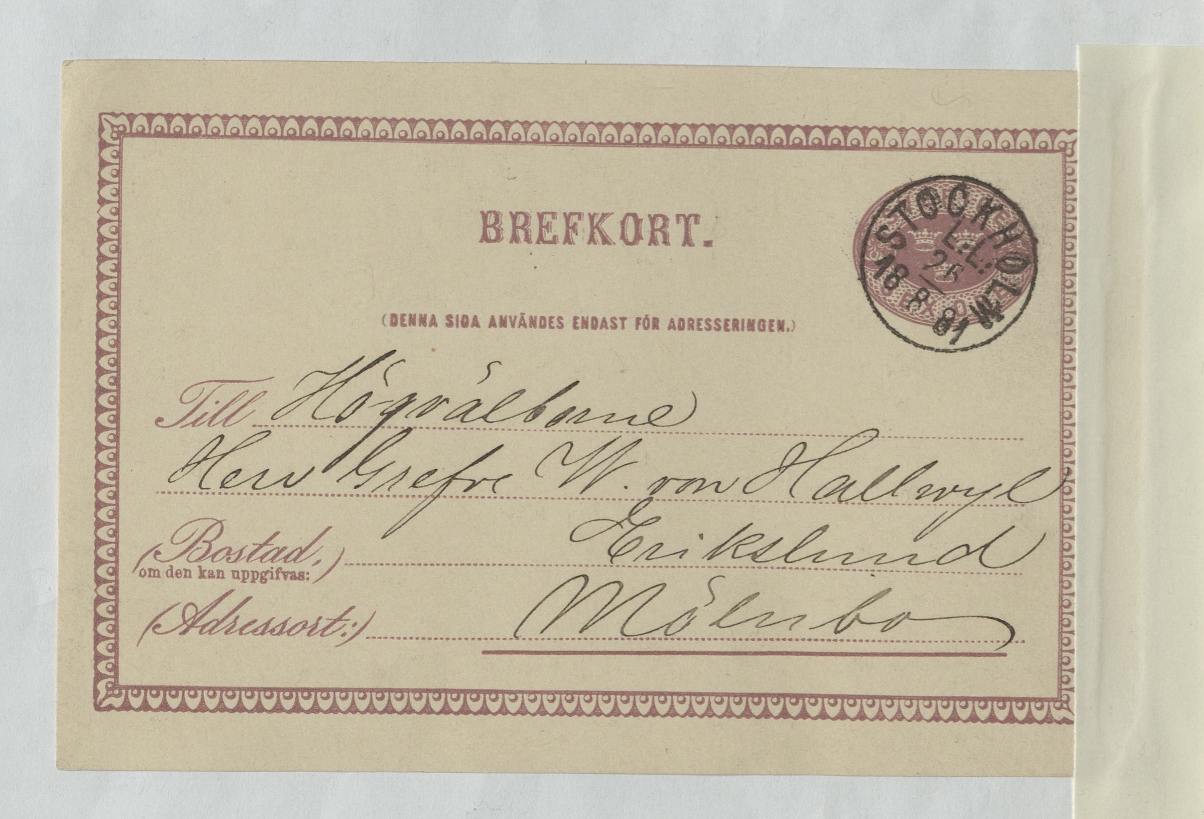 Brevkort från J. F. Kruuse & Co gällande inbetalning. Stockholm, 1881.