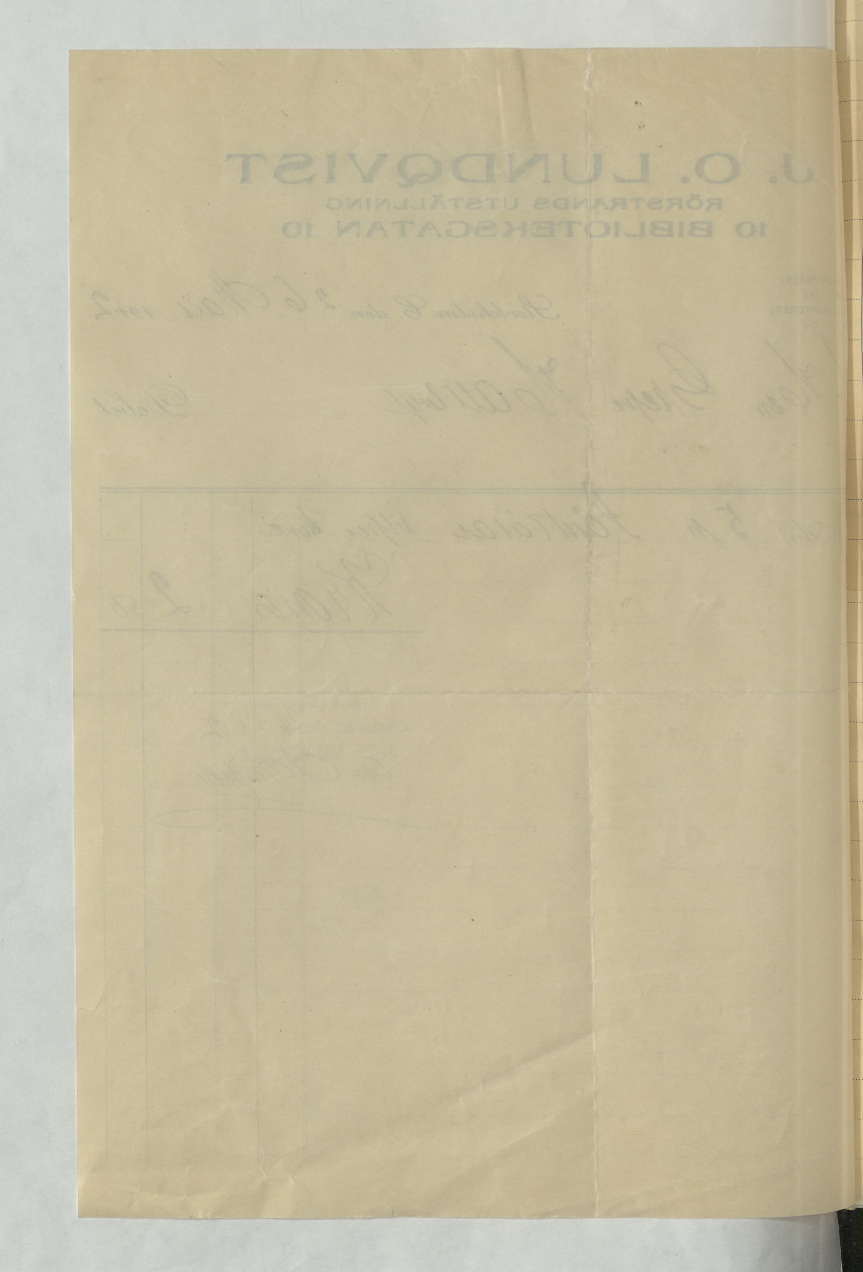 Kvitto från J. O. Lundqvist, Rörstrands Porslins-Magasin, 1912