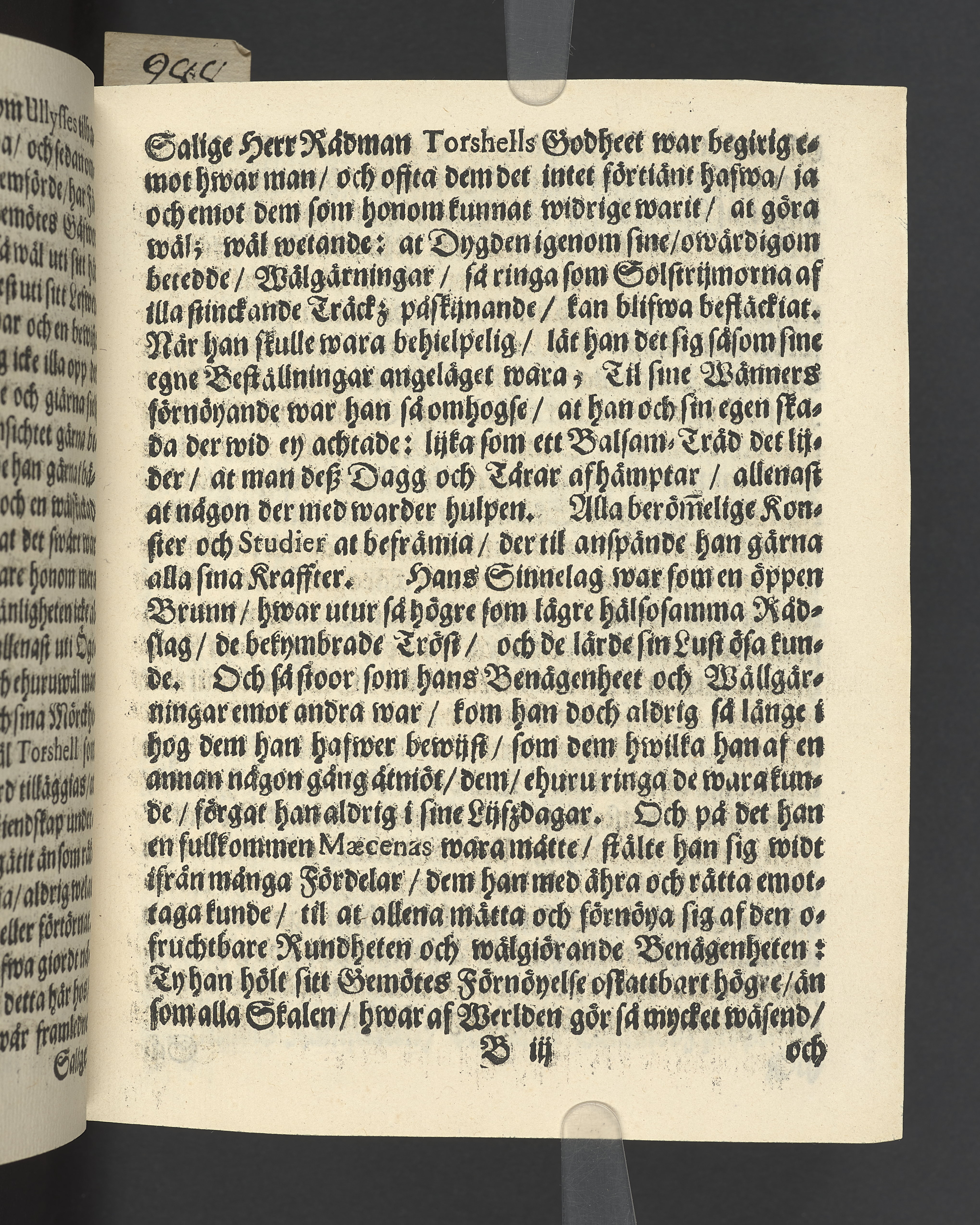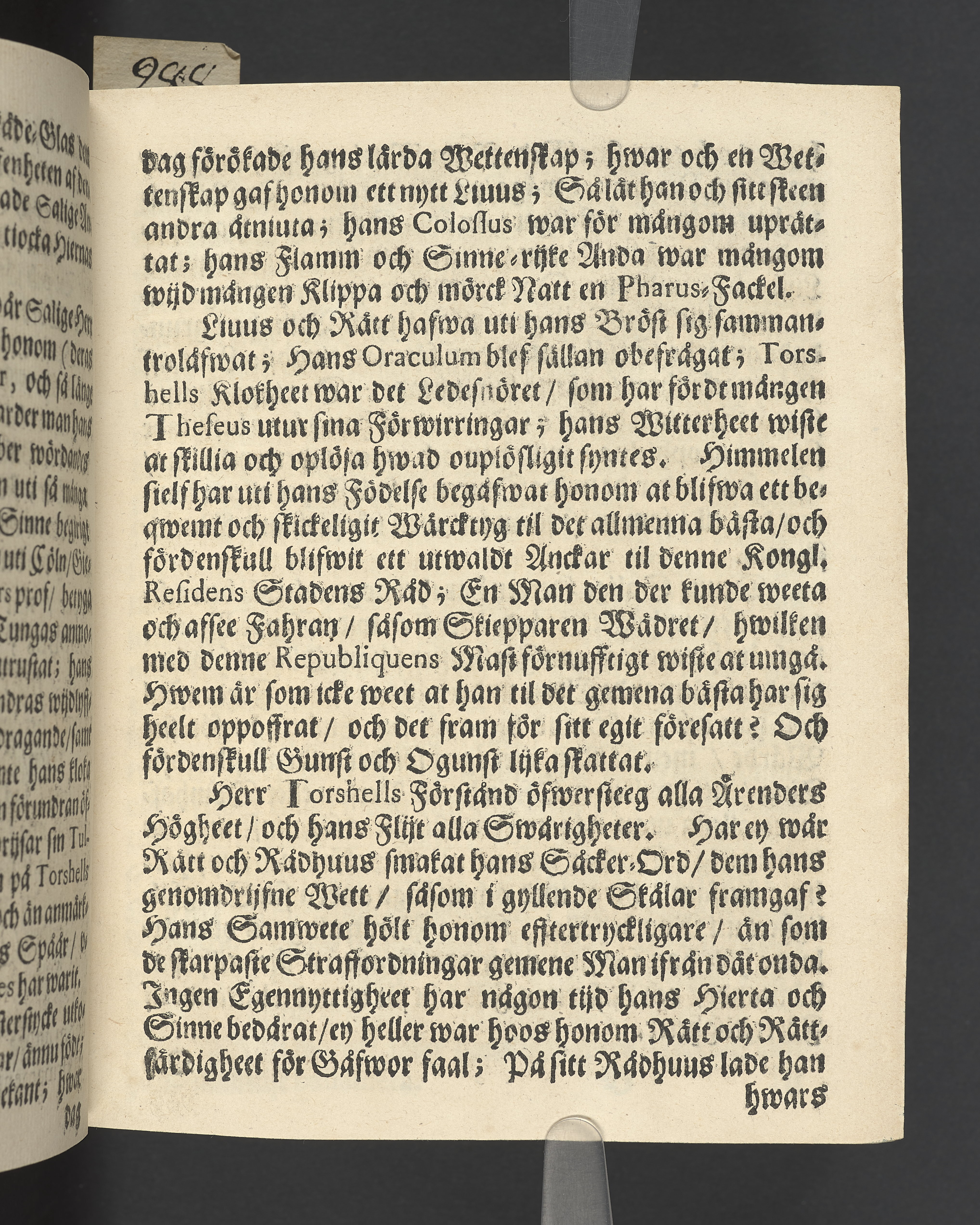 Minnestal över Erik Eriksson Torshell, praeses i Stockholms södra förstads kämnärsrätt.