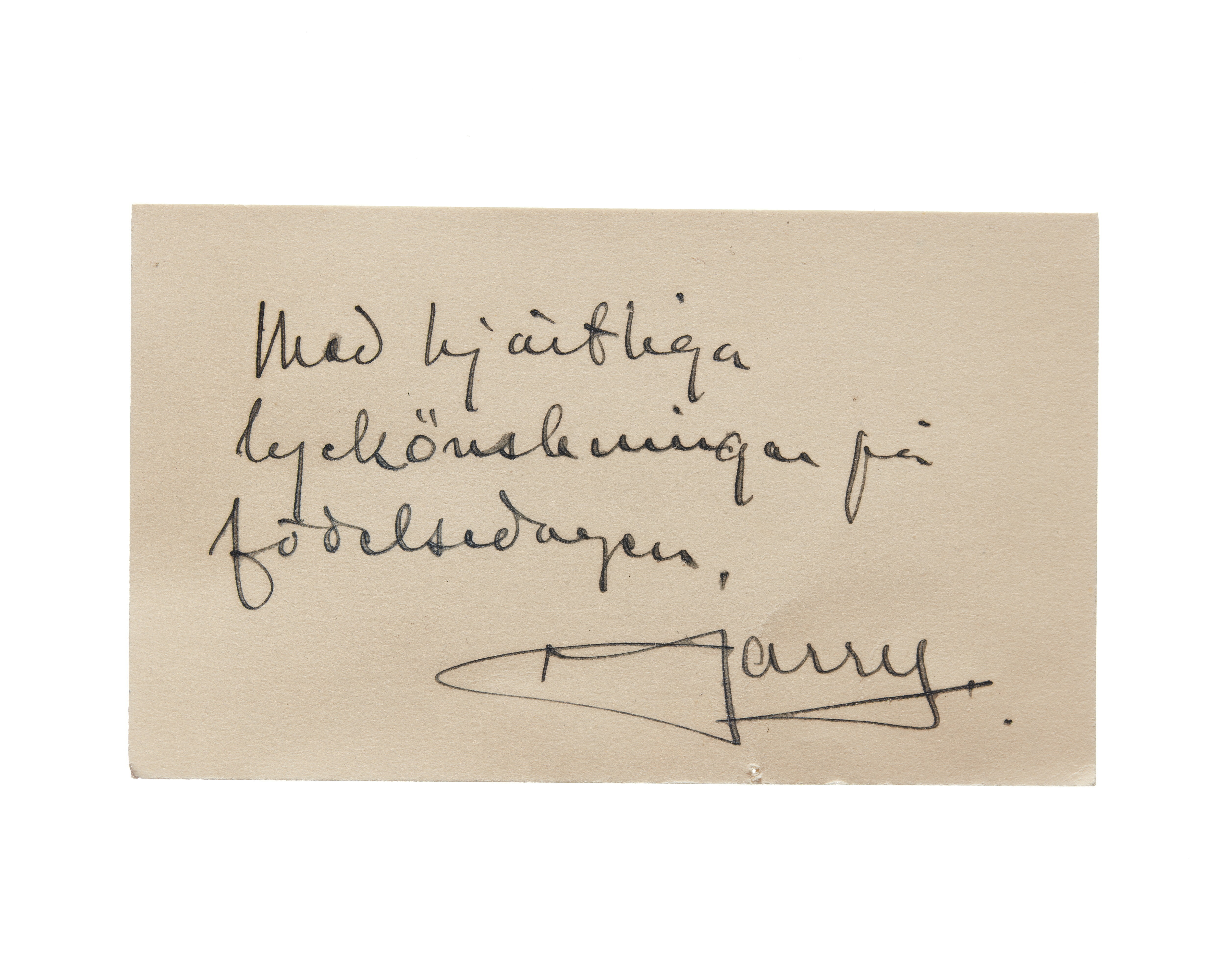 Signatur/Påskrift: Med hjärtliga lyckönskningar på födelsedagen Harry.