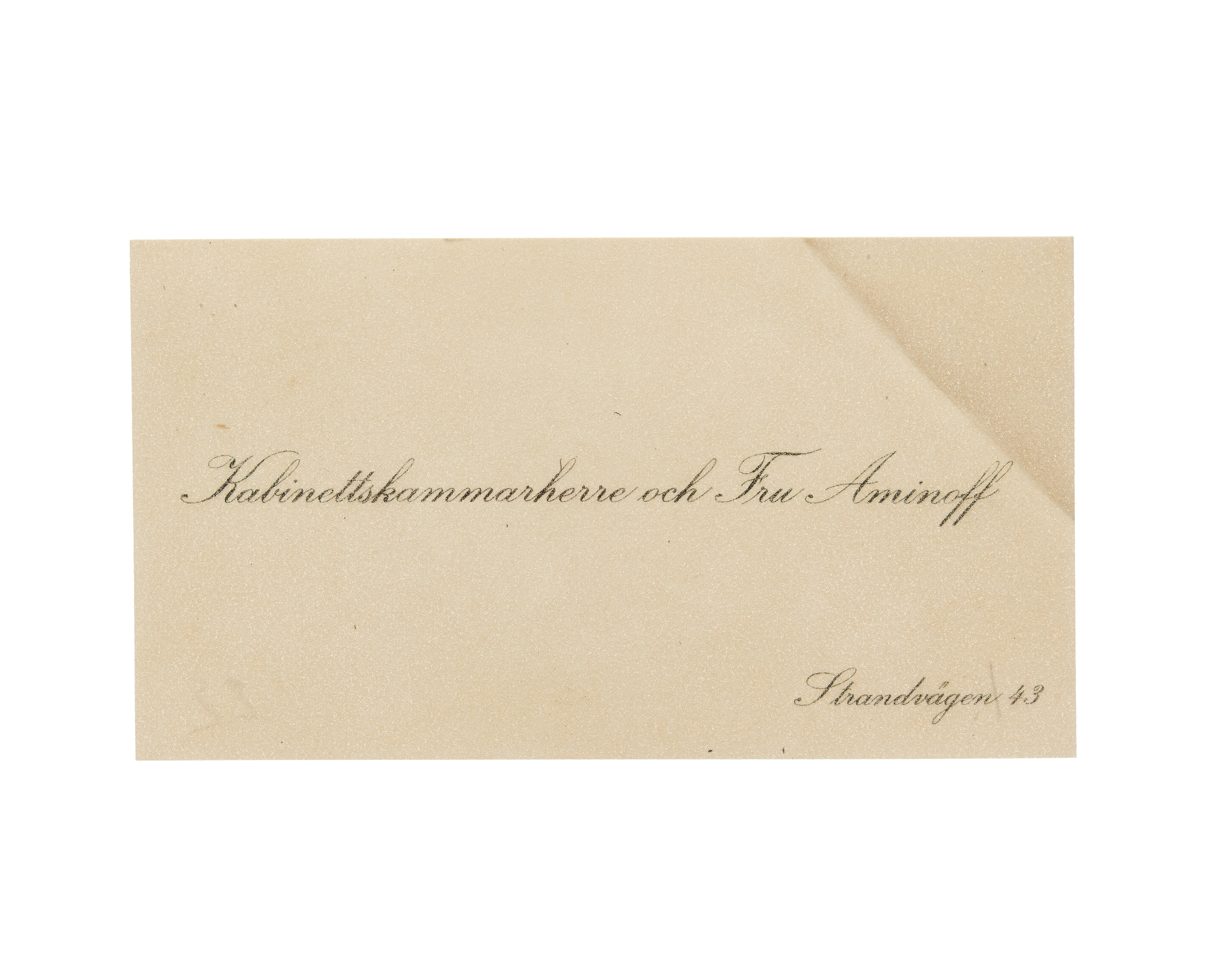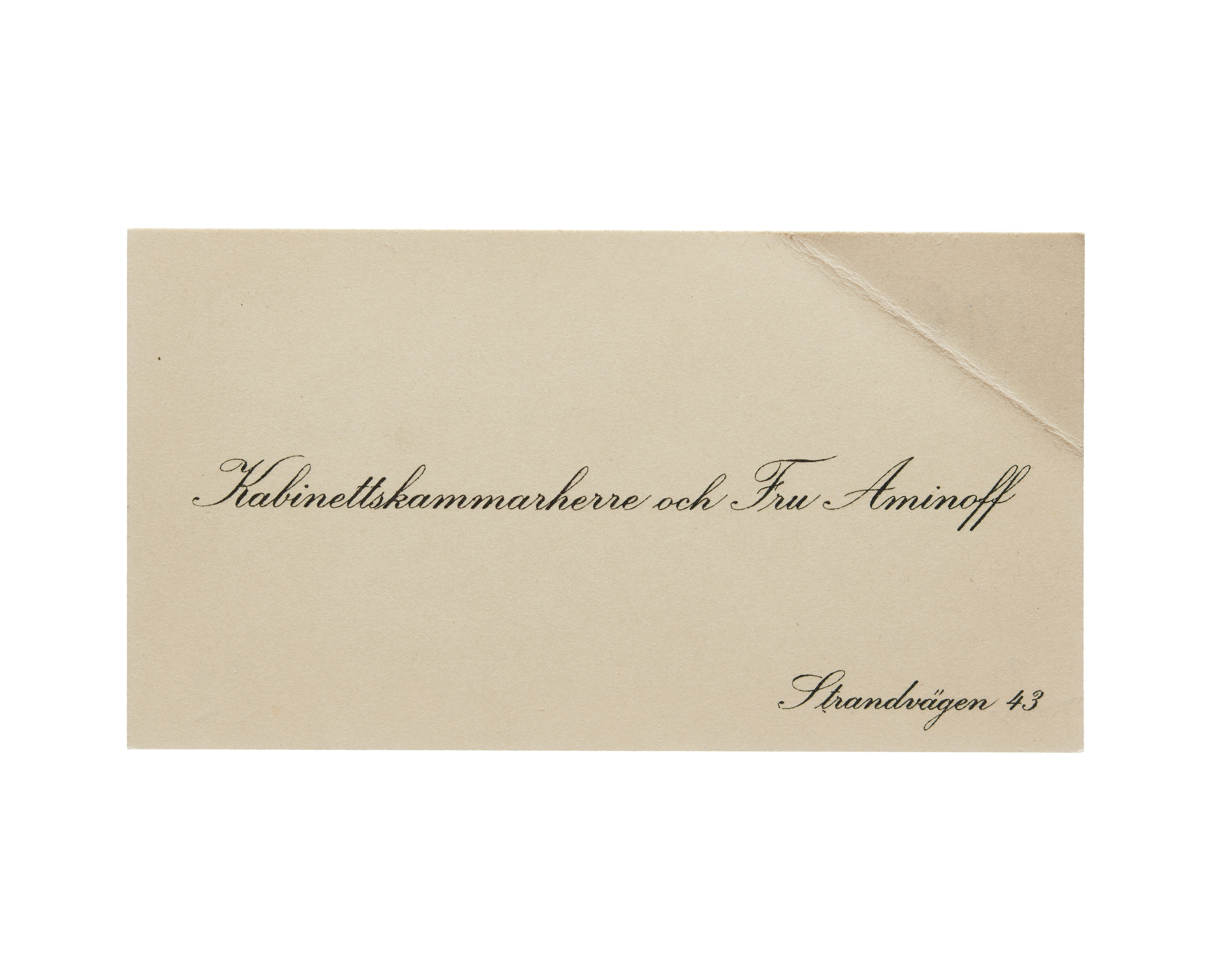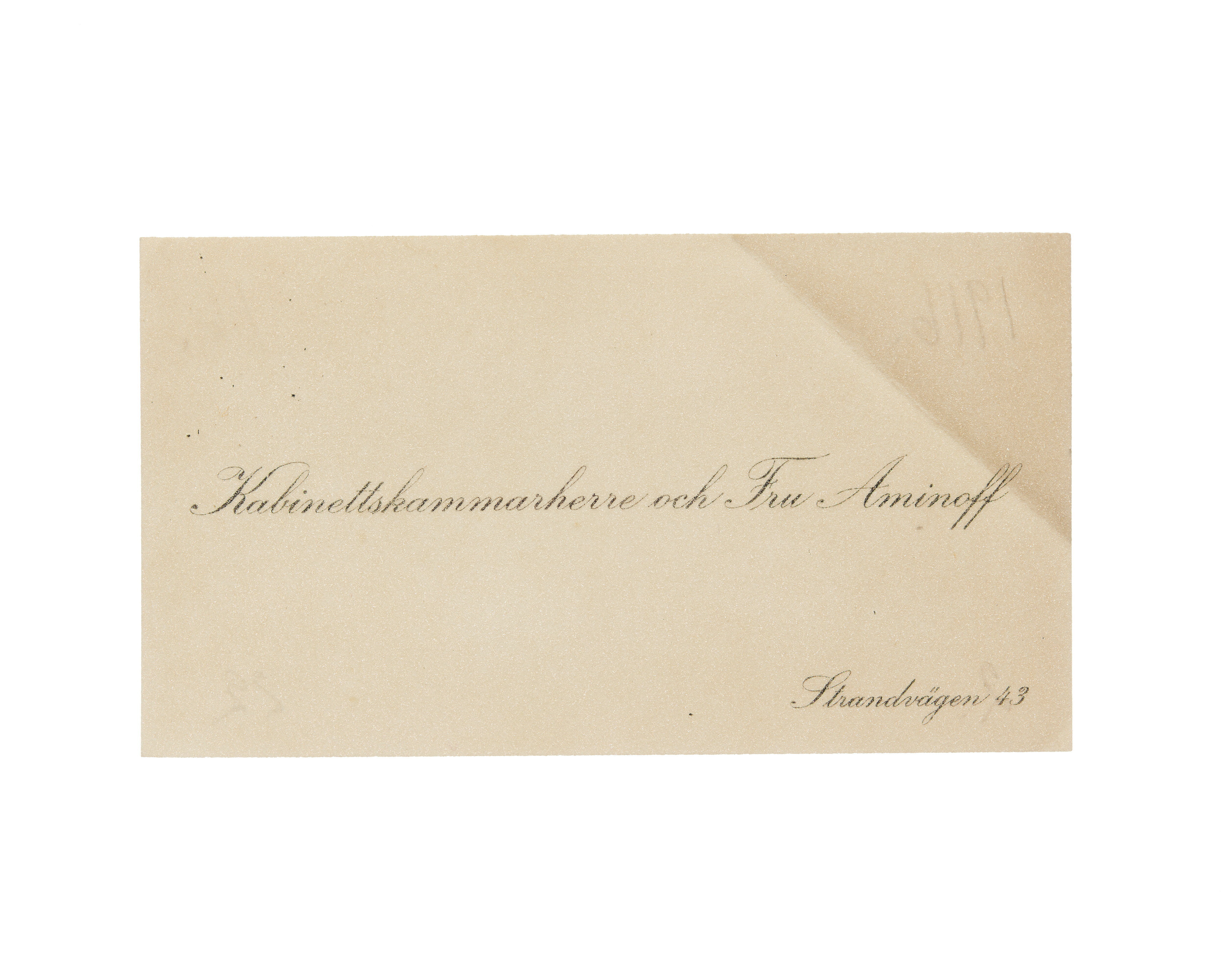 Visitkort från Kabinettskammarherre och Fru Aminoff.