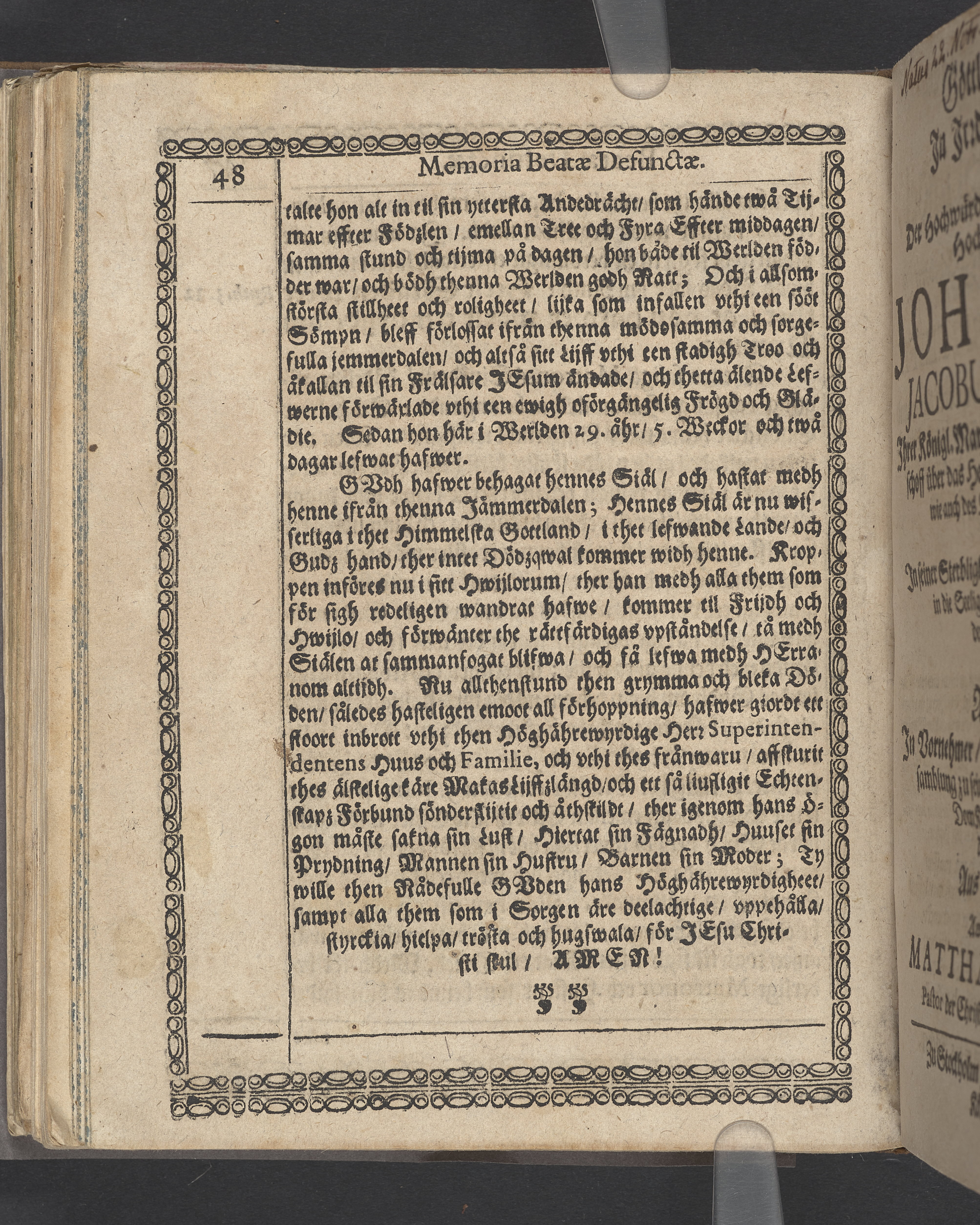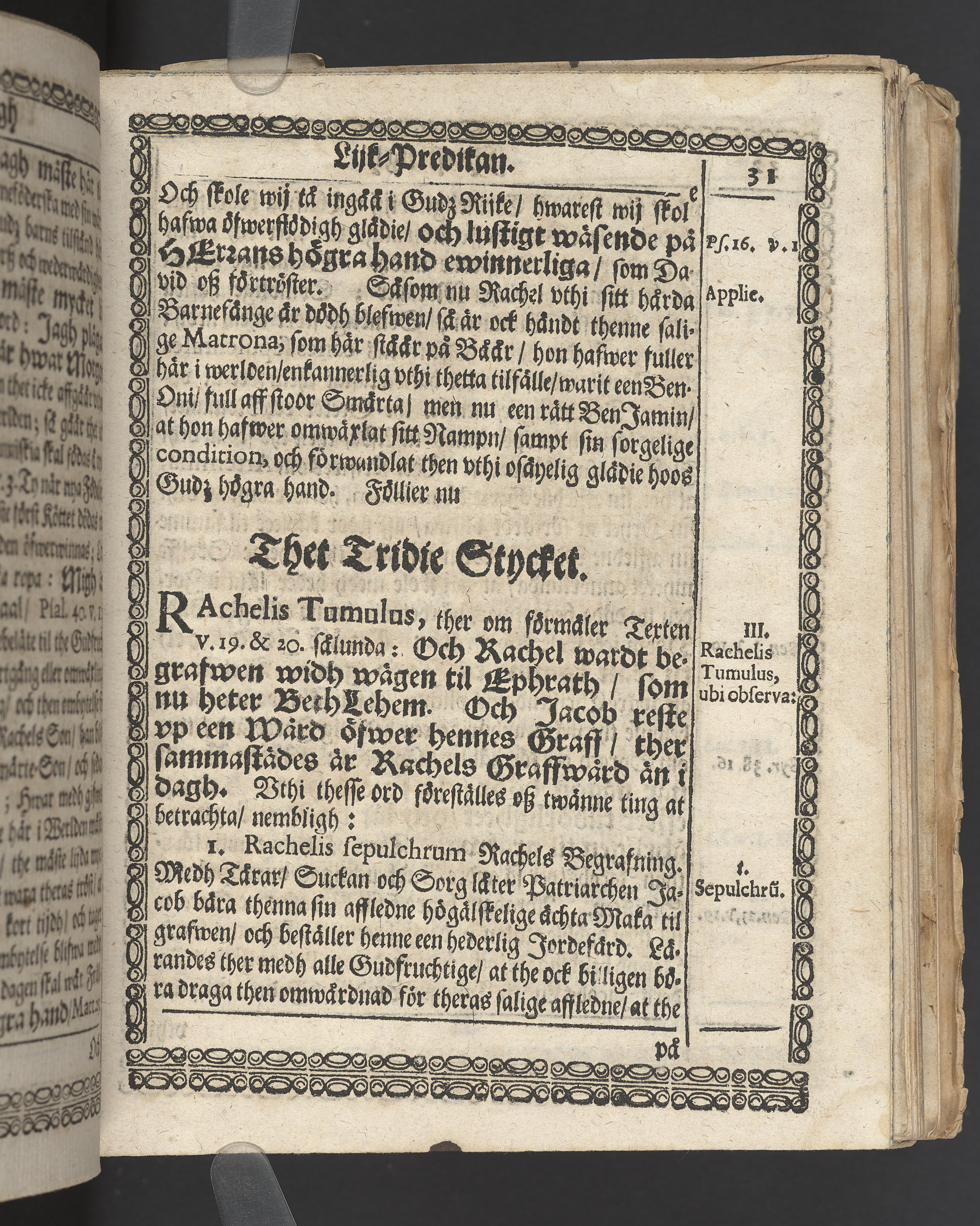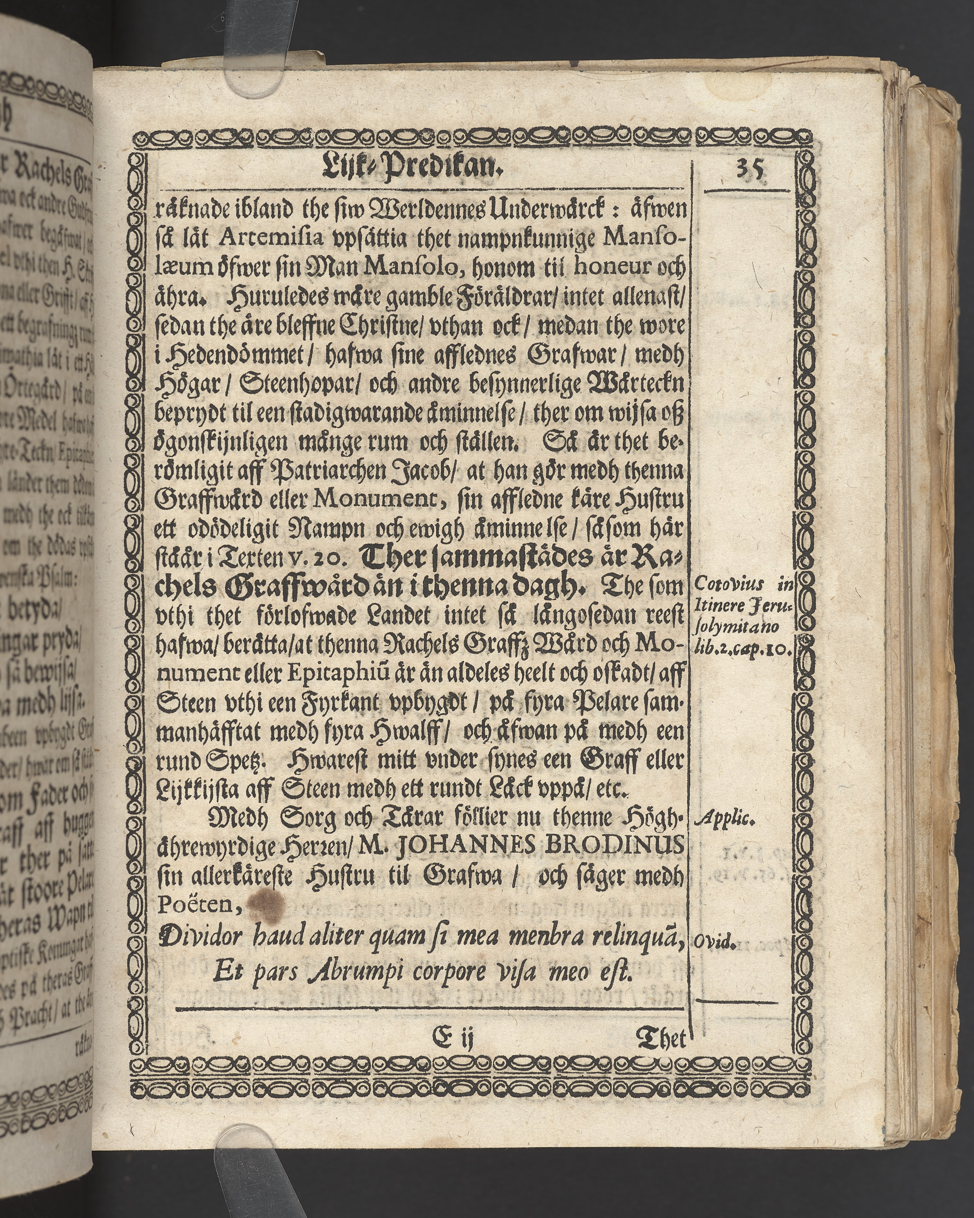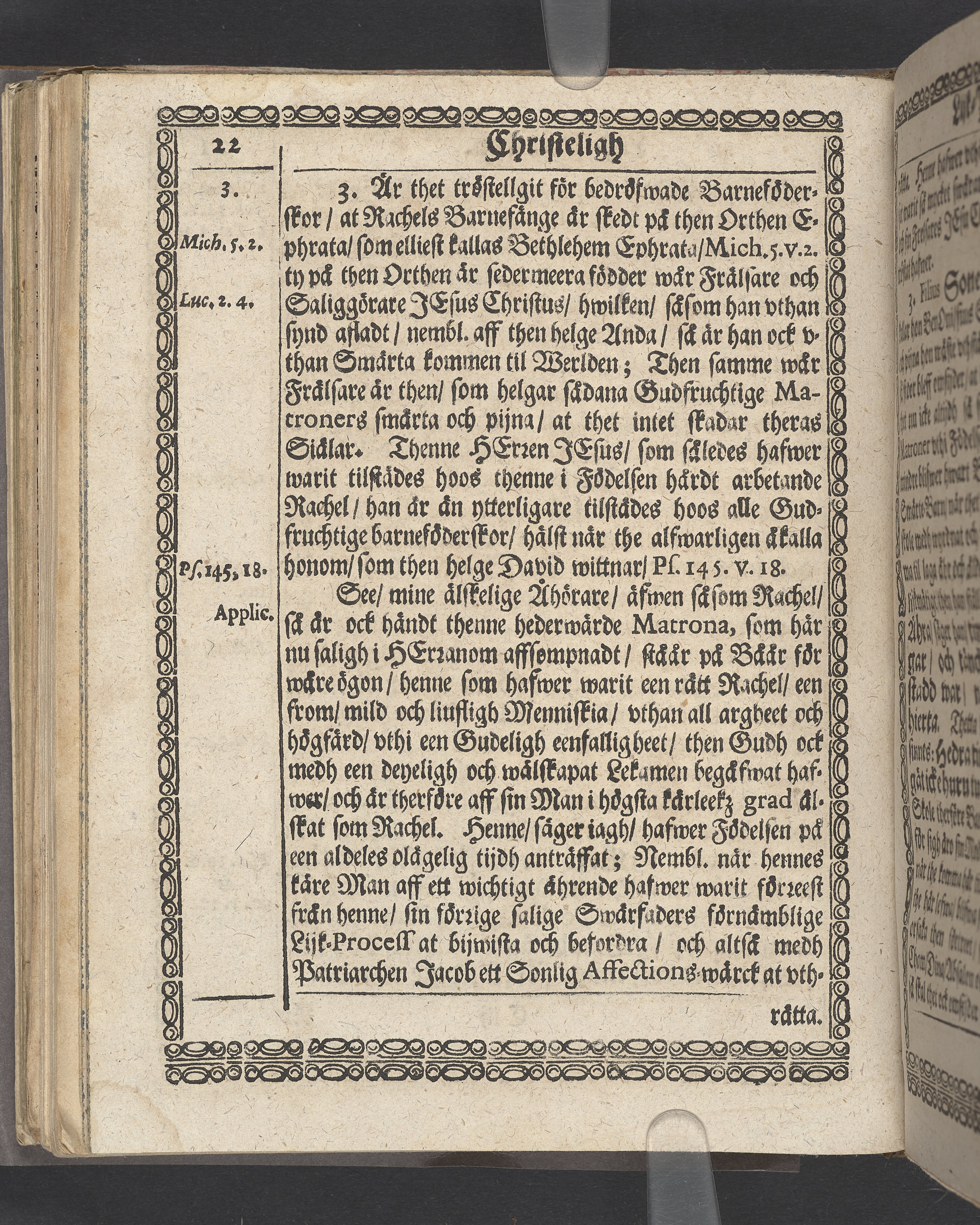 Rachel parturiens, eller then historien om Rachels hårde barnefånge ... til lijk-predikan förklarat, öfwer ... Gertrud Leyel ... Mag. Johannis Brodini wälförordnadt superintendentz öfwer provincien Gottland, höghälskelige käre ächta maka ... vthi S. Mariæ kyrckia i staden Wijszby den 23. julij, anno 1674. Aff Henrico Schachtio ... Stockholm, tryckt hoos Niclas Wankijff, kongl. booktr.