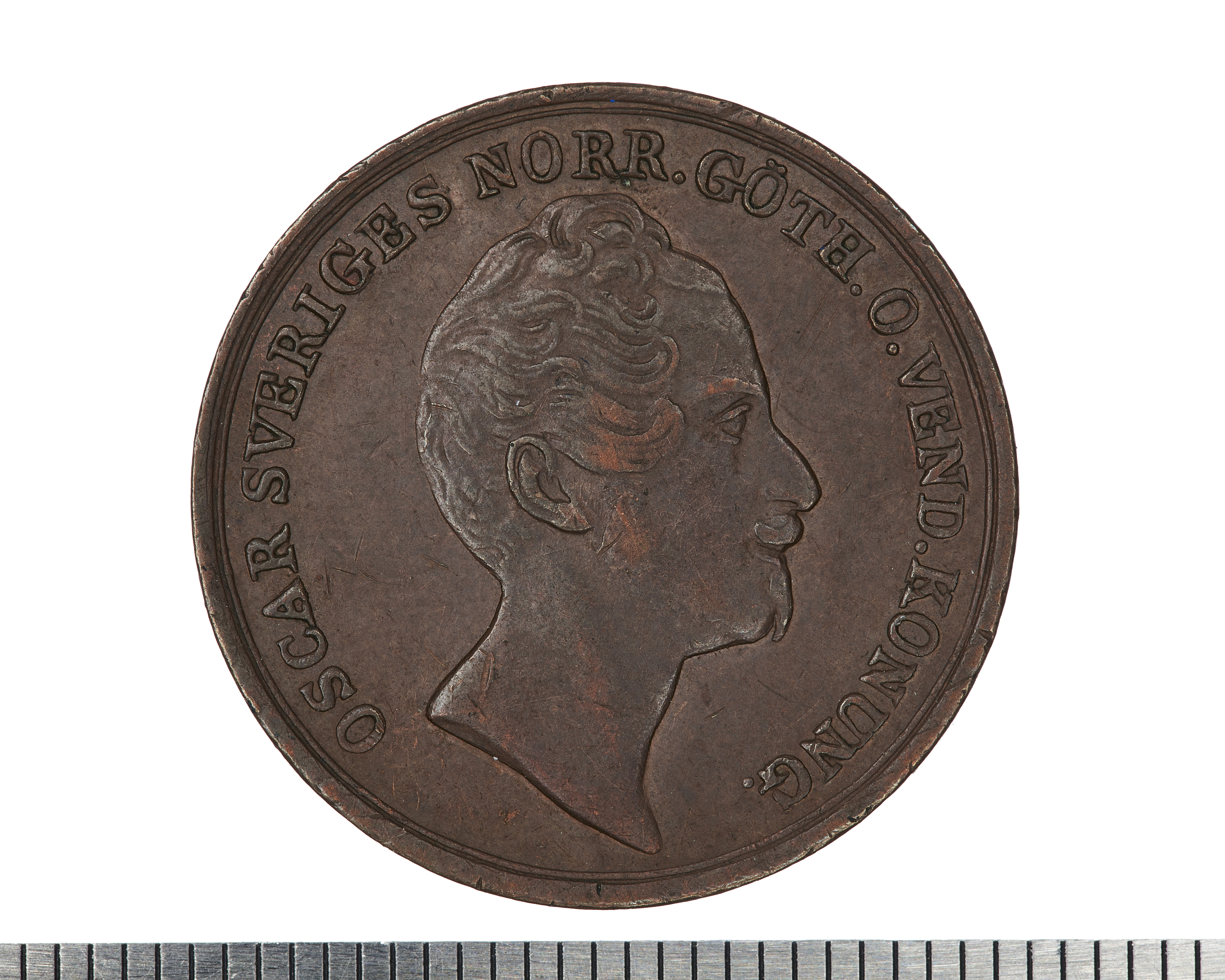 Upphov: Oscar I av Sverige och Norge. Media: Bonnevier, Helena. Ekonomiska museet - Kungliga myntkabinettet/SHM, (CC BY 4.0) Du får bearbeta och dela verket för alla ändamål, även kommersiella, så länge du anger upphovsperson och licensgivare.