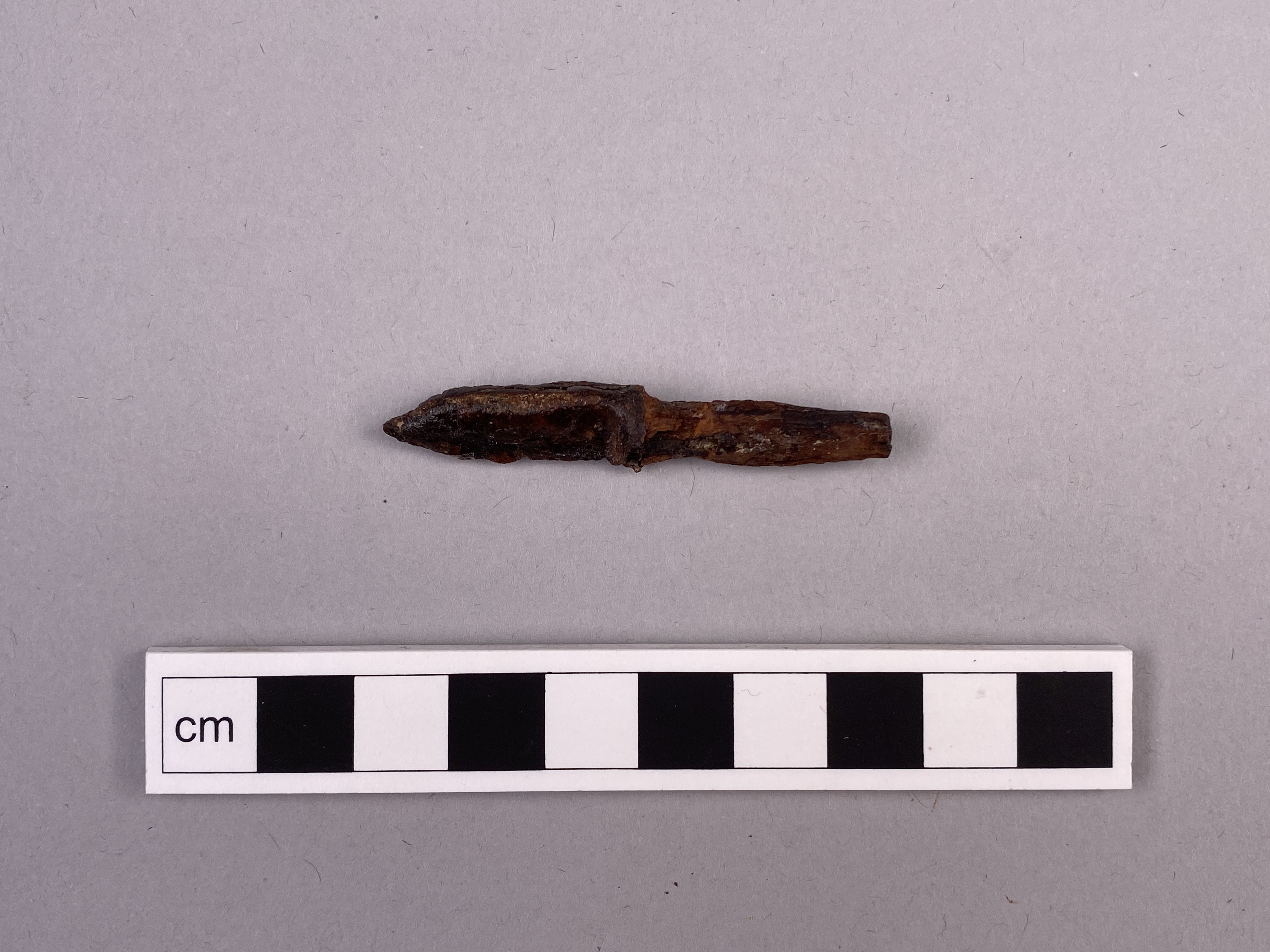Miniatyrkniv med bevarade rester av slida och skaft - det senare silvertrådslindat (15 varv).