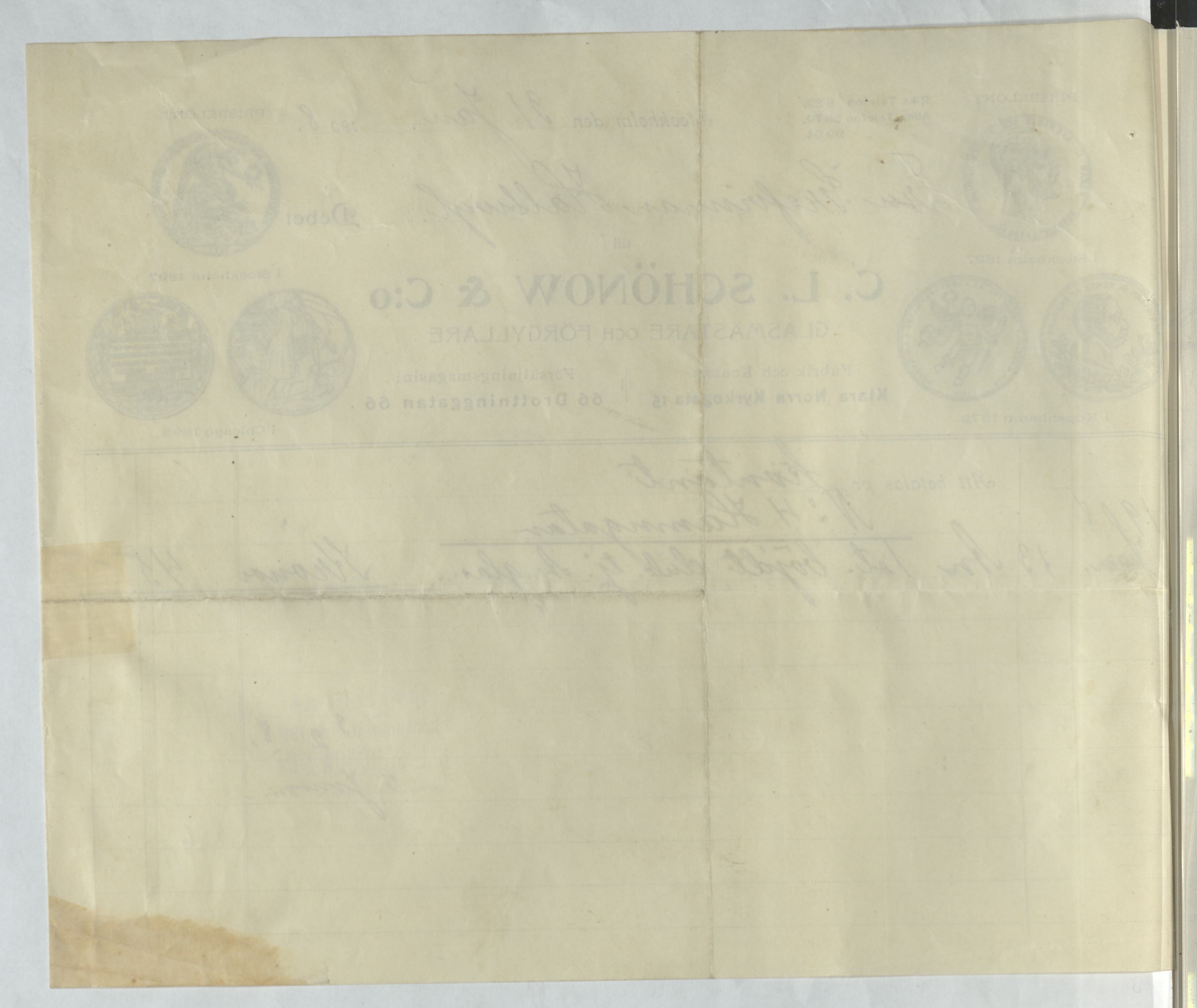 Kvitto från C. L. Schönow & Co. Glasmästare och Förgyllare