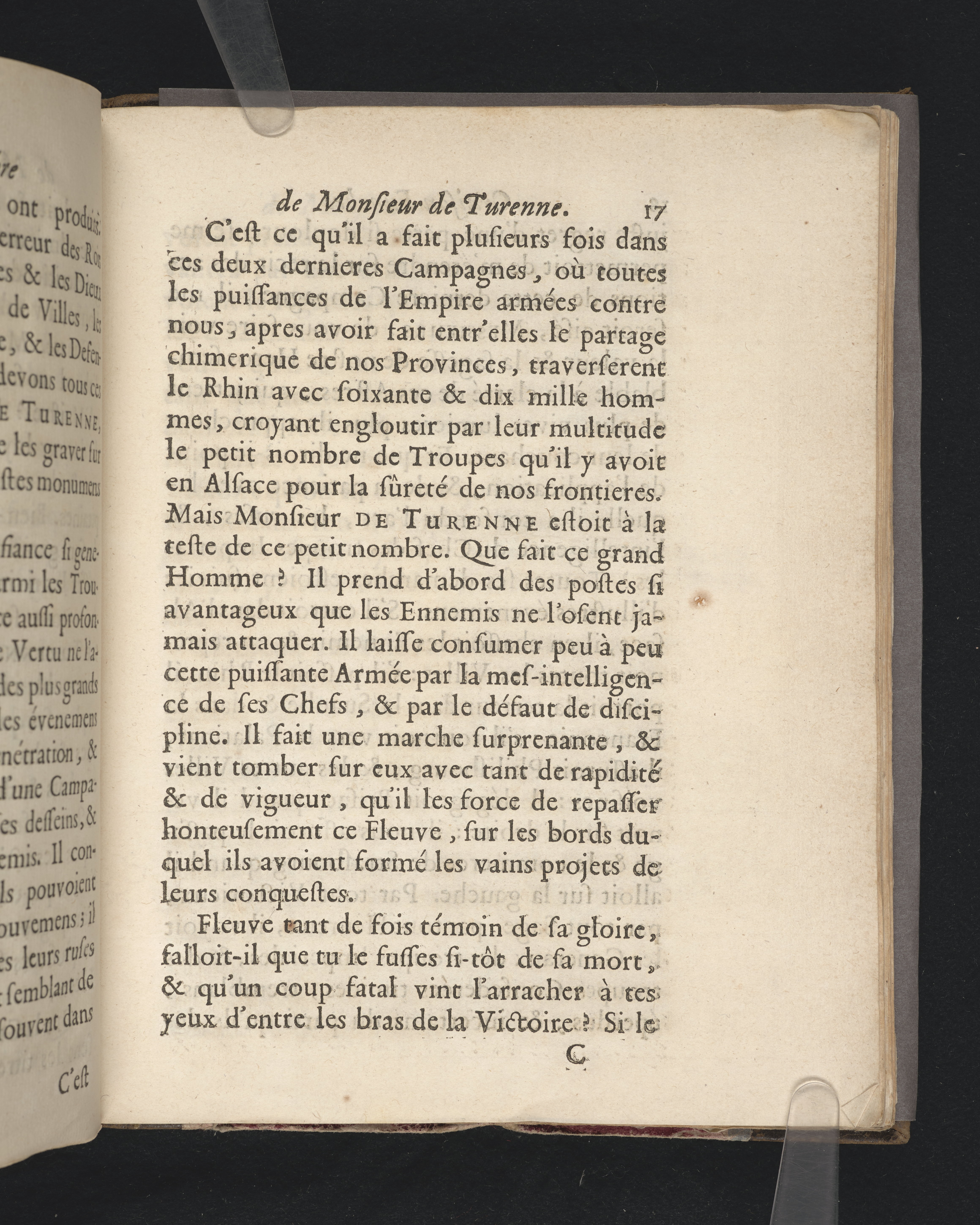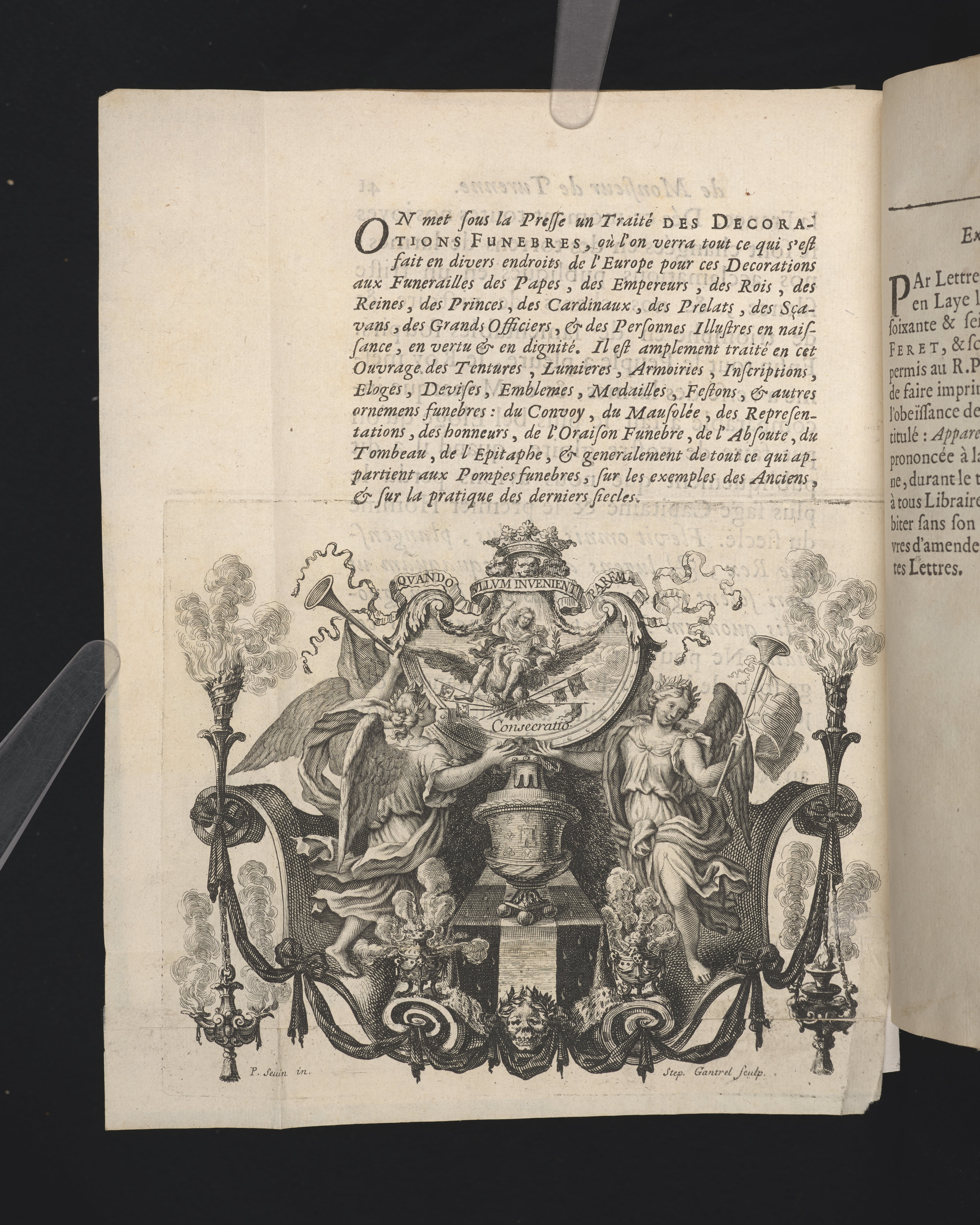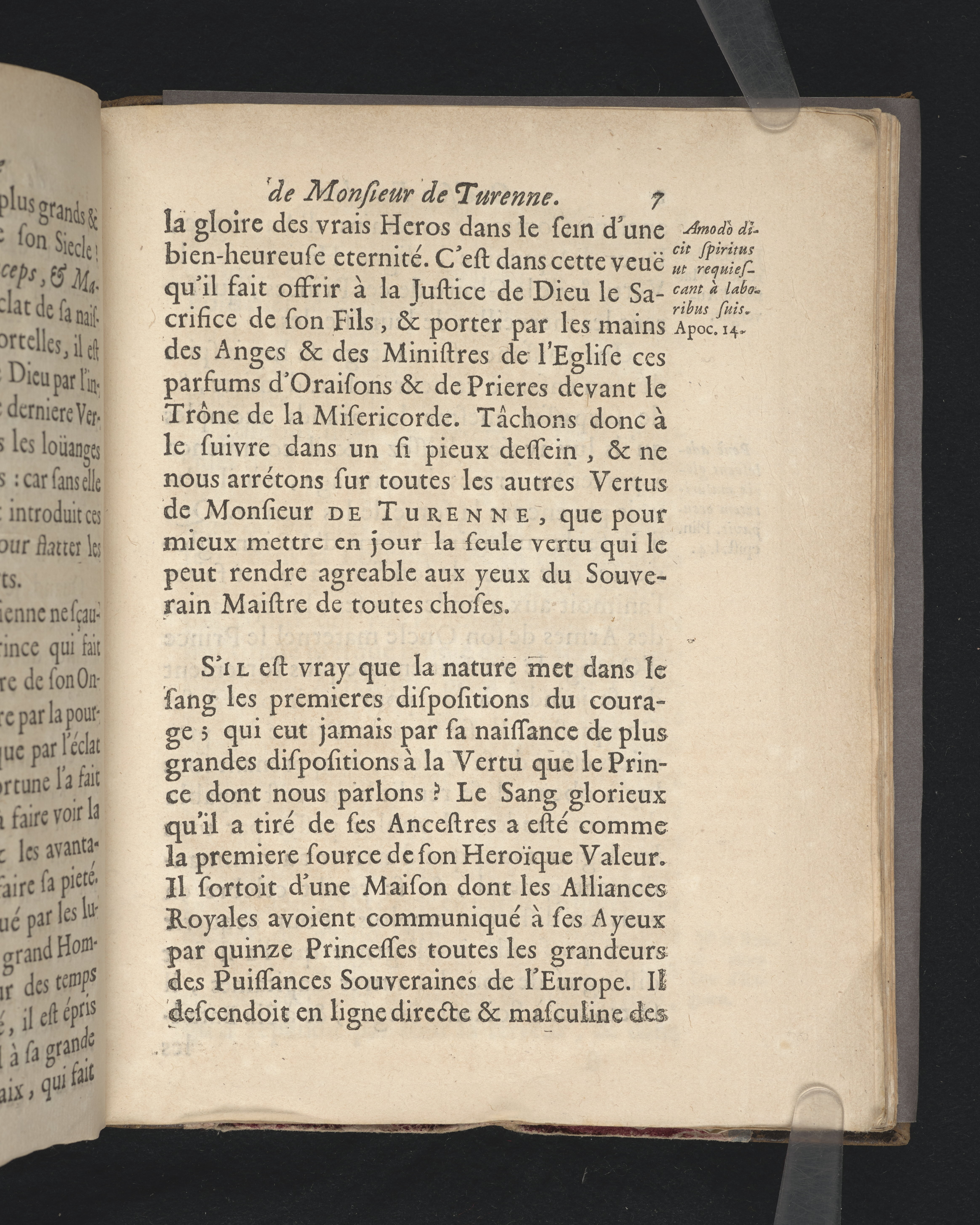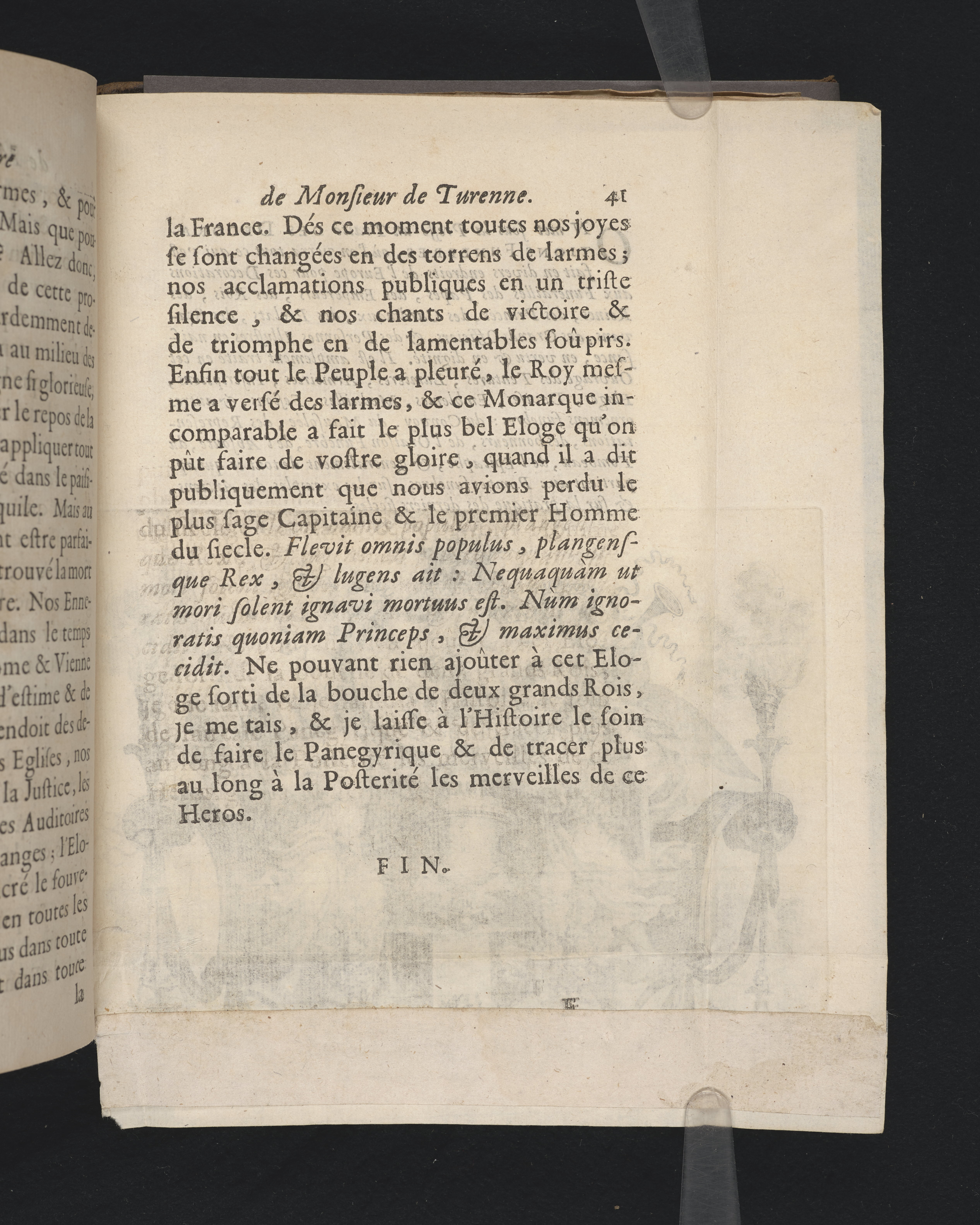 Oraison funebre de ... prince Henry de la Tour-d'Auvergne, vicomte de Turenne ... Prononcée à Roüen dans l'eglise de l'Abbage de S. Oüen le 15. de Decembre 1675. Par le P. Claude François Menestrier ... A Paris, chez Estienne Michallet ... MDCLXXVI.
