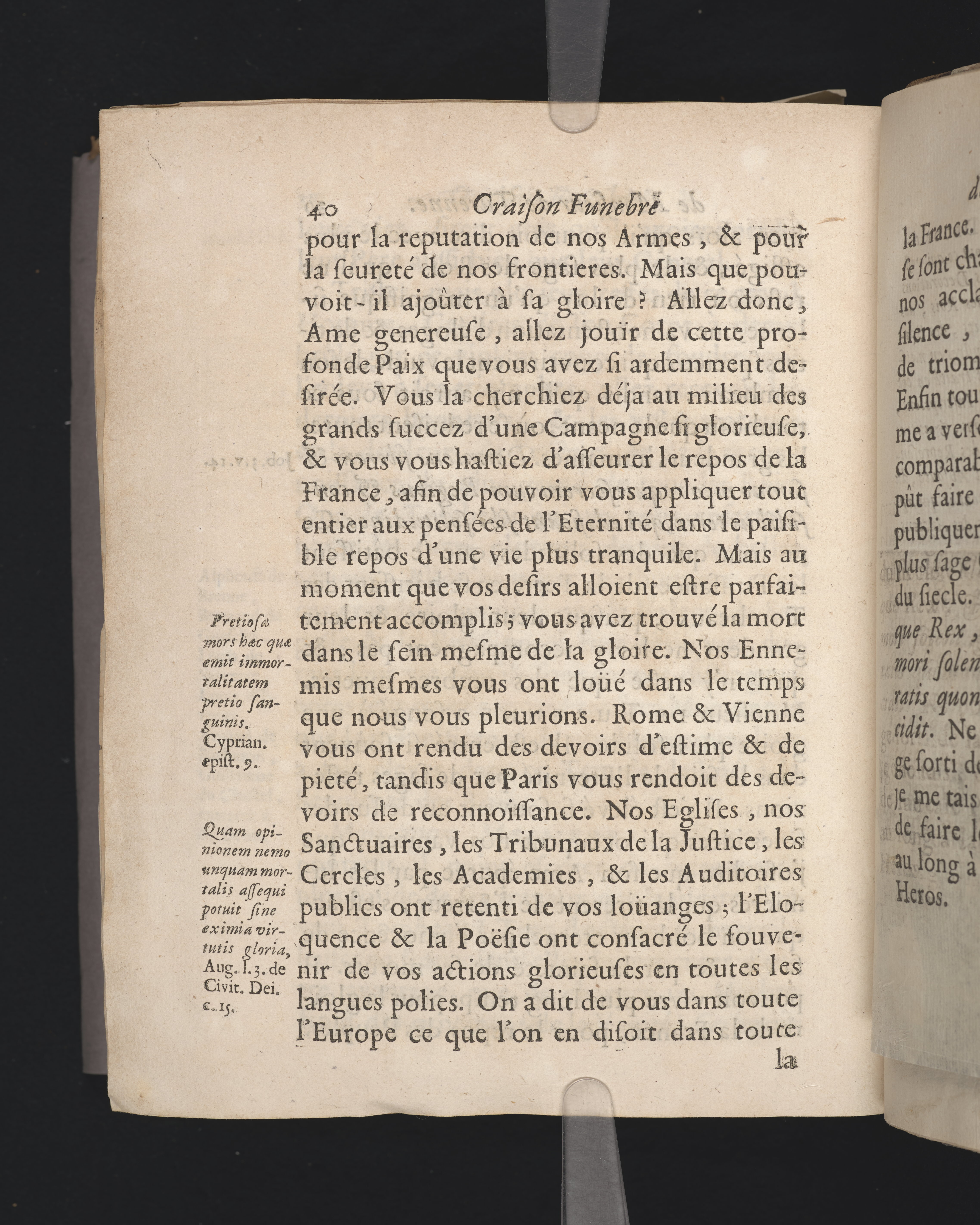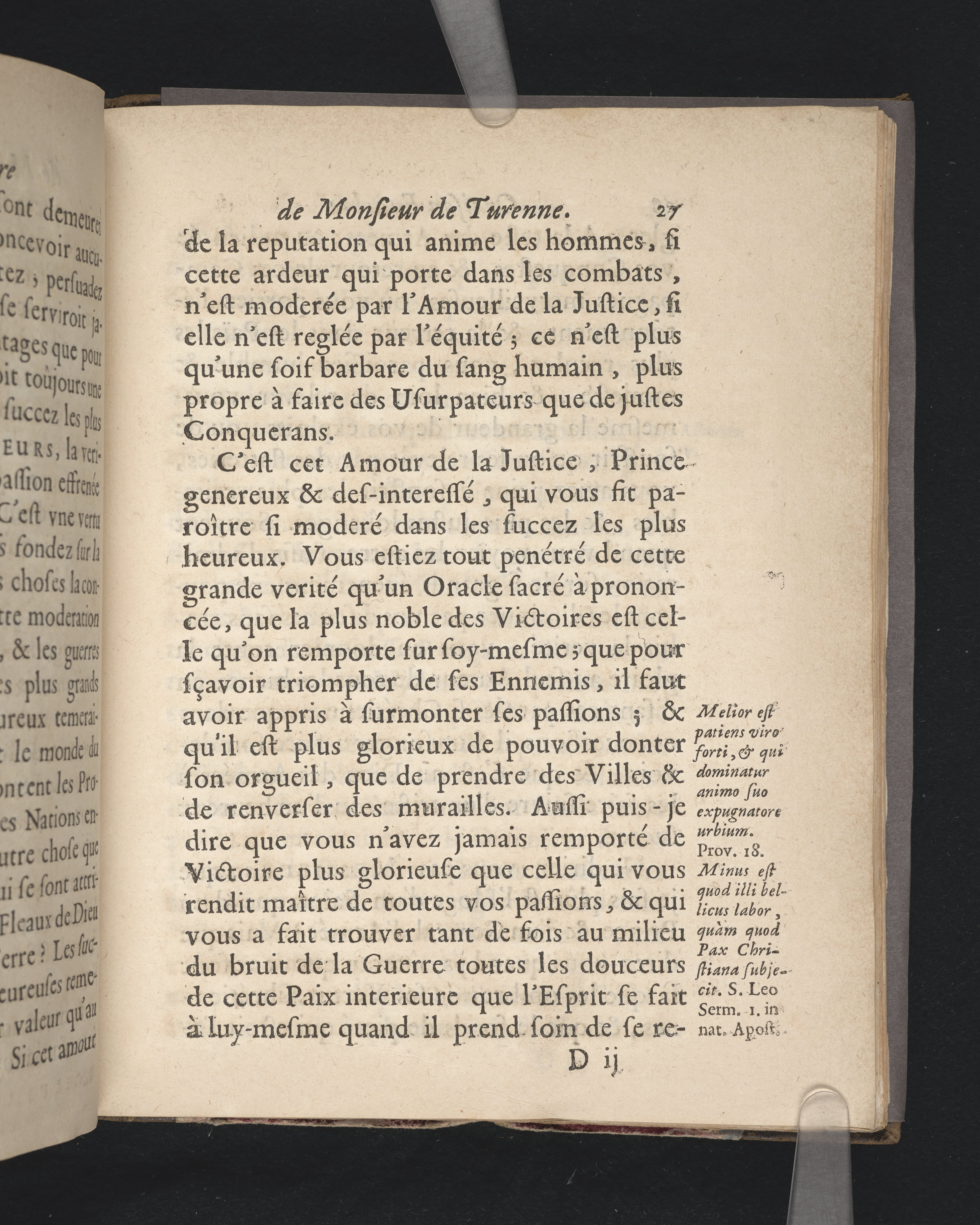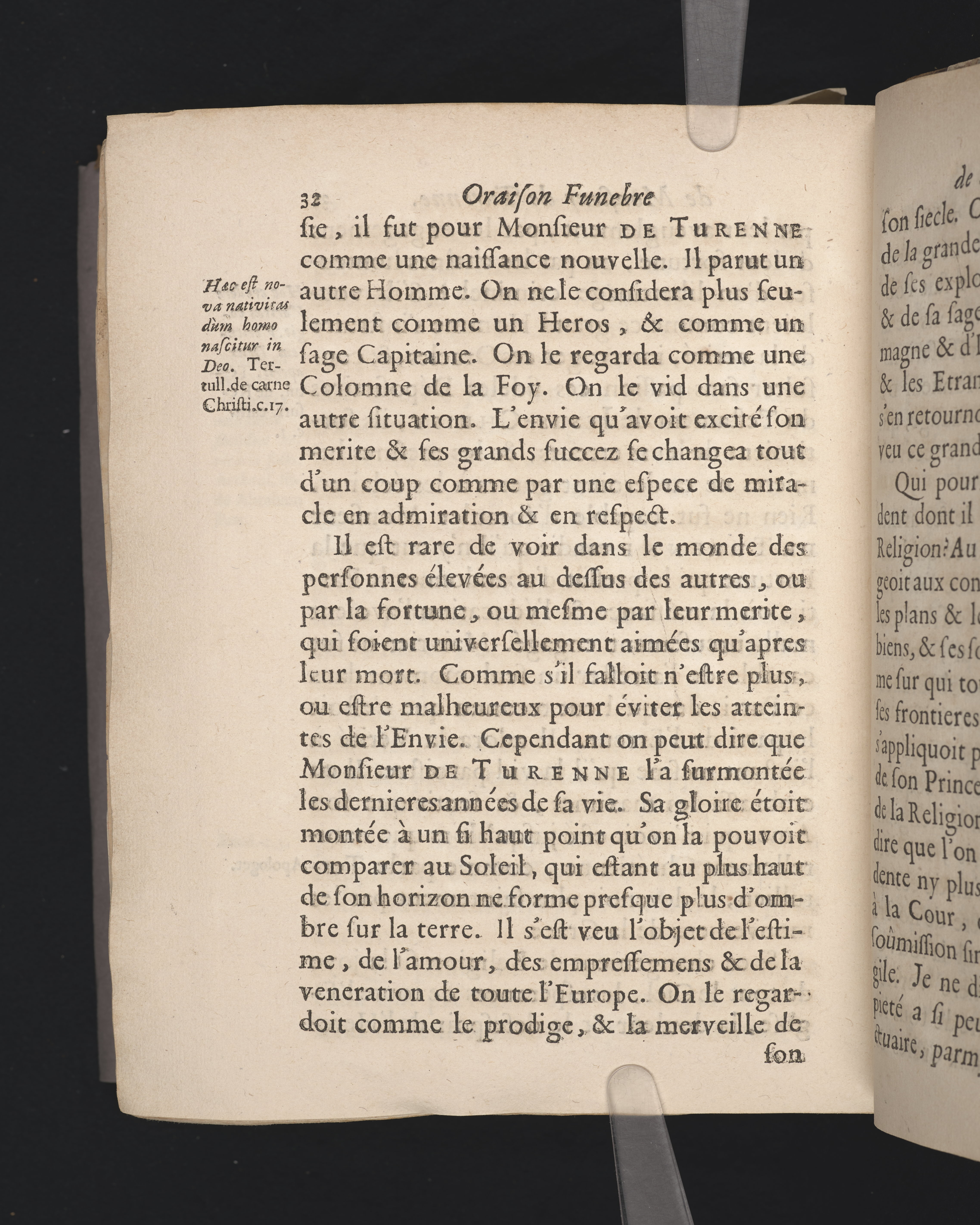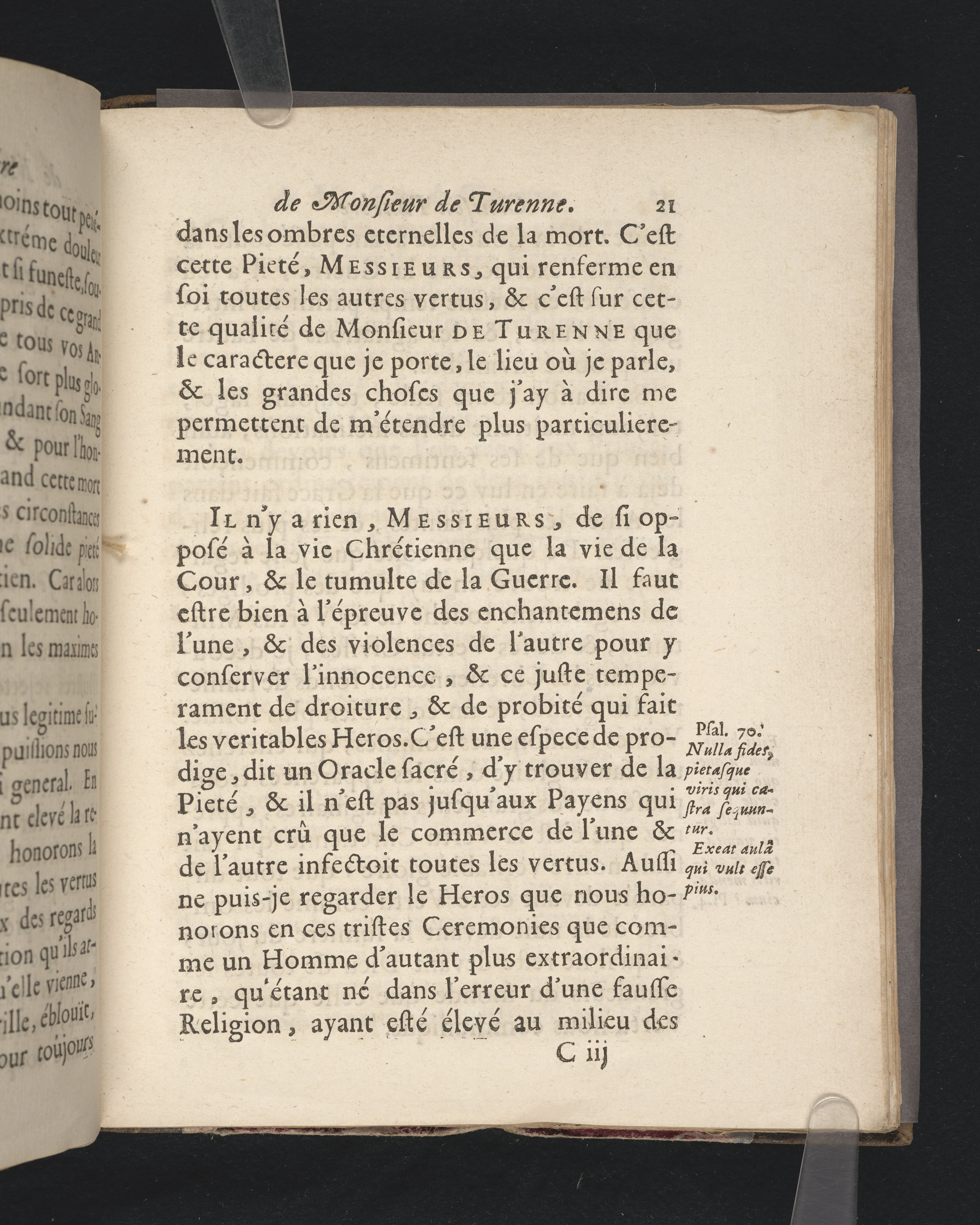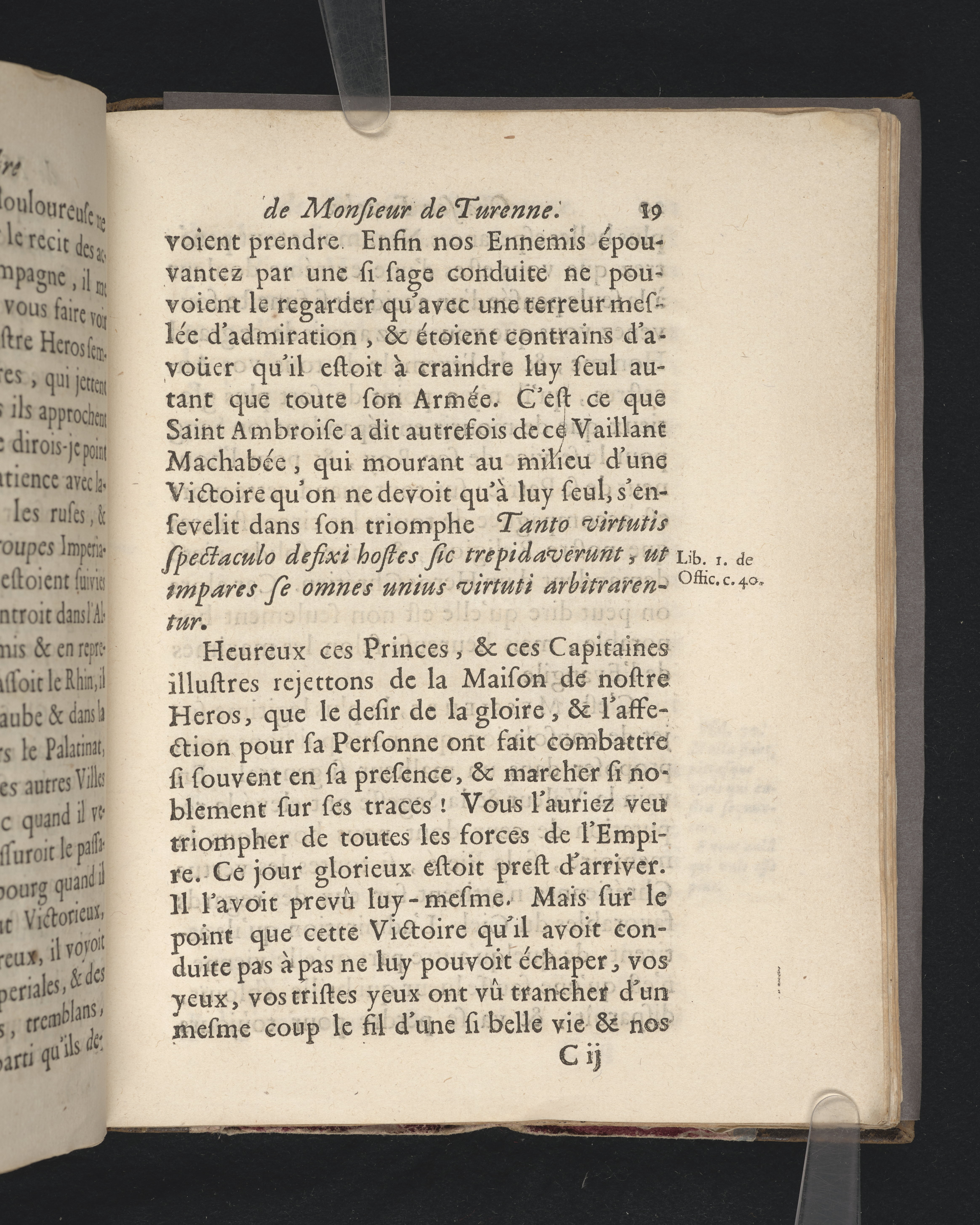 Oraison funebre de ... prince Henry de la Tour-d'Auvergne, vicomte de Turenne ... Prononcée à Roüen dans l'eglise de l'Abbage de S. Oüen le 15. de Decembre 1675. Par le P. Claude François Menestrier ... A Paris, chez Estienne Michallet ... MDCLXXVI.