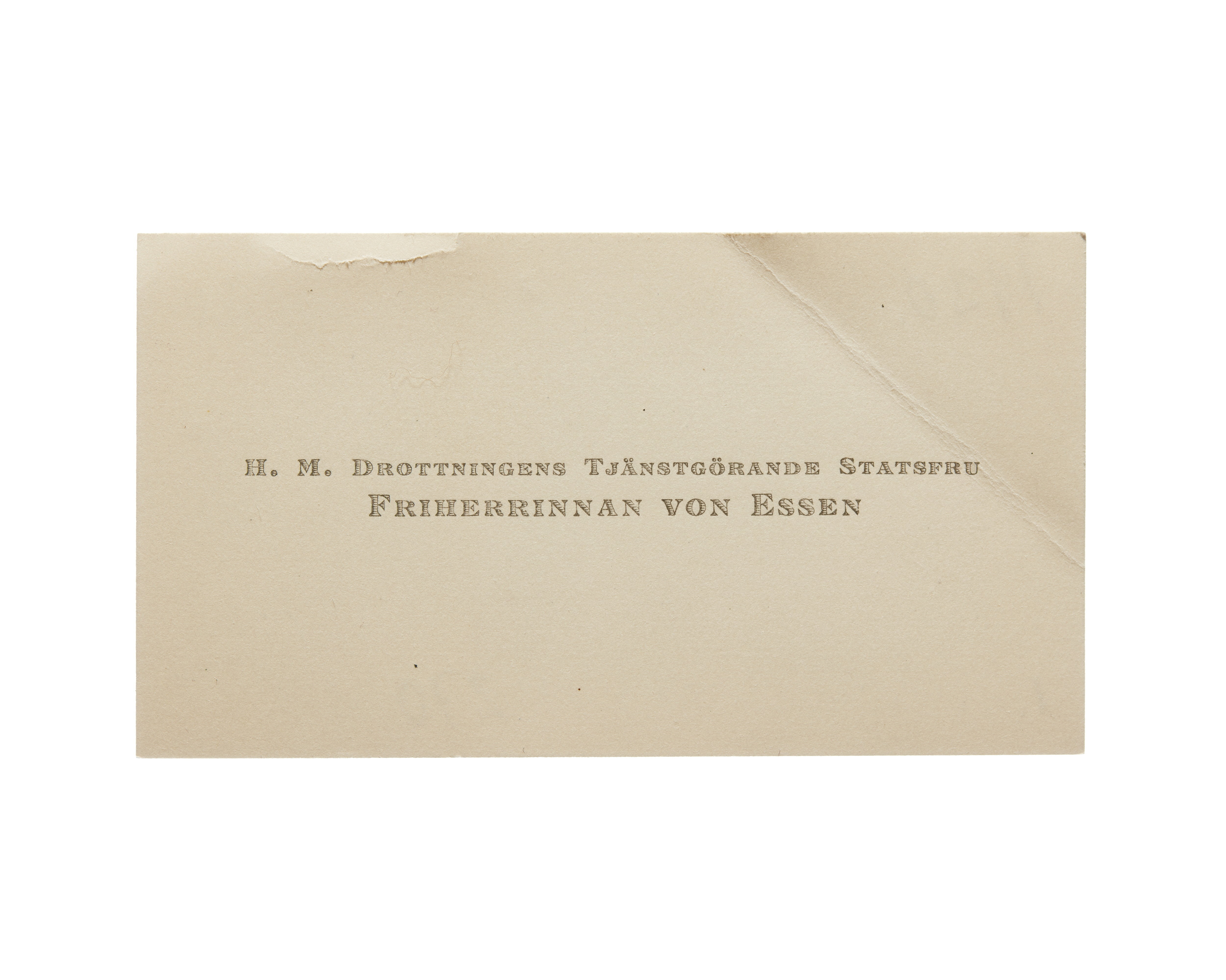 Visitkort från H. M. drottningens Tjänstgörande Statsfru Friherrinnan von Essen.