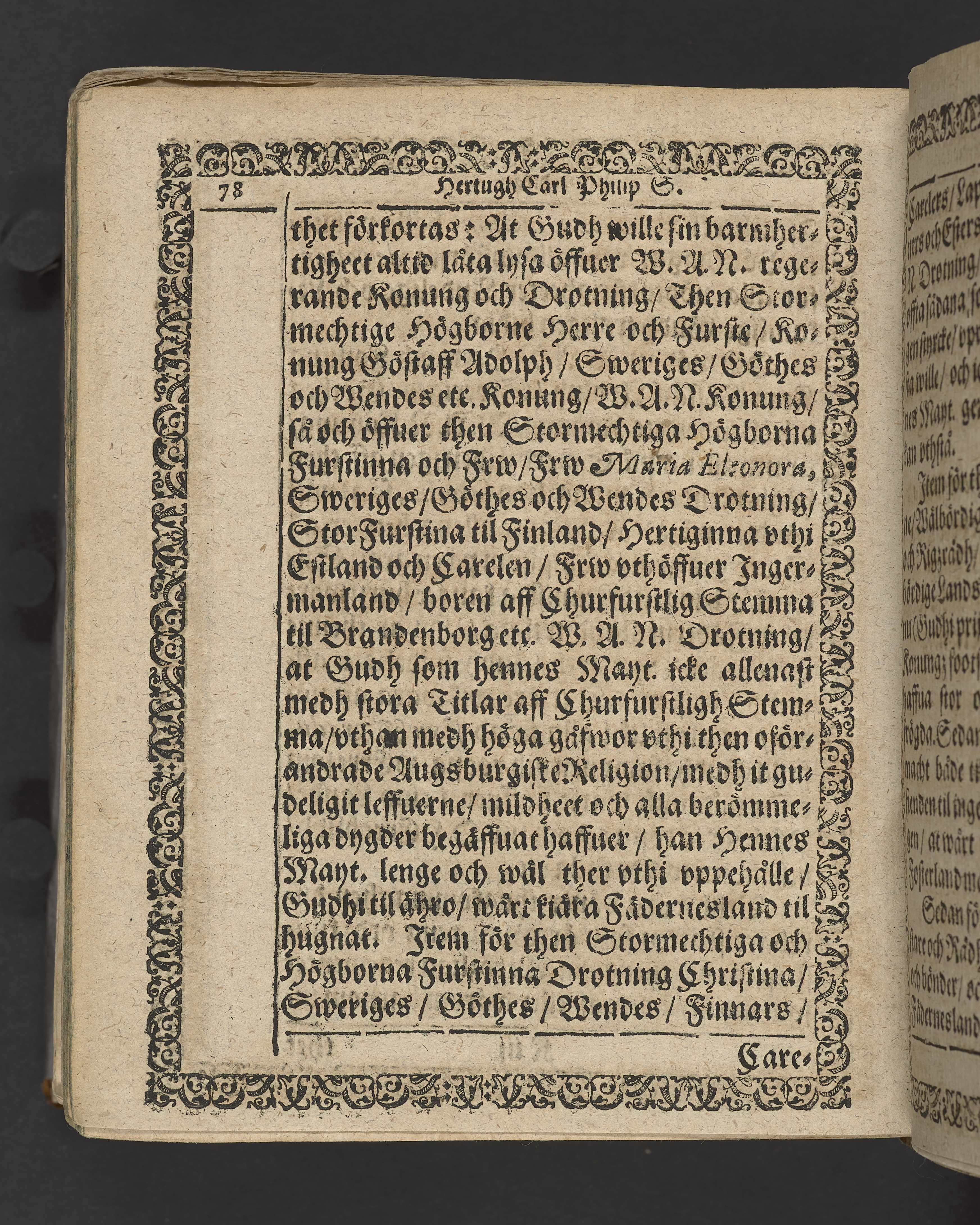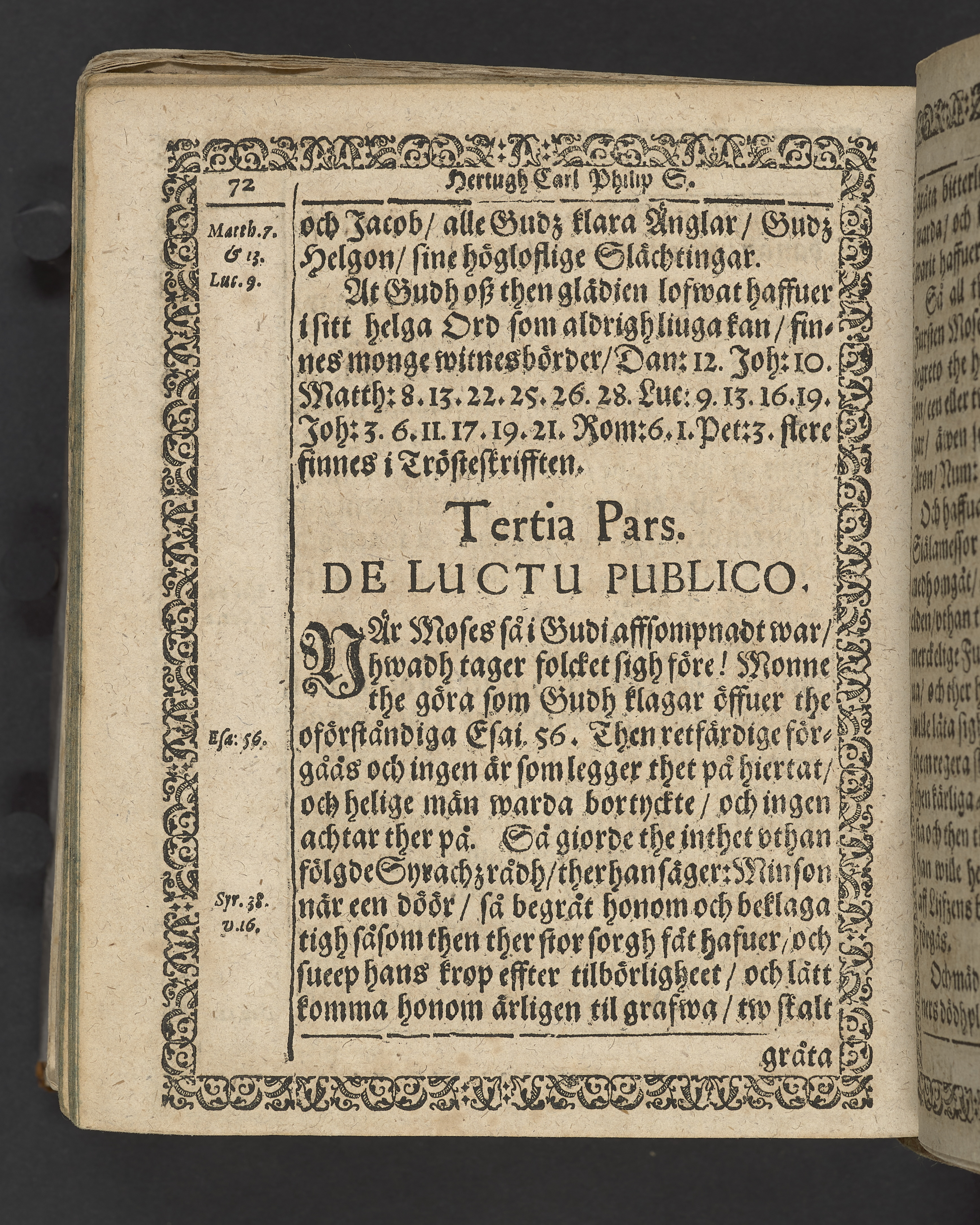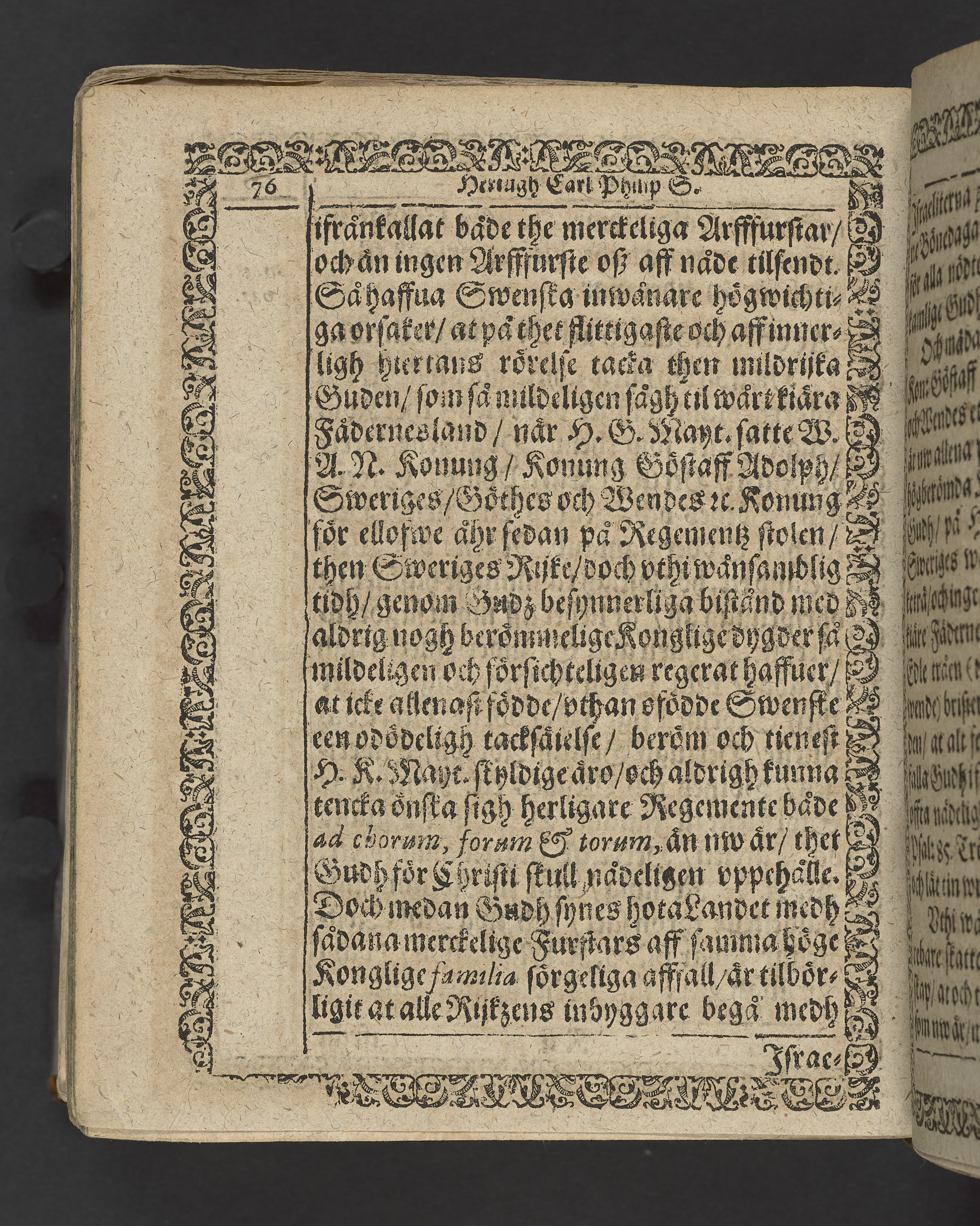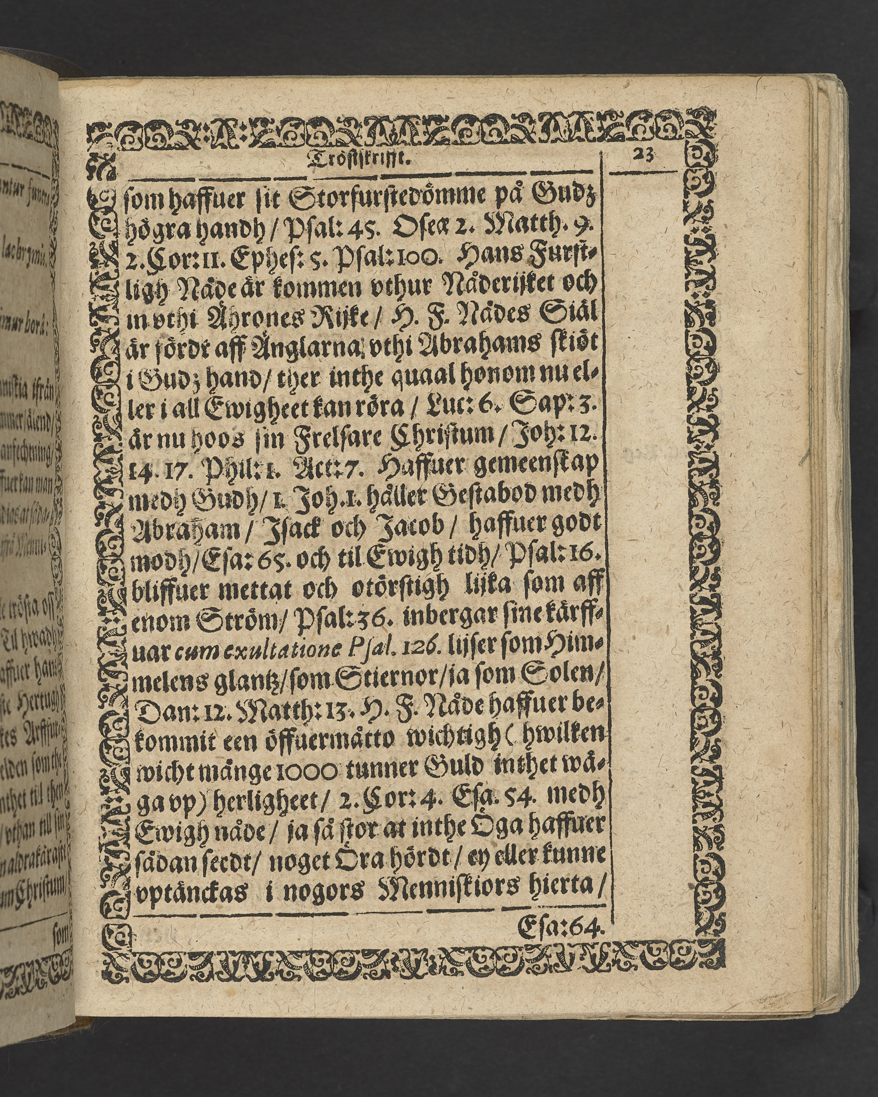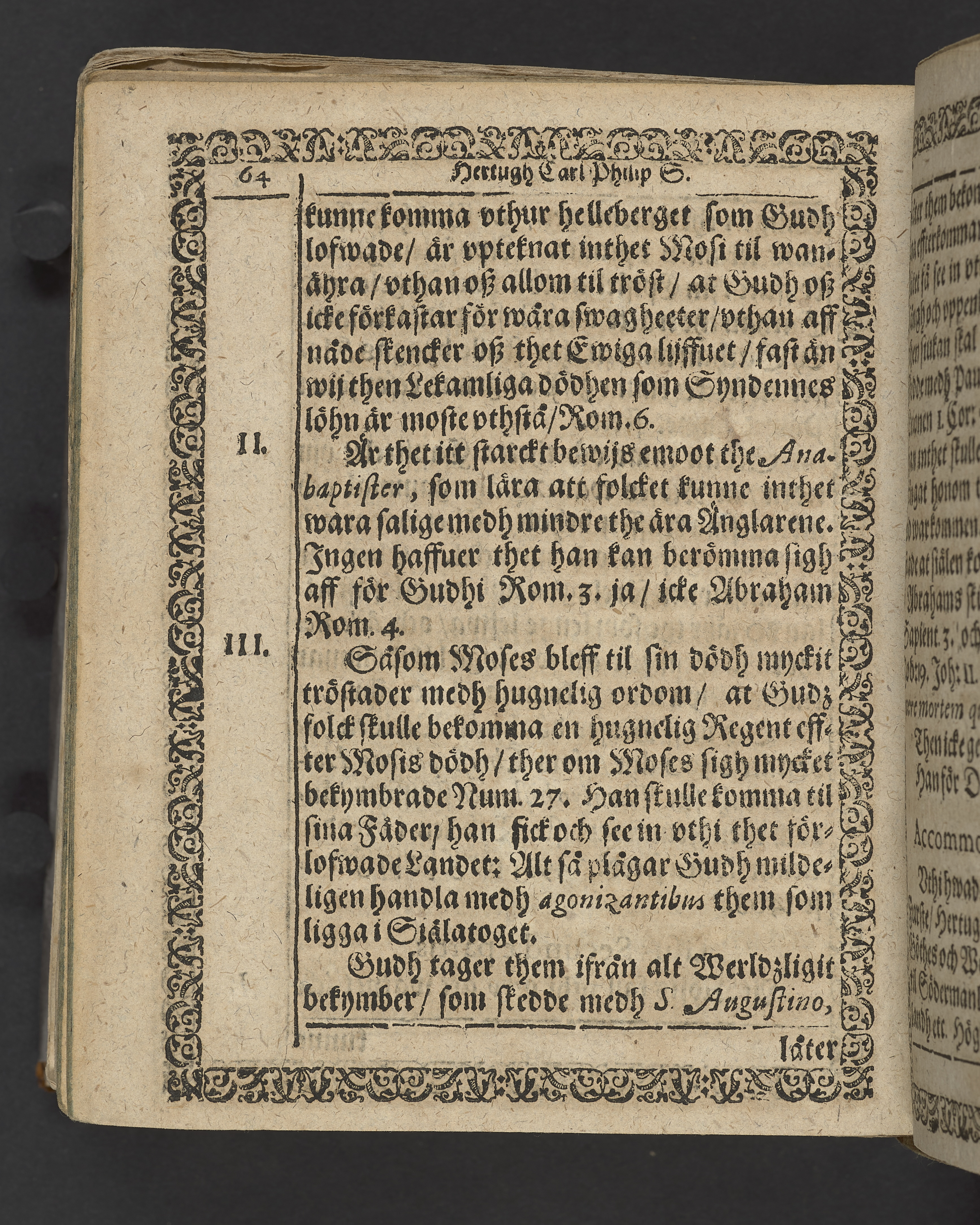 Een kort tröstskrifft til ... frw Christina, Sweriges ... drotning, emoot thet stora sorgefallet som hendt är medh ... hertugh Carls Philipp, Sweriges, Göthes och Wendes Arffurstes ... hughkommelse, oförmodeligh ... kallelse, som skedde i Narfwen vthi Liflandh, then 25. Jan. åhr 1622 ... Sampt en christeligh lijkpredikan öfwer höghbemälte H. F. N. saliga lijk ... i Strängnäs domkyrkia ... samma åhr ... stält aff Petro Jonae Angermanno ... Tryckt i Rostock aff Jochim Fuesz, åhr 1623.