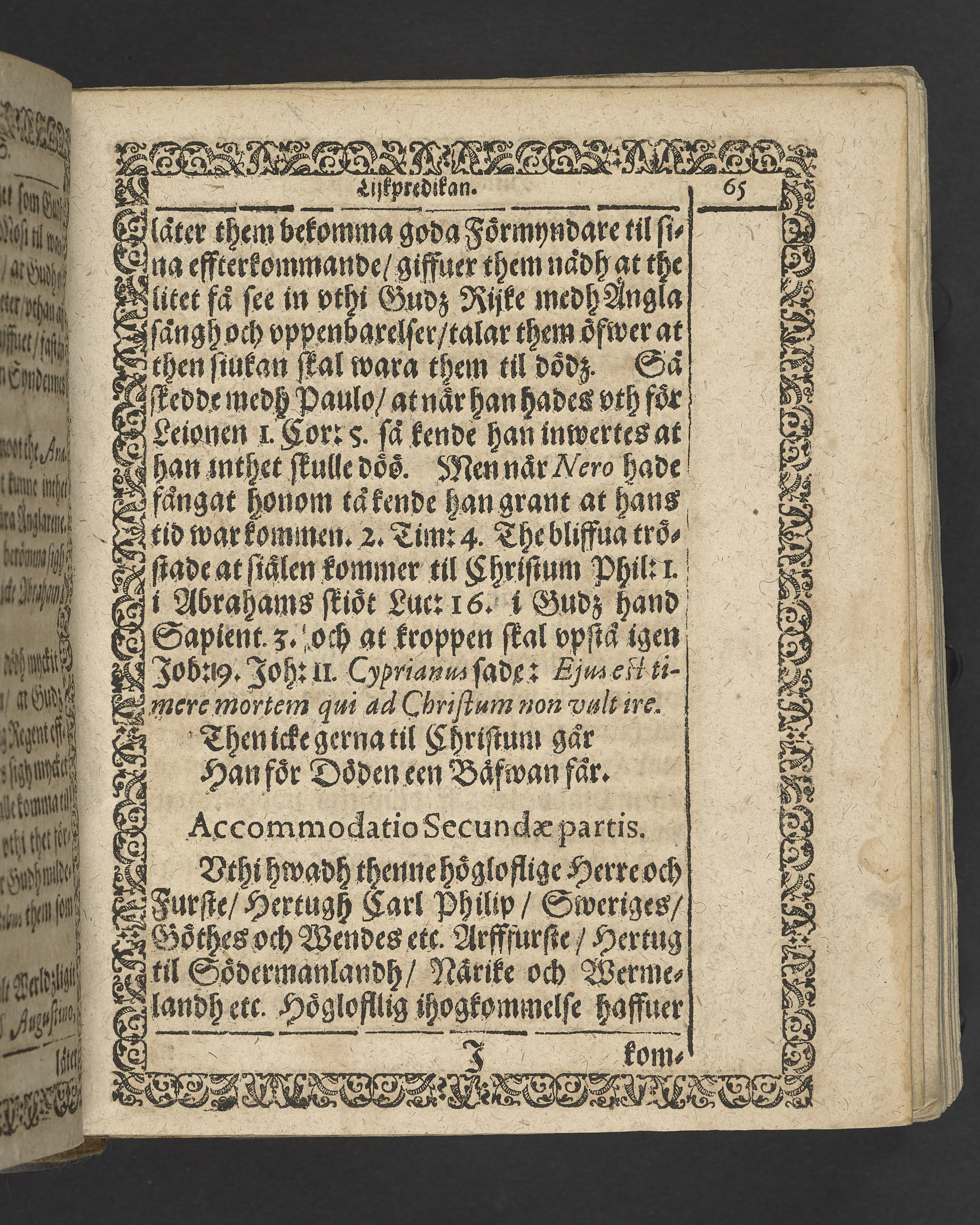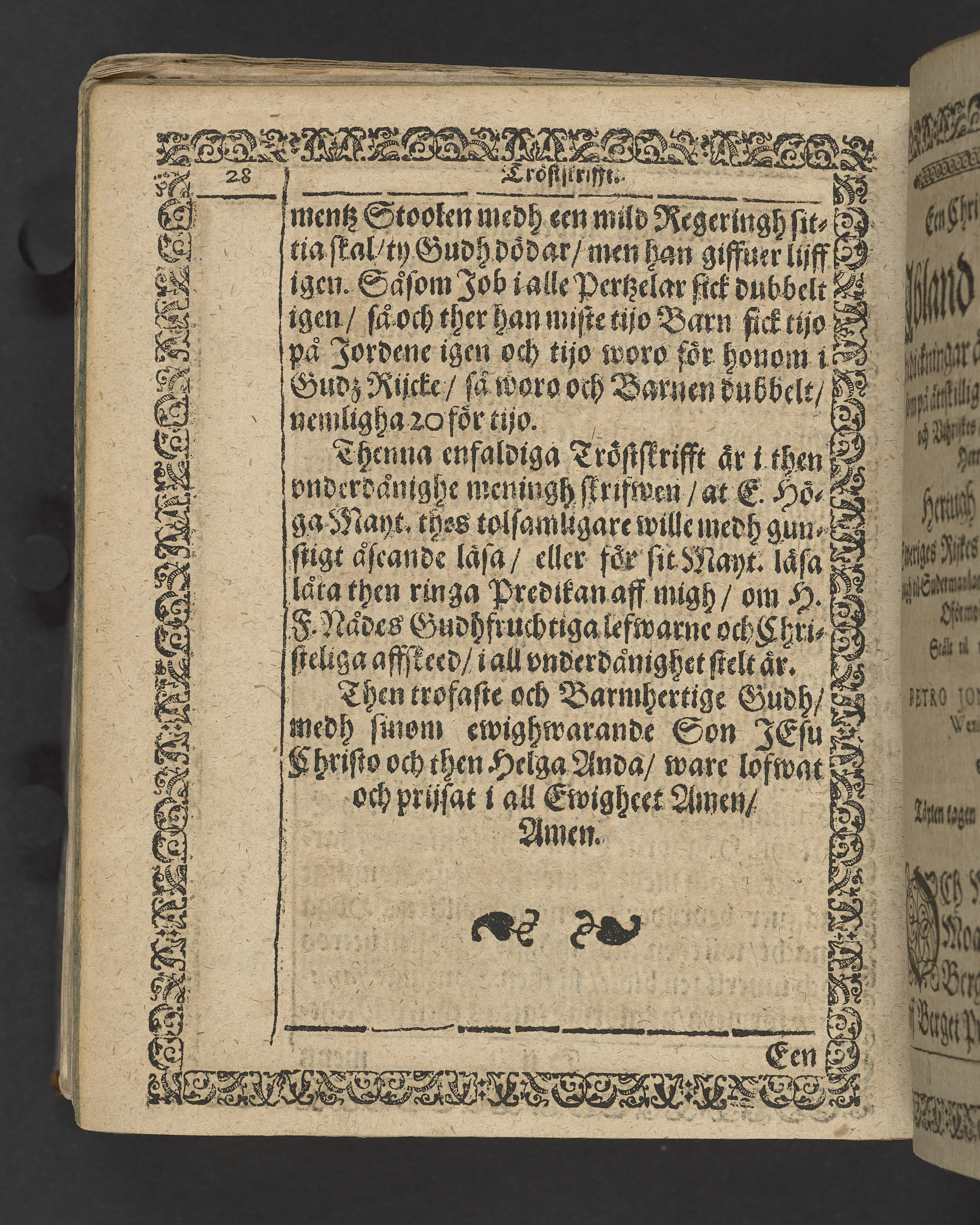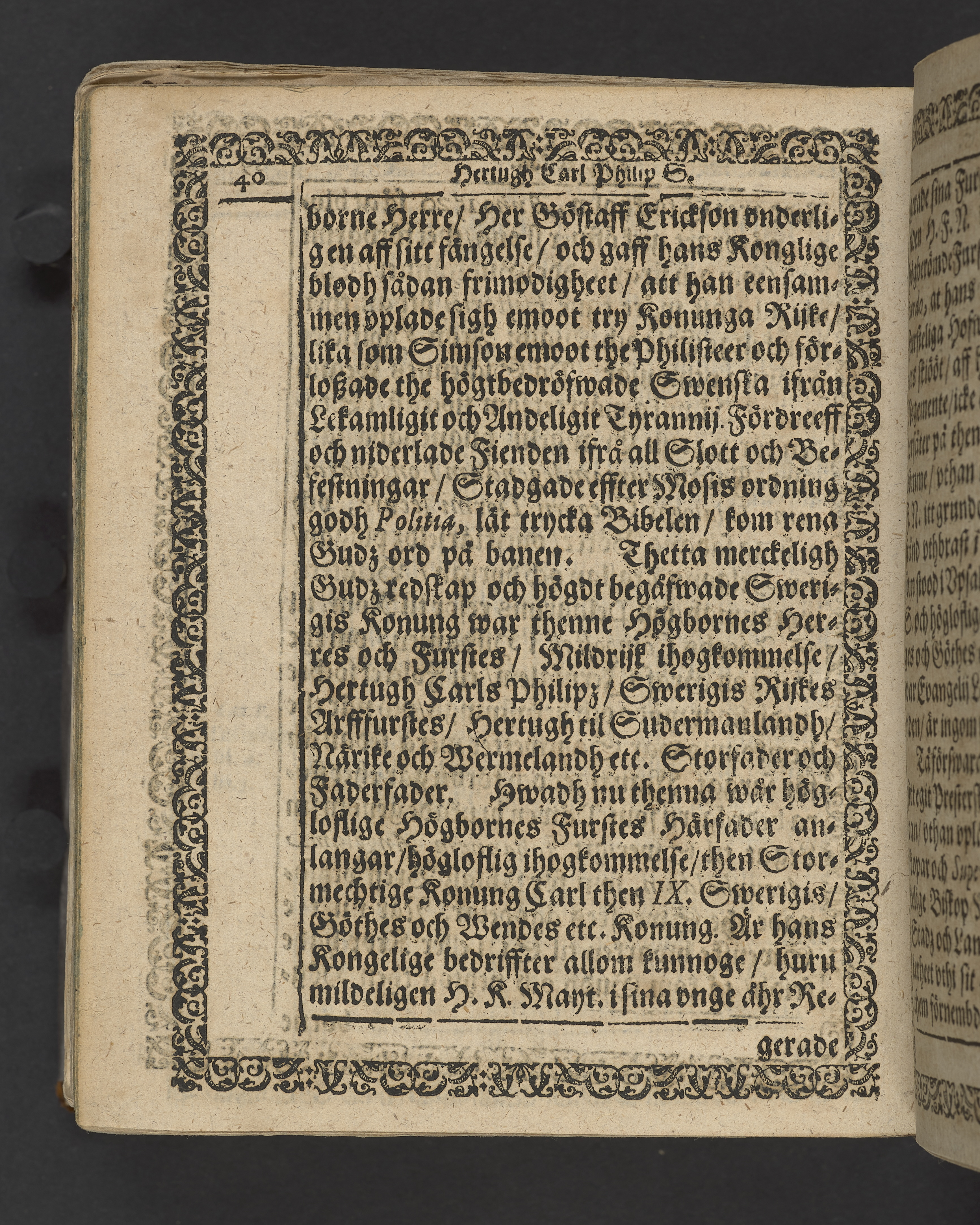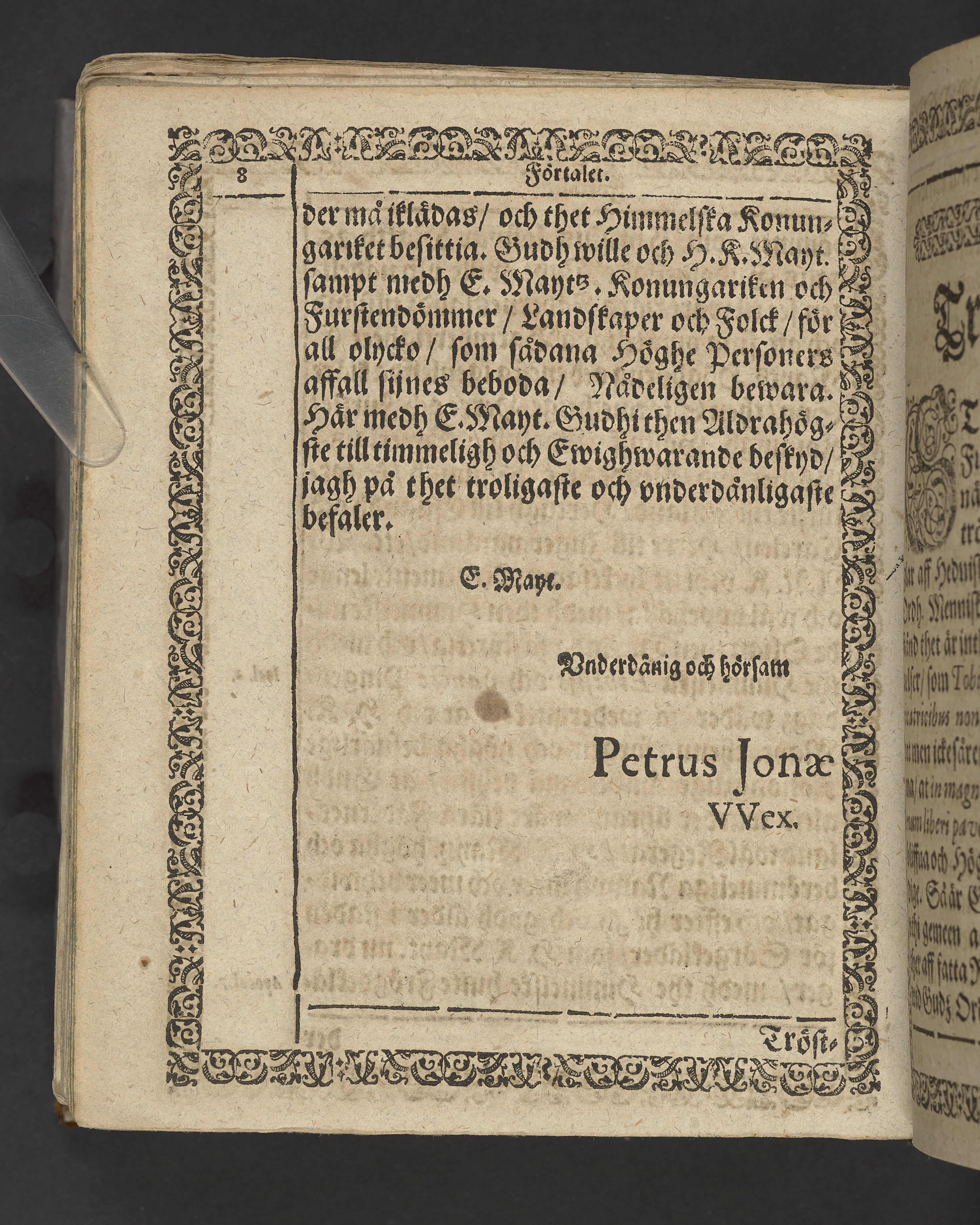 Een kort tröstskrifft til ... frw Christina, Sweriges ... drotning, emoot thet stora sorgefallet som hendt är medh ... hertugh Carls Philipp, Sweriges, Göthes och Wendes Arffurstes ... hughkommelse, oförmodeligh ... kallelse, som skedde i Narfwen vthi Liflandh, then 25. Jan. åhr 1622 ... Sampt en christeligh lijkpredikan öfwer höghbemälte H. F. N. saliga lijk ... i Strängnäs domkyrkia ... samma åhr ... stält aff Petro Jonae Angermanno ... Tryckt i Rostock aff Jochim Fuesz, åhr 1623.