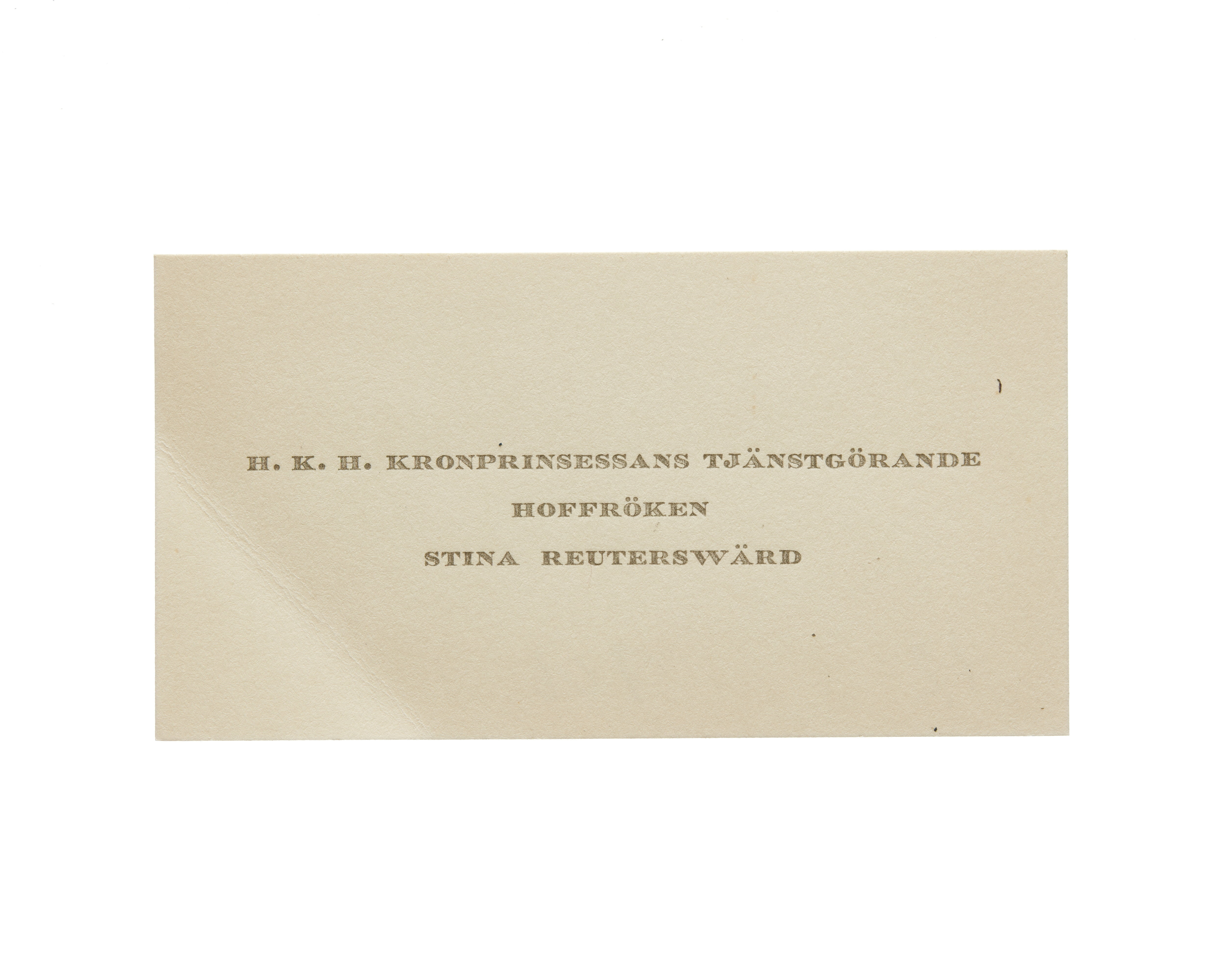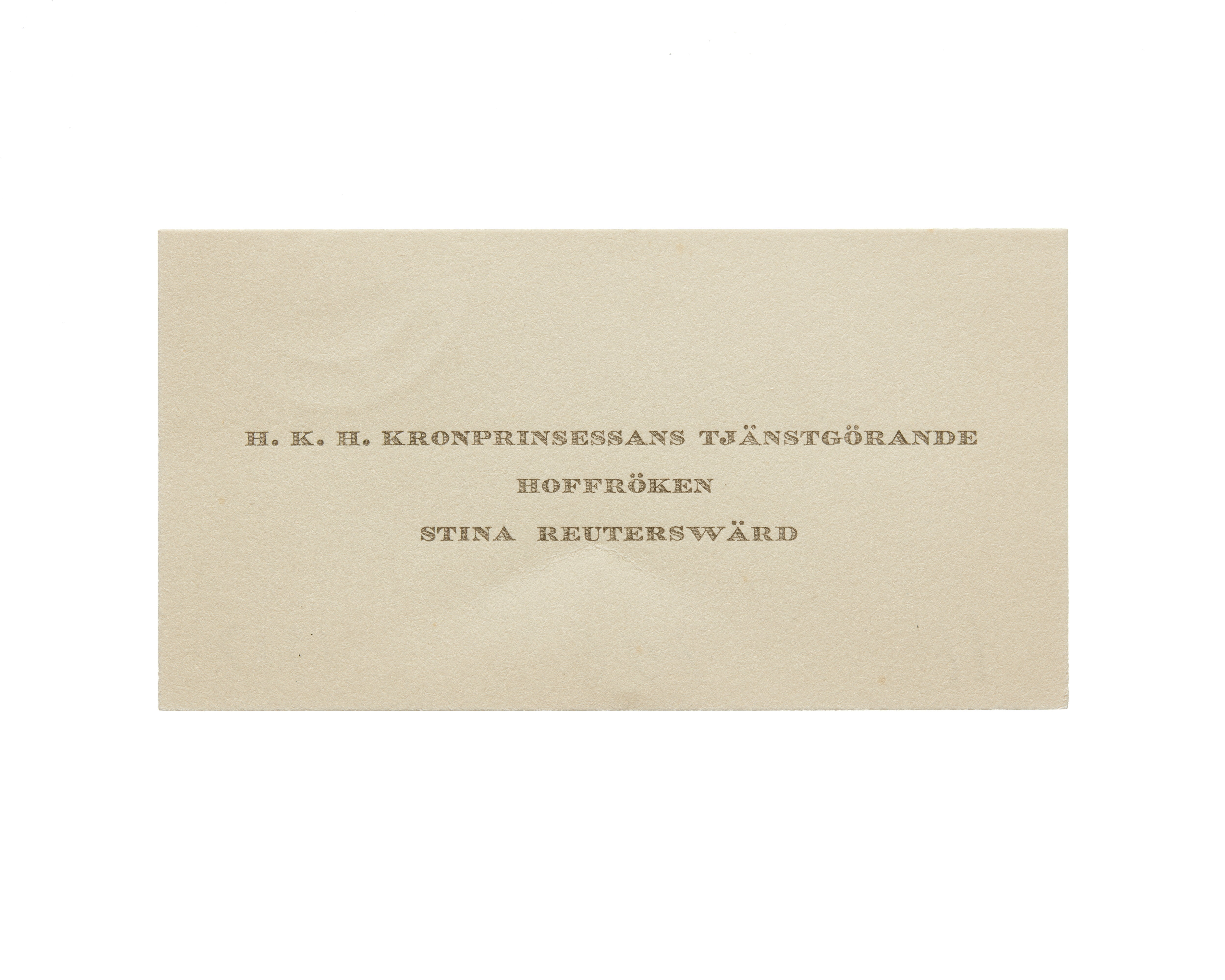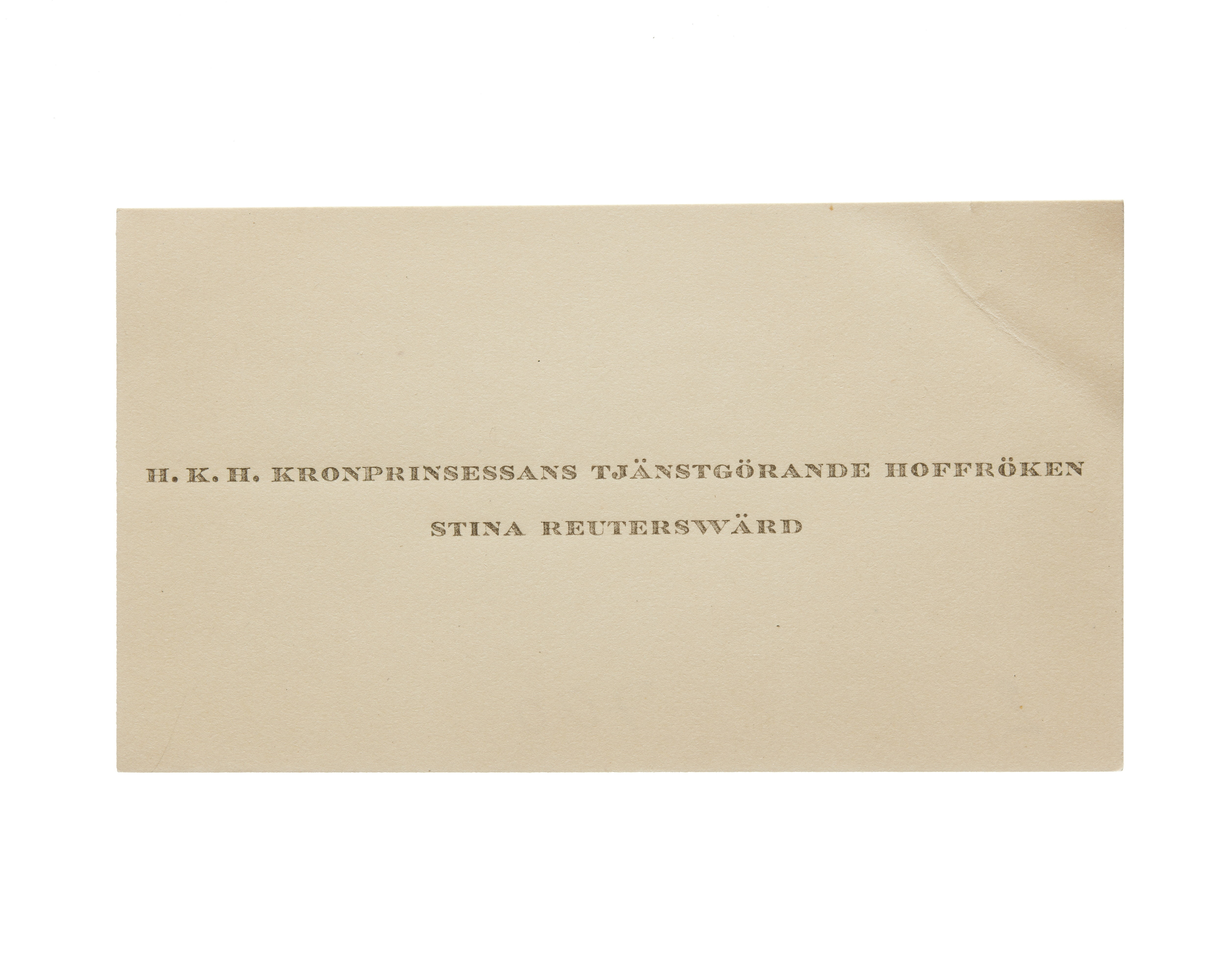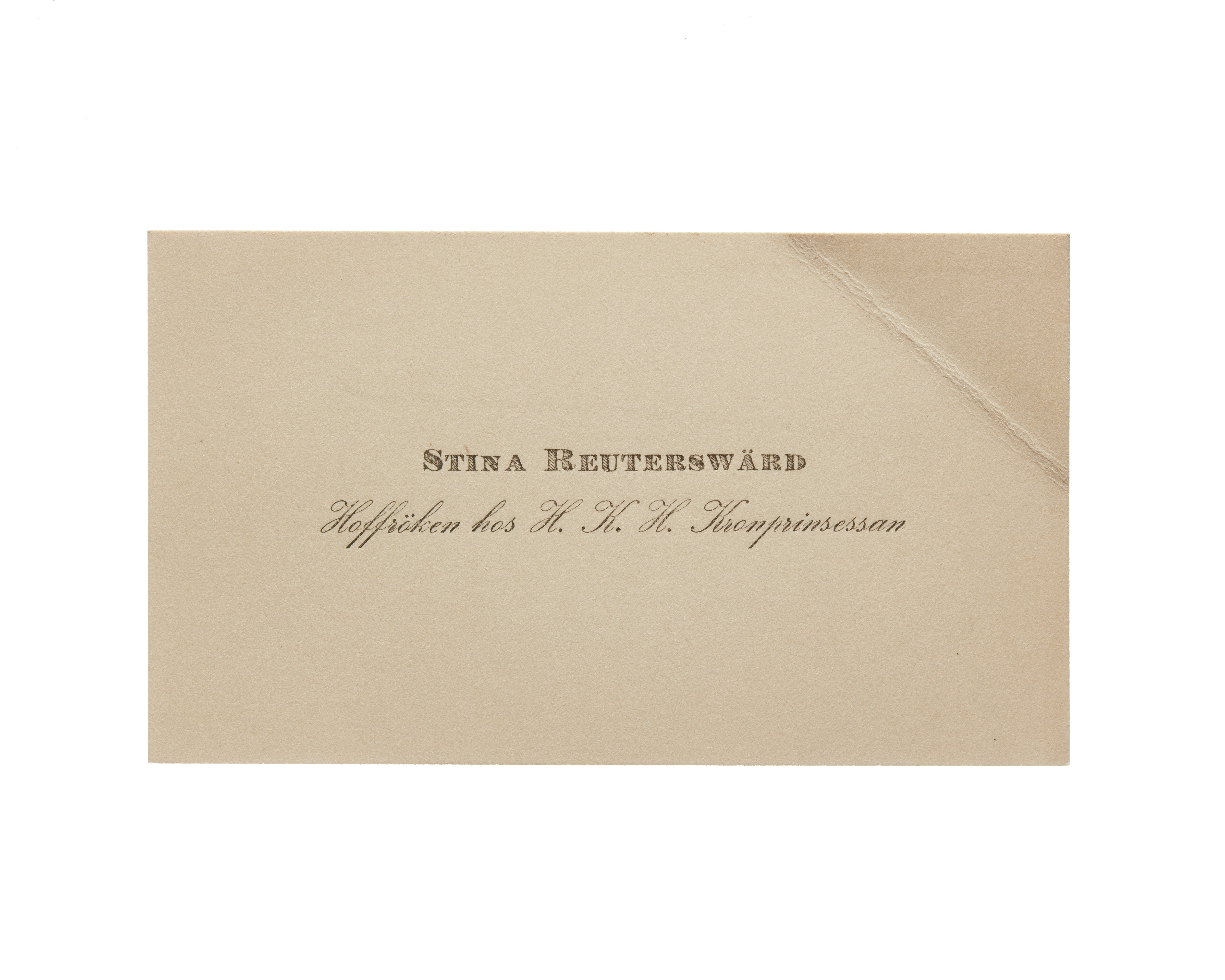 Visitkort från Hovfröken Stina Reuterswärd, Tjänstgörande hos H. K. H. Prinsessan Ingrid.