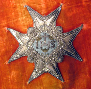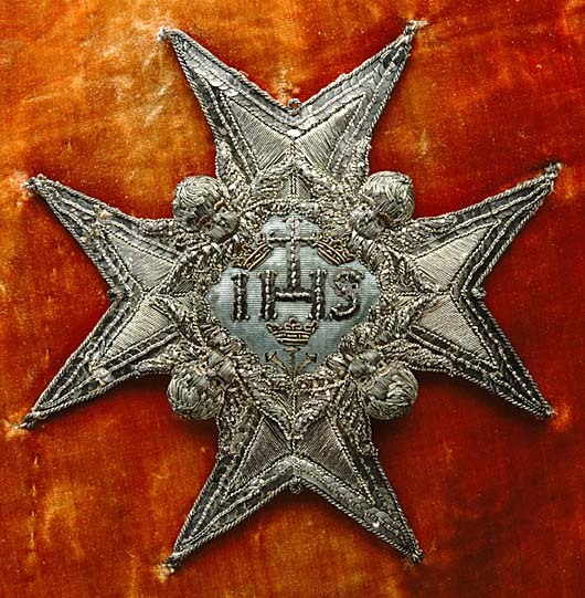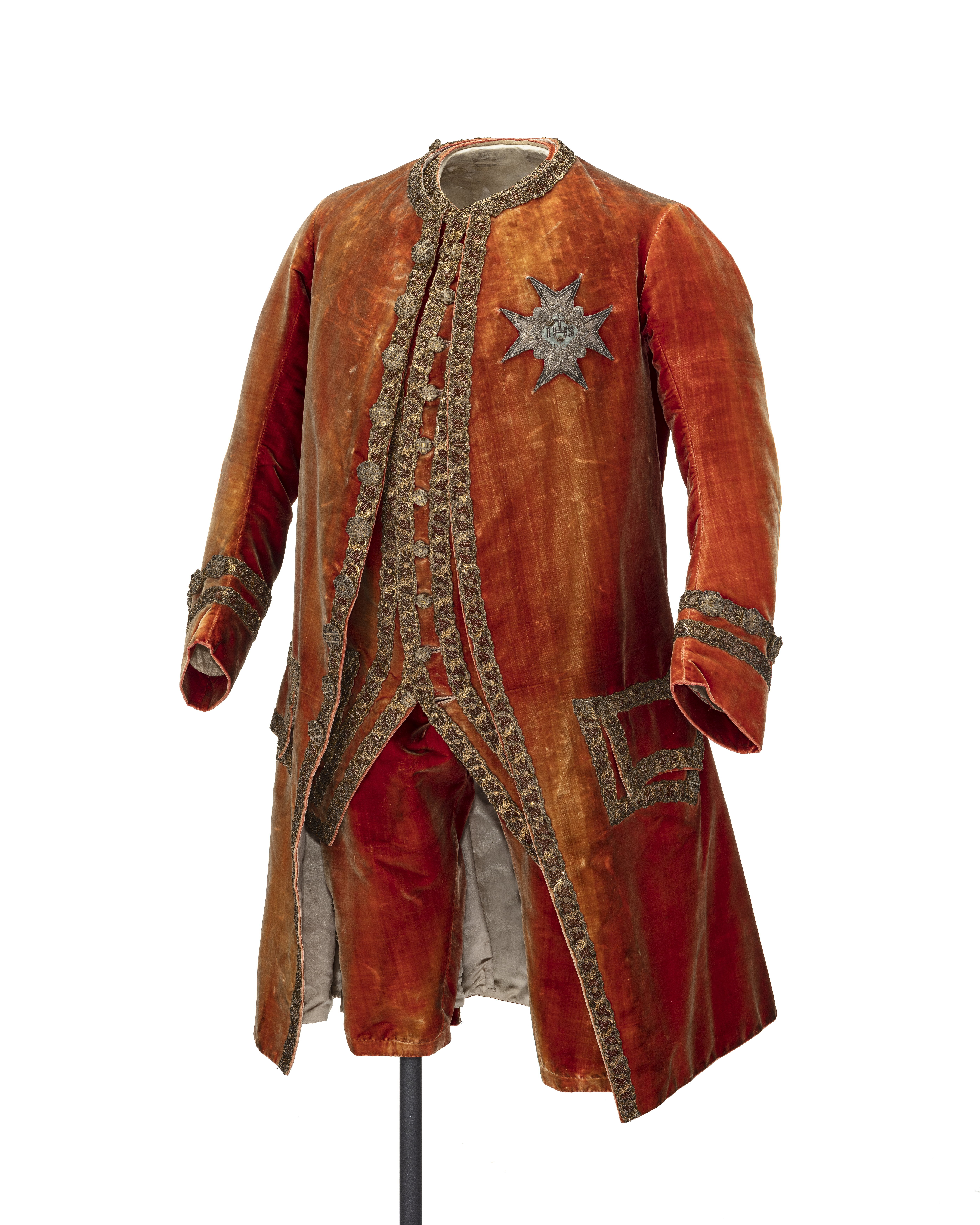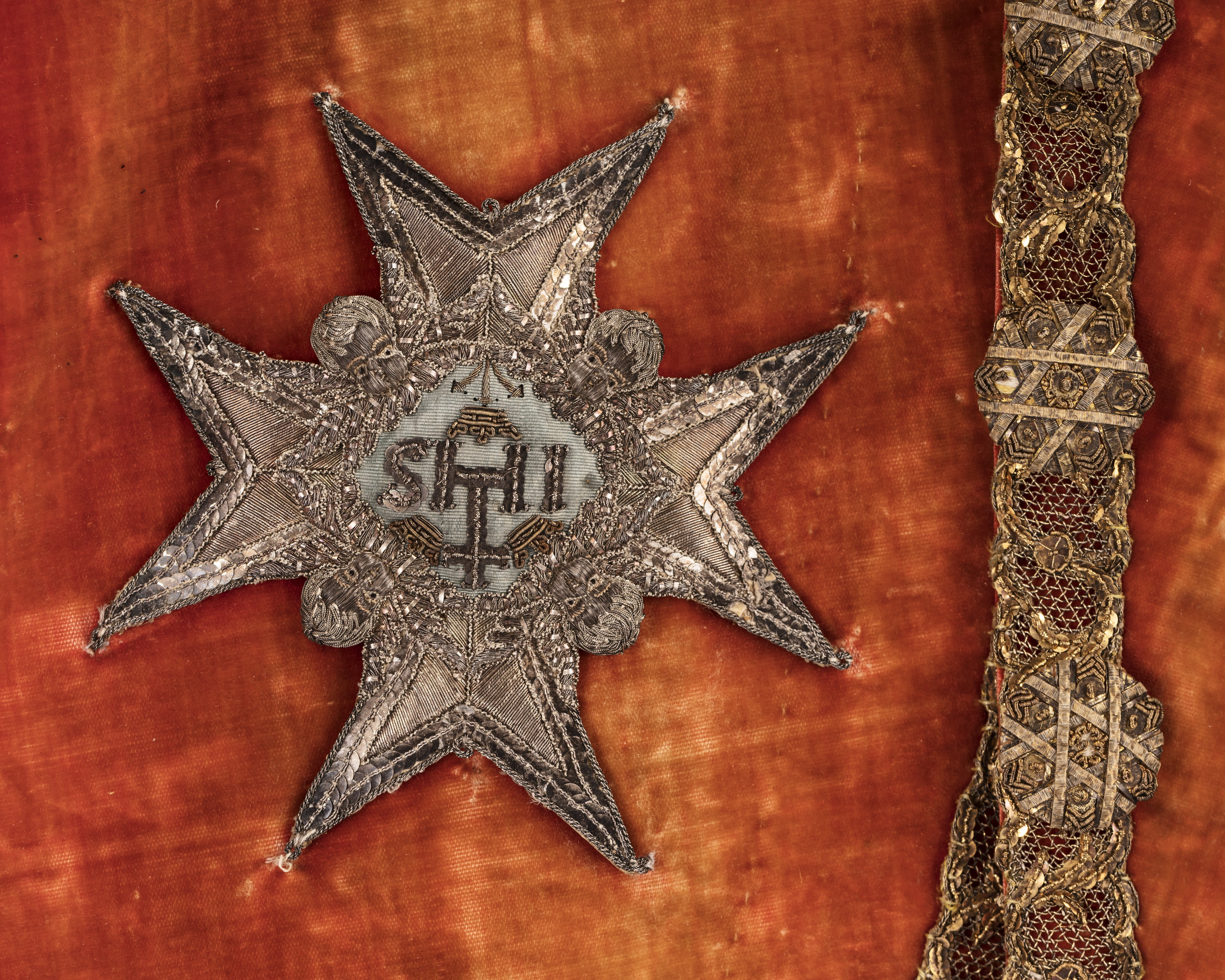 Serafimerordens kraschan sittande på Adolf Fredriks ordensrock, 1750-tal.
