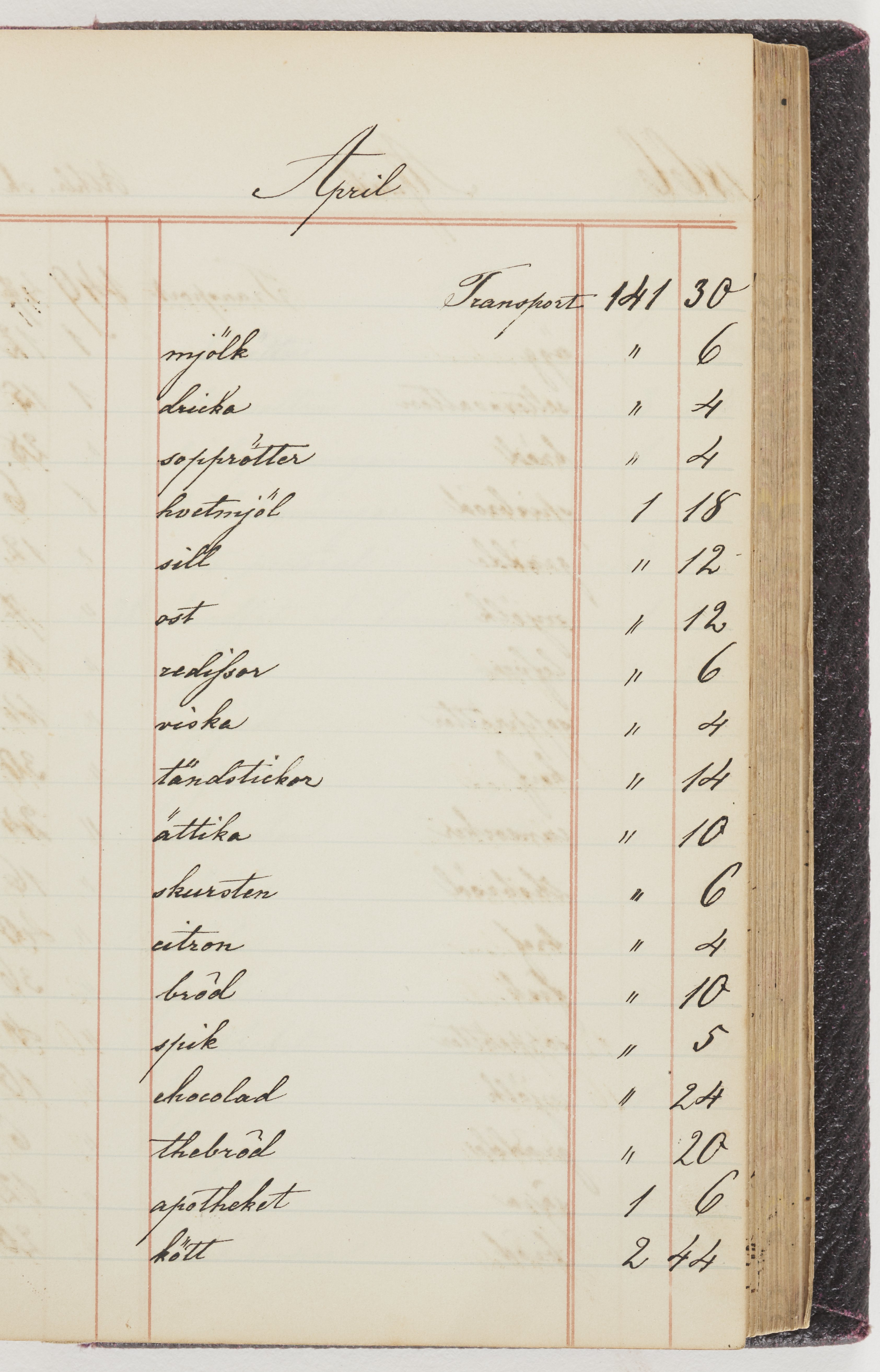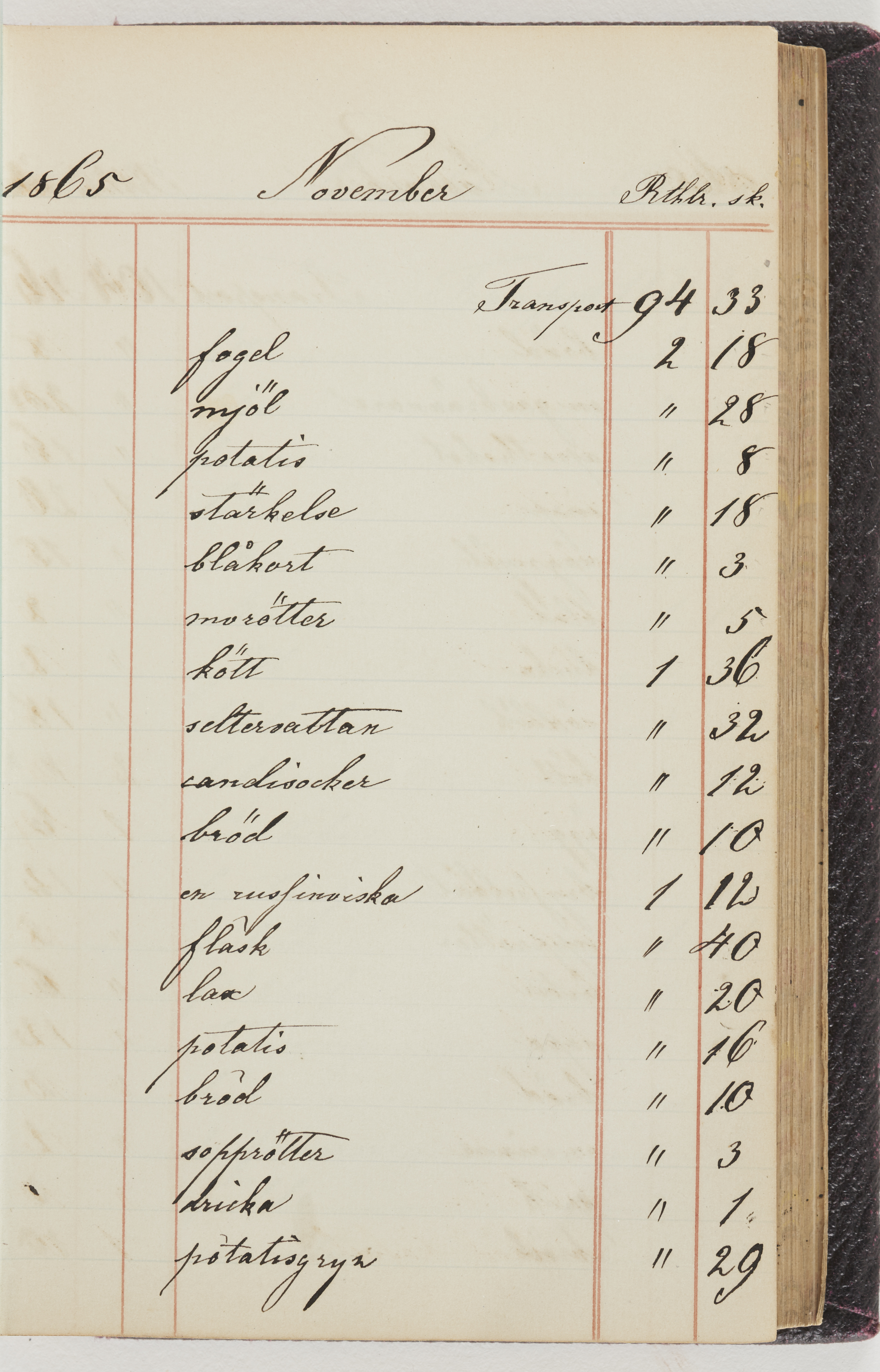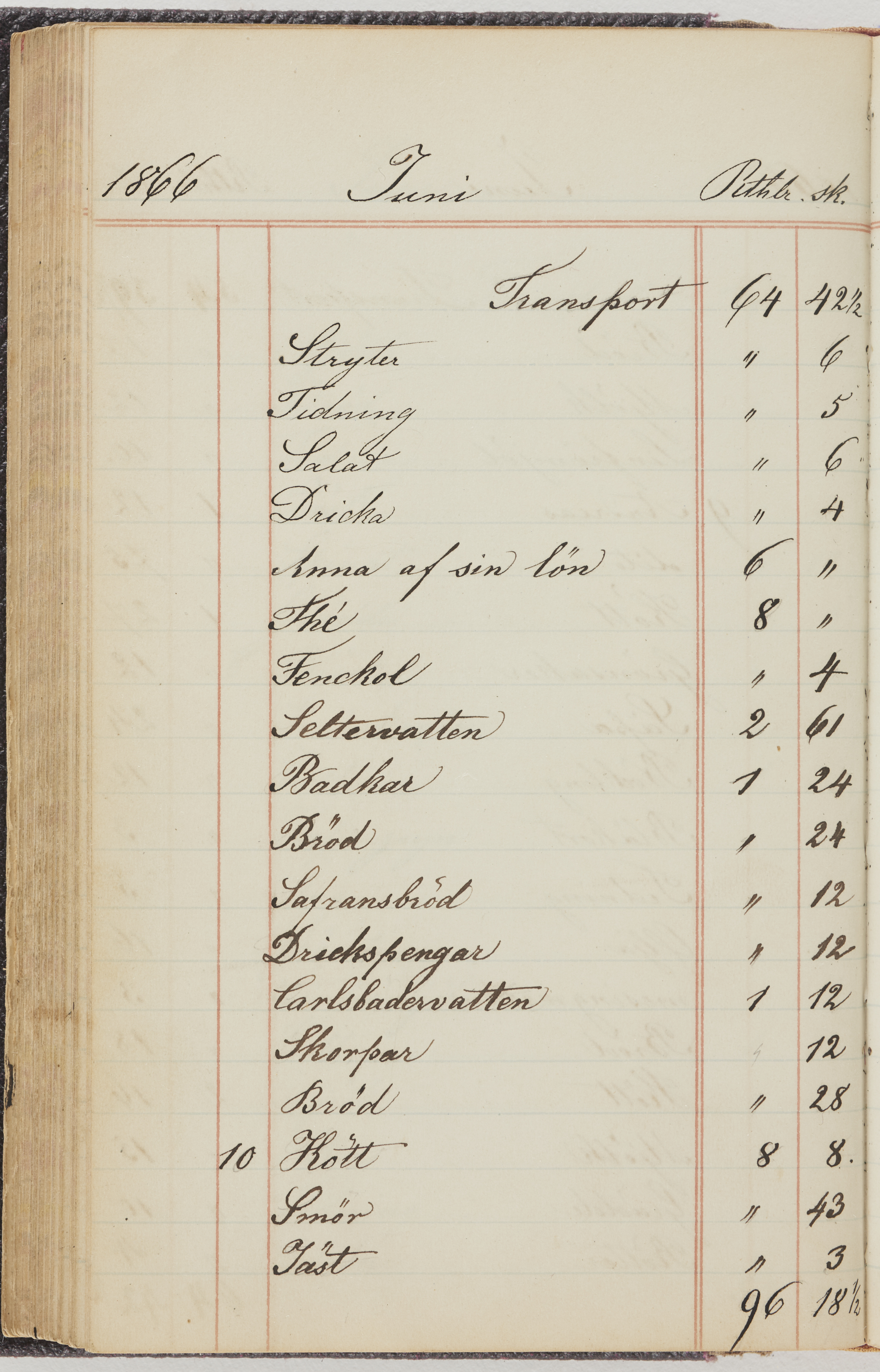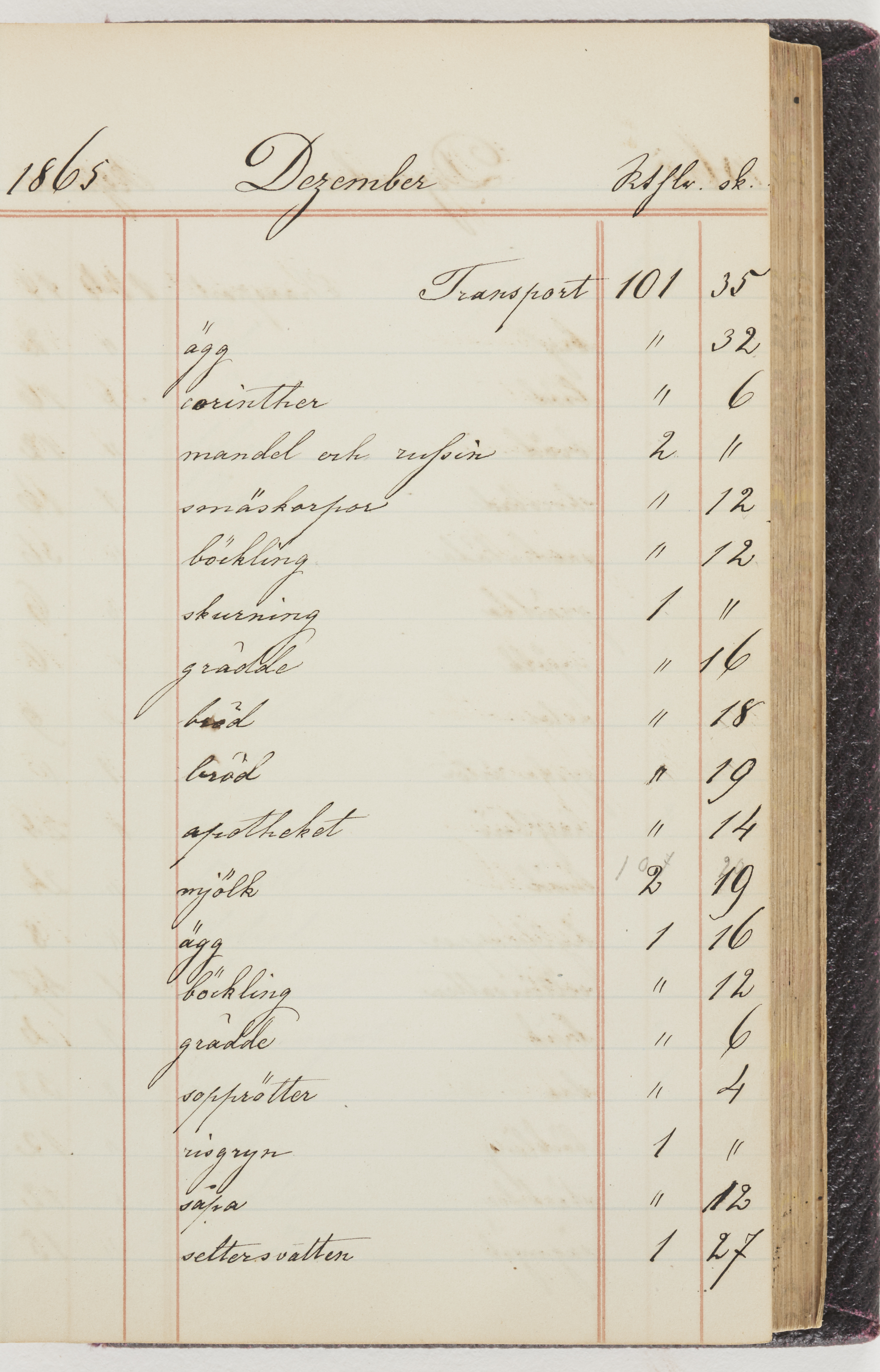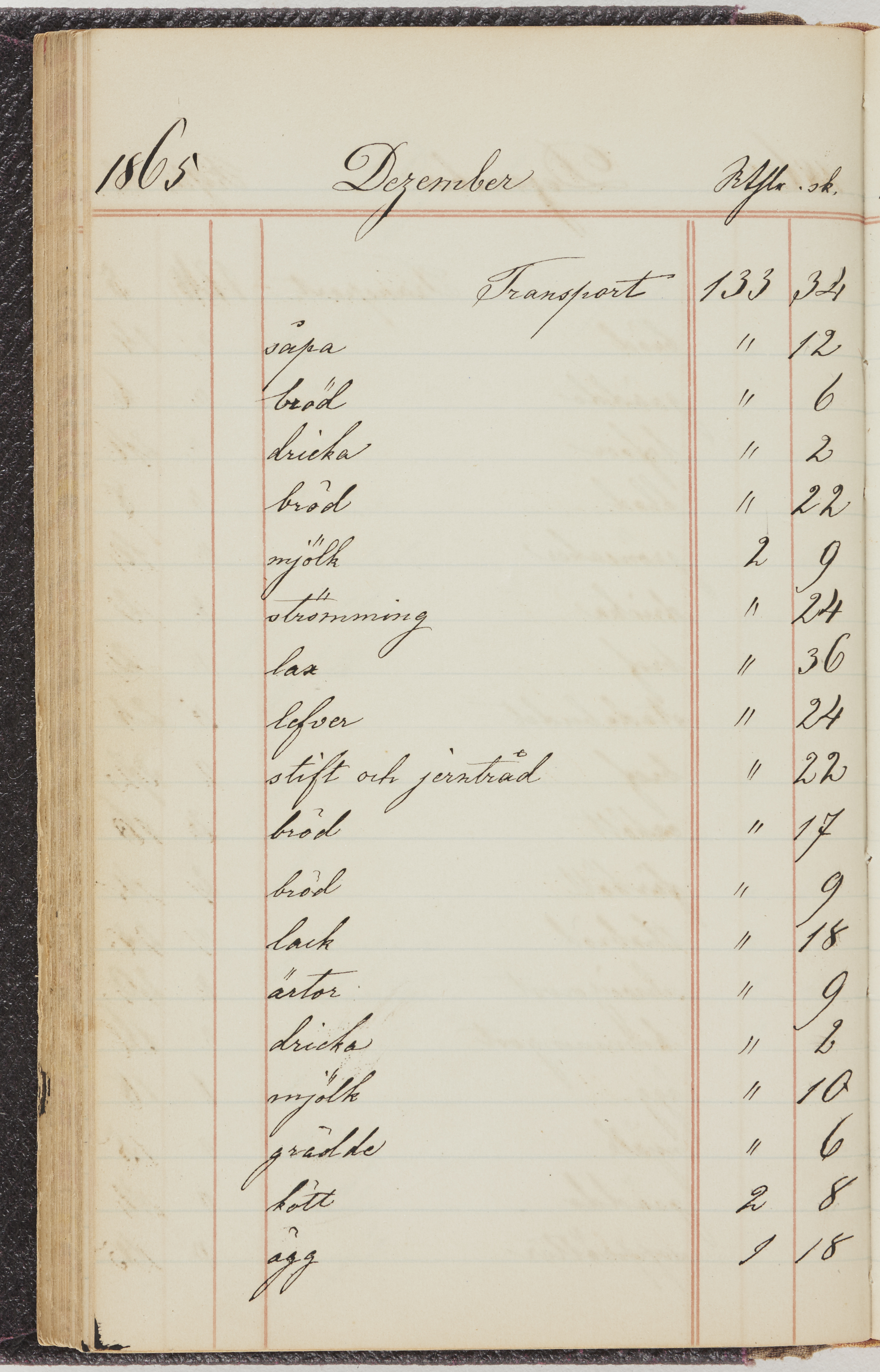 Hushållsbok. 10 vol. inb. 8:0. 1865-1872. 372 s. 1872. 134 s. 1886-1890. 582 s. 1891-1896. 572 s. 1897-1903. 610 s. 1904-1910. 606 s. 1911-1917. 612 s. 1918-1923. 586 s. 1924-1929. 608 s. 1930. 608 s. Skrivna av W. v. H. f. K. Vol. 4-8. Helt band av brunt (vol. 4 och 5) och svart (vol. 6-8) pressad klot. Linjeramar i blindtryck på pärmarna. Kapitel av gult skinn i vol. 4, av tyg i vol. 5-8. Marmorerad snitt. Försättsblad av blårutigt papper i vol. 4, av vitt papper i vol. 5, av brun olifant i vol. 6 och 7, av grå olifant i vol. 8. Vol. 9-13. Helt band av mörkblå klot, bundet med dubbel ansättning och knäpprygg. Kapitel av gult skinn. Marmorerad snitt. Försättsblad av belgisk marmor. i vol. 9, av ljusblått marmorellapapper i de övriga volymerna. Nedtill i vol. 10 och 13 Gust. Hedberges frimamärke i blått.