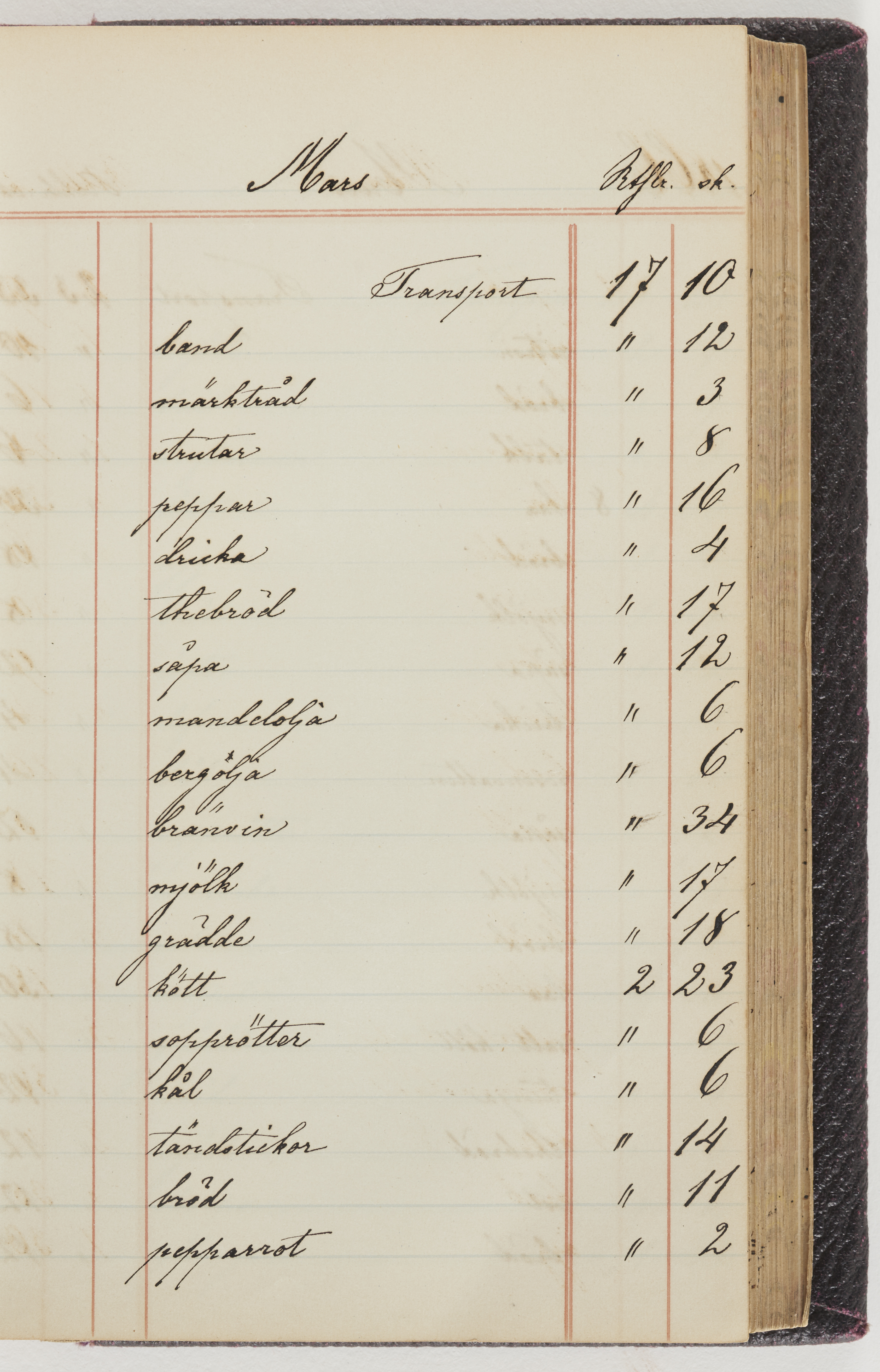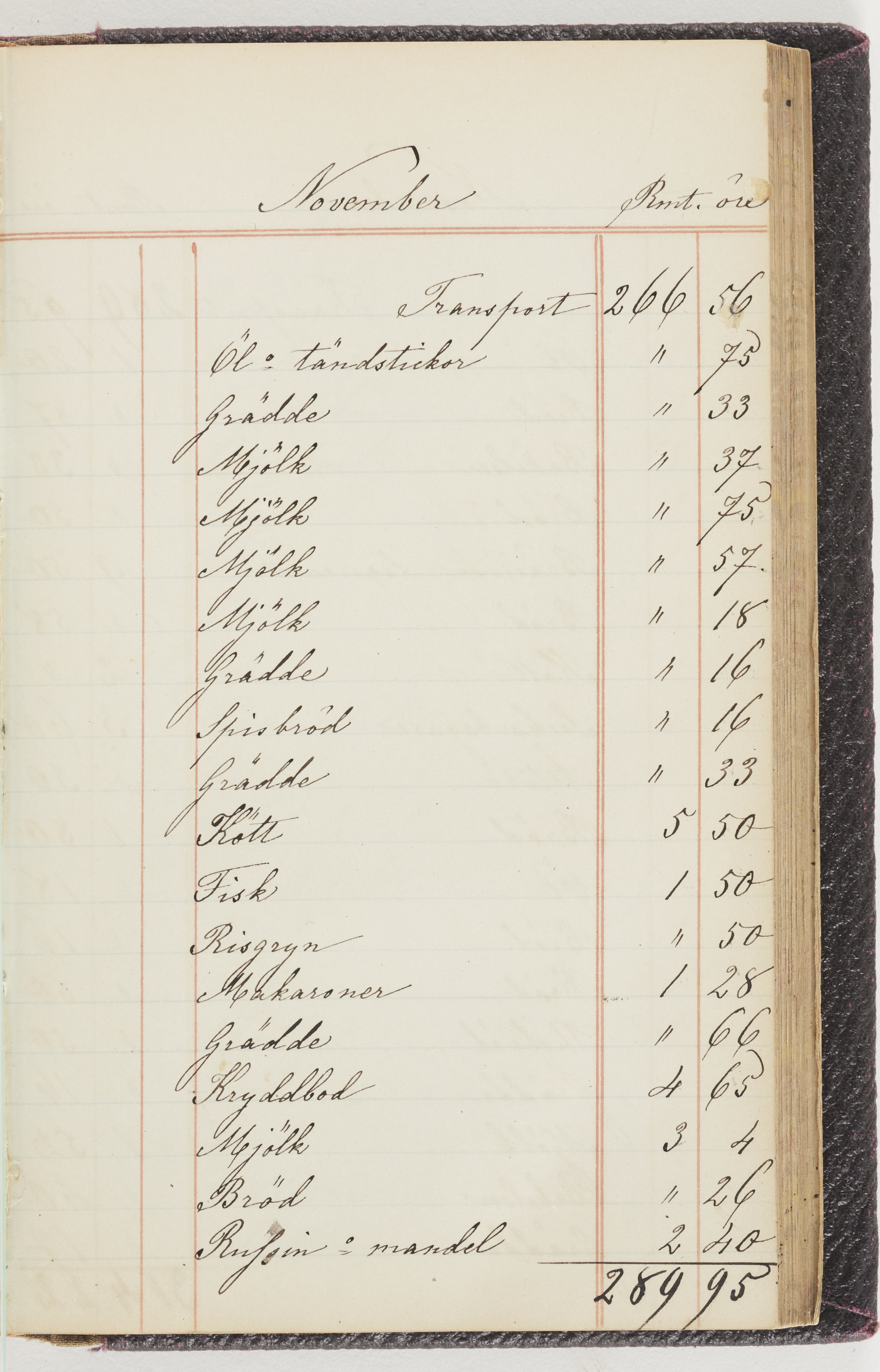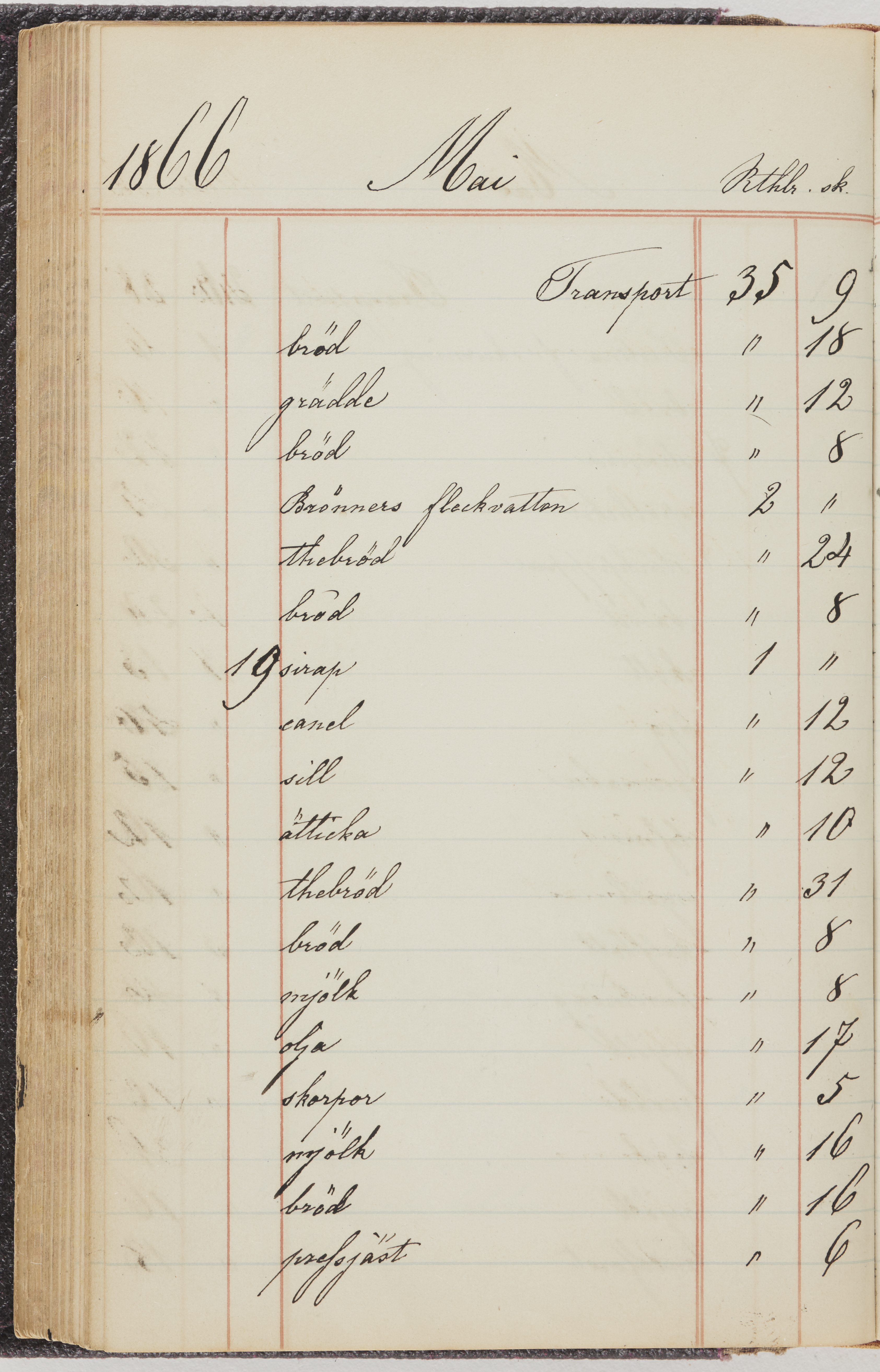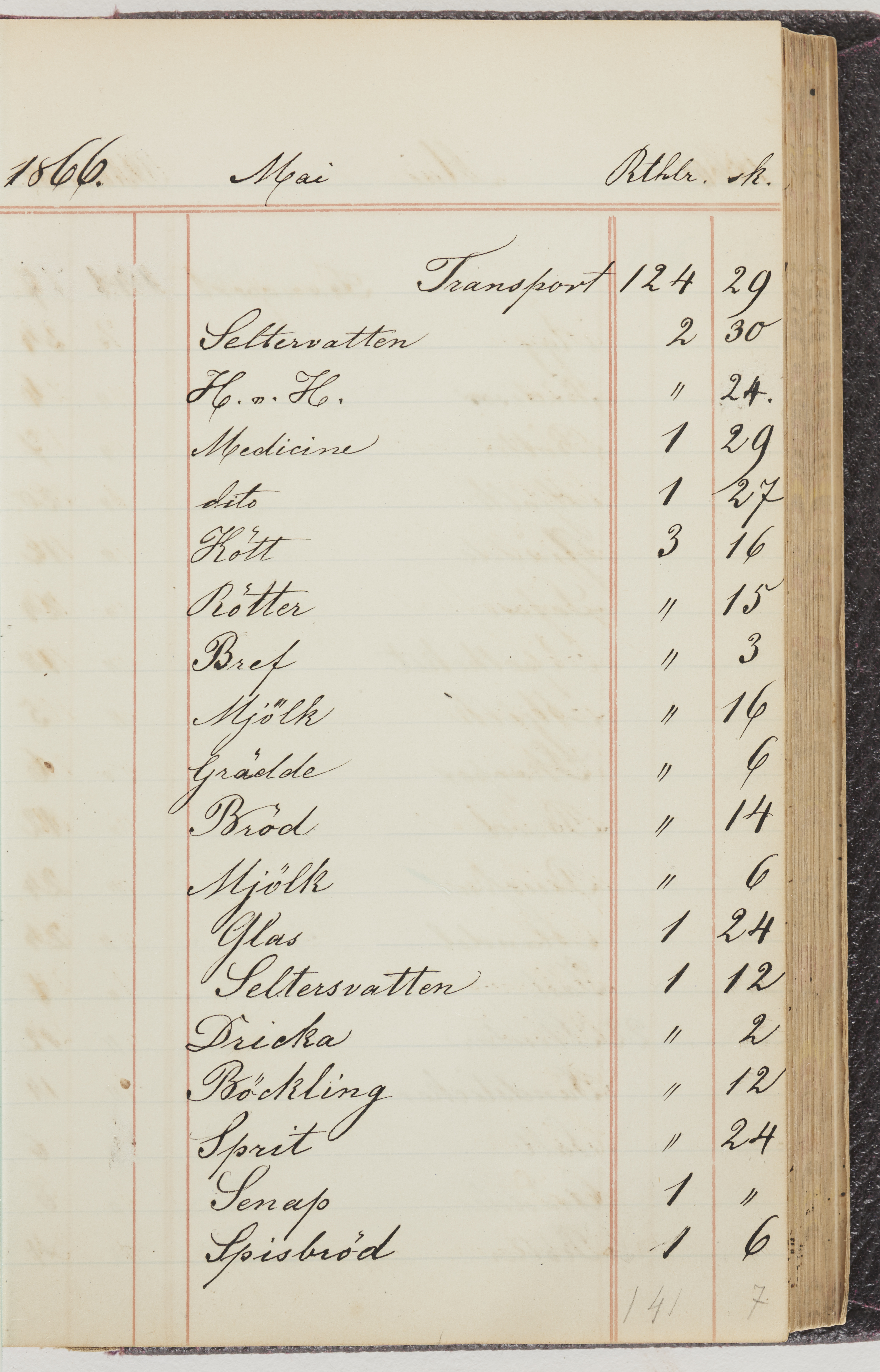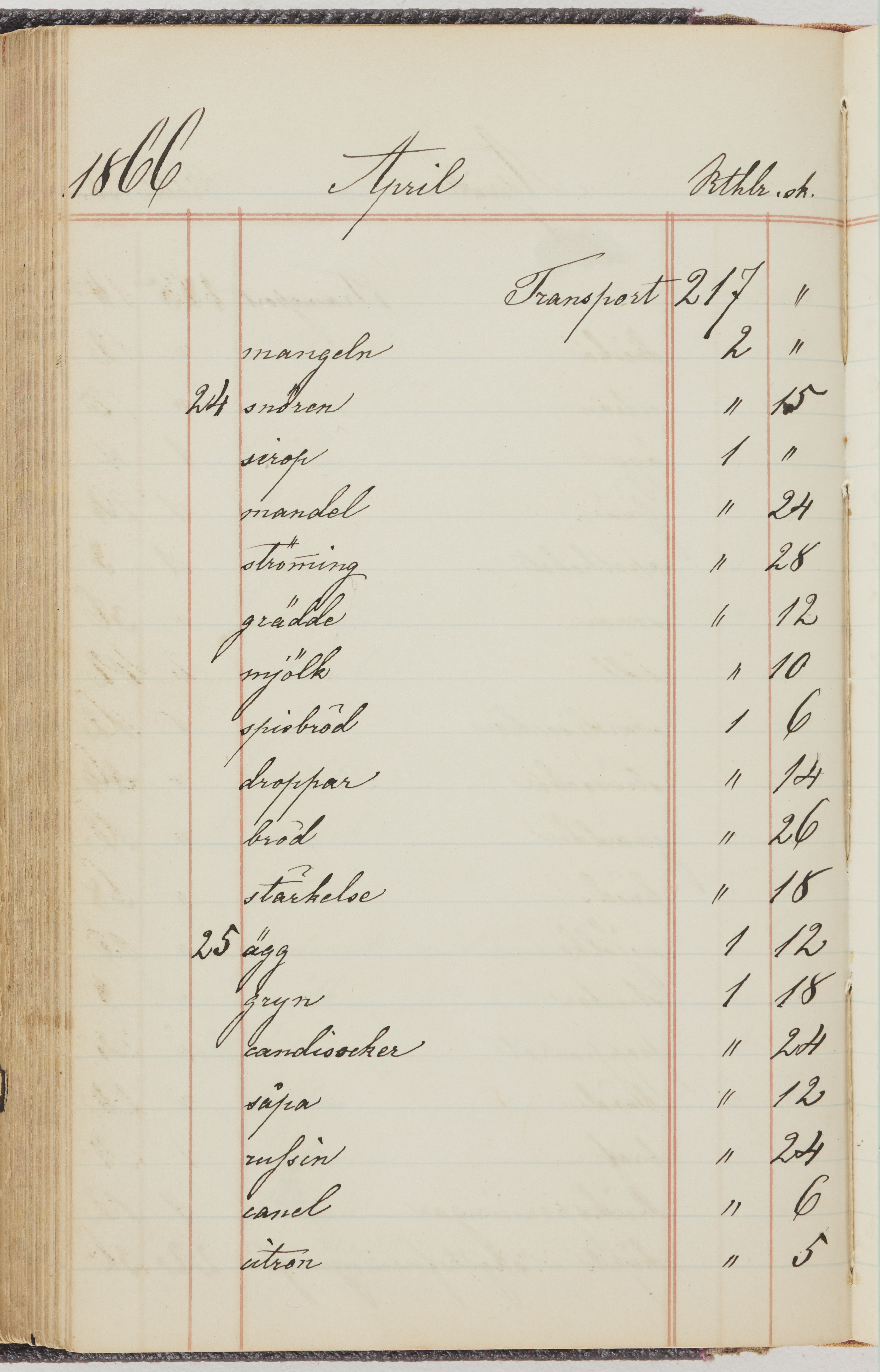 Hushållsbok. 10 vol. inb. 8:0. 1865-1872. 372 s. 1872. 134 s. 1886-1890. 582 s. 1891-1896. 572 s. 1897-1903. 610 s. 1904-1910. 606 s. 1911-1917. 612 s. 1918-1923. 586 s. 1924-1929. 608 s. 1930. 608 s. Skrivna av W. v. H. f. K. Vol. 4-8. Helt band av brunt (vol. 4 och 5) och svart (vol. 6-8) pressad klot. Linjeramar i blindtryck på pärmarna. Kapitel av gult skinn i vol. 4, av tyg i vol. 5-8. Marmorerad snitt. Försättsblad av blårutigt papper i vol. 4, av vitt papper i vol. 5, av brun olifant i vol. 6 och 7, av grå olifant i vol. 8. Vol. 9-13. Helt band av mörkblå klot, bundet med dubbel ansättning och knäpprygg. Kapitel av gult skinn. Marmorerad snitt. Försättsblad av belgisk marmor. i vol. 9, av ljusblått marmorellapapper i de övriga volymerna. Nedtill i vol. 10 och 13 Gust. Hedberges frimamärke i blått.