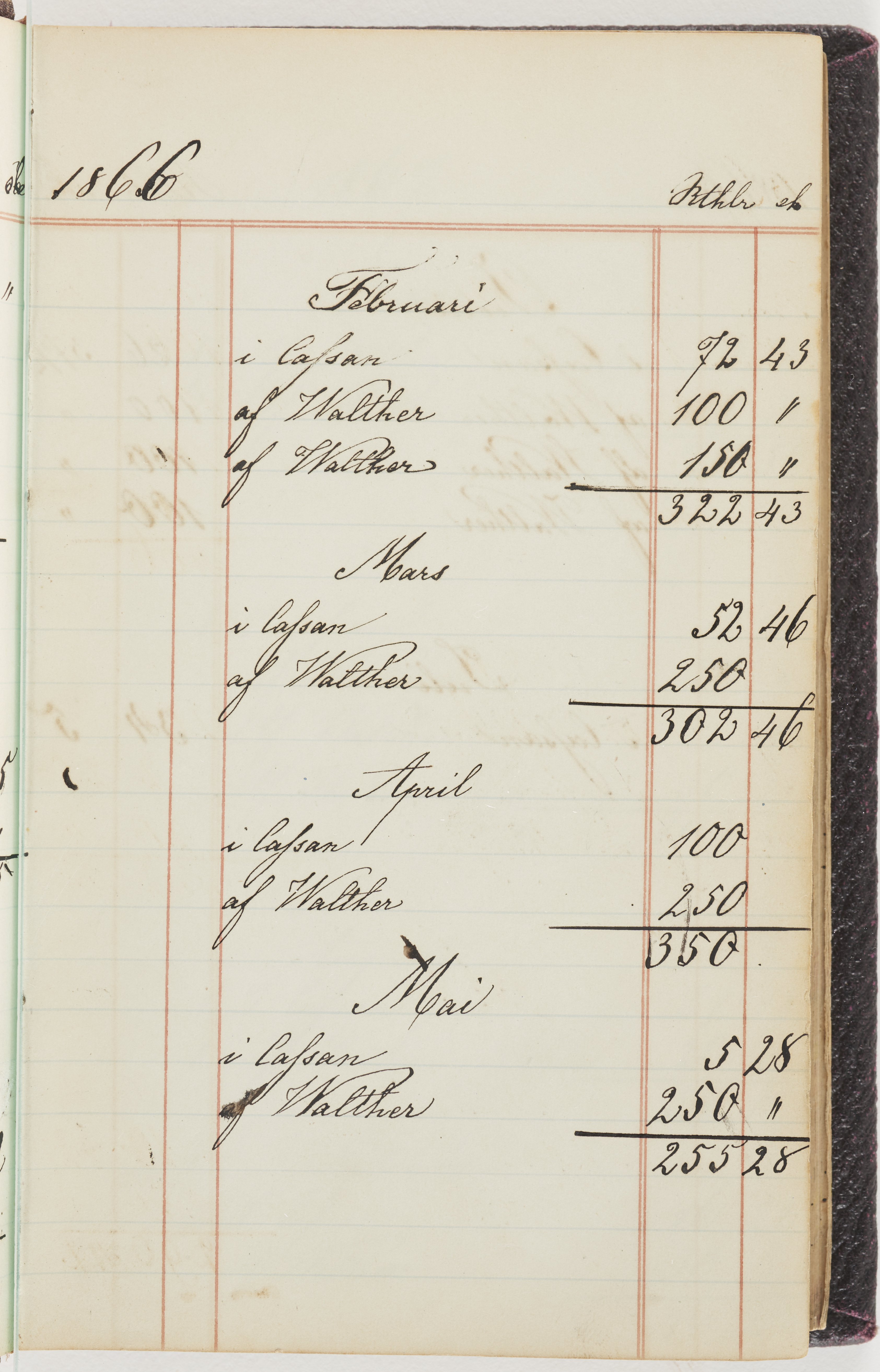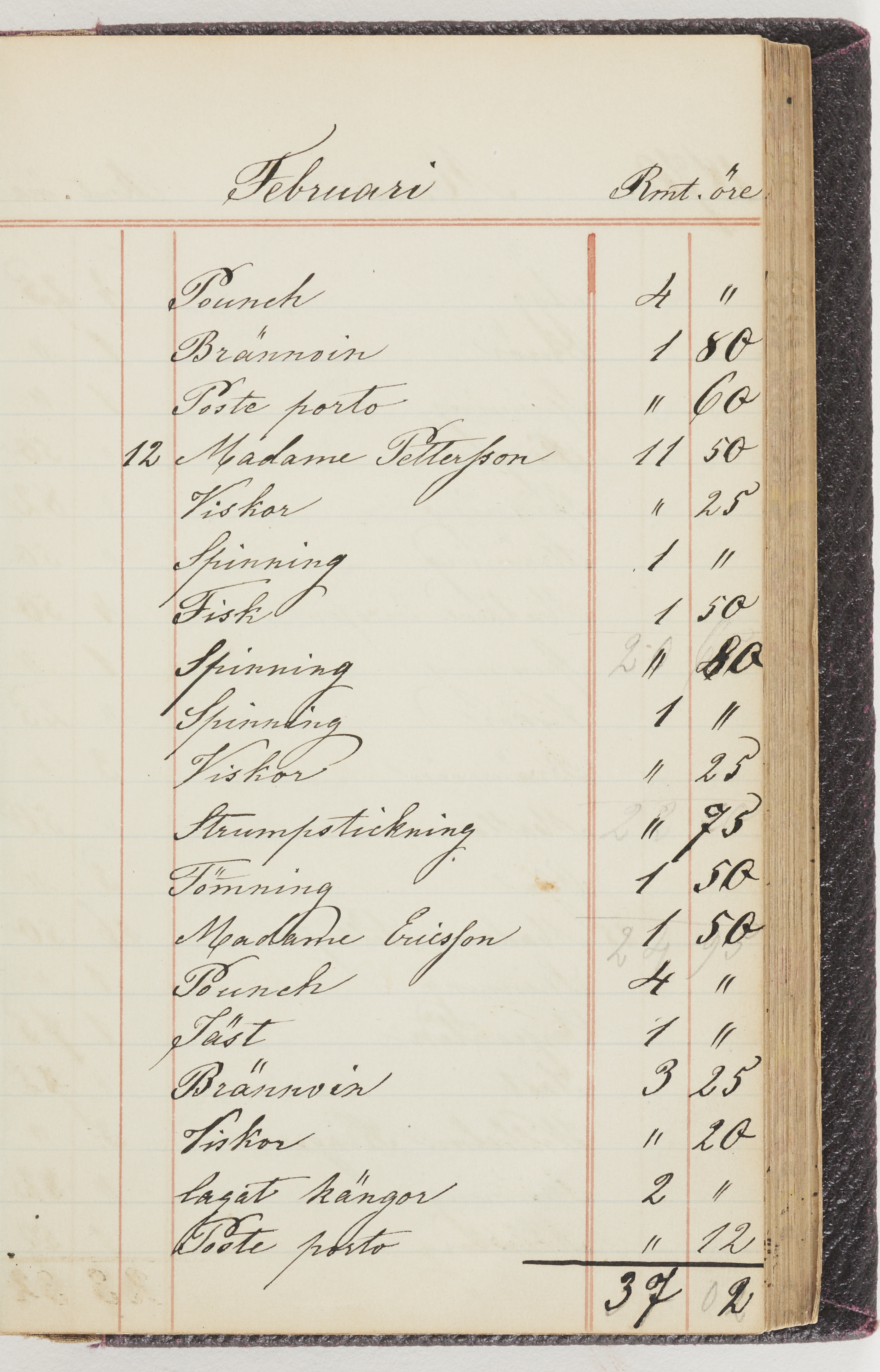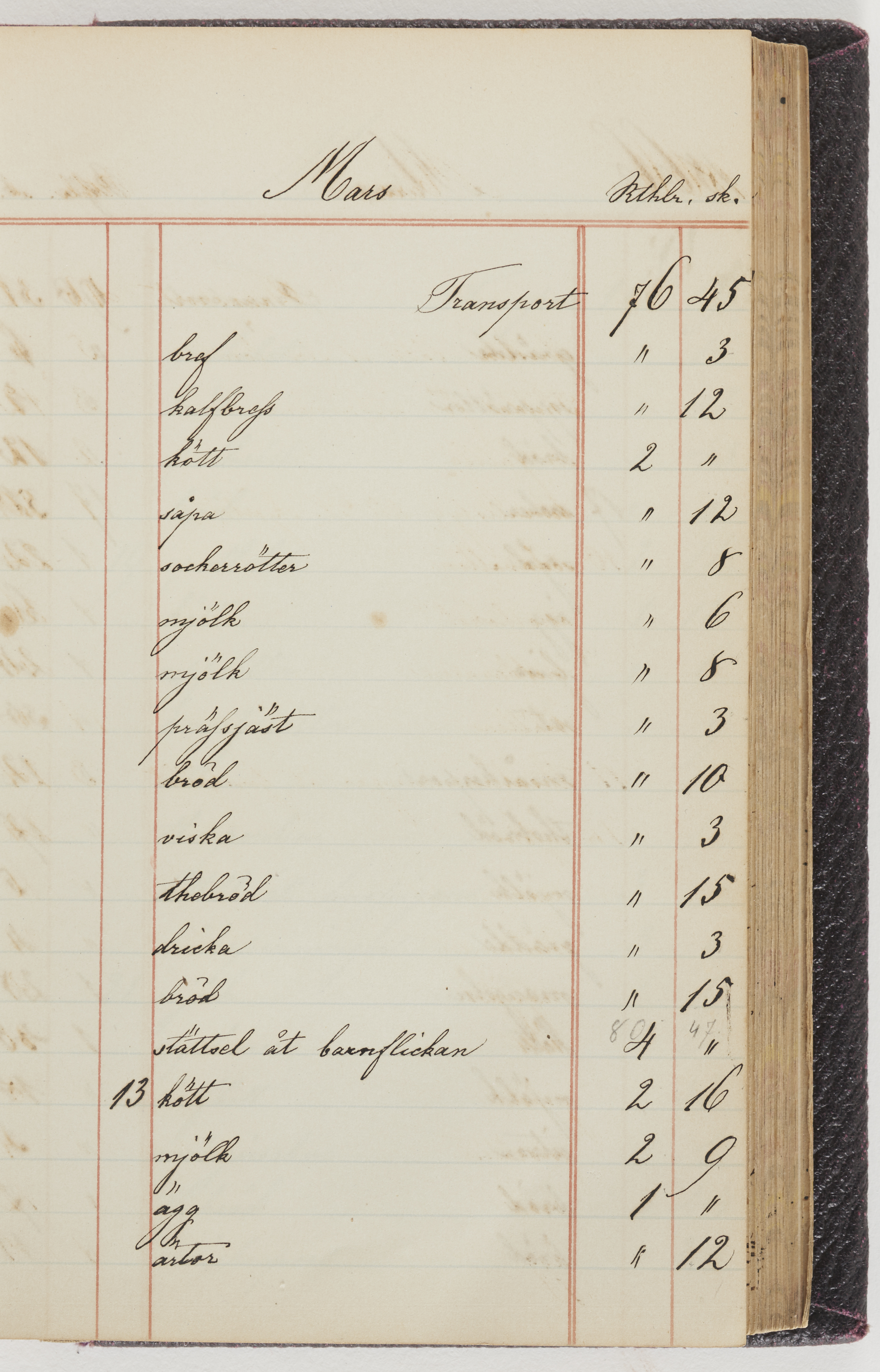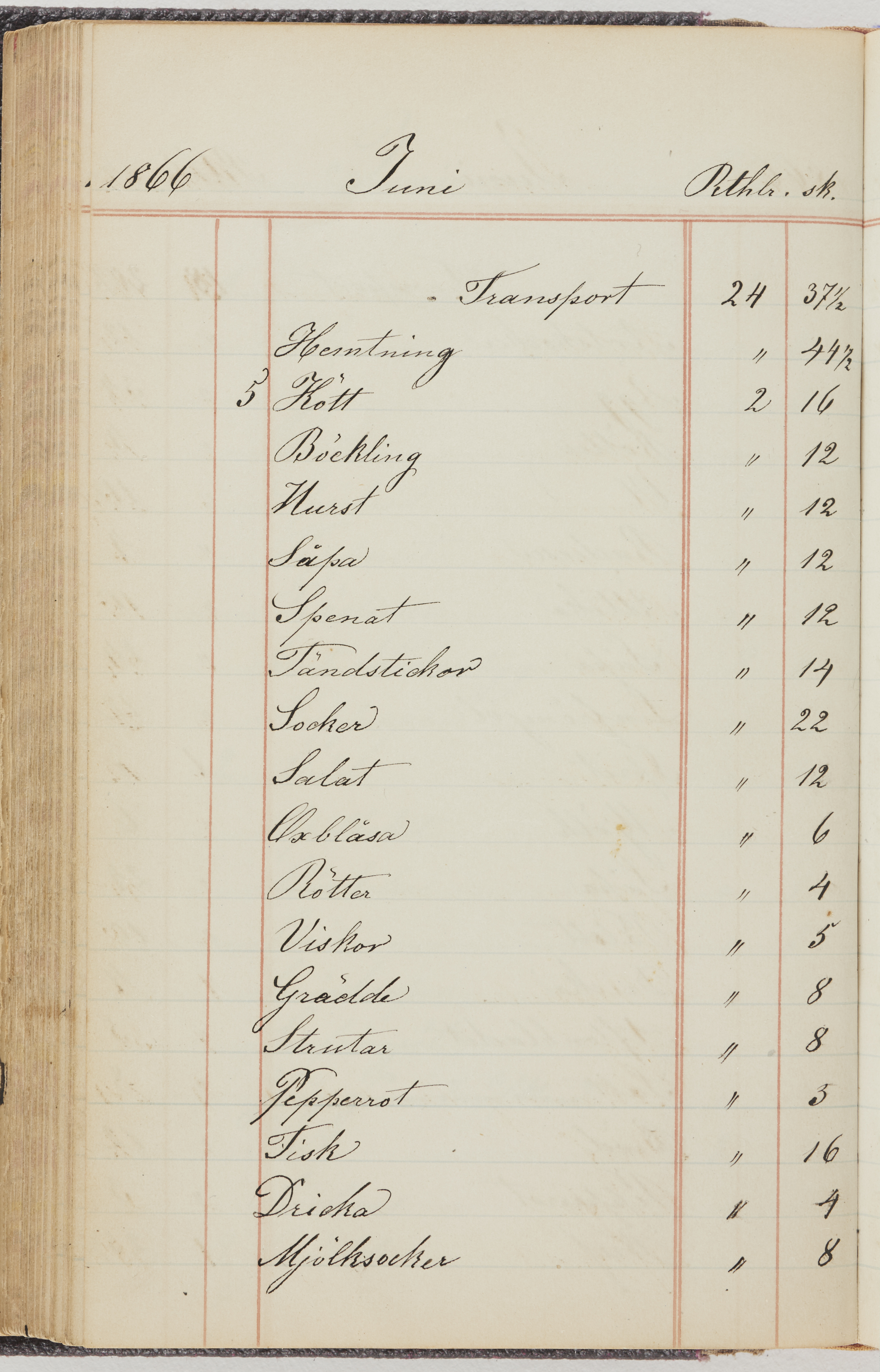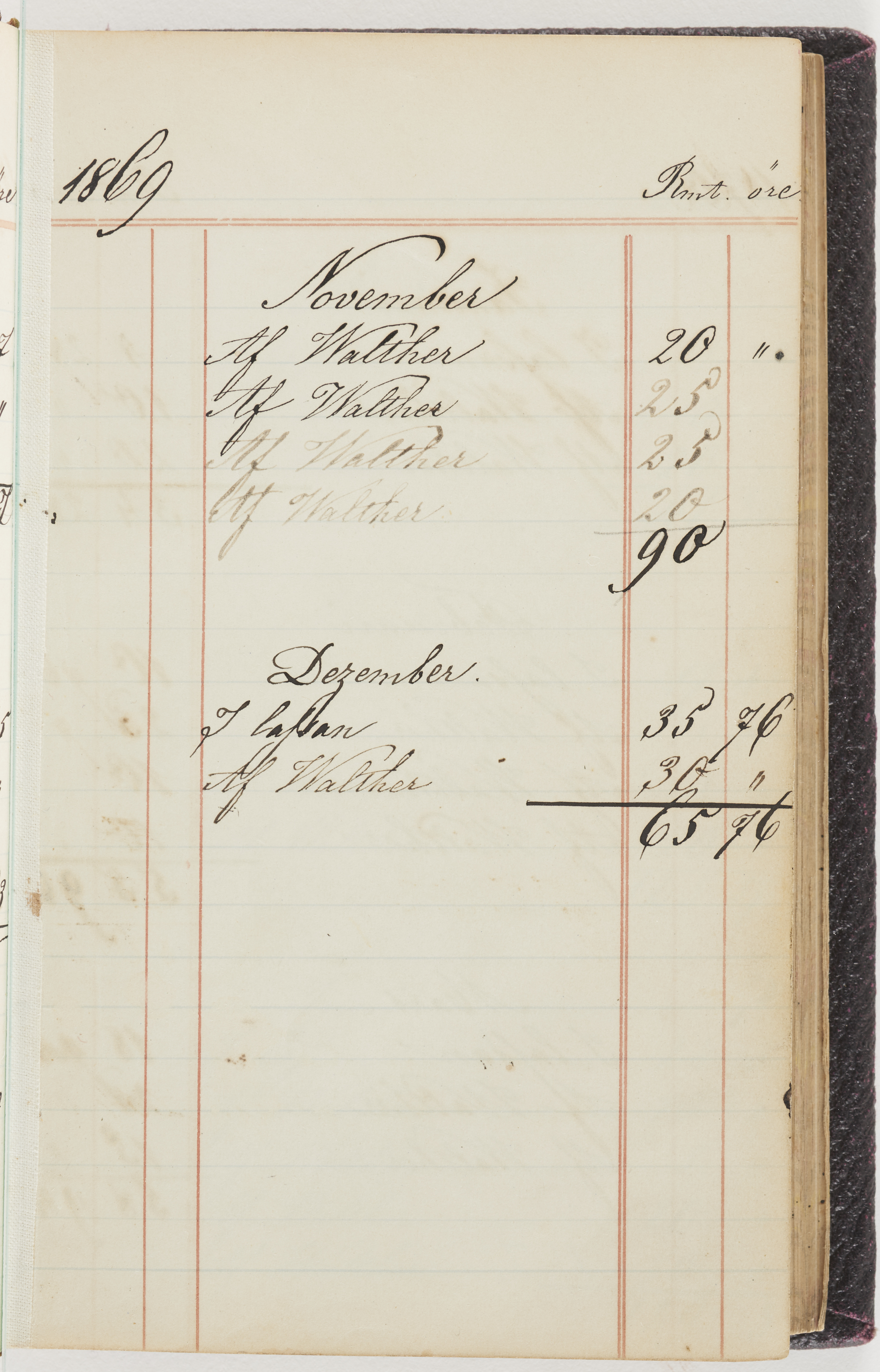 Hushållsbok. 10 vol. inb. 8:0. 1865-1872. 372 s. 1872. 134 s. 1886-1890. 582 s. 1891-1896. 572 s. 1897-1903. 610 s. 1904-1910. 606 s. 1911-1917. 612 s. 1918-1923. 586 s. 1924-1929. 608 s. 1930. 608 s. Skrivna av W. v. H. f. K. Vol. 4-8. Helt band av brunt (vol. 4 och 5) och svart (vol. 6-8) pressad klot. Linjeramar i blindtryck på pärmarna. Kapitel av gult skinn i vol. 4, av tyg i vol. 5-8. Marmorerad snitt. Försättsblad av blårutigt papper i vol. 4, av vitt papper i vol. 5, av brun olifant i vol. 6 och 7, av grå olifant i vol. 8. Vol. 9-13. Helt band av mörkblå klot, bundet med dubbel ansättning och knäpprygg. Kapitel av gult skinn. Marmorerad snitt. Försättsblad av belgisk marmor. i vol. 9, av ljusblått marmorellapapper i de övriga volymerna. Nedtill i vol. 10 och 13 Gust. Hedberges frimamärke i blått.