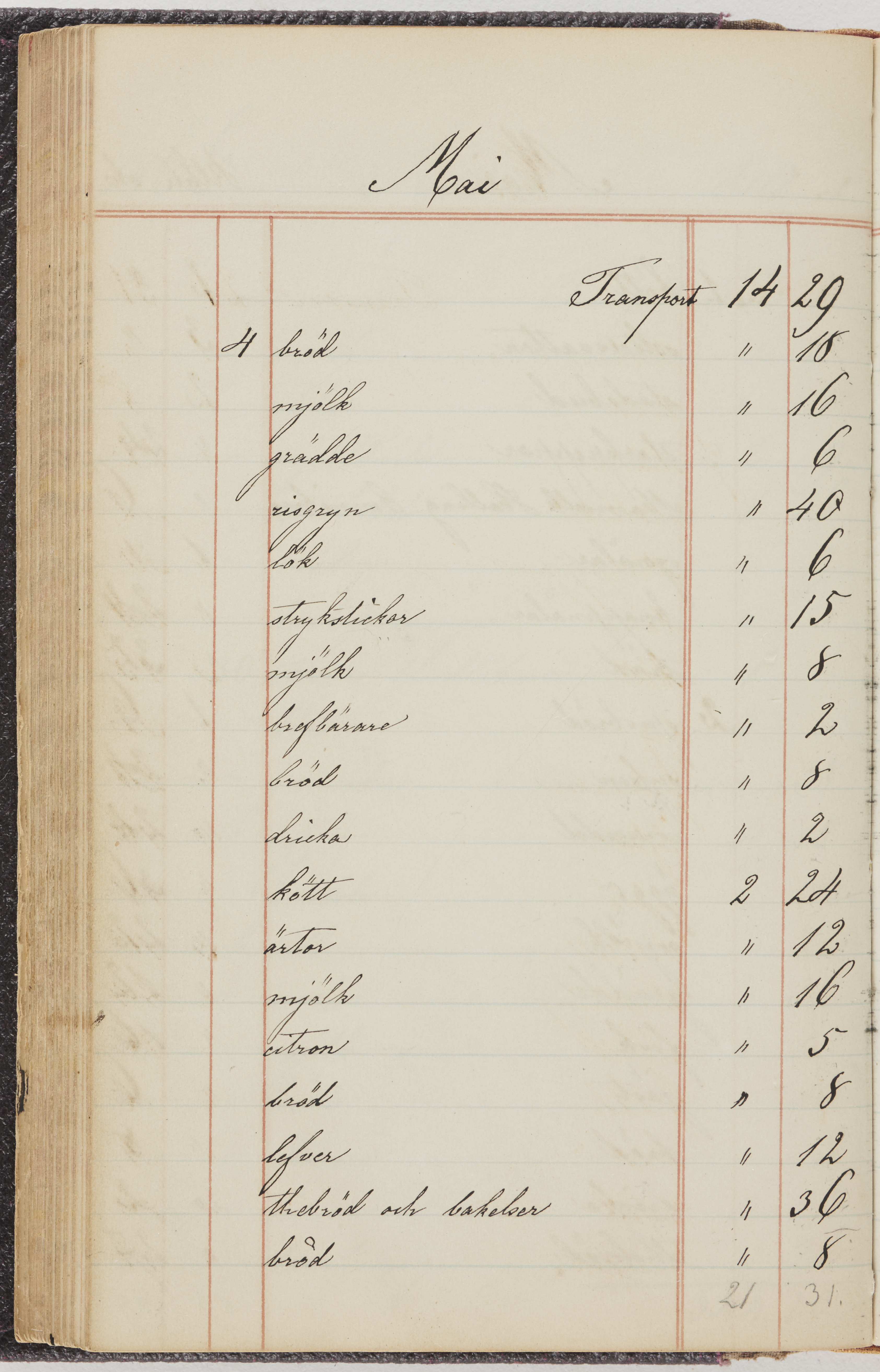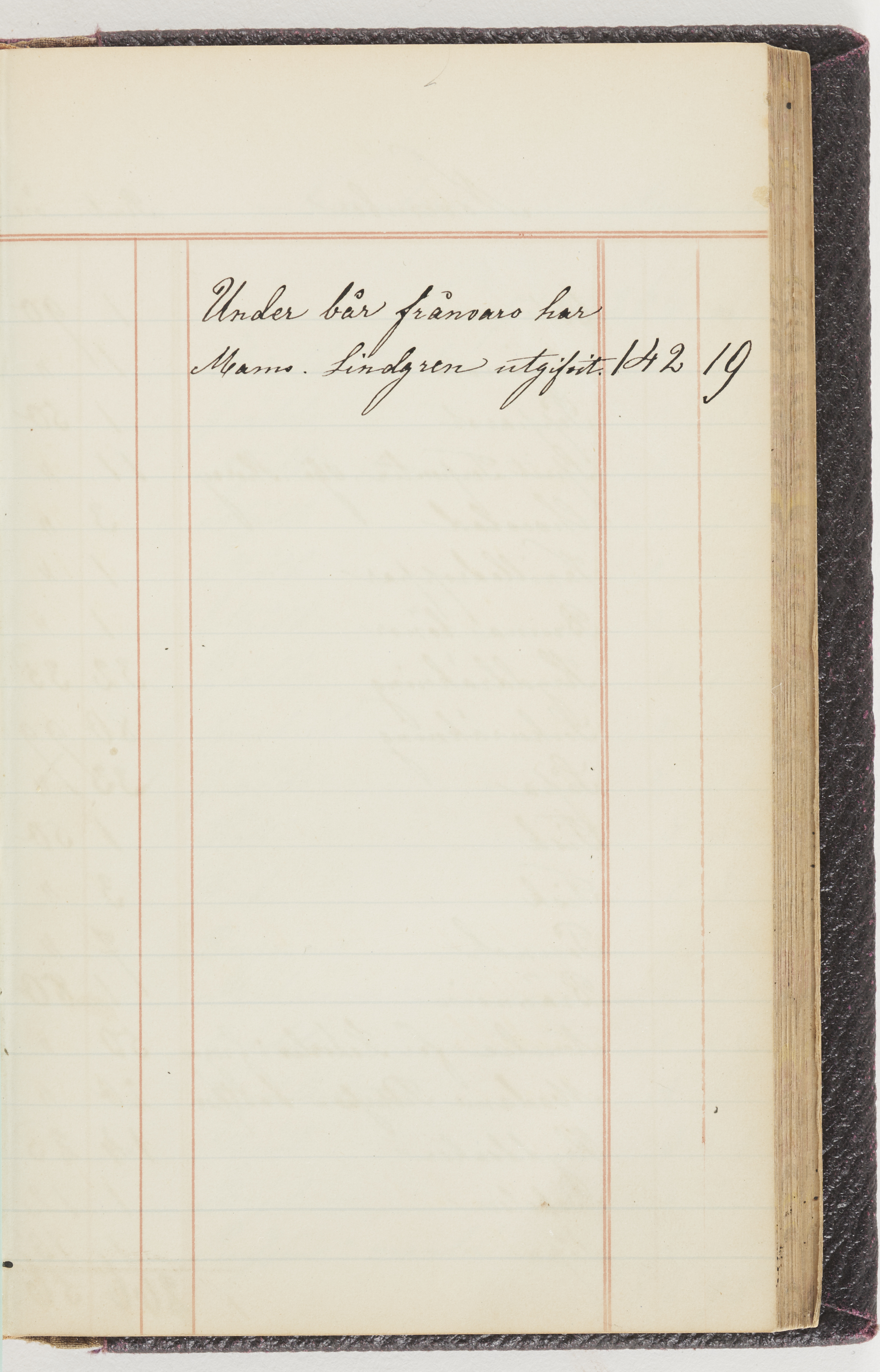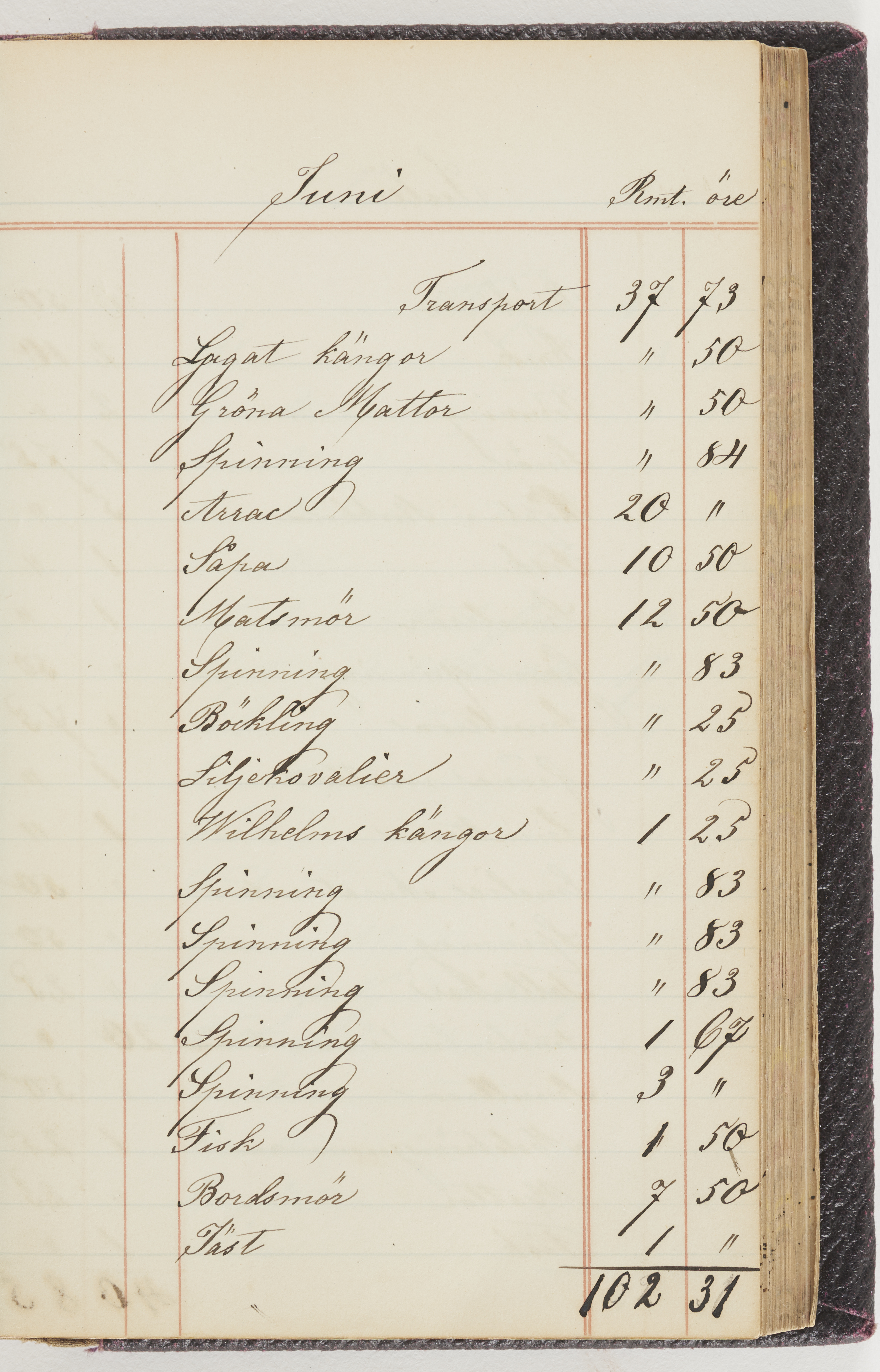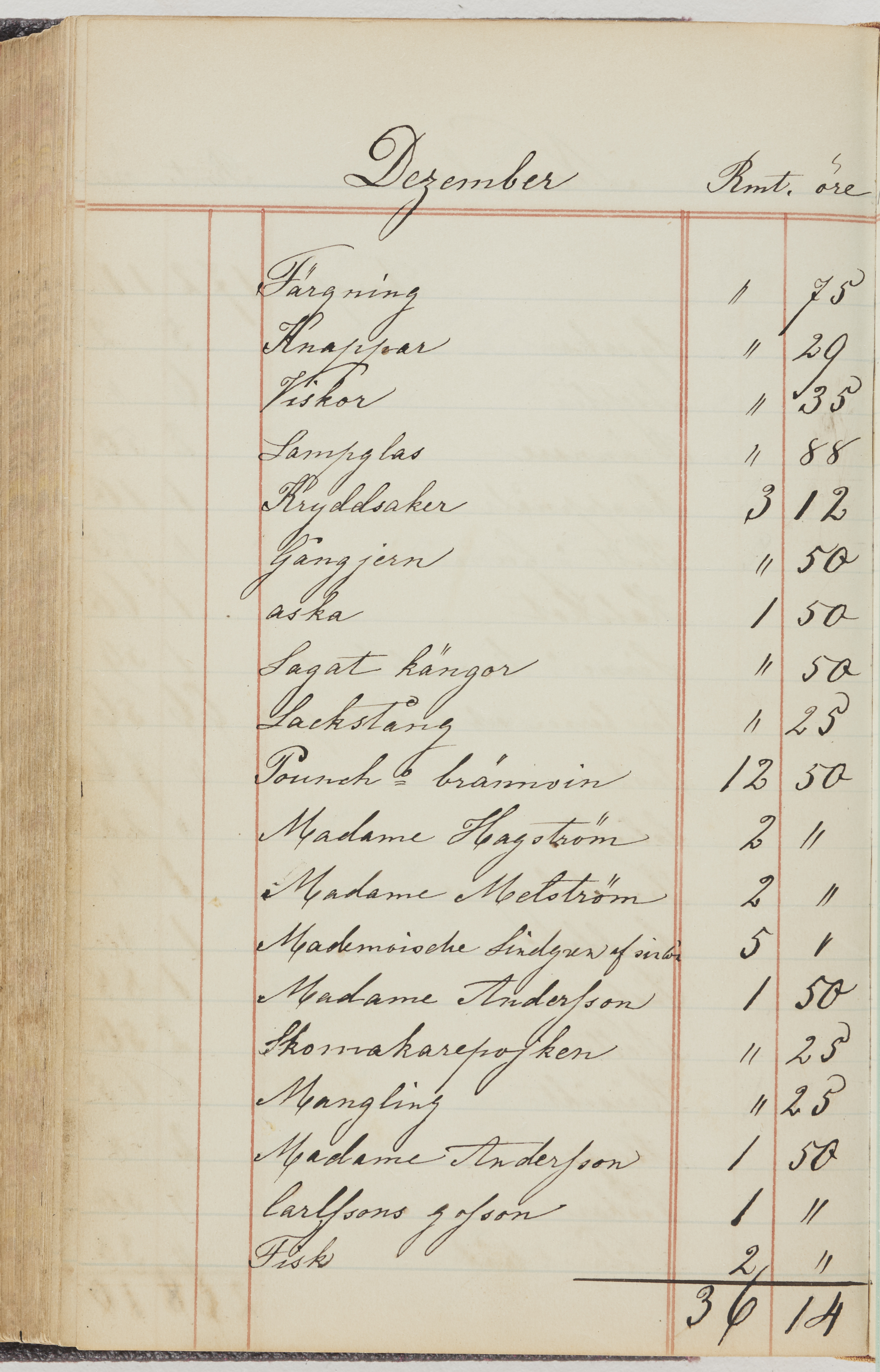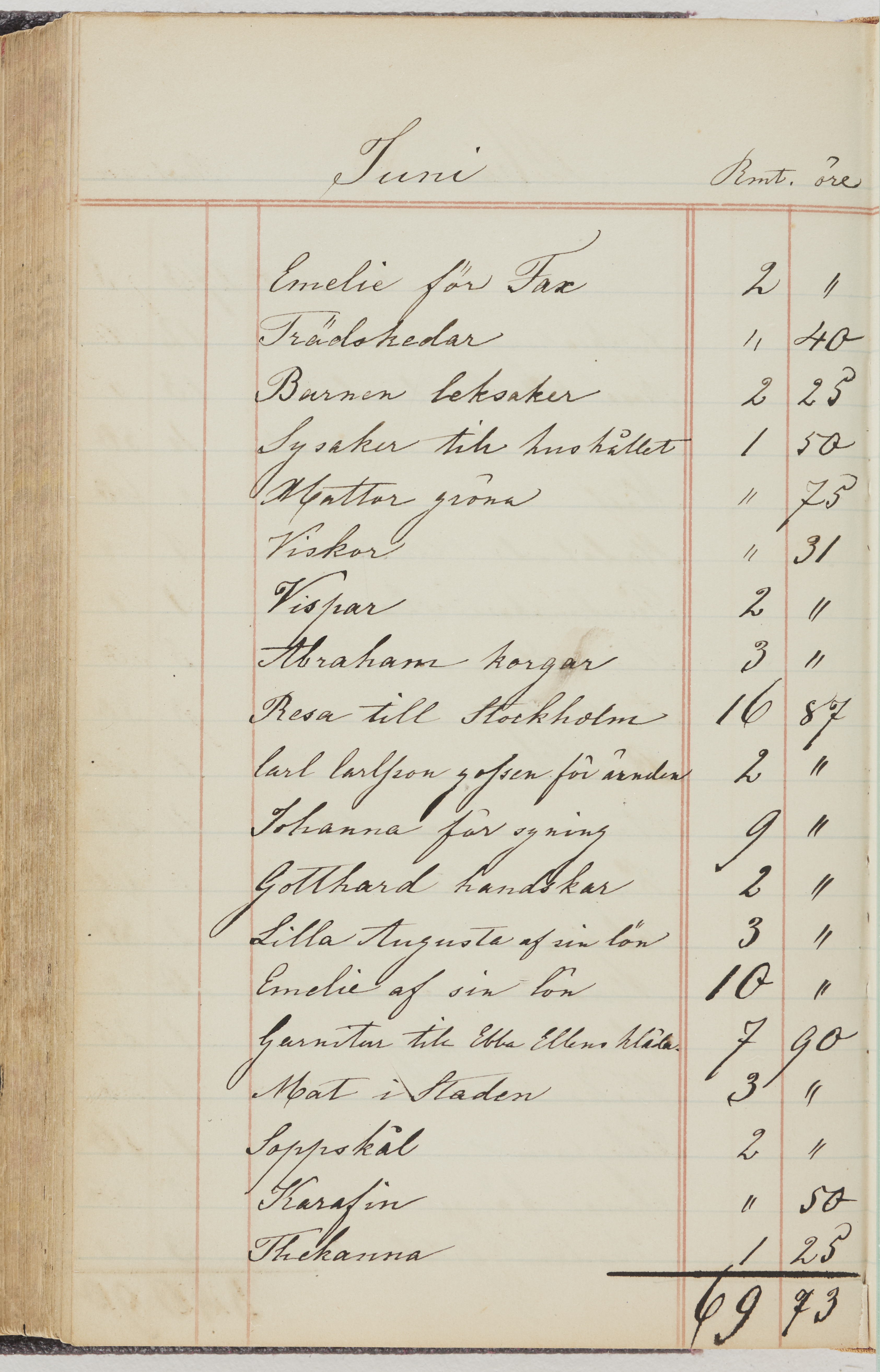 Hushållsbok. 10 vol. inb. 8:0. 1865-1872. 372 s. 1872. 134 s. 1886-1890. 582 s. 1891-1896. 572 s. 1897-1903. 610 s. 1904-1910. 606 s. 1911-1917. 612 s. 1918-1923. 586 s. 1924-1929. 608 s. 1930. 608 s. Skrivna av W. v. H. f. K. Vol. 4-8. Helt band av brunt (vol. 4 och 5) och svart (vol. 6-8) pressad klot. Linjeramar i blindtryck på pärmarna. Kapitel av gult skinn i vol. 4, av tyg i vol. 5-8. Marmorerad snitt. Försättsblad av blårutigt papper i vol. 4, av vitt papper i vol. 5, av brun olifant i vol. 6 och 7, av grå olifant i vol. 8. Vol. 9-13. Helt band av mörkblå klot, bundet med dubbel ansättning och knäpprygg. Kapitel av gult skinn. Marmorerad snitt. Försättsblad av belgisk marmor. i vol. 9, av ljusblått marmorellapapper i de övriga volymerna. Nedtill i vol. 10 och 13 Gust. Hedberges frimamärke i blått.