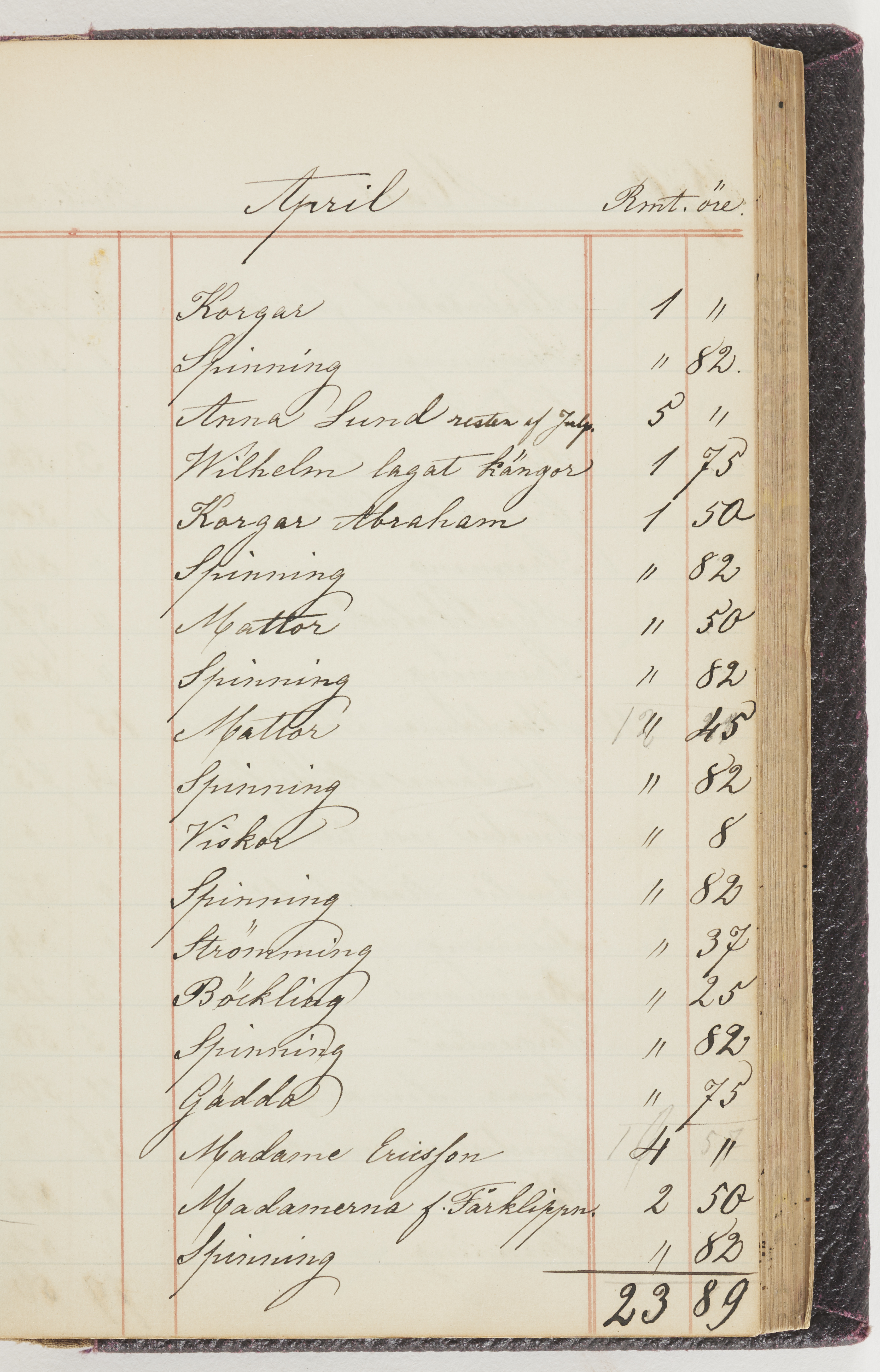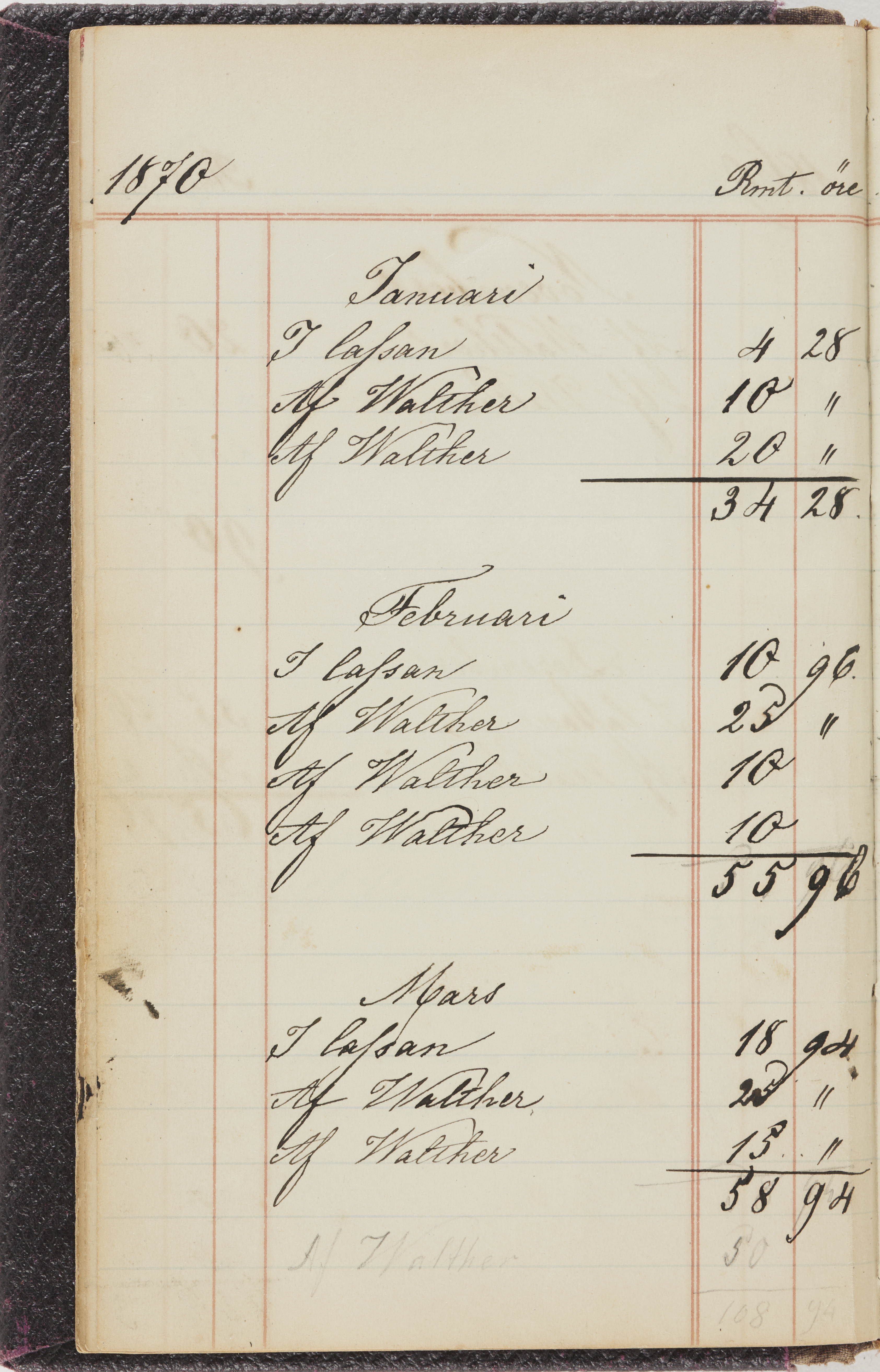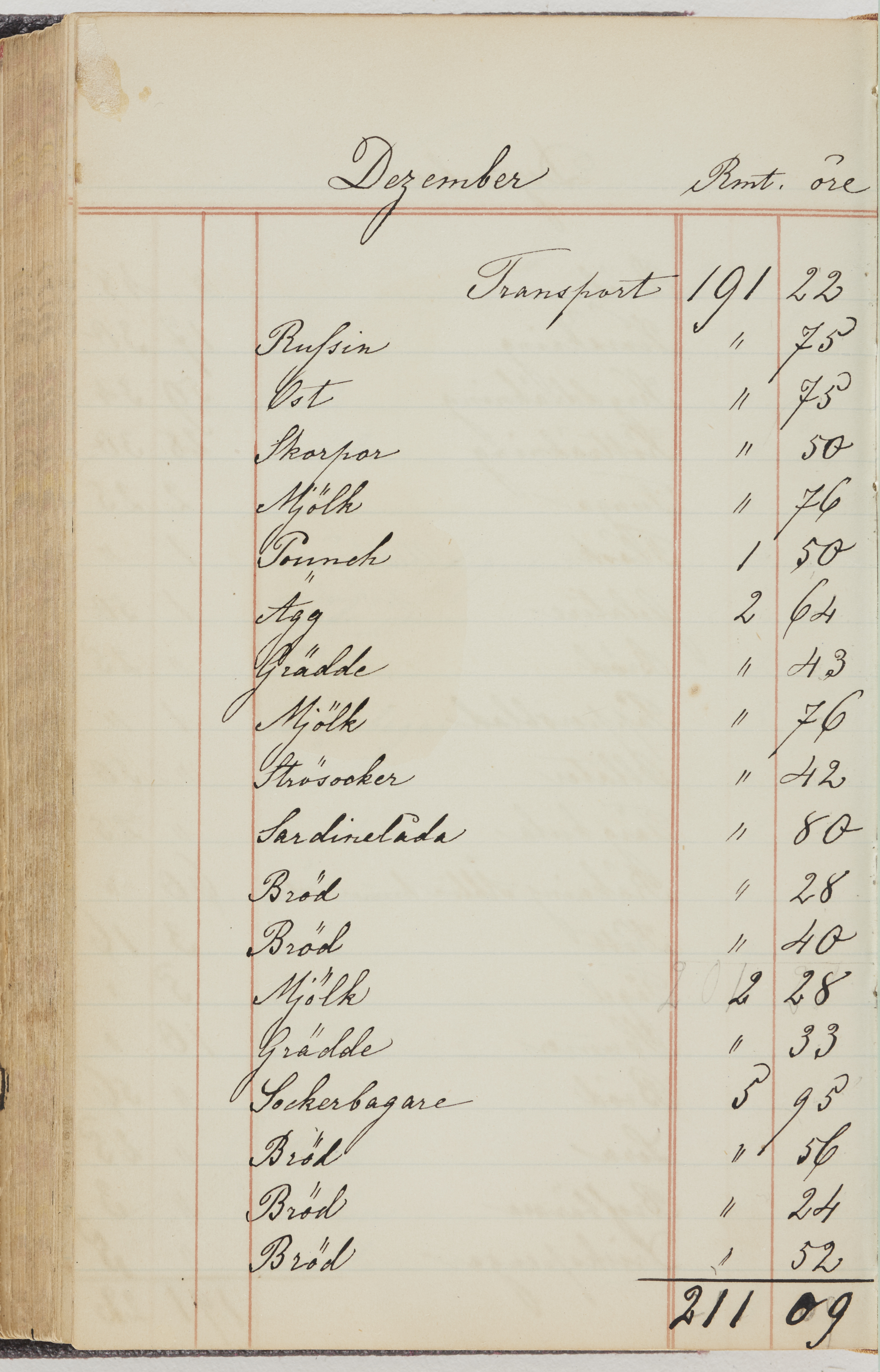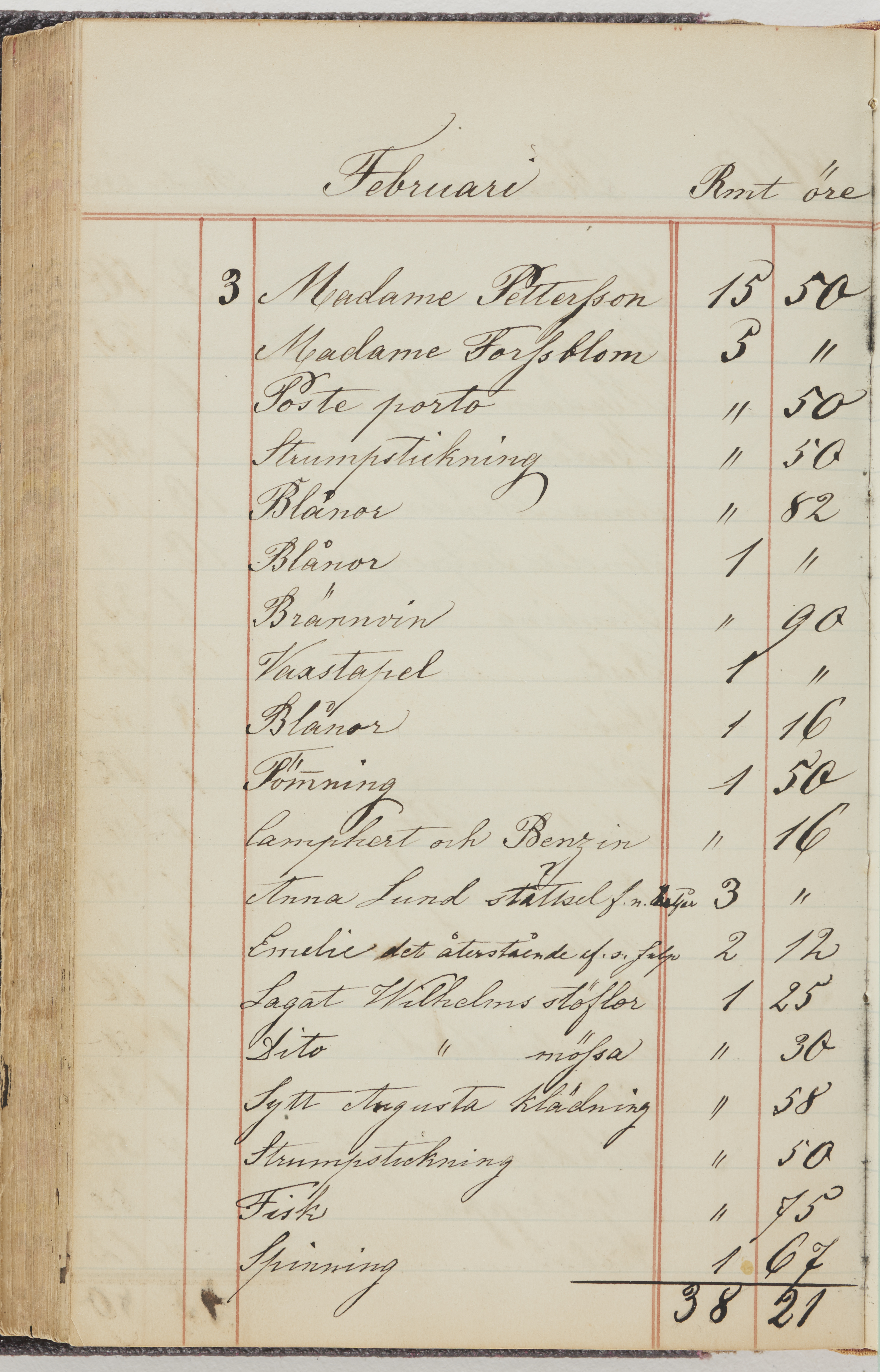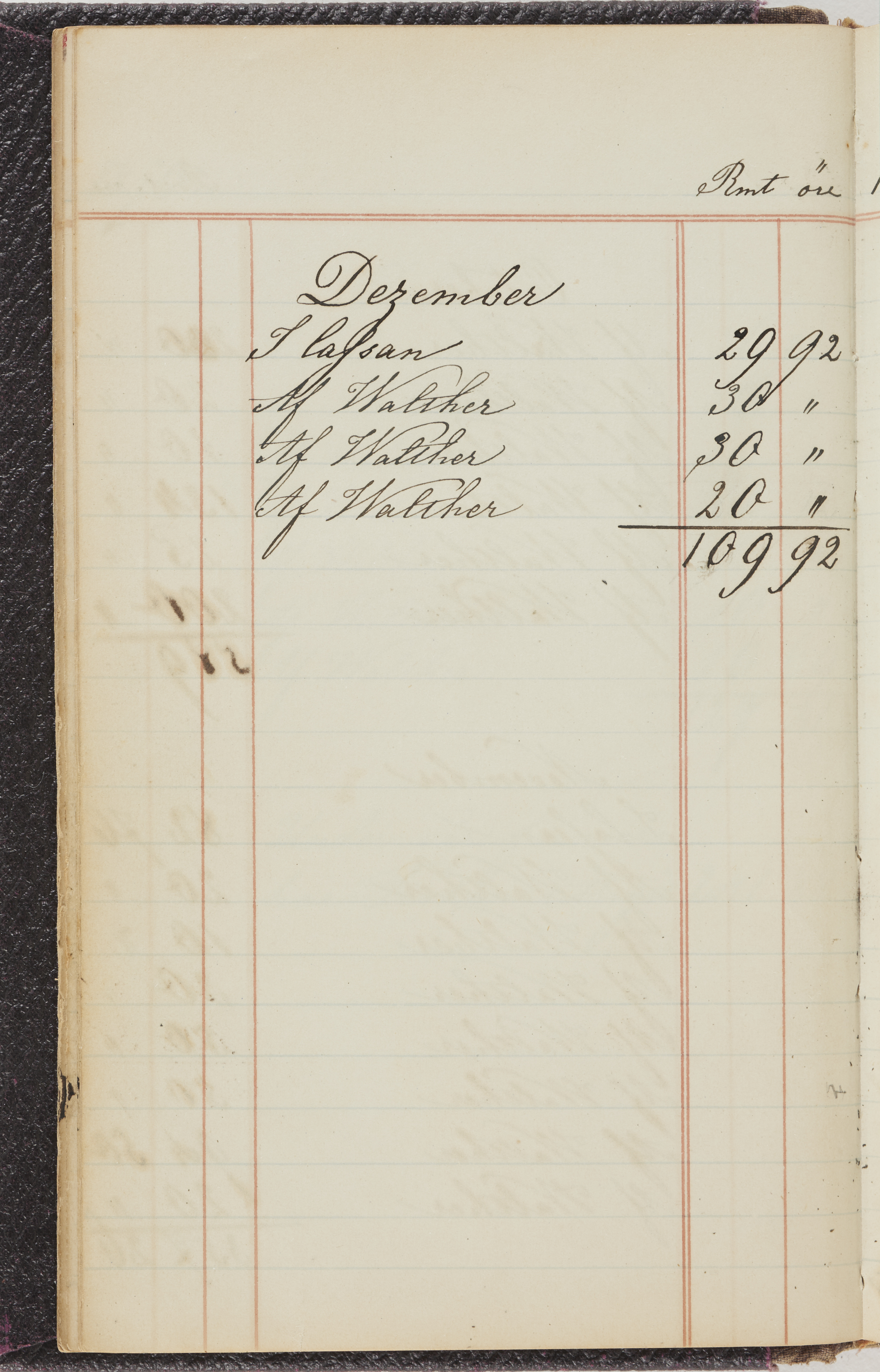 Hushållsbok. 10 vol. inb. 8:0. 1865-1872. 372 s. 1872. 134 s. 1886-1890. 582 s. 1891-1896. 572 s. 1897-1903. 610 s. 1904-1910. 606 s. 1911-1917. 612 s. 1918-1923. 586 s. 1924-1929. 608 s. 1930. 608 s. Skrivna av W. v. H. f. K. Vol. 4-8. Helt band av brunt (vol. 4 och 5) och svart (vol. 6-8) pressad klot. Linjeramar i blindtryck på pärmarna. Kapitel av gult skinn i vol. 4, av tyg i vol. 5-8. Marmorerad snitt. Försättsblad av blårutigt papper i vol. 4, av vitt papper i vol. 5, av brun olifant i vol. 6 och 7, av grå olifant i vol. 8. Vol. 9-13. Helt band av mörkblå klot, bundet med dubbel ansättning och knäpprygg. Kapitel av gult skinn. Marmorerad snitt. Försättsblad av belgisk marmor. i vol. 9, av ljusblått marmorellapapper i de övriga volymerna. Nedtill i vol. 10 och 13 Gust. Hedberges frimamärke i blått.