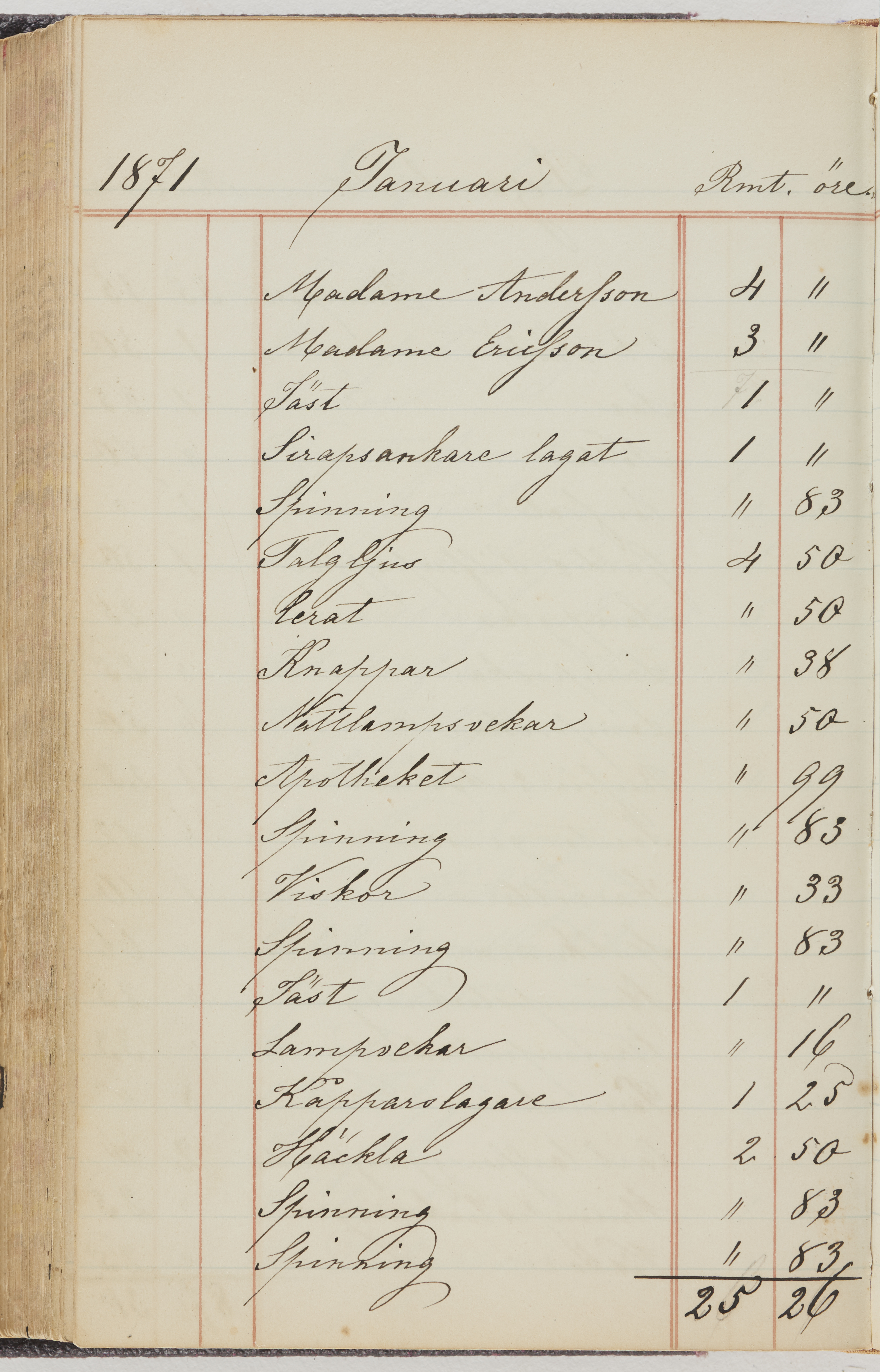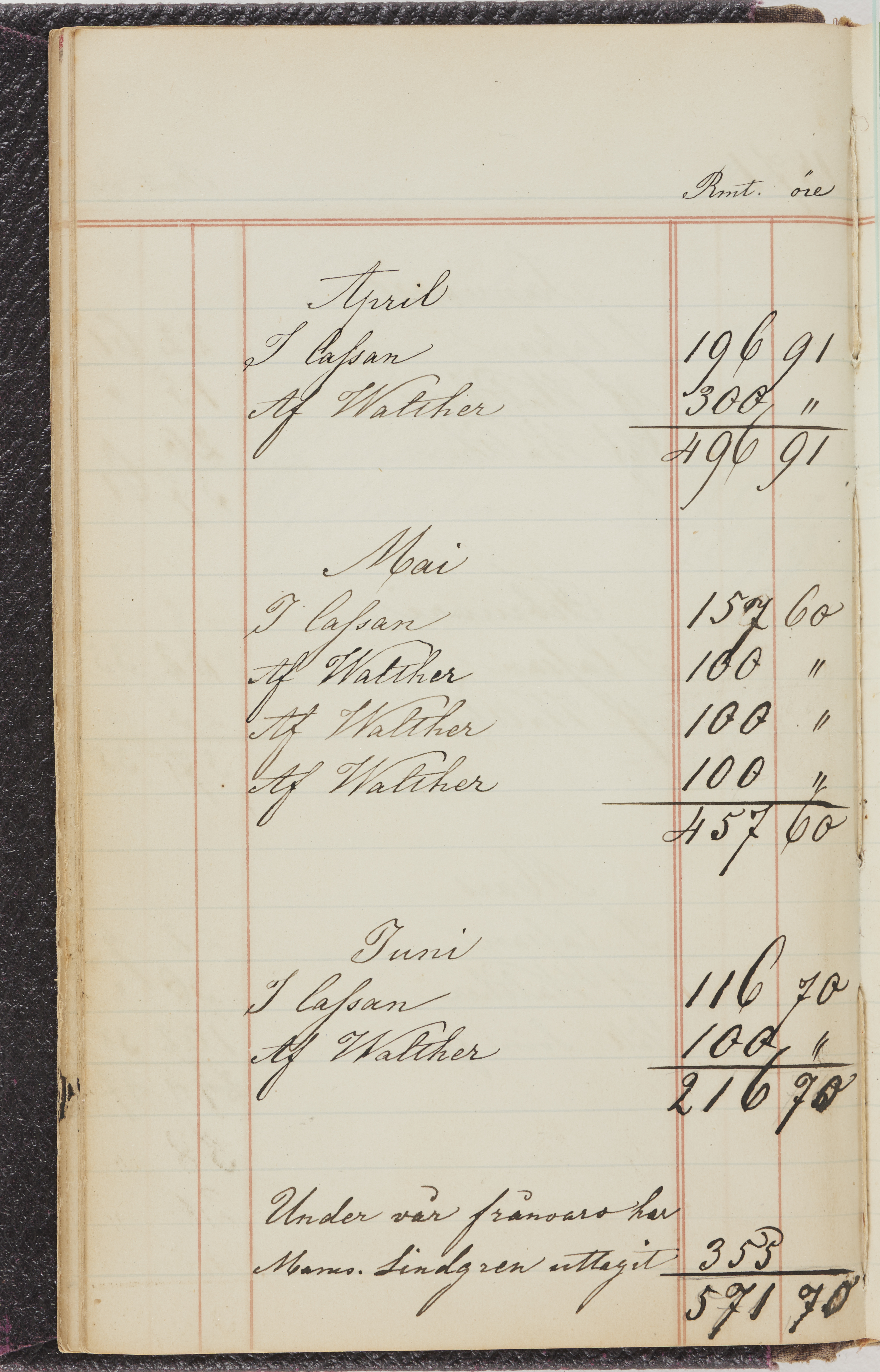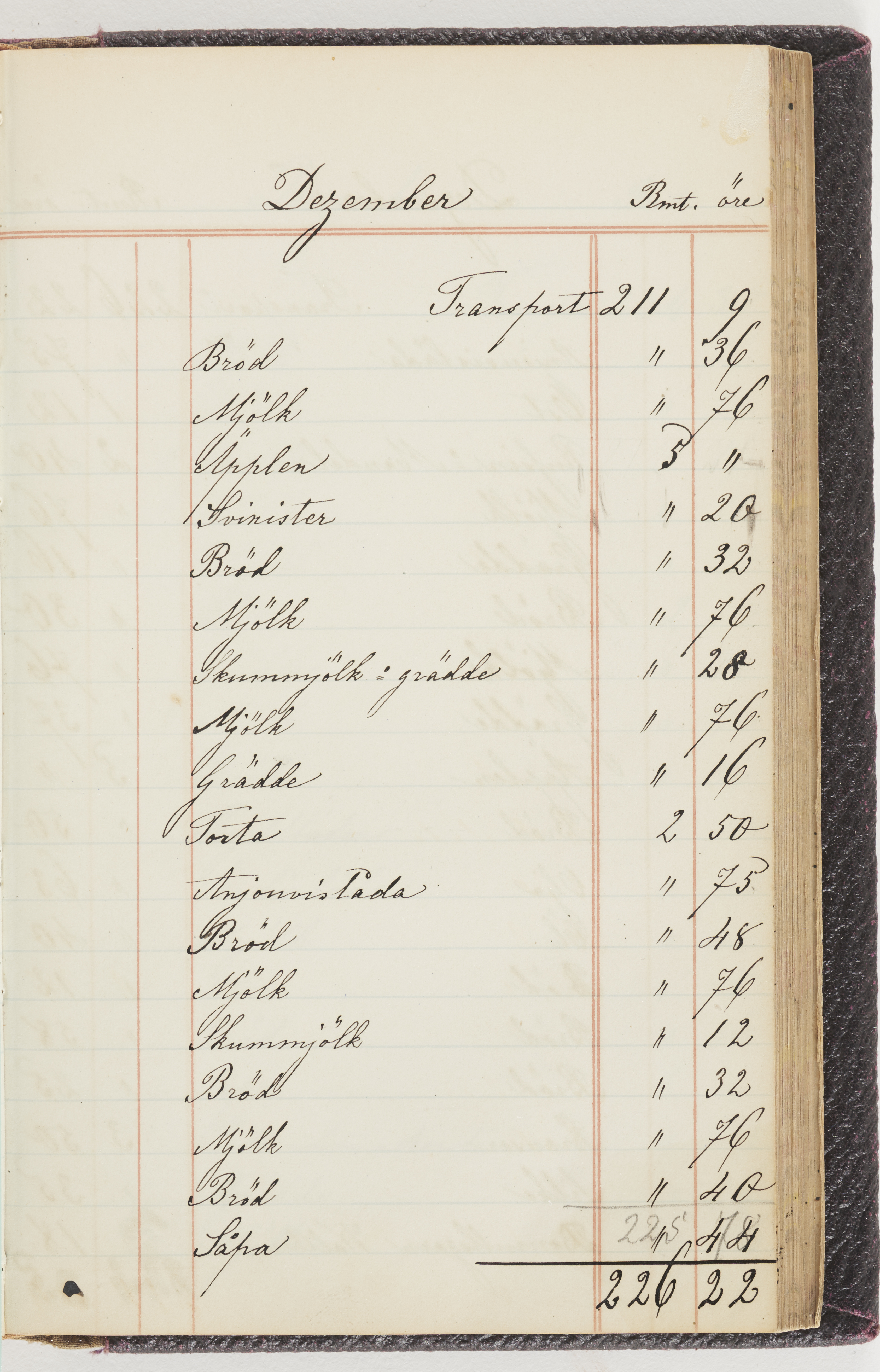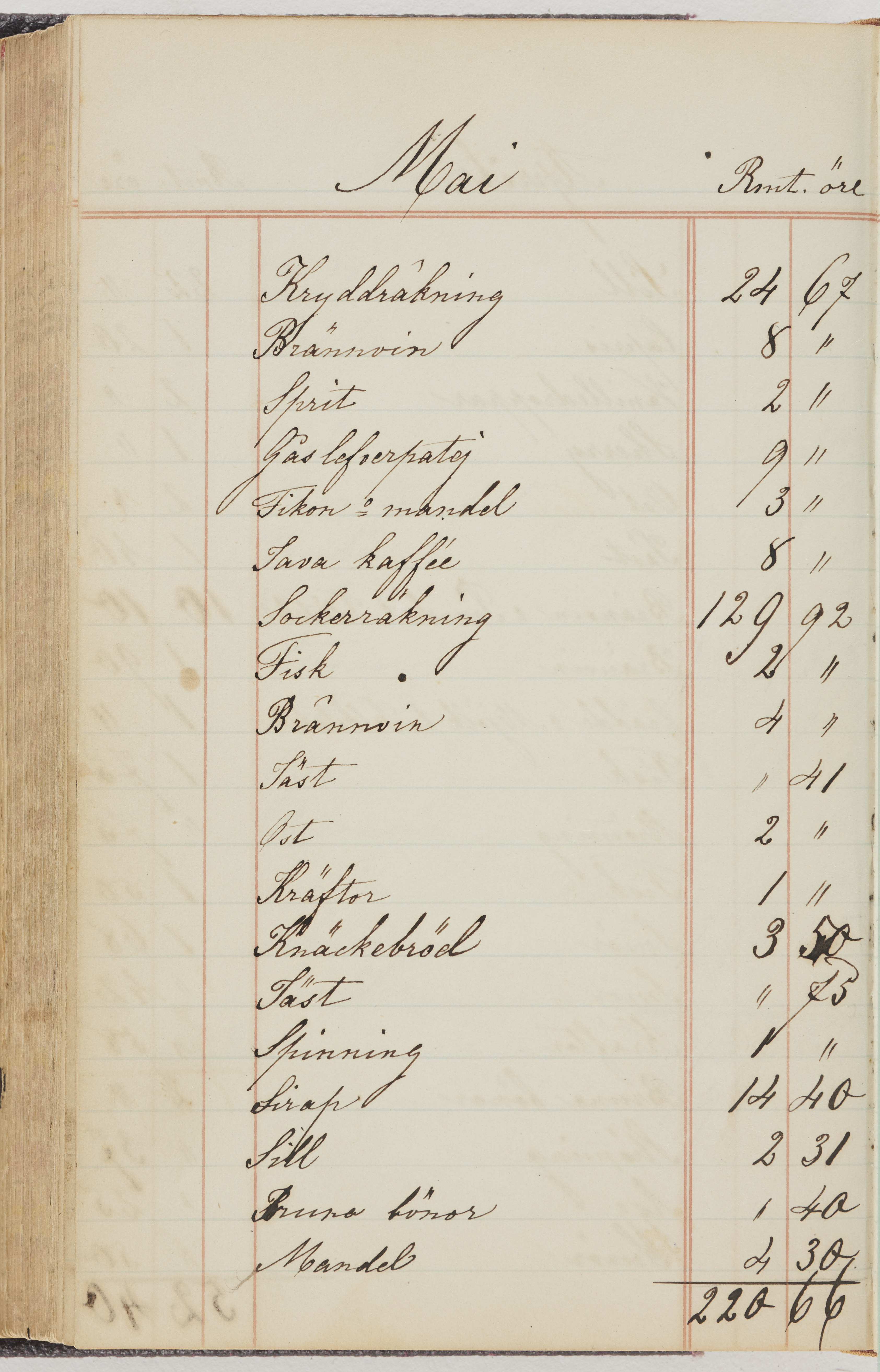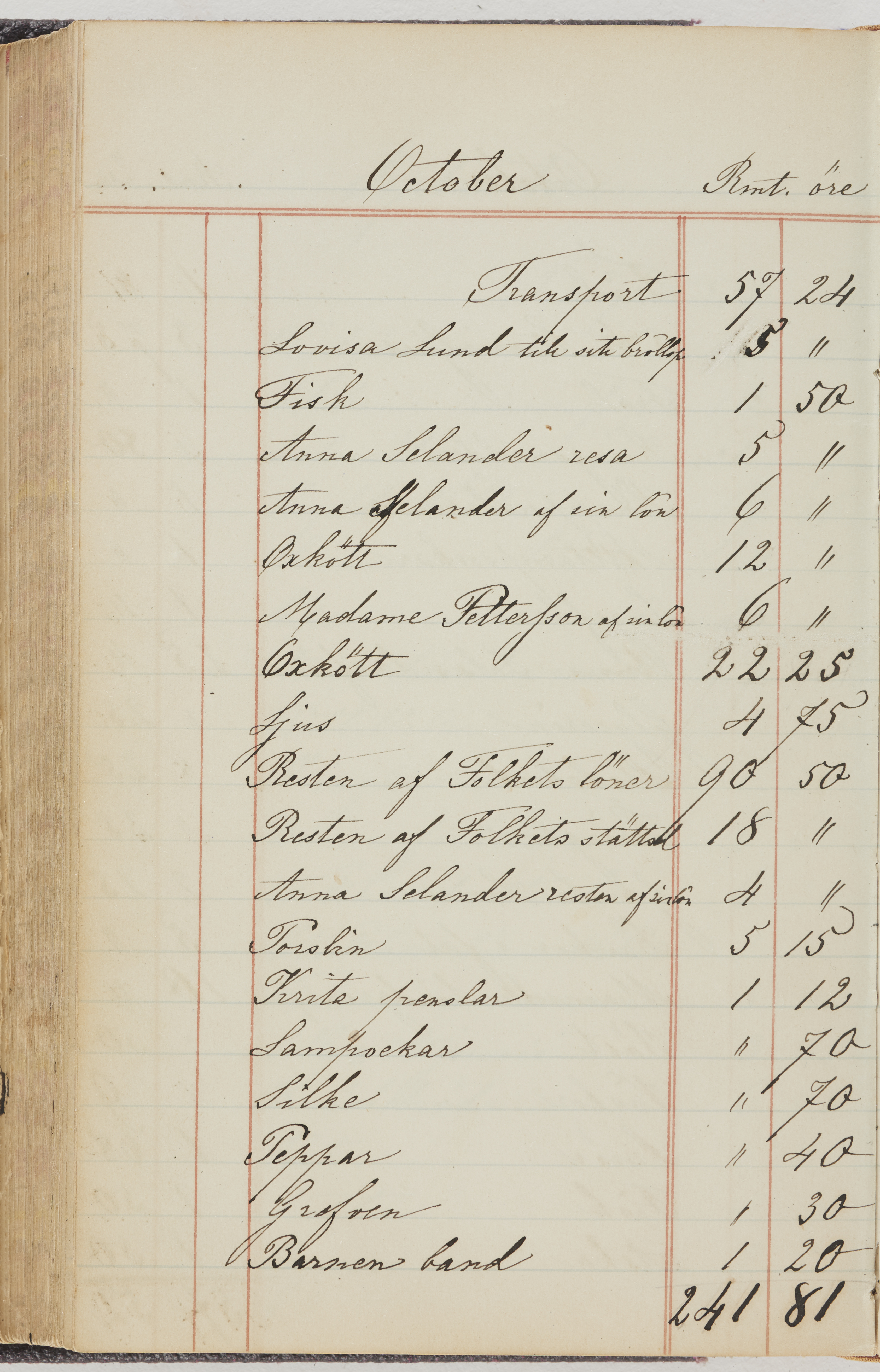 Hushållsbok. 10 vol. inb. 8:0. 1865-1872. 372 s. 1872. 134 s. 1886-1890. 582 s. 1891-1896. 572 s. 1897-1903. 610 s. 1904-1910. 606 s. 1911-1917. 612 s. 1918-1923. 586 s. 1924-1929. 608 s. 1930. 608 s. Skrivna av W. v. H. f. K. Vol. 4-8. Helt band av brunt (vol. 4 och 5) och svart (vol. 6-8) pressad klot. Linjeramar i blindtryck på pärmarna. Kapitel av gult skinn i vol. 4, av tyg i vol. 5-8. Marmorerad snitt. Försättsblad av blårutigt papper i vol. 4, av vitt papper i vol. 5, av brun olifant i vol. 6 och 7, av grå olifant i vol. 8. Vol. 9-13. Helt band av mörkblå klot, bundet med dubbel ansättning och knäpprygg. Kapitel av gult skinn. Marmorerad snitt. Försättsblad av belgisk marmor. i vol. 9, av ljusblått marmorellapapper i de övriga volymerna. Nedtill i vol. 10 och 13 Gust. Hedberges frimamärke i blått.