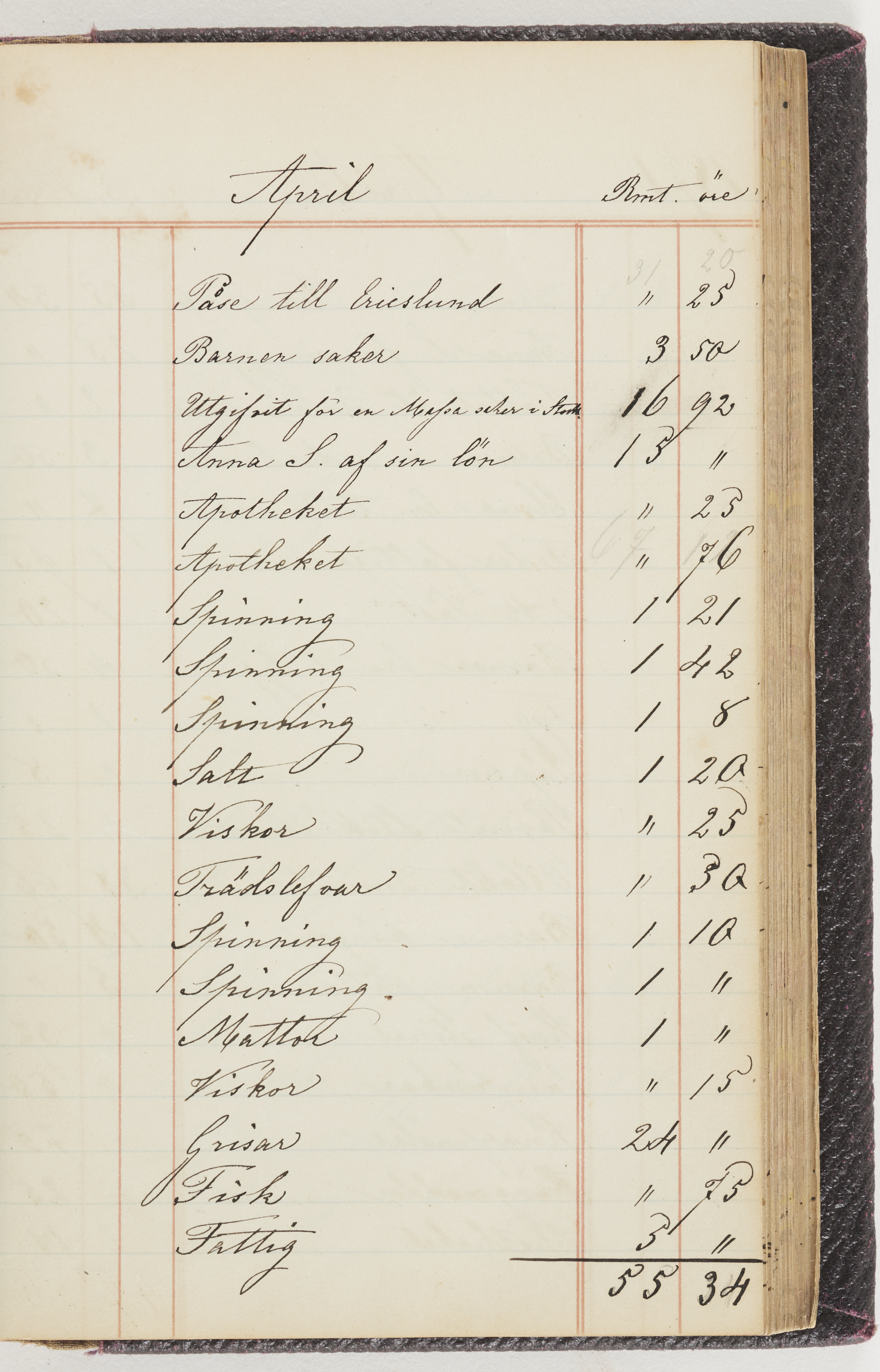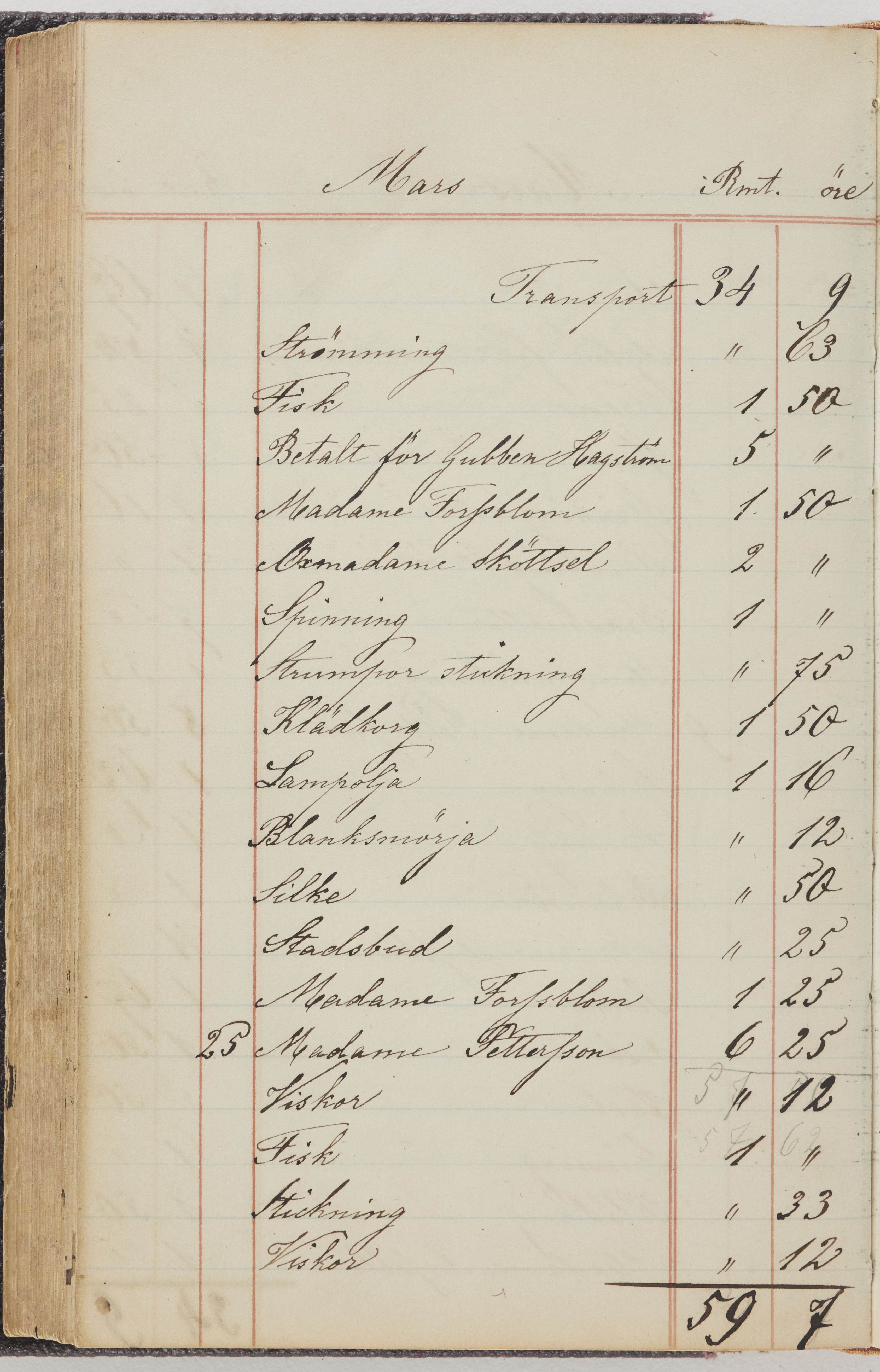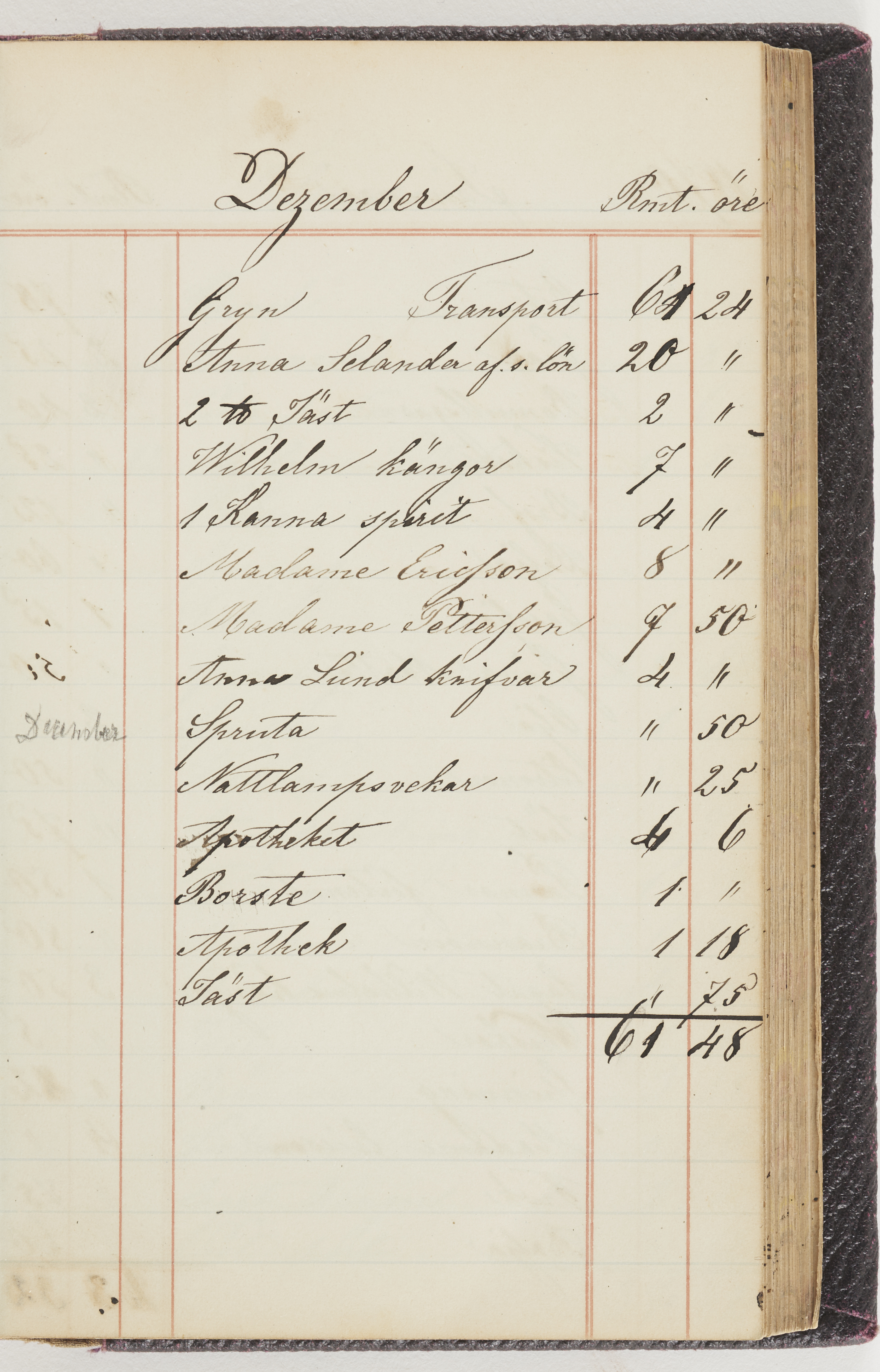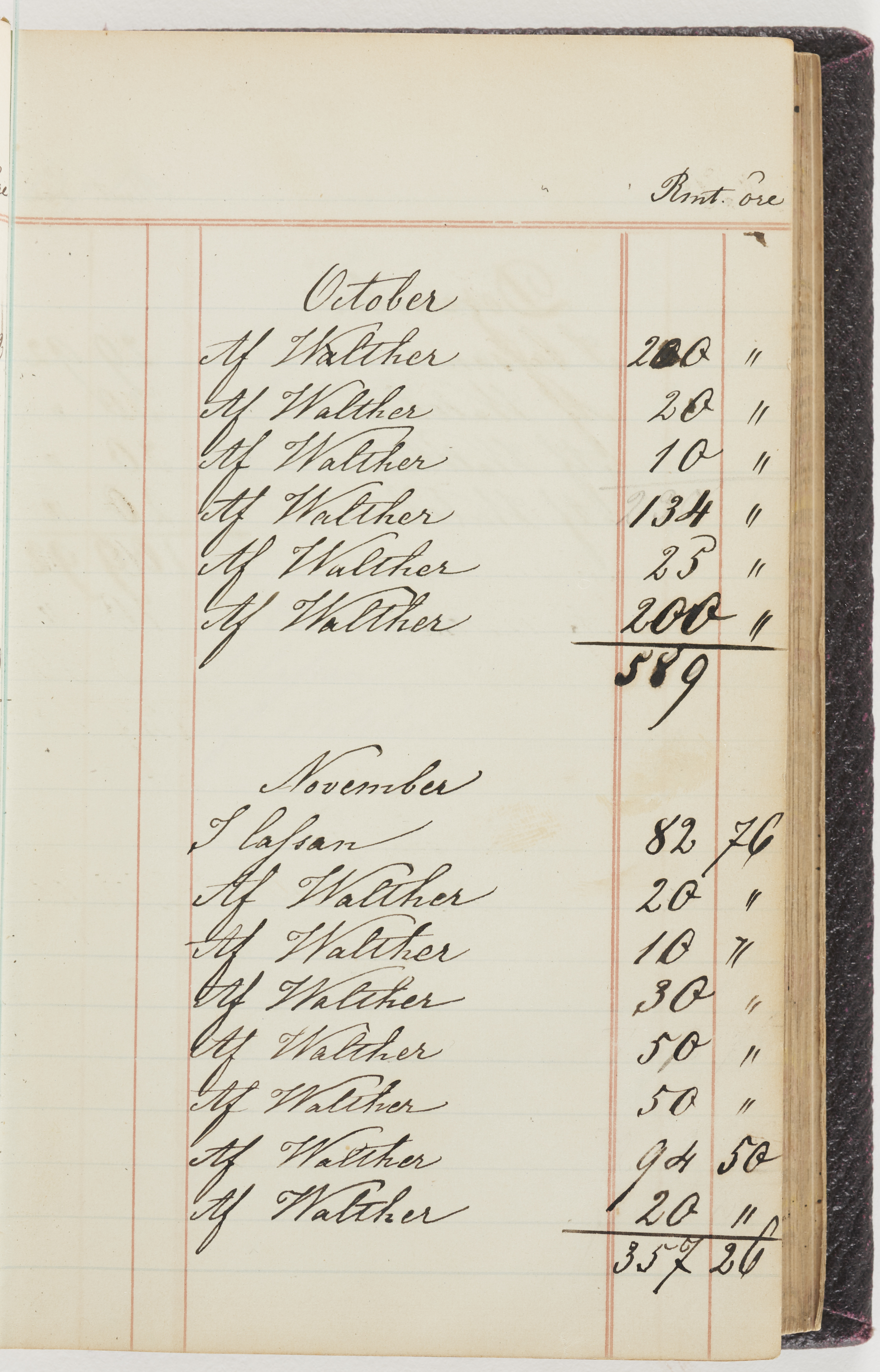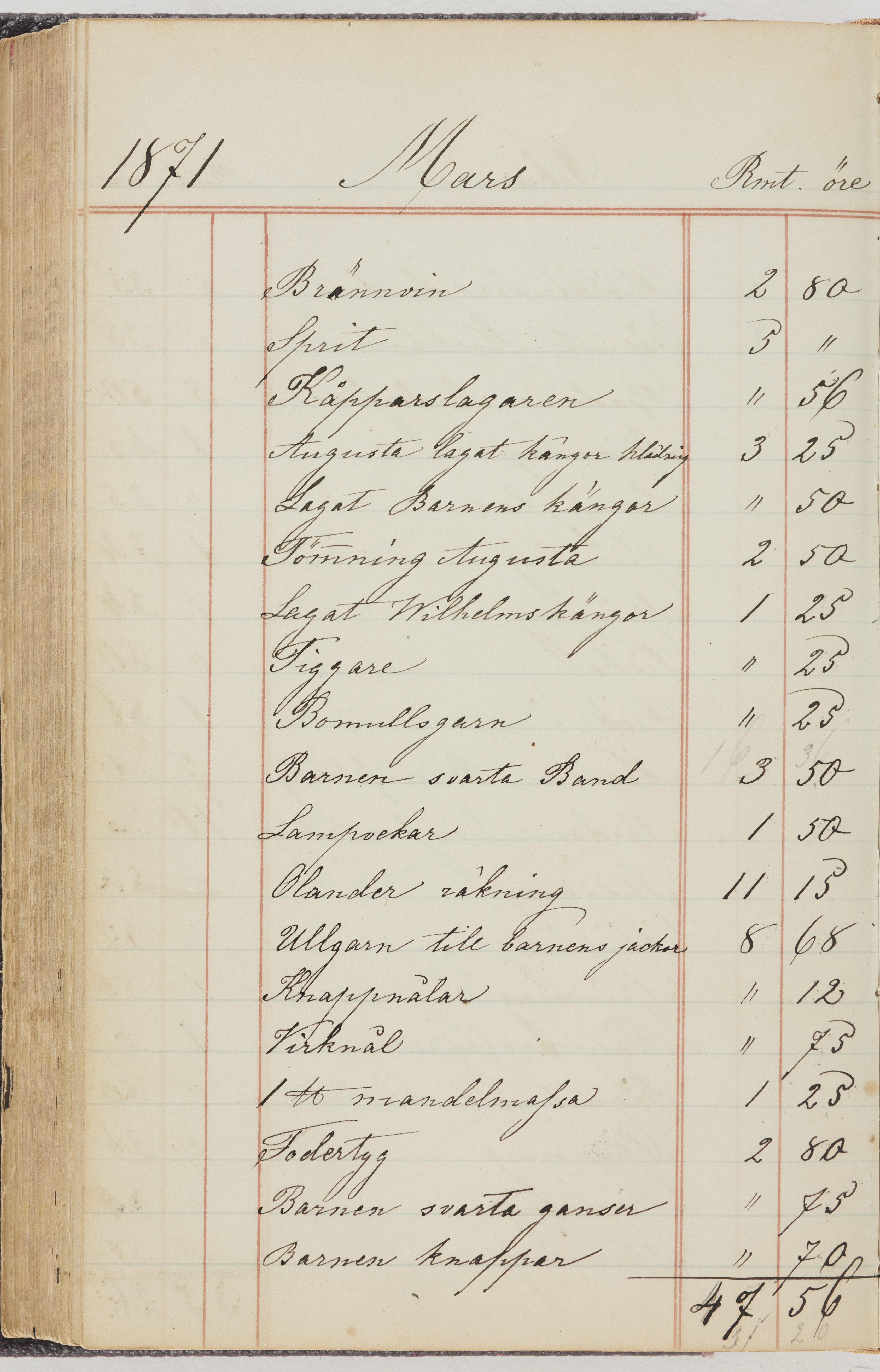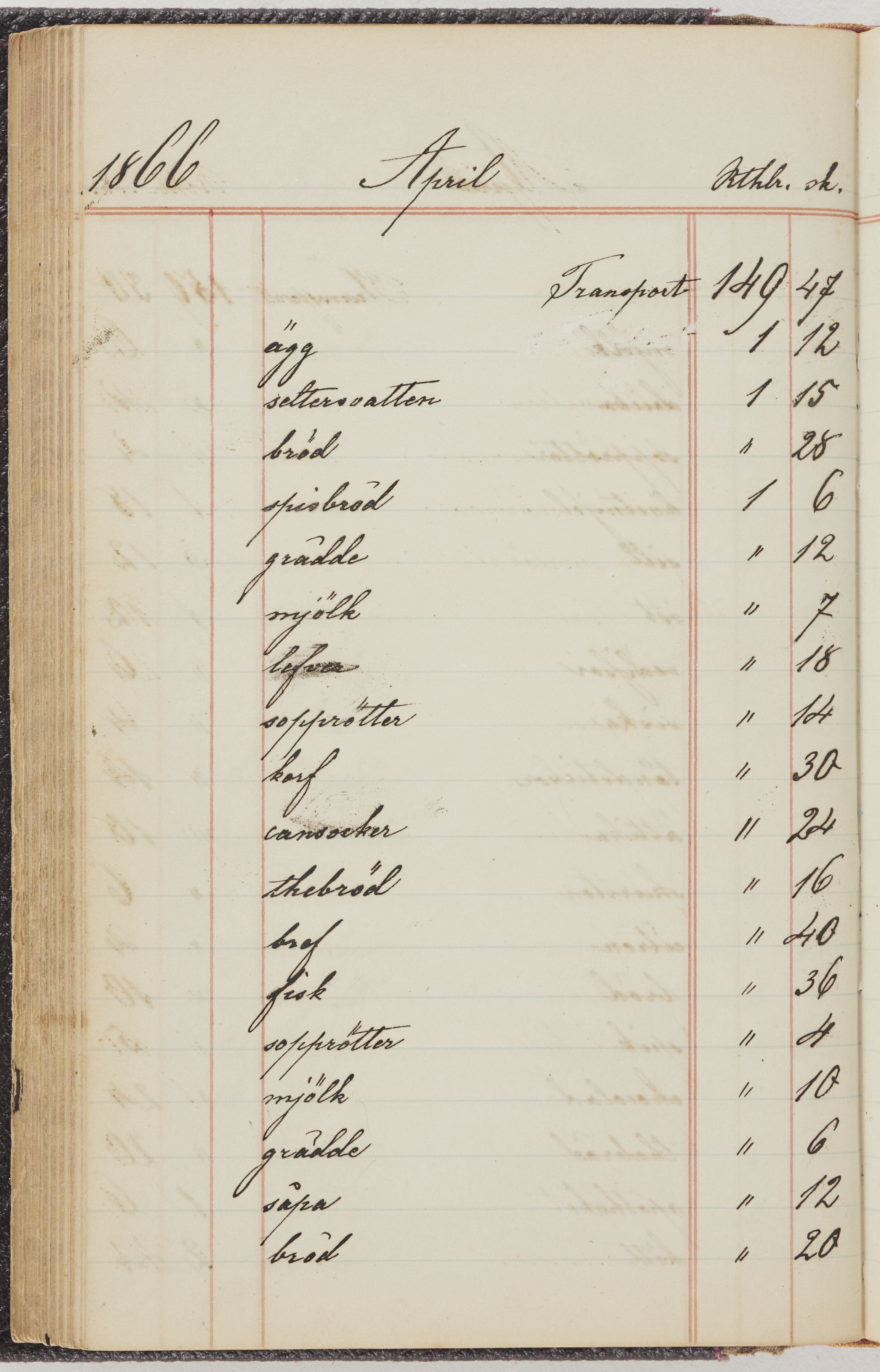 Hushållsbok. 10 vol. inb. 8:0. 1865-1872. 372 s. 1872. 134 s. 1886-1890. 582 s. 1891-1896. 572 s. 1897-1903. 610 s. 1904-1910. 606 s. 1911-1917. 612 s. 1918-1923. 586 s. 1924-1929. 608 s. 1930. 608 s. Skrivna av W. v. H. f. K. Vol. 4-8. Helt band av brunt (vol. 4 och 5) och svart (vol. 6-8) pressad klot. Linjeramar i blindtryck på pärmarna. Kapitel av gult skinn i vol. 4, av tyg i vol. 5-8. Marmorerad snitt. Försättsblad av blårutigt papper i vol. 4, av vitt papper i vol. 5, av brun olifant i vol. 6 och 7, av grå olifant i vol. 8. Vol. 9-13. Helt band av mörkblå klot, bundet med dubbel ansättning och knäpprygg. Kapitel av gult skinn. Marmorerad snitt. Försättsblad av belgisk marmor. i vol. 9, av ljusblått marmorellapapper i de övriga volymerna. Nedtill i vol. 10 och 13 Gust. Hedberges frimamärke i blått.