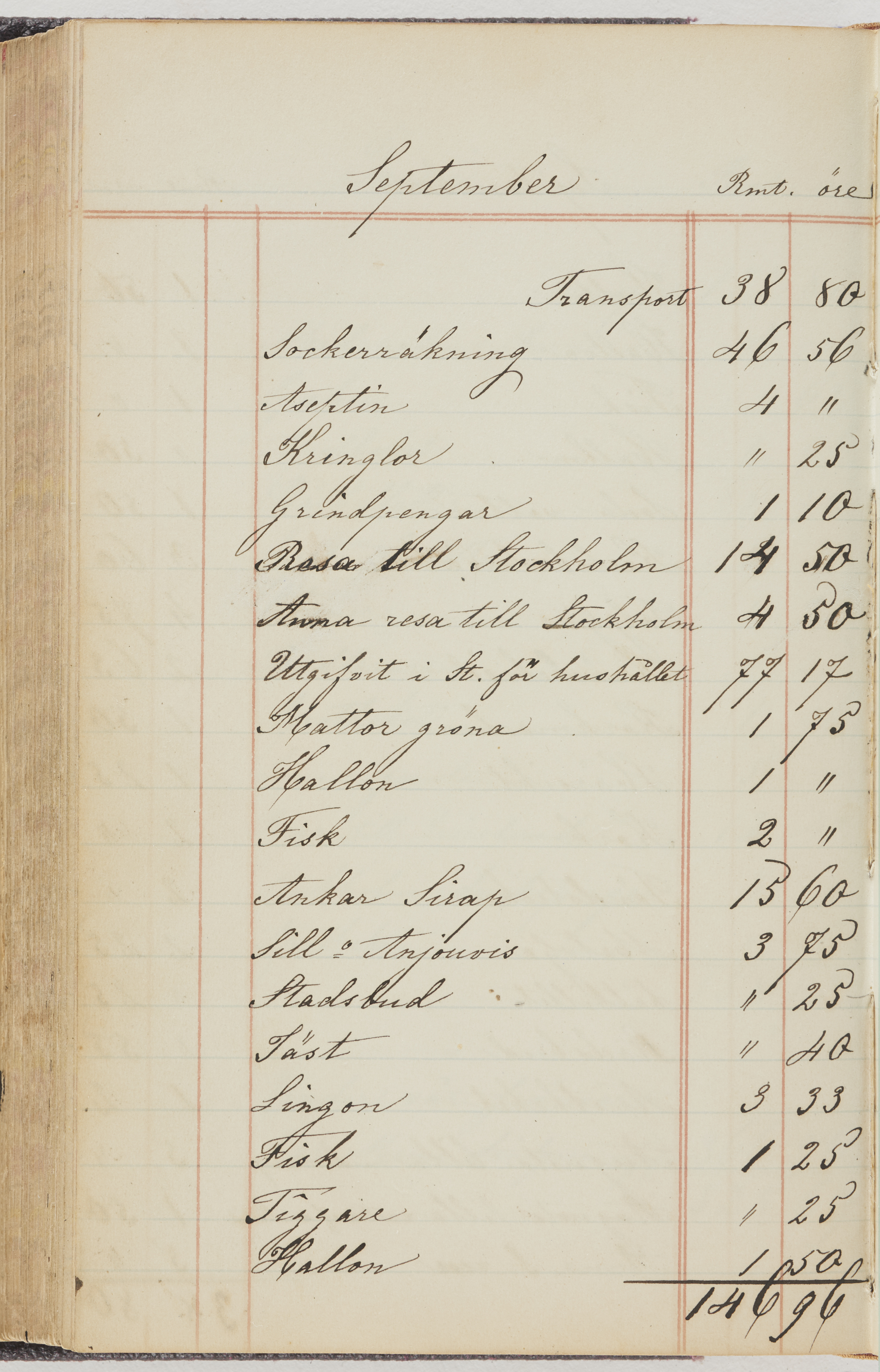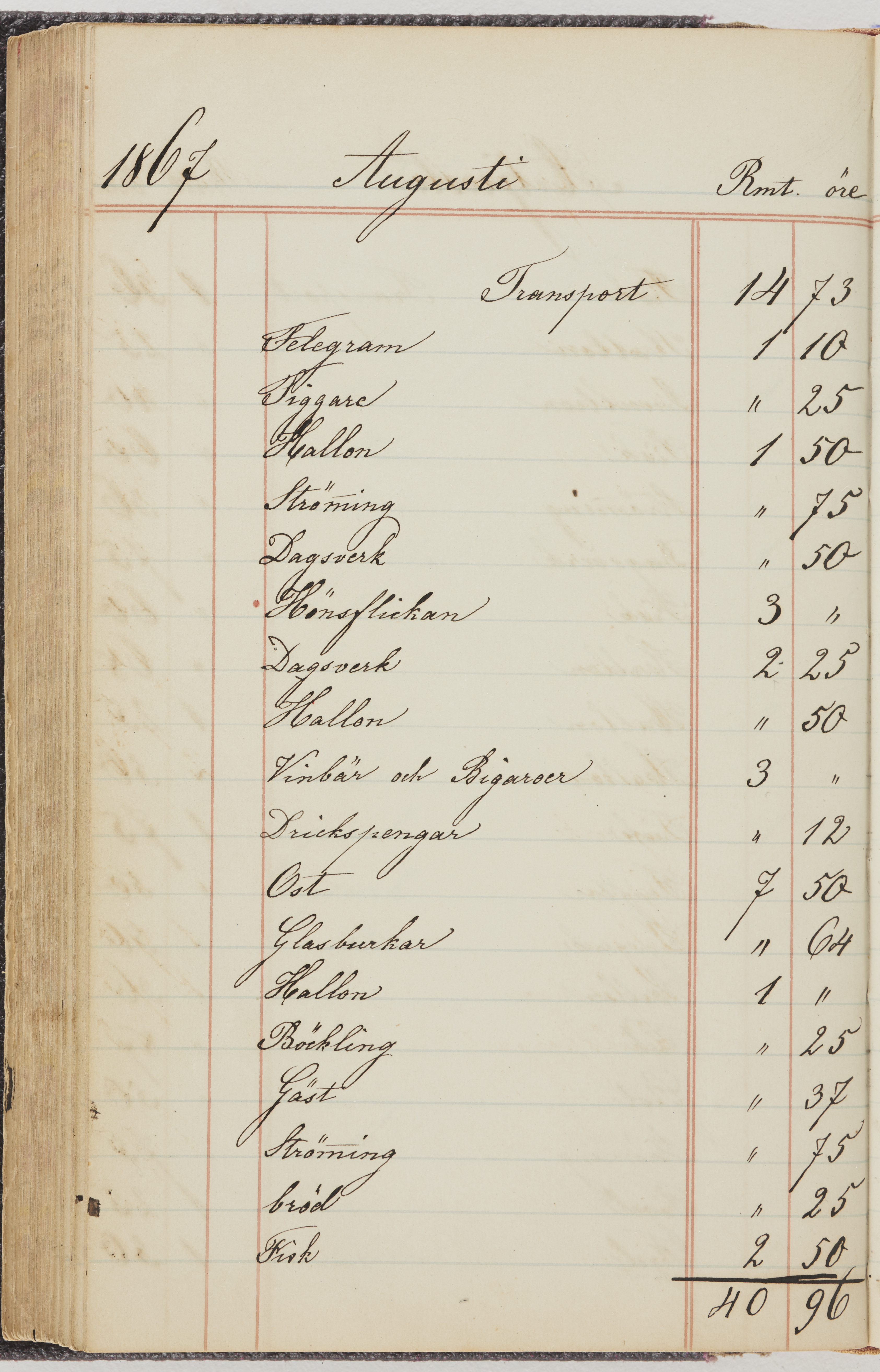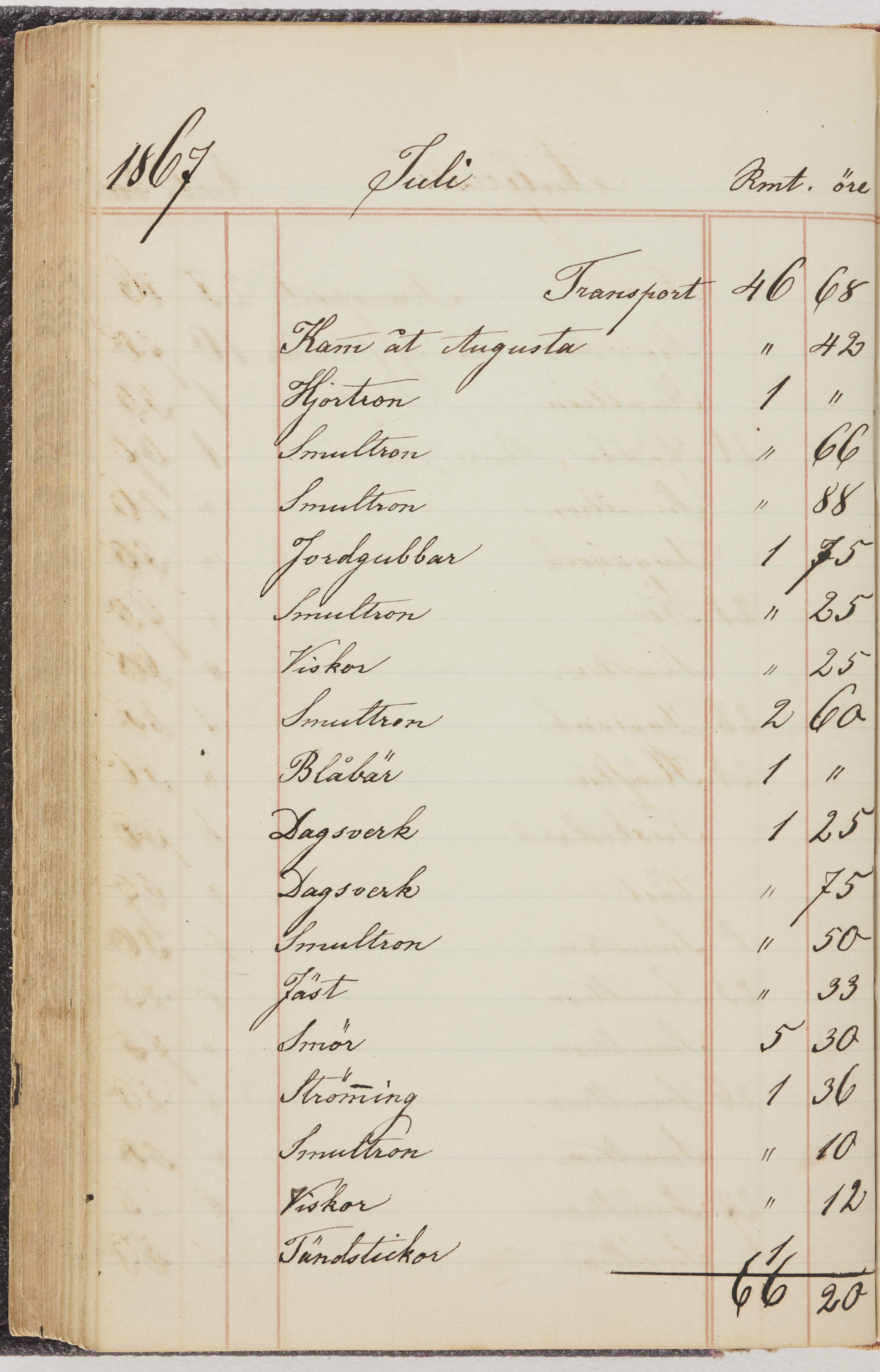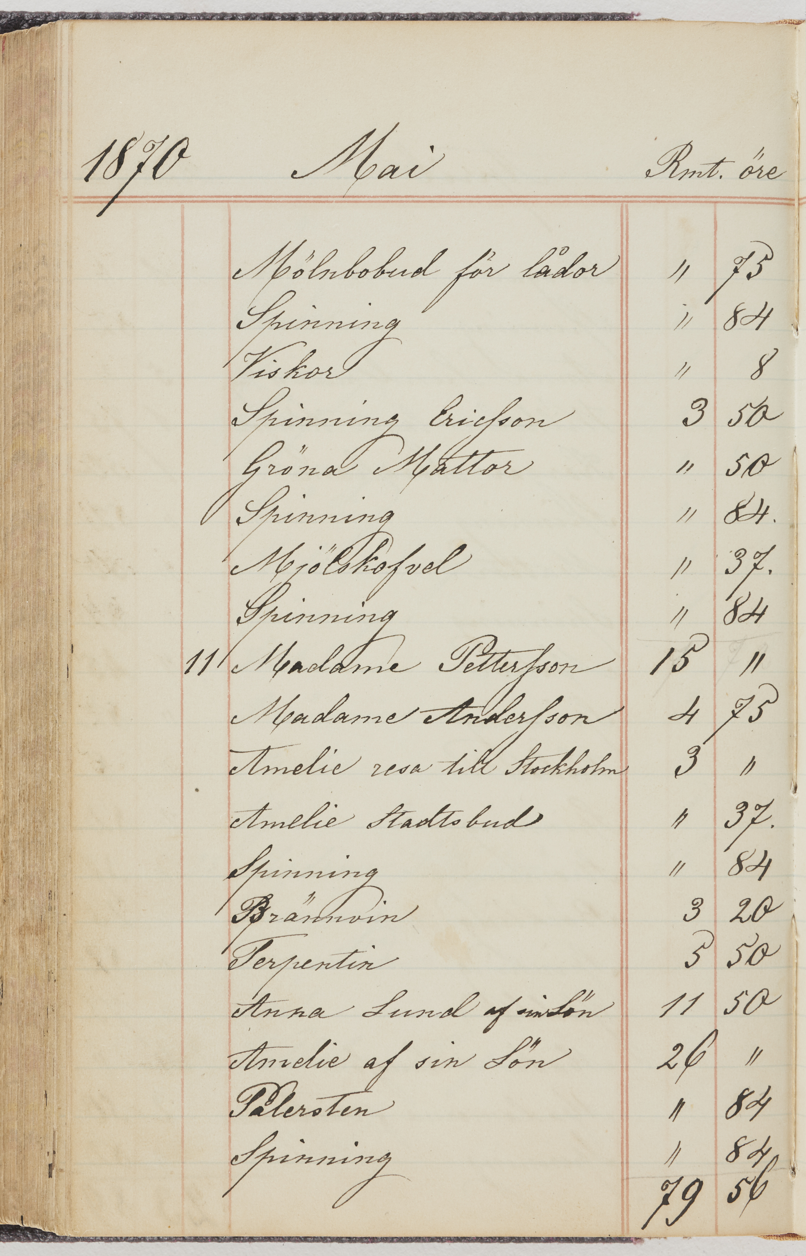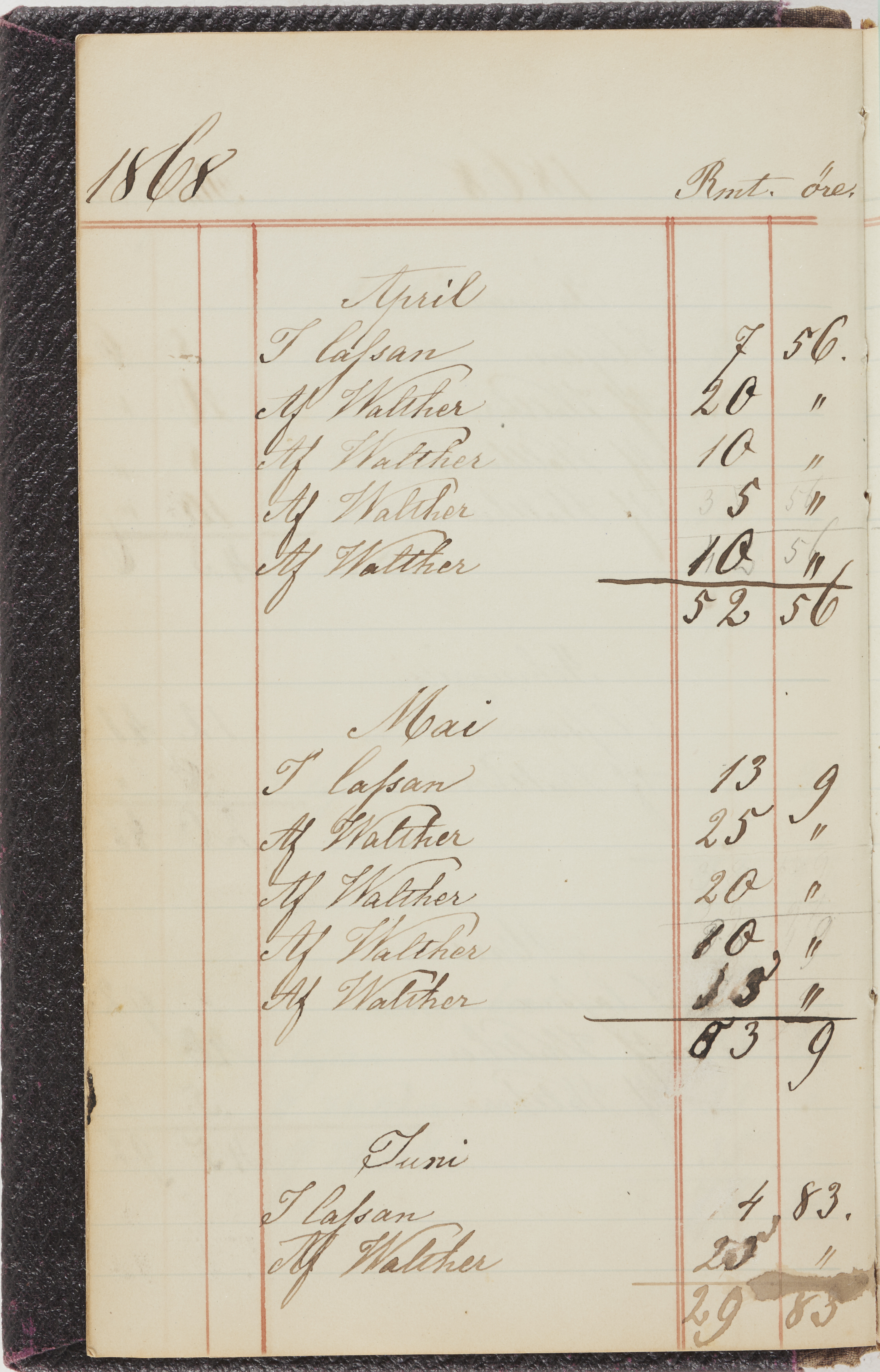 Hushållsbok. 10 vol. inb. 8:0. 1865-1872. 372 s. 1872. 134 s. 1886-1890. 582 s. 1891-1896. 572 s. 1897-1903. 610 s. 1904-1910. 606 s. 1911-1917. 612 s. 1918-1923. 586 s. 1924-1929. 608 s. 1930. 608 s. Skrivna av W. v. H. f. K. Vol. 4-8. Helt band av brunt (vol. 4 och 5) och svart (vol. 6-8) pressad klot. Linjeramar i blindtryck på pärmarna. Kapitel av gult skinn i vol. 4, av tyg i vol. 5-8. Marmorerad snitt. Försättsblad av blårutigt papper i vol. 4, av vitt papper i vol. 5, av brun olifant i vol. 6 och 7, av grå olifant i vol. 8. Vol. 9-13. Helt band av mörkblå klot, bundet med dubbel ansättning och knäpprygg. Kapitel av gult skinn. Marmorerad snitt. Försättsblad av belgisk marmor. i vol. 9, av ljusblått marmorellapapper i de övriga volymerna. Nedtill i vol. 10 och 13 Gust. Hedberges frimamärke i blått.