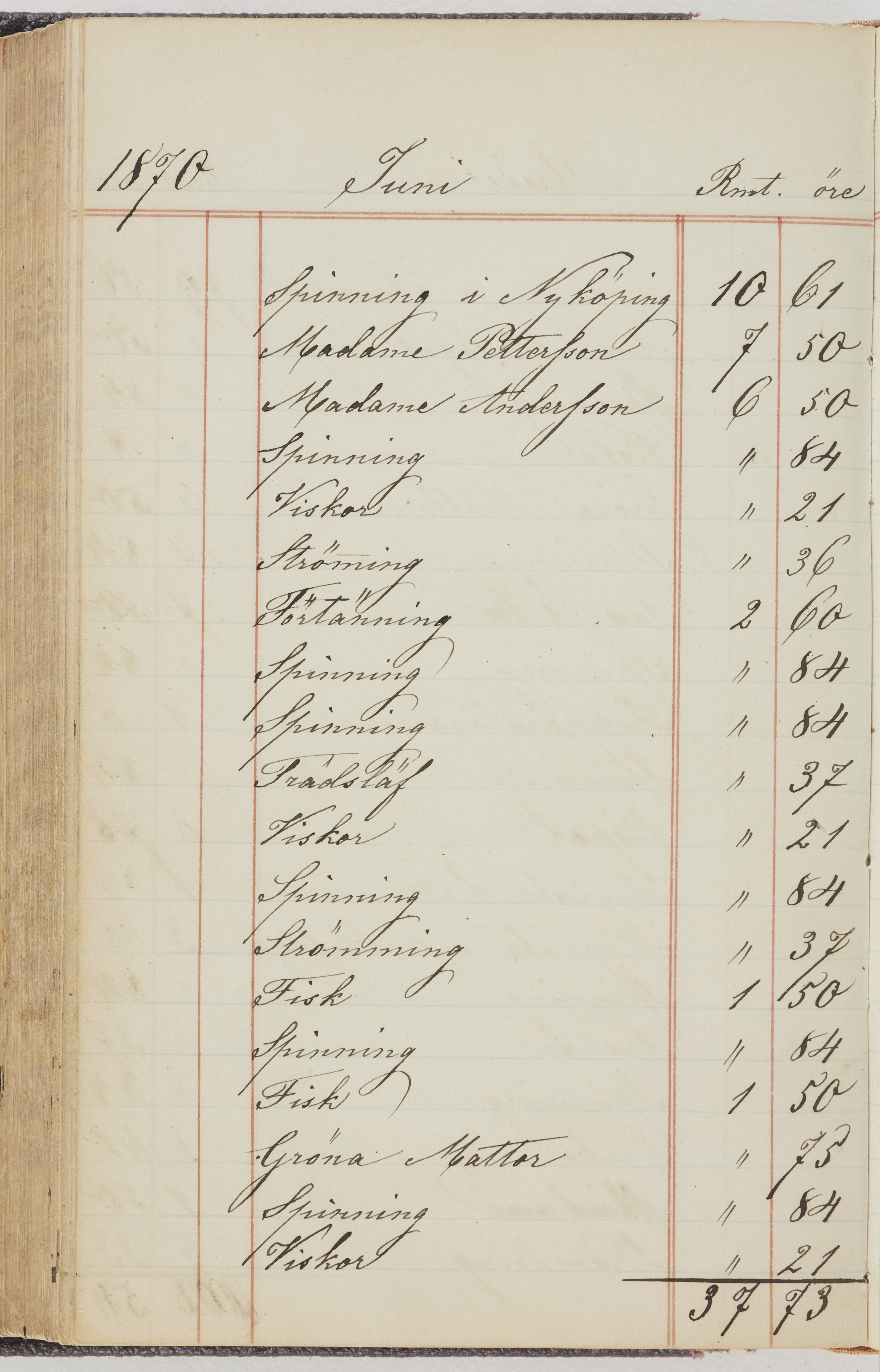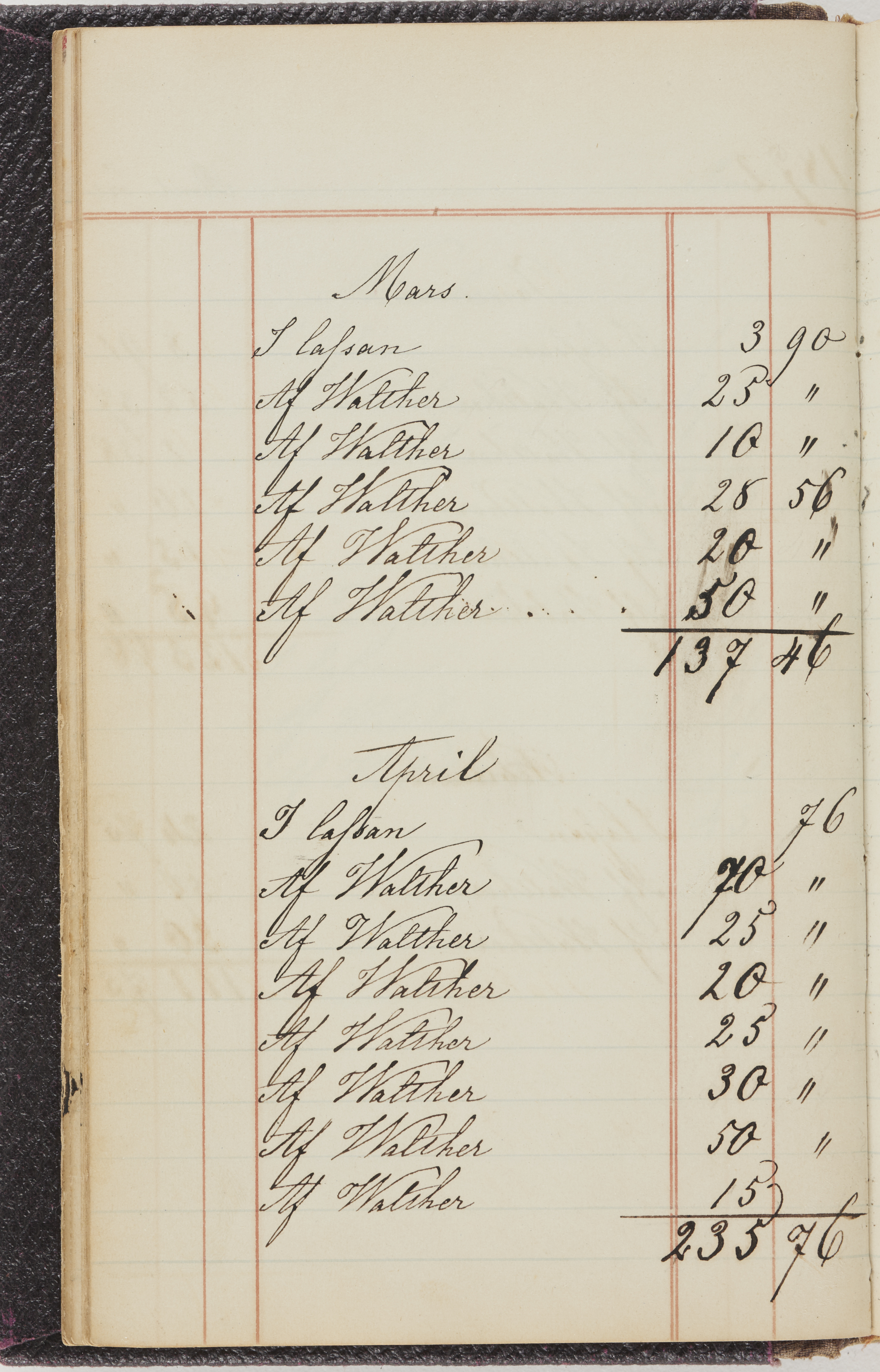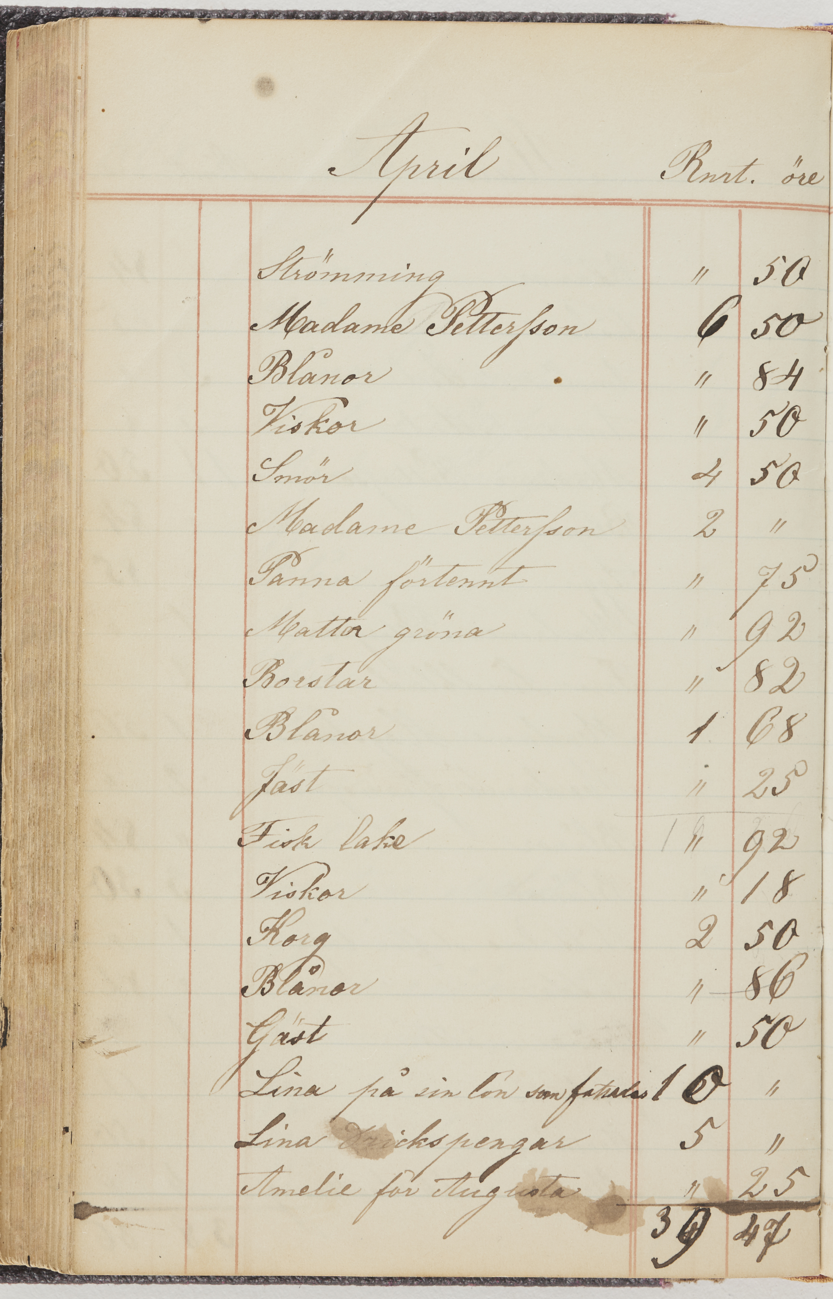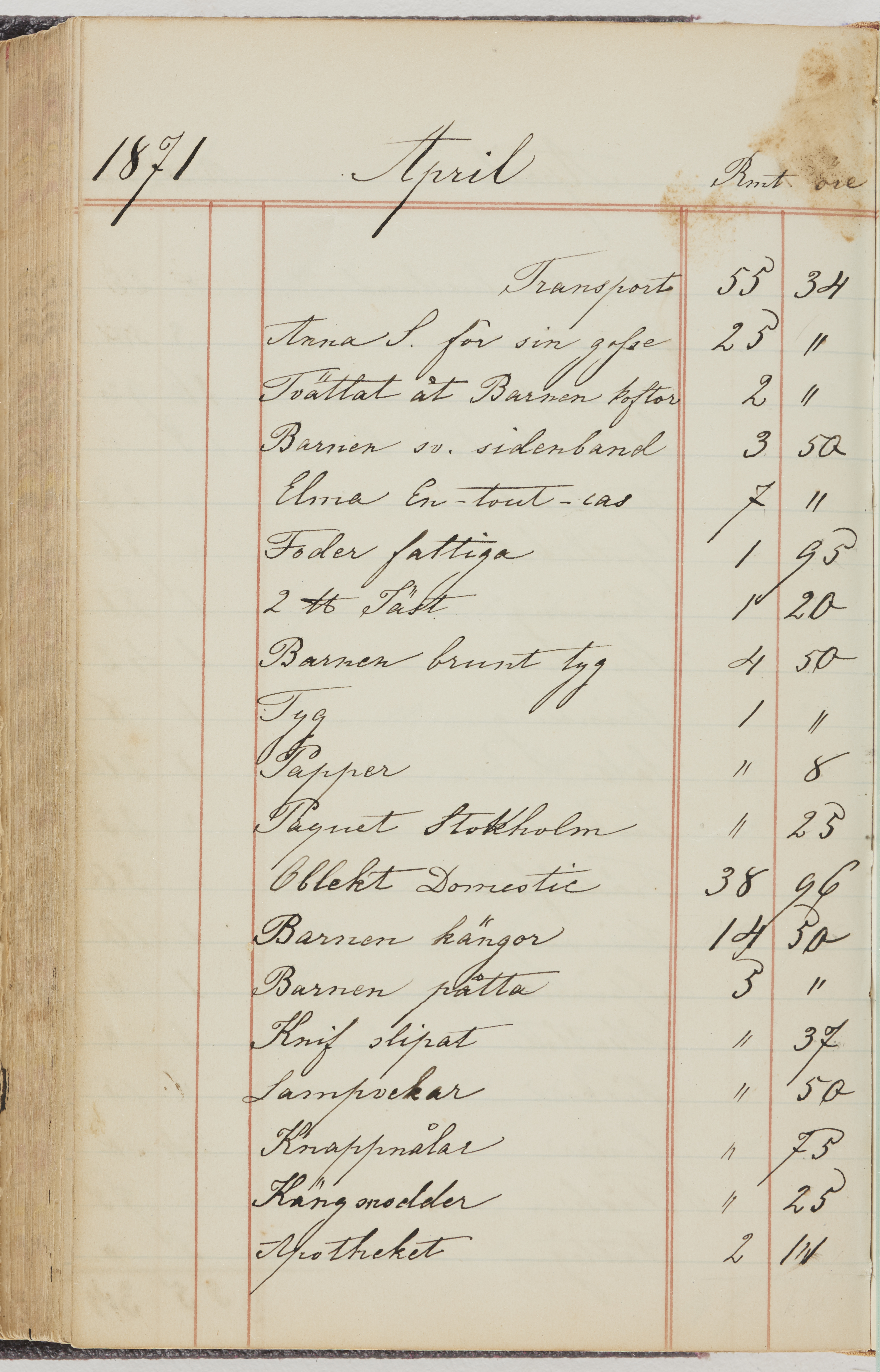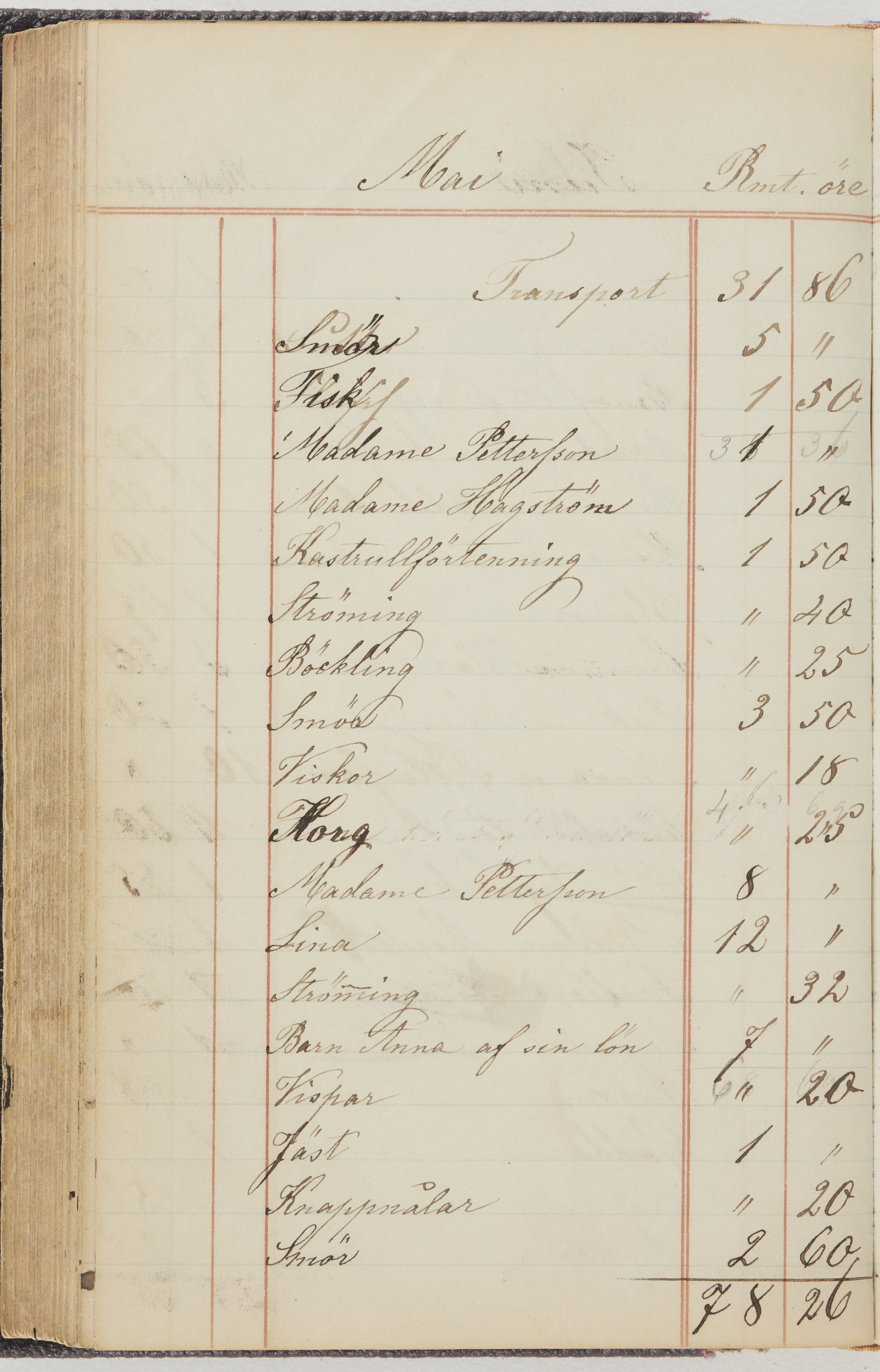 Hushållsbok. 10 vol. inb. 8:0. 1865-1872. 372 s. 1872. 134 s. 1886-1890. 582 s. 1891-1896. 572 s. 1897-1903. 610 s. 1904-1910. 606 s. 1911-1917. 612 s. 1918-1923. 586 s. 1924-1929. 608 s. 1930. 608 s. Skrivna av W. v. H. f. K. Vol. 4-8. Helt band av brunt (vol. 4 och 5) och svart (vol. 6-8) pressad klot. Linjeramar i blindtryck på pärmarna. Kapitel av gult skinn i vol. 4, av tyg i vol. 5-8. Marmorerad snitt. Försättsblad av blårutigt papper i vol. 4, av vitt papper i vol. 5, av brun olifant i vol. 6 och 7, av grå olifant i vol. 8. Vol. 9-13. Helt band av mörkblå klot, bundet med dubbel ansättning och knäpprygg. Kapitel av gult skinn. Marmorerad snitt. Försättsblad av belgisk marmor. i vol. 9, av ljusblått marmorellapapper i de övriga volymerna. Nedtill i vol. 10 och 13 Gust. Hedberges frimamärke i blått.