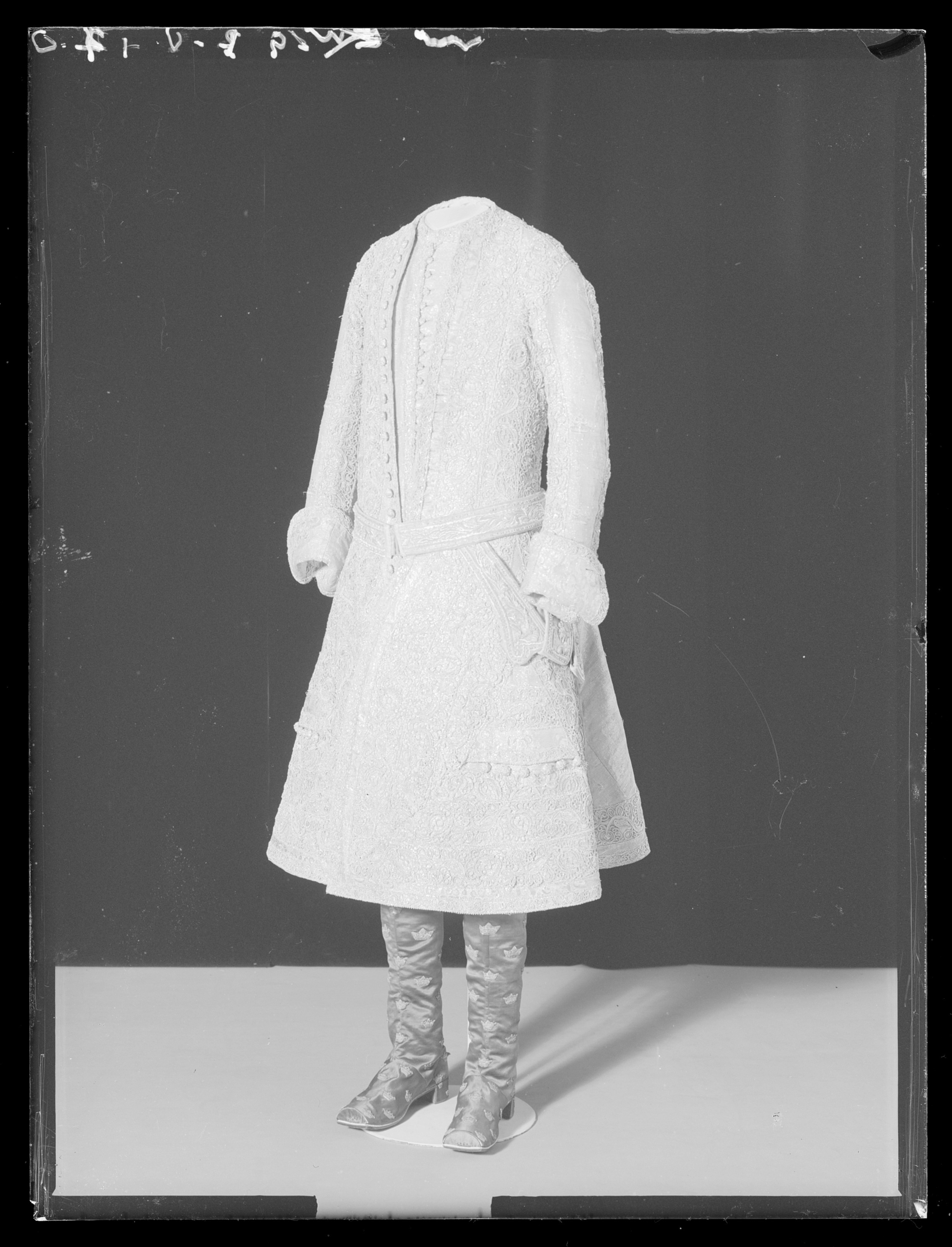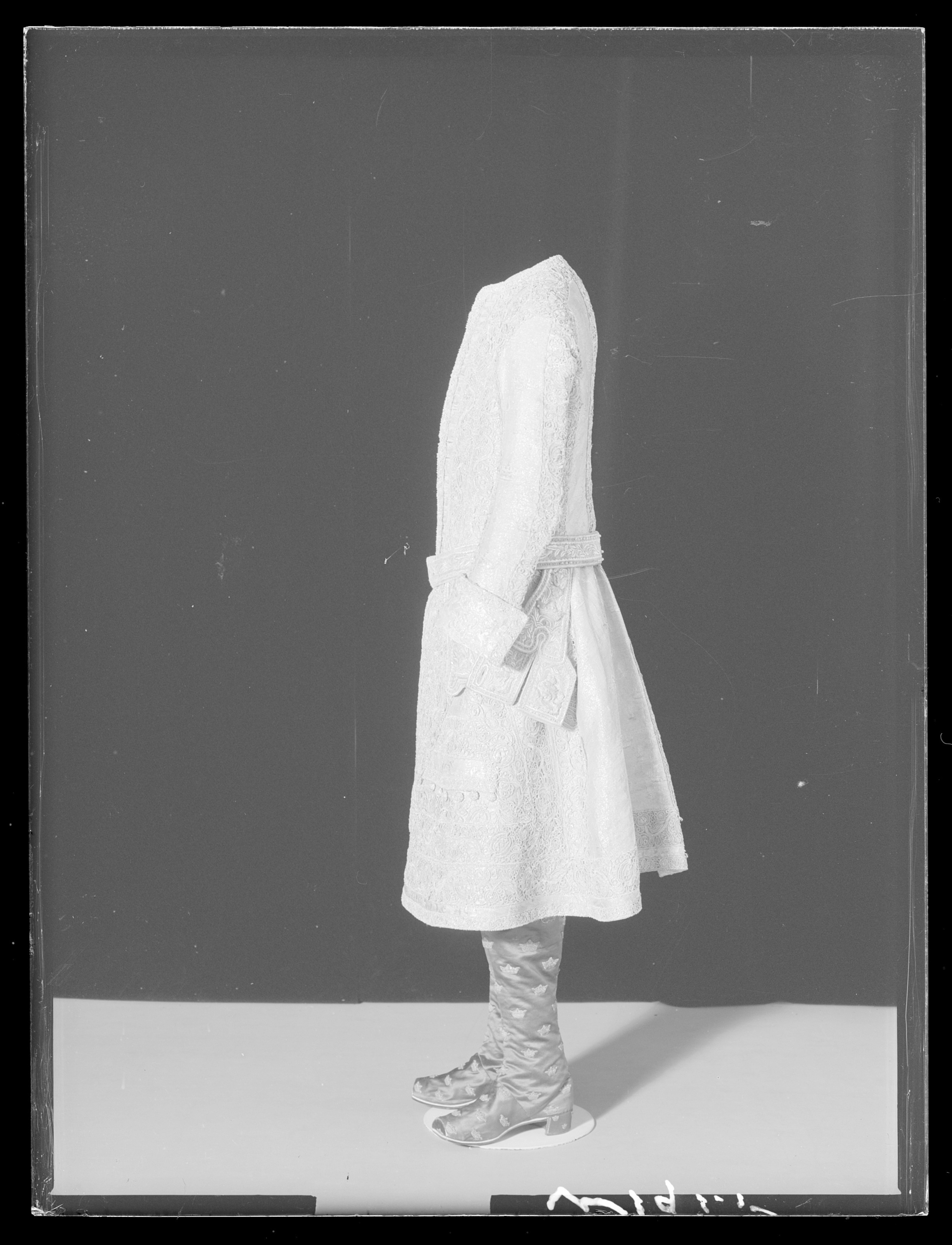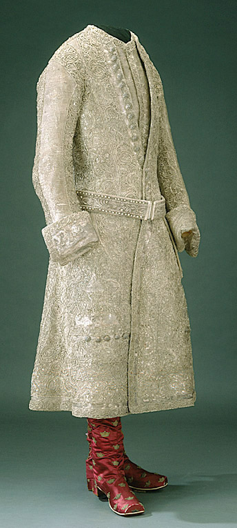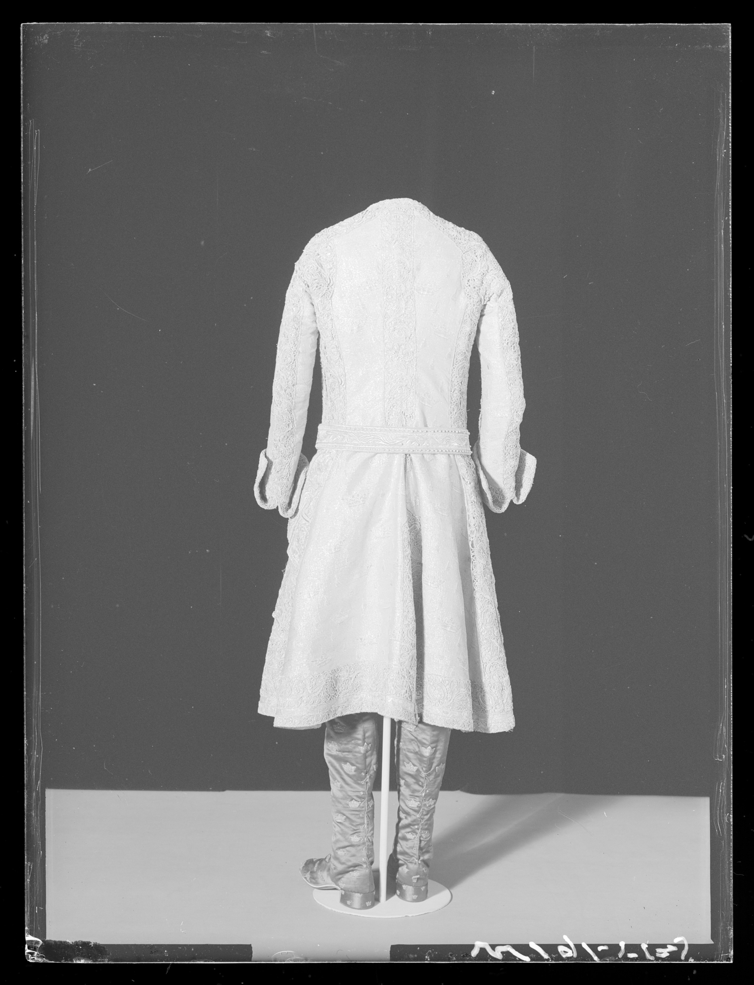 Rock till Gustav III:s kröningsdräkt i silvertyg dekorerad med spets.