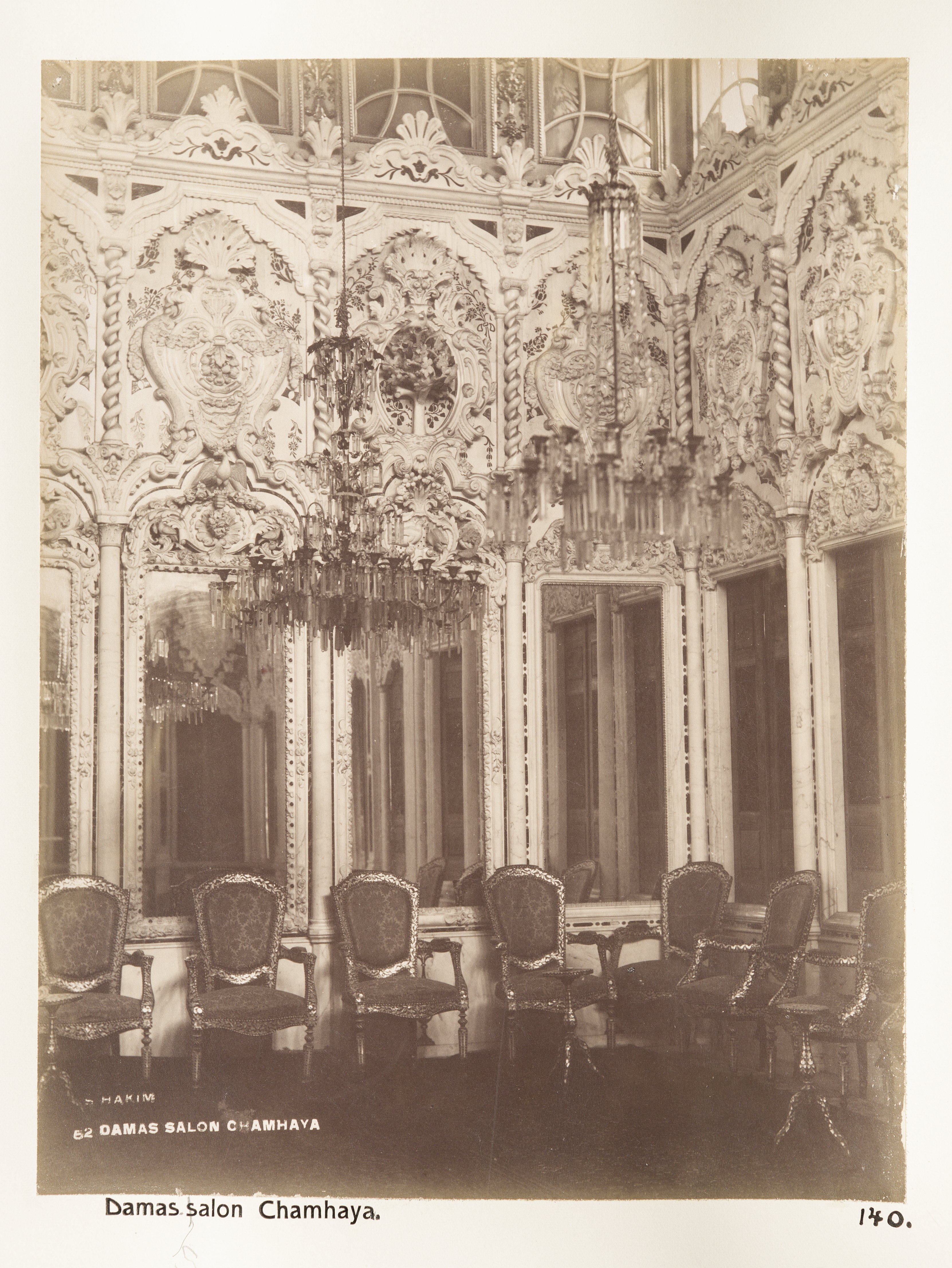 Salon Chamhaya, Damaskus. Fotografierna LXVI:N.01.-180. kommer från resan till Palestina och Syrien som Wilhelmina och Walther von Hallwyl gjorde den 30 mars-27 april 1901. De lämnade Sverige den 5 november 1900 för Egypten, där de stannade till den 28 mars 1901, då de fortsatte till Palestina. Med på resan var Wilhelminas sällskapsdam, fröken Ida Uhse. Den 27 april fortsatte de till Turkiet och Mindre Asien. De mindre fotografierna (utom de från Samos) LXVI:N.90.-100. är tagna av Wilhelmina själv, under en resa till häst från Jerusalem till Damaskus 8-20 april 1901. Övriga fotografier är inköpta av Wilhelmina i Jerusalem, Damaskus och Beirut. Alla uppgifter kommer från Ida Uhses reseanteckningar.