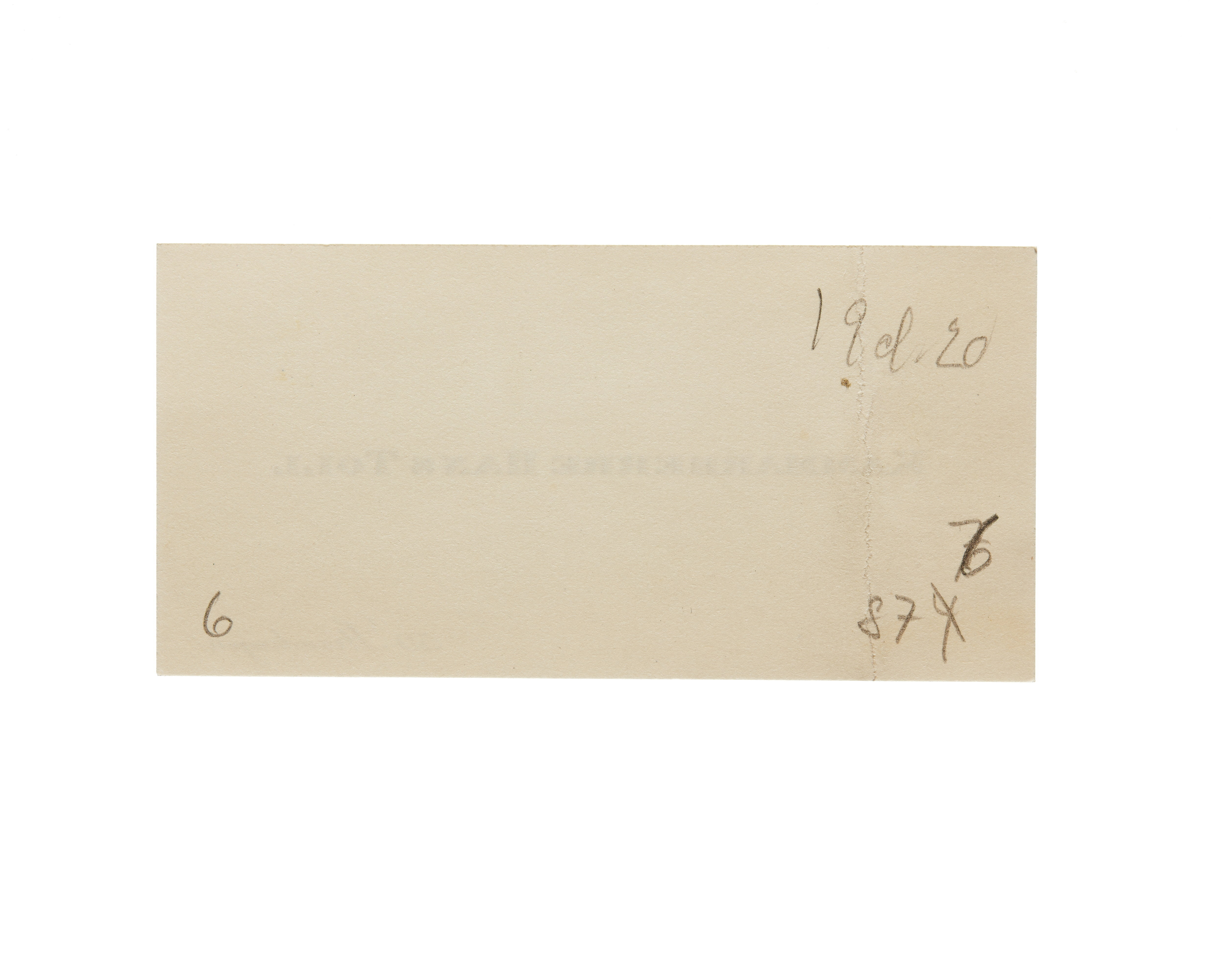 Sex visitkort från Kammarherre Hans Toll. Första kortet daterat 1919, vikt i vänstra sidan. Adress (nedre högra hörnet) 59 Strandvägen, Andra kortet daterat 1919, vikt i vänstra sidan. Tredje kortet daterat 1919, vikt i högra sidan. Fjärde kortet daterat 1919, vikt i högra sidan. Femte kortet daterat 1920, vikt i övre högra hörnet. Sjätte kortet daterat 1920, vikt i vänstra sidan.