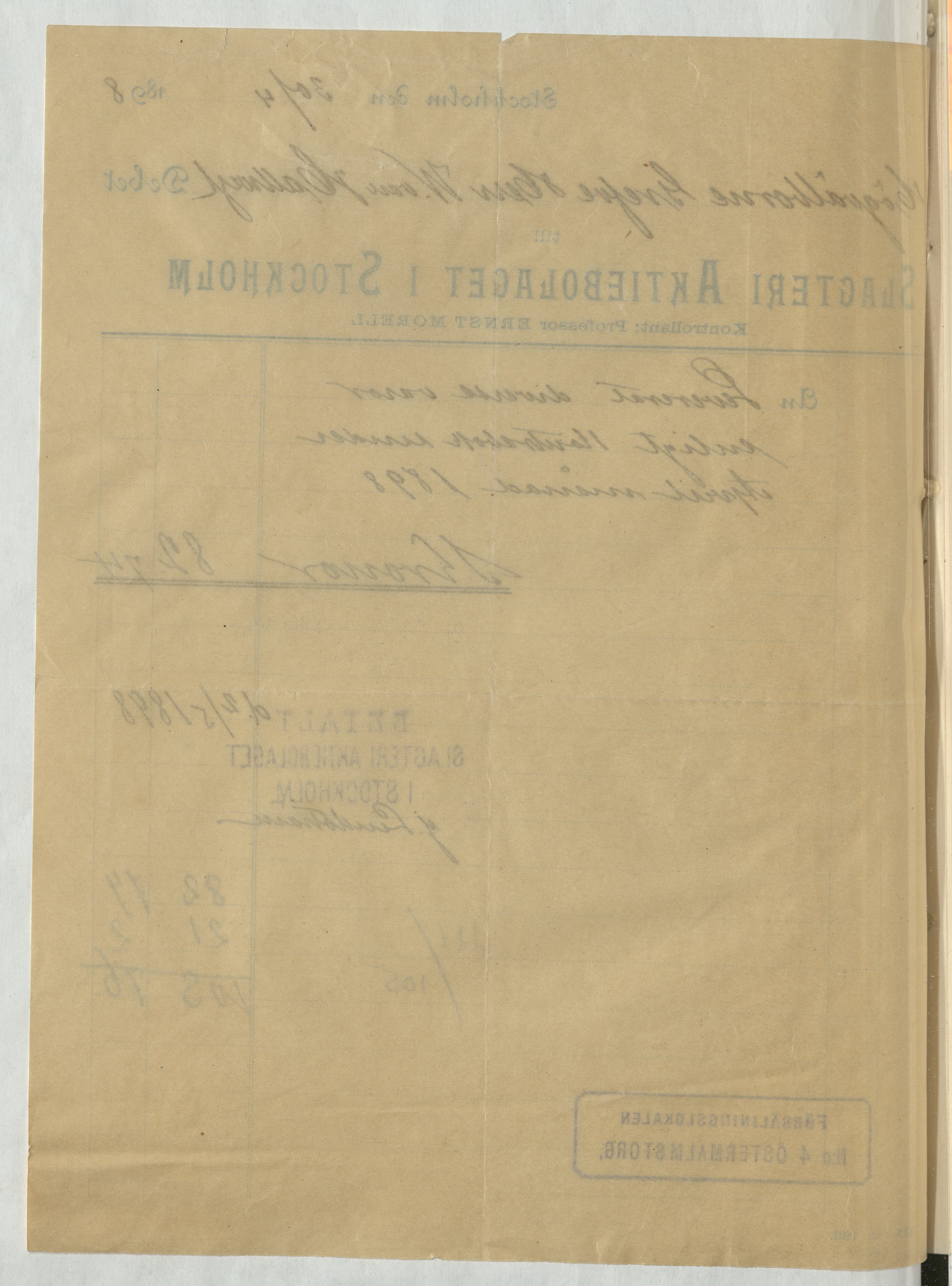 Kvitto från Slagteri Aktiebolaget i Stockholm