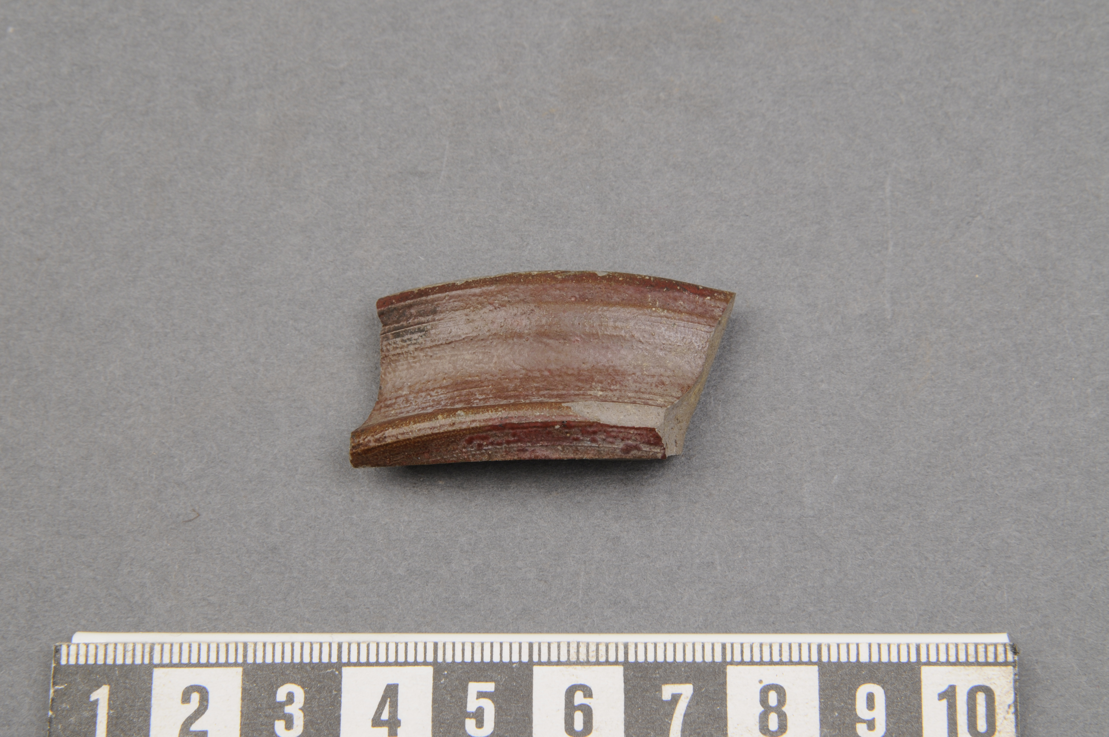 Grått gods, jämn brottyta, rak mynningskant.