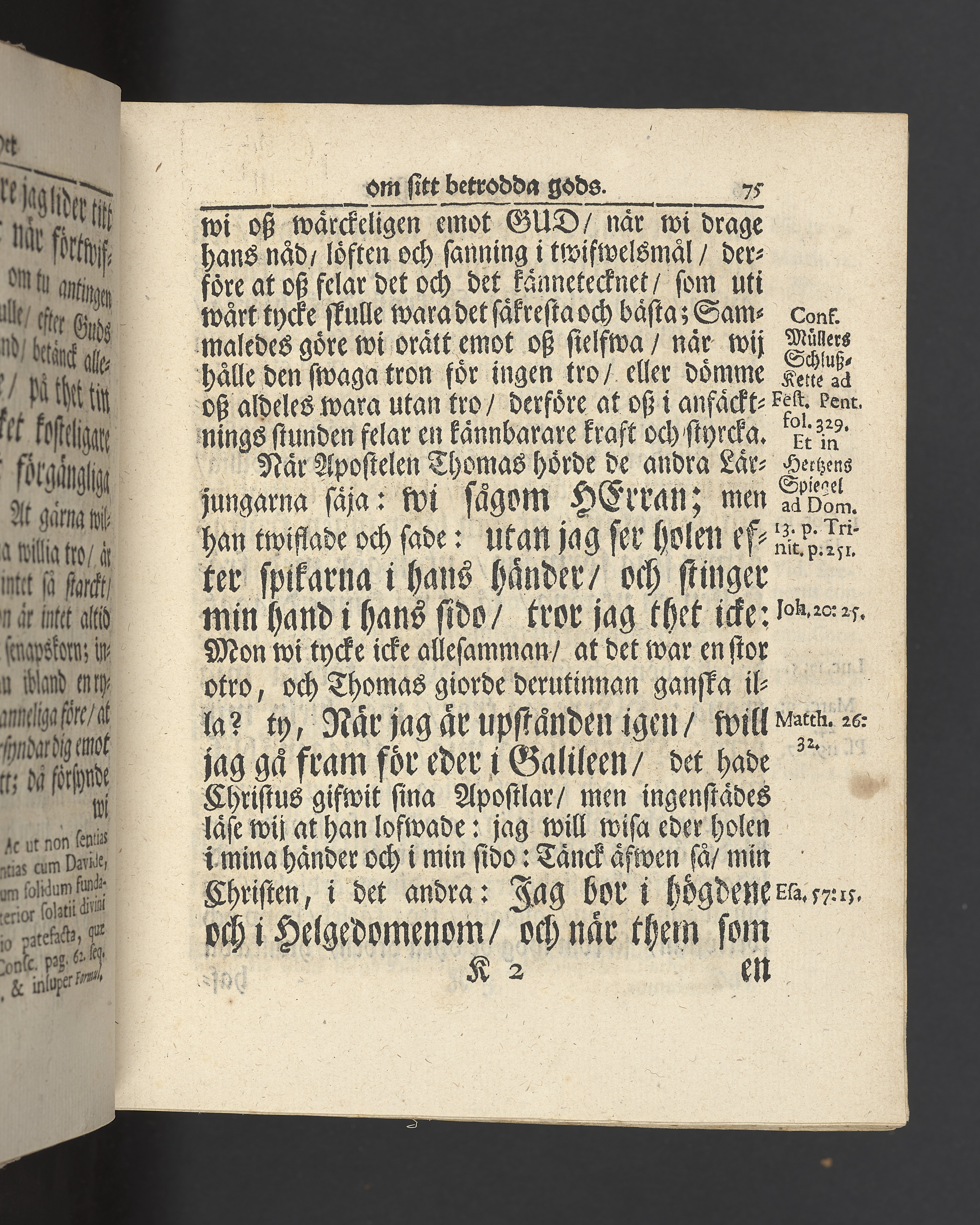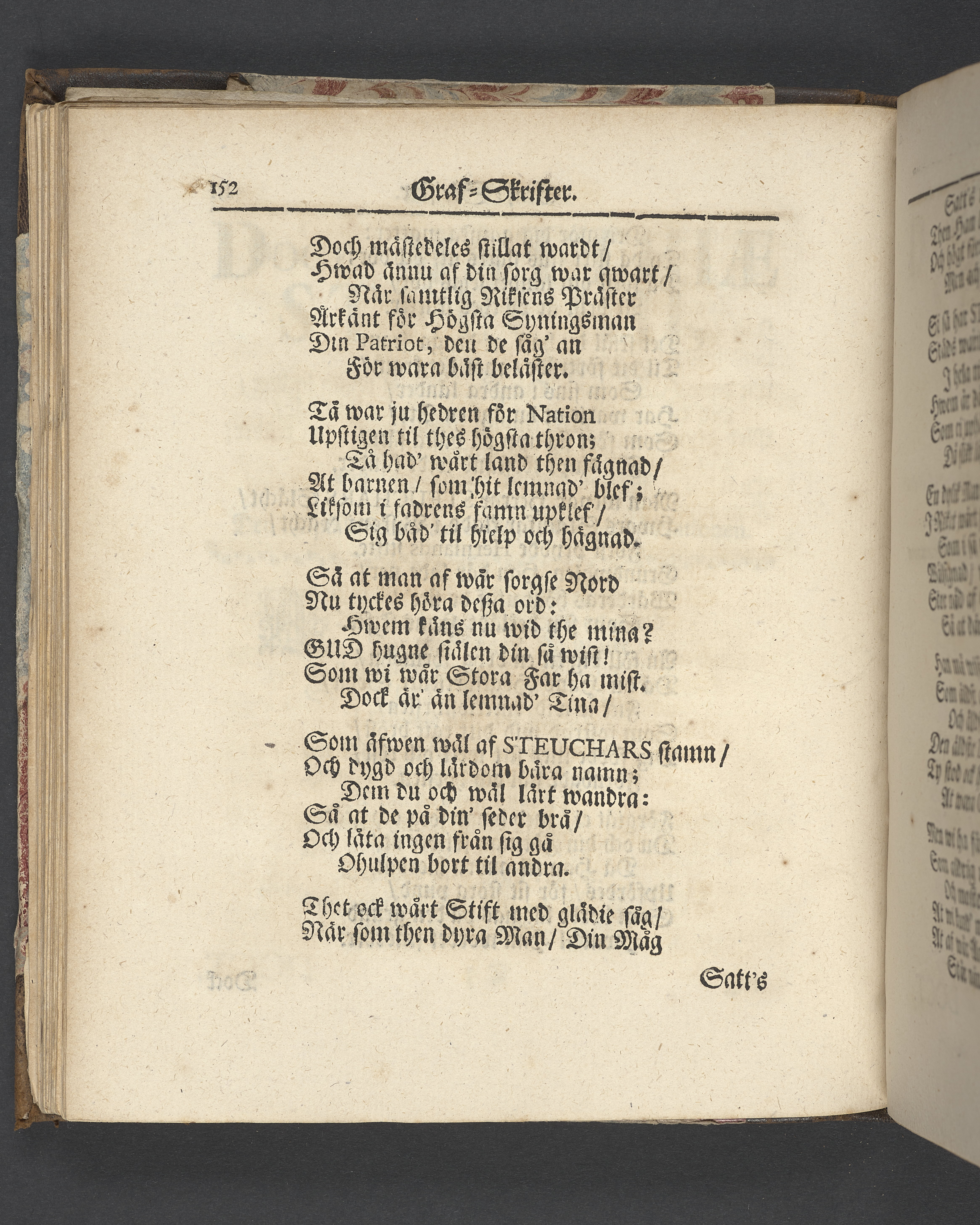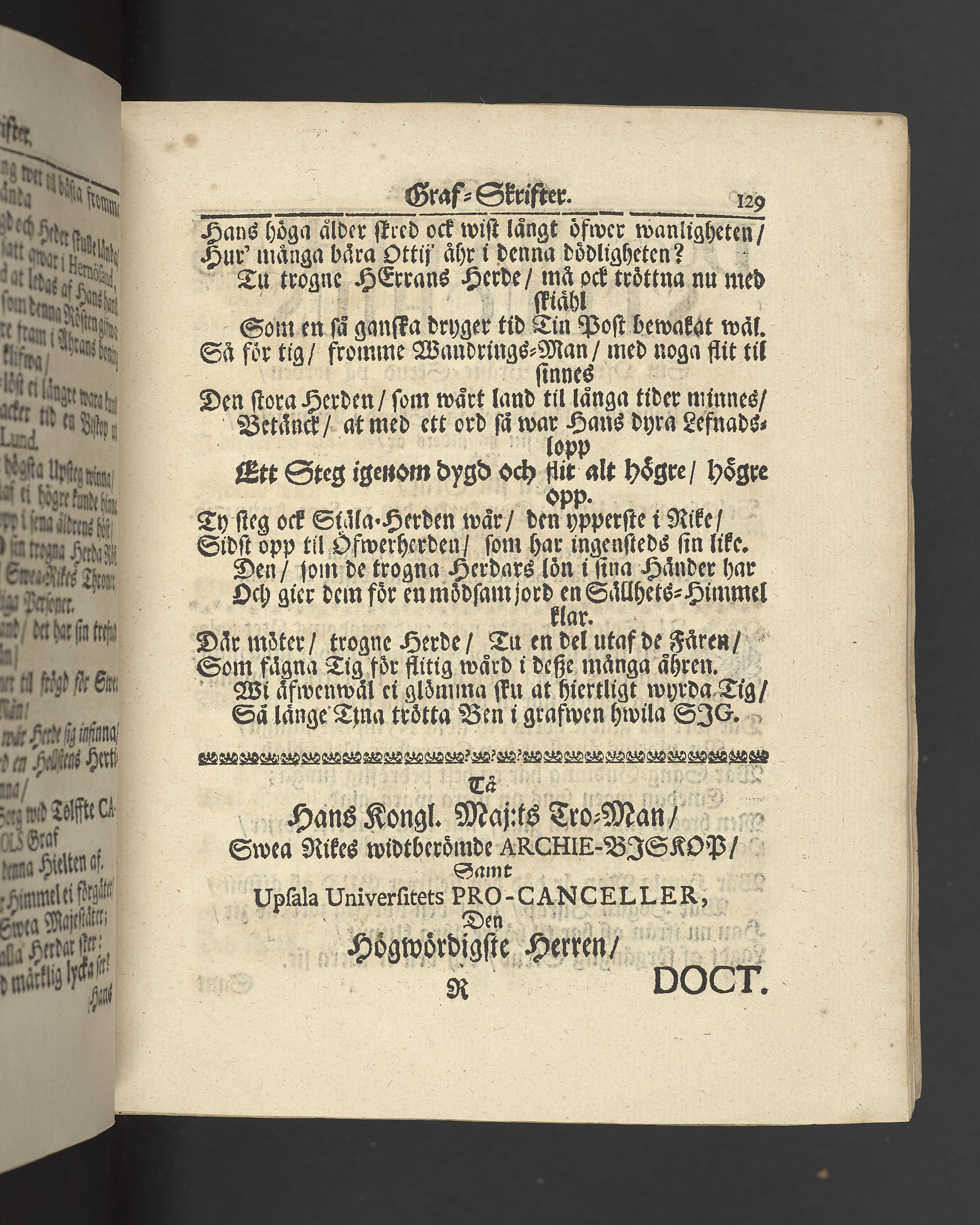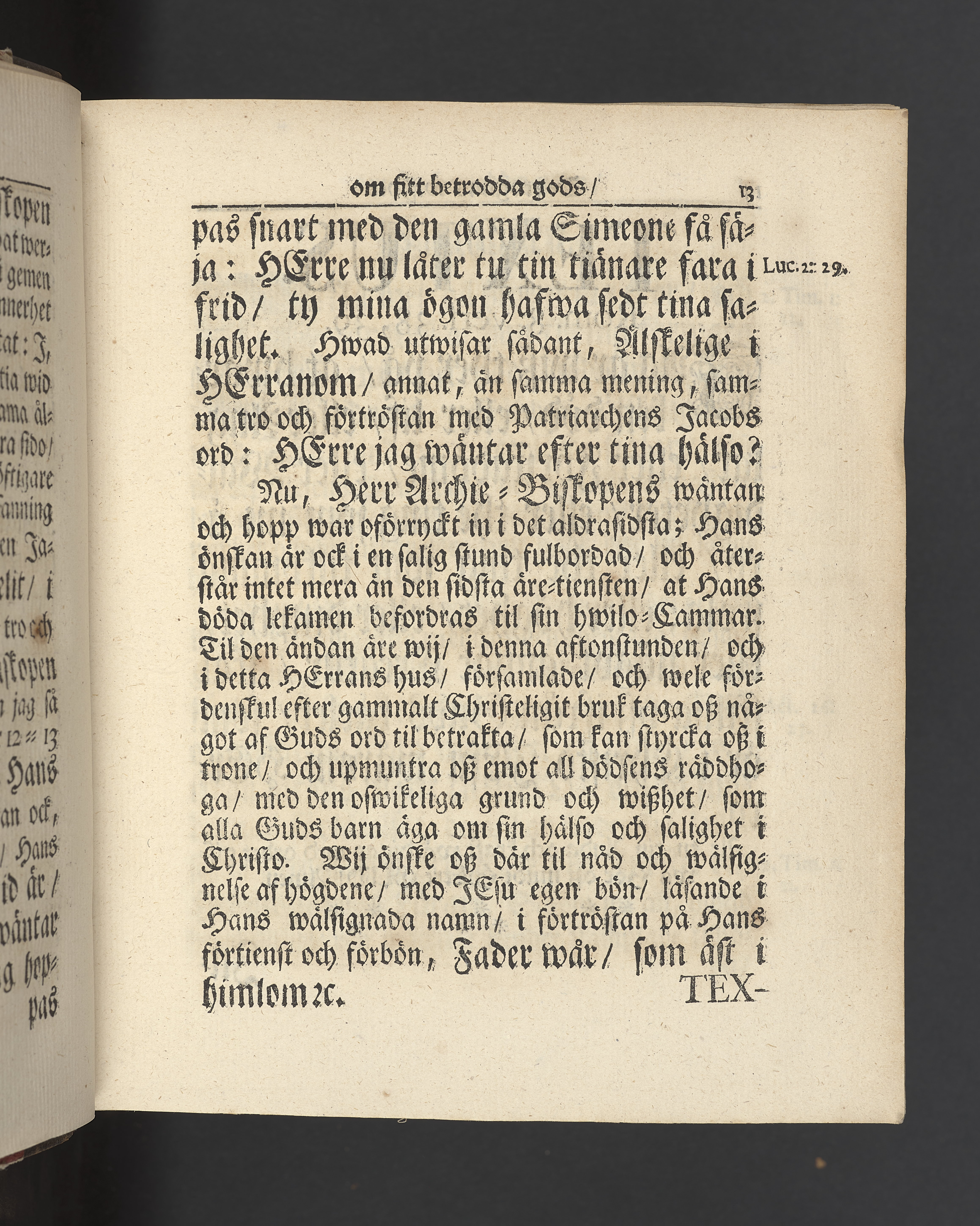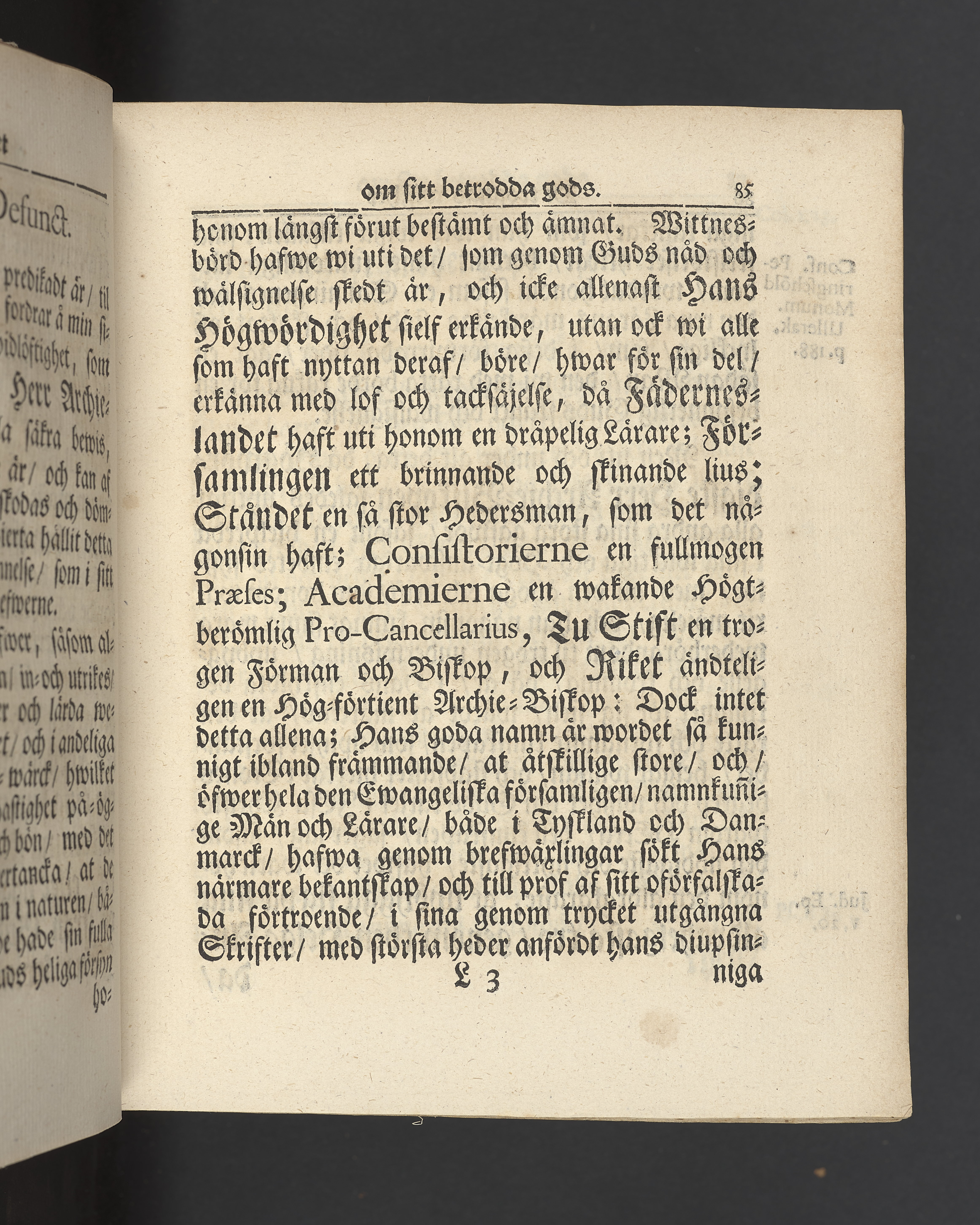 De trognas wiszhet om sitt betrodda gods, eller, deras försäkran om sin ewiga salighet: utaf Guds ord enfaldigt förestäld, då hans kongl. maj:ts tro mann, Swerjes rikes archi-biskop ... Matthias Steuchius, efter en christelig minnes wärd wandel, och deruppå, uti ganska hög och ansenlig ålder, wunnit saligt slut, befordrades, med anständig heder, til sin hwilo-kamar, i Upsala dom-kyrkio, år 1730, den 17. septembris. Af Jöran A. Nordberg ... Stockholm, tryckt hos Joh. Laur. Horrn, kongl. antiqvit. arch. boktr.