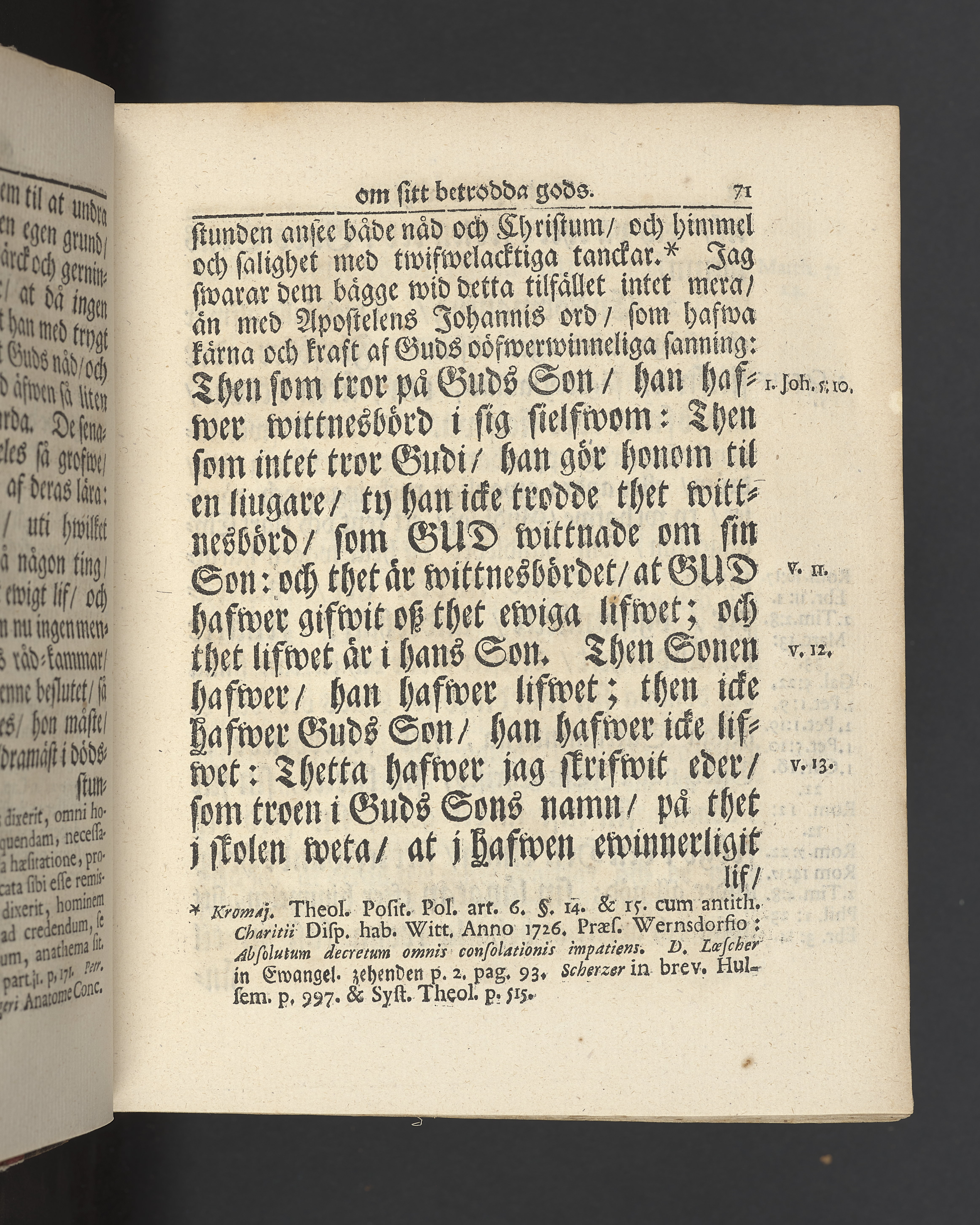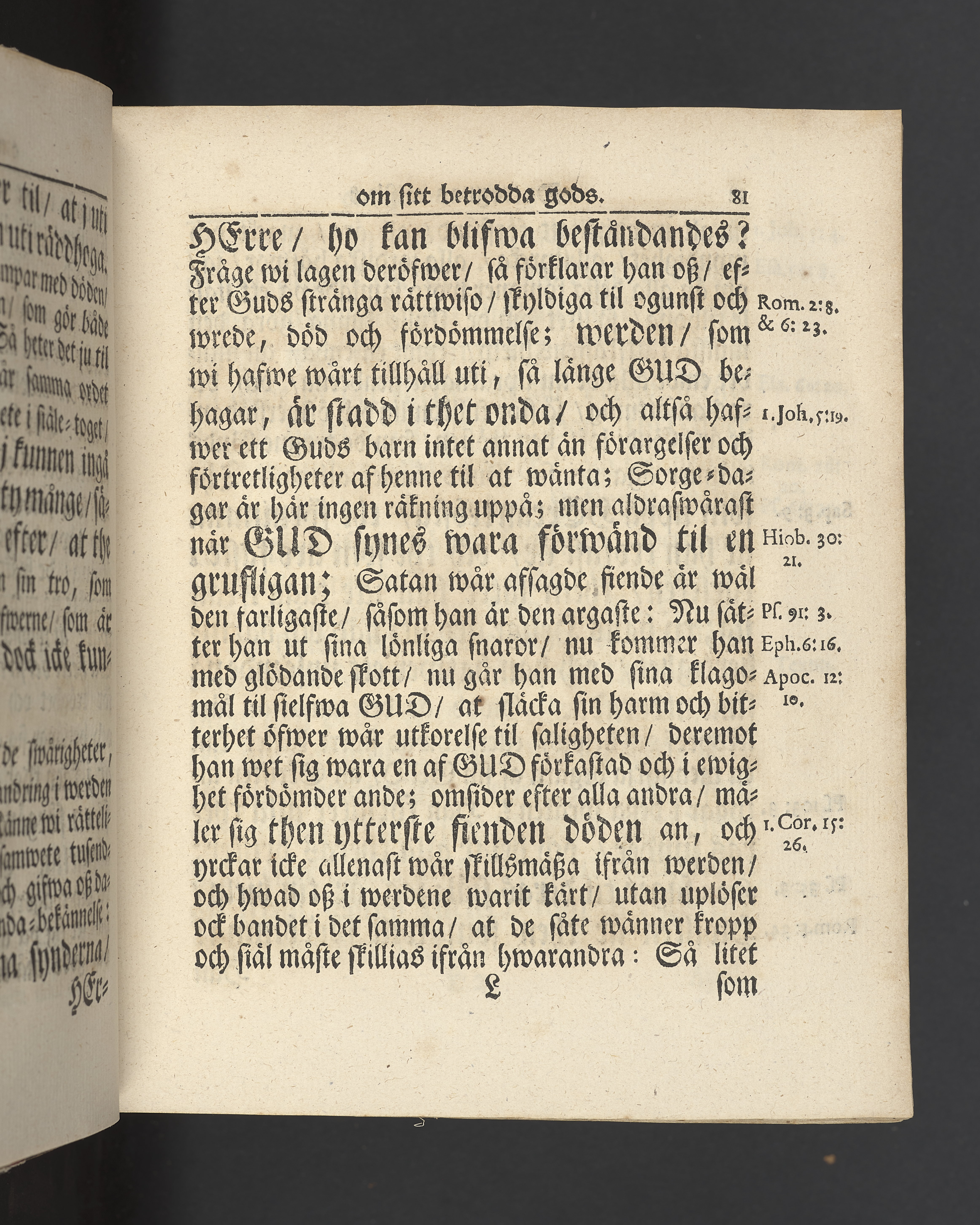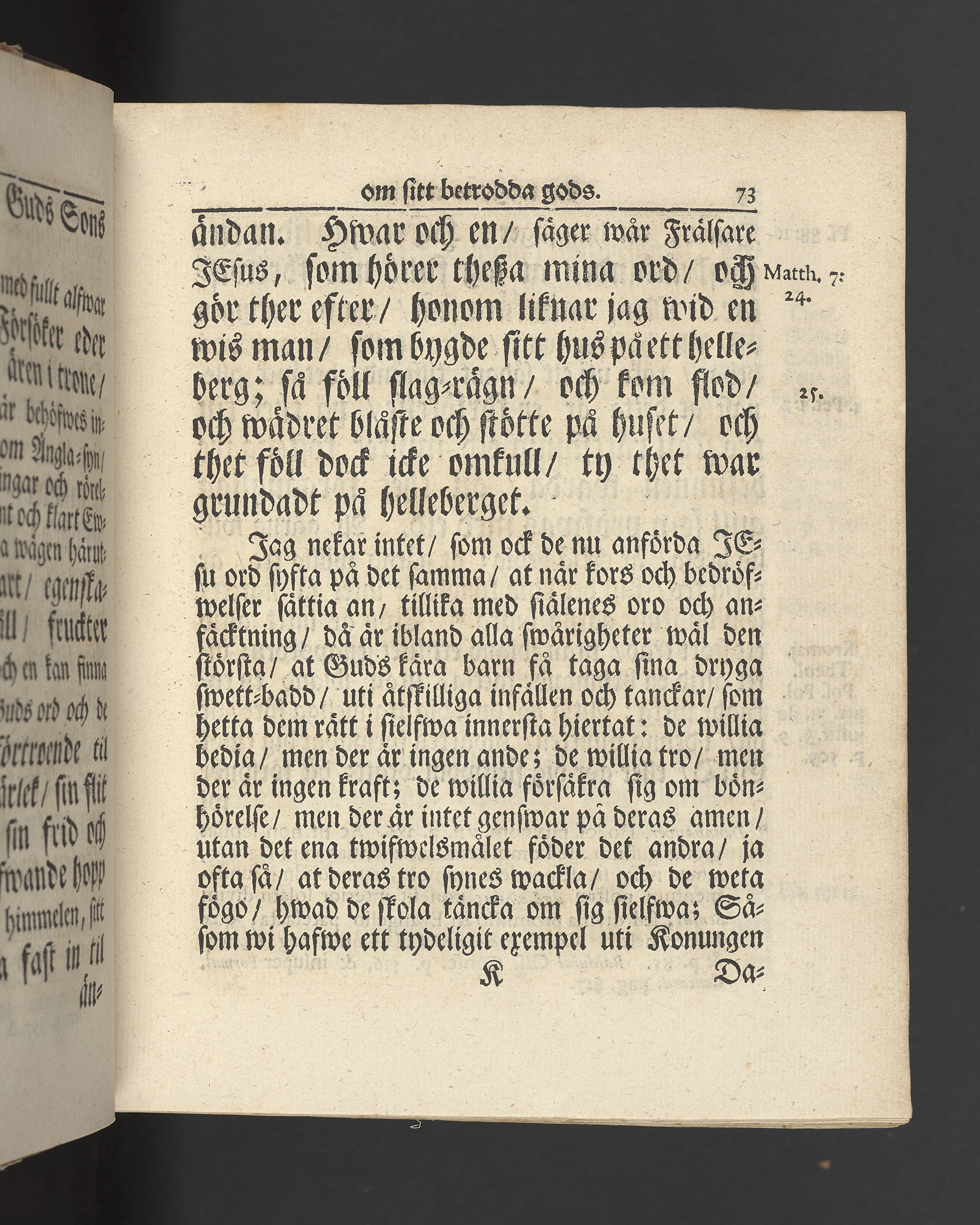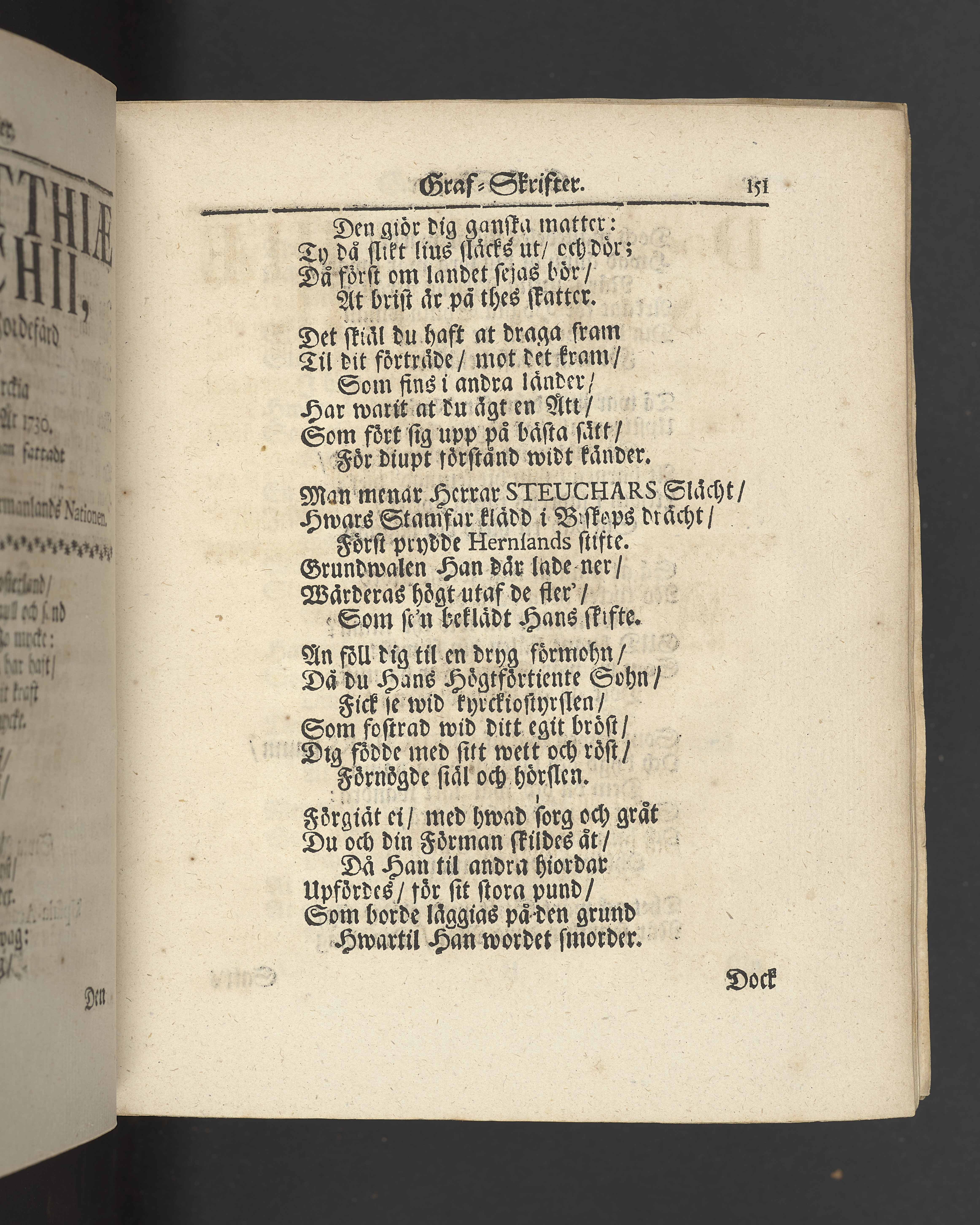 De trognas wiszhet om sitt betrodda gods, eller, deras försäkran om sin ewiga salighet: utaf Guds ord enfaldigt förestäld, då hans kongl. maj:ts tro mann, Swerjes rikes archi-biskop ... Matthias Steuchius, efter en christelig minnes wärd wandel, och deruppå, uti ganska hög och ansenlig ålder, wunnit saligt slut, befordrades, med anständig heder, til sin hwilo-kamar, i Upsala dom-kyrkio, år 1730, den 17. septembris. Af Jöran A. Nordberg ... Stockholm, tryckt hos Joh. Laur. Horrn, kongl. antiqvit. arch. boktr.