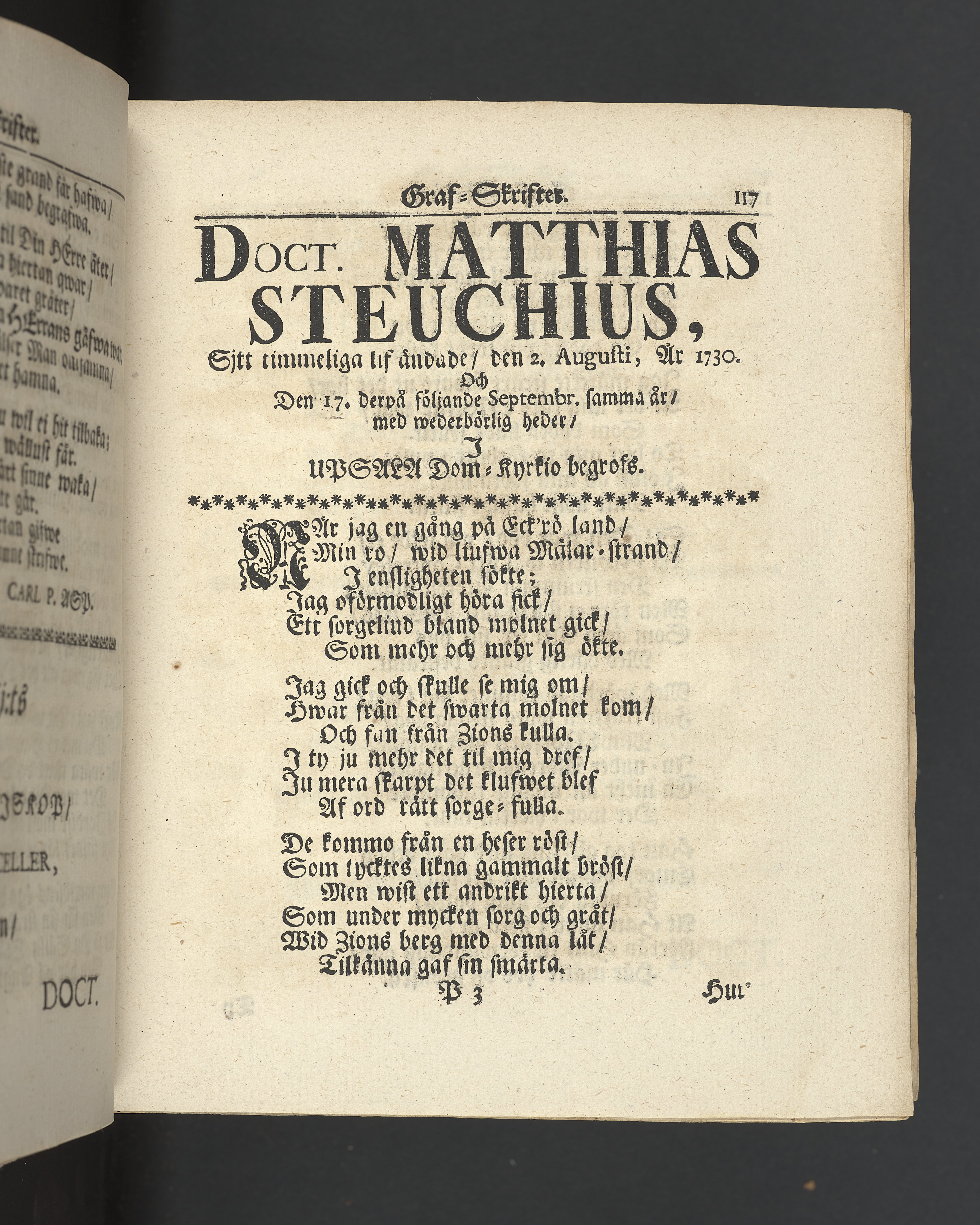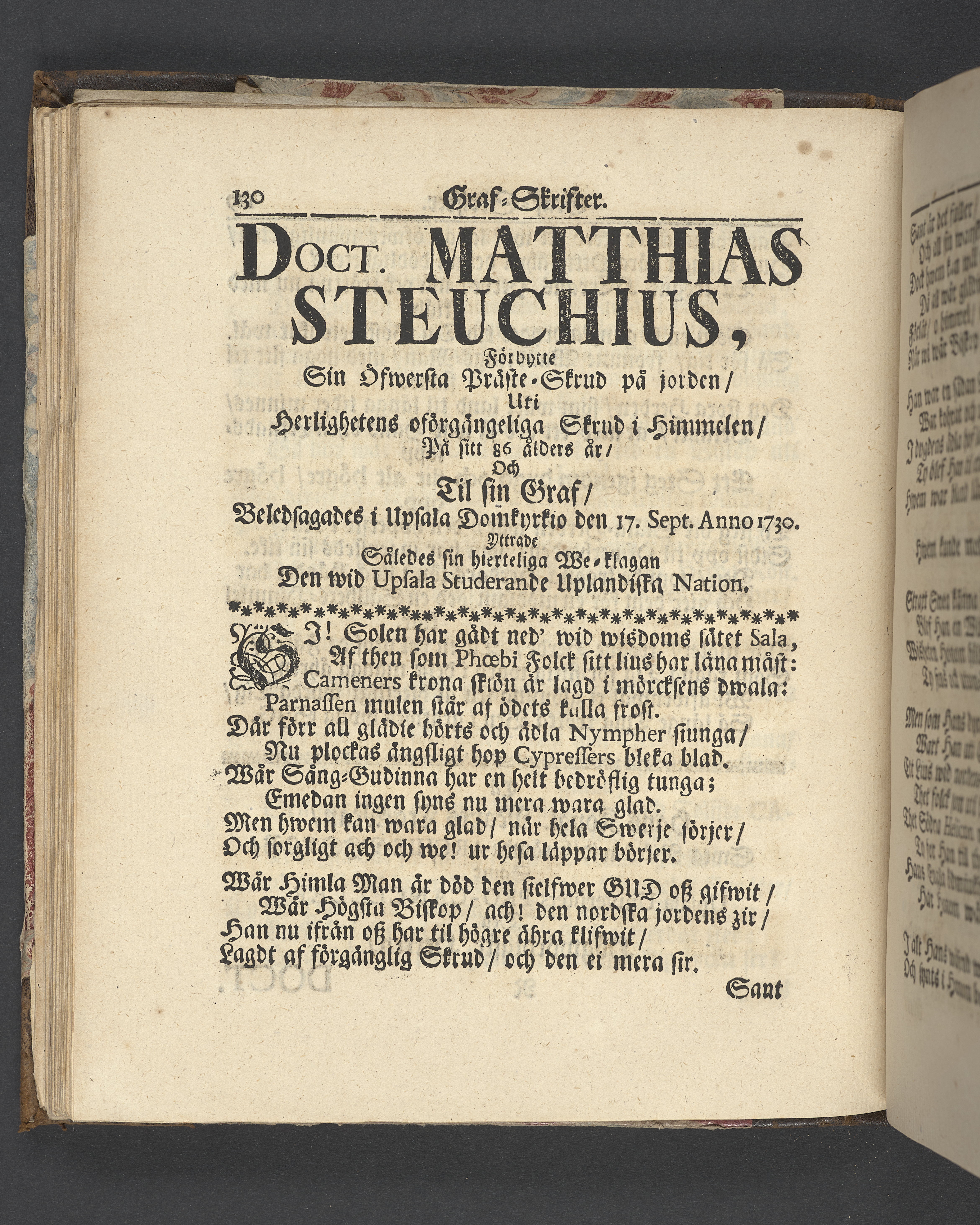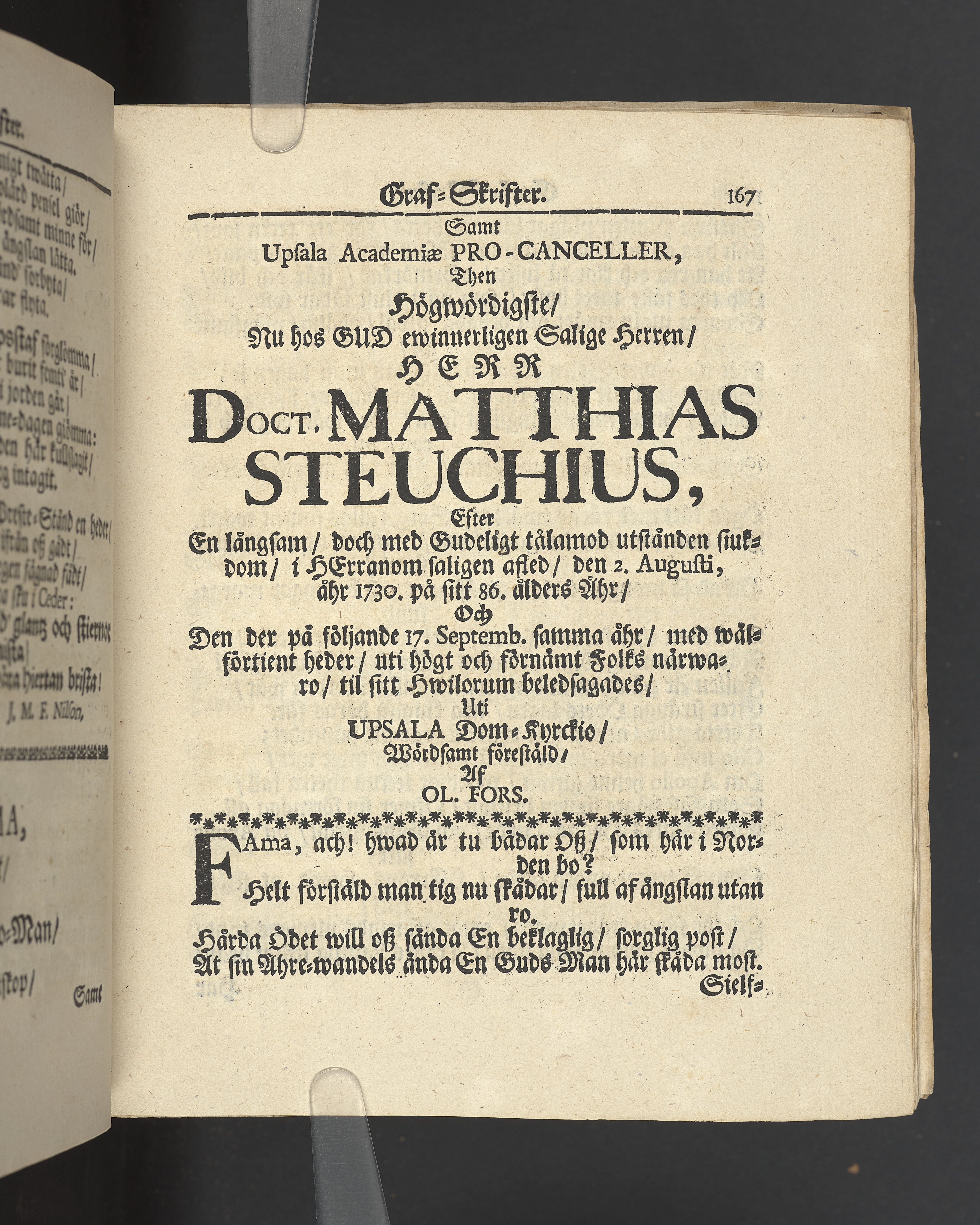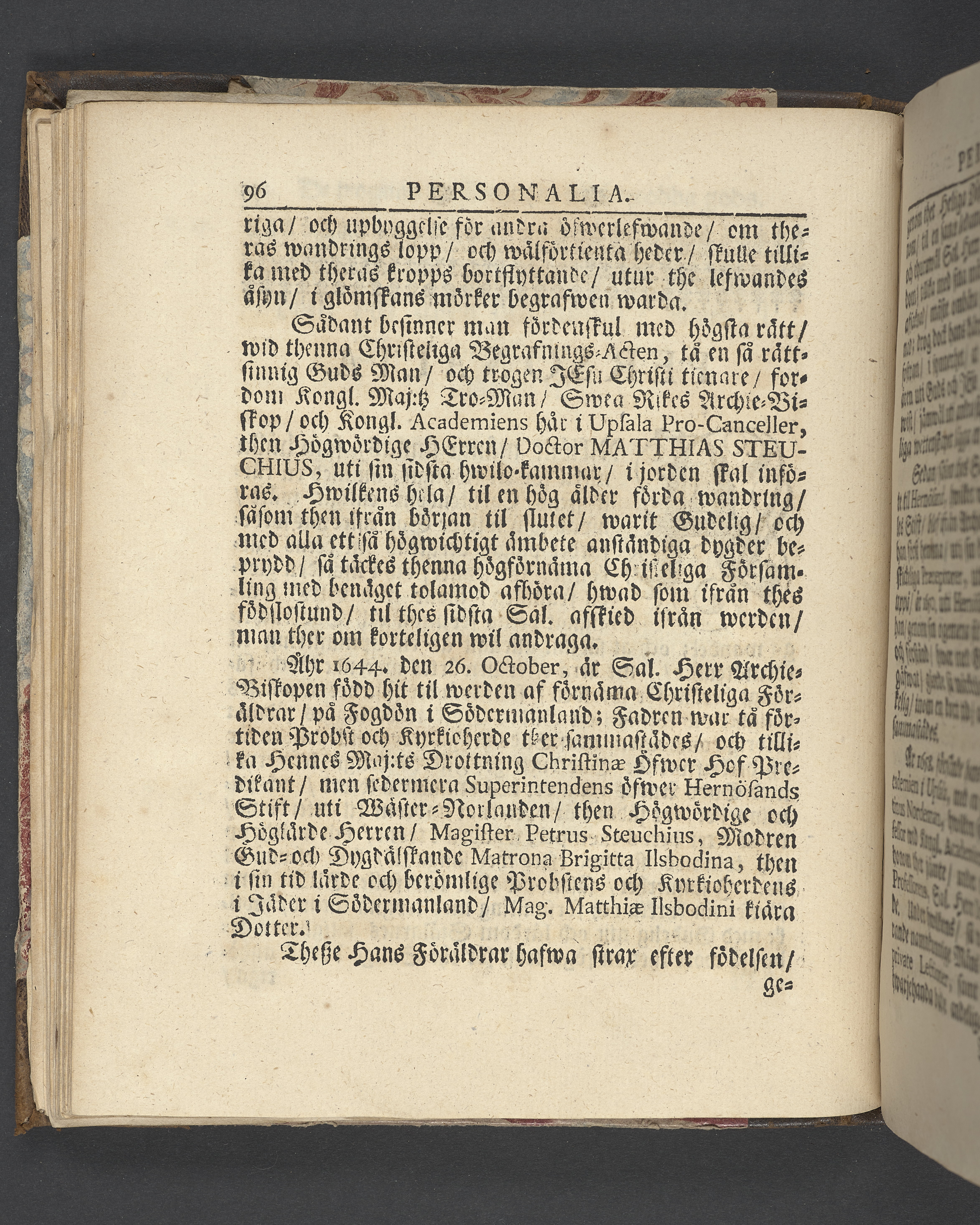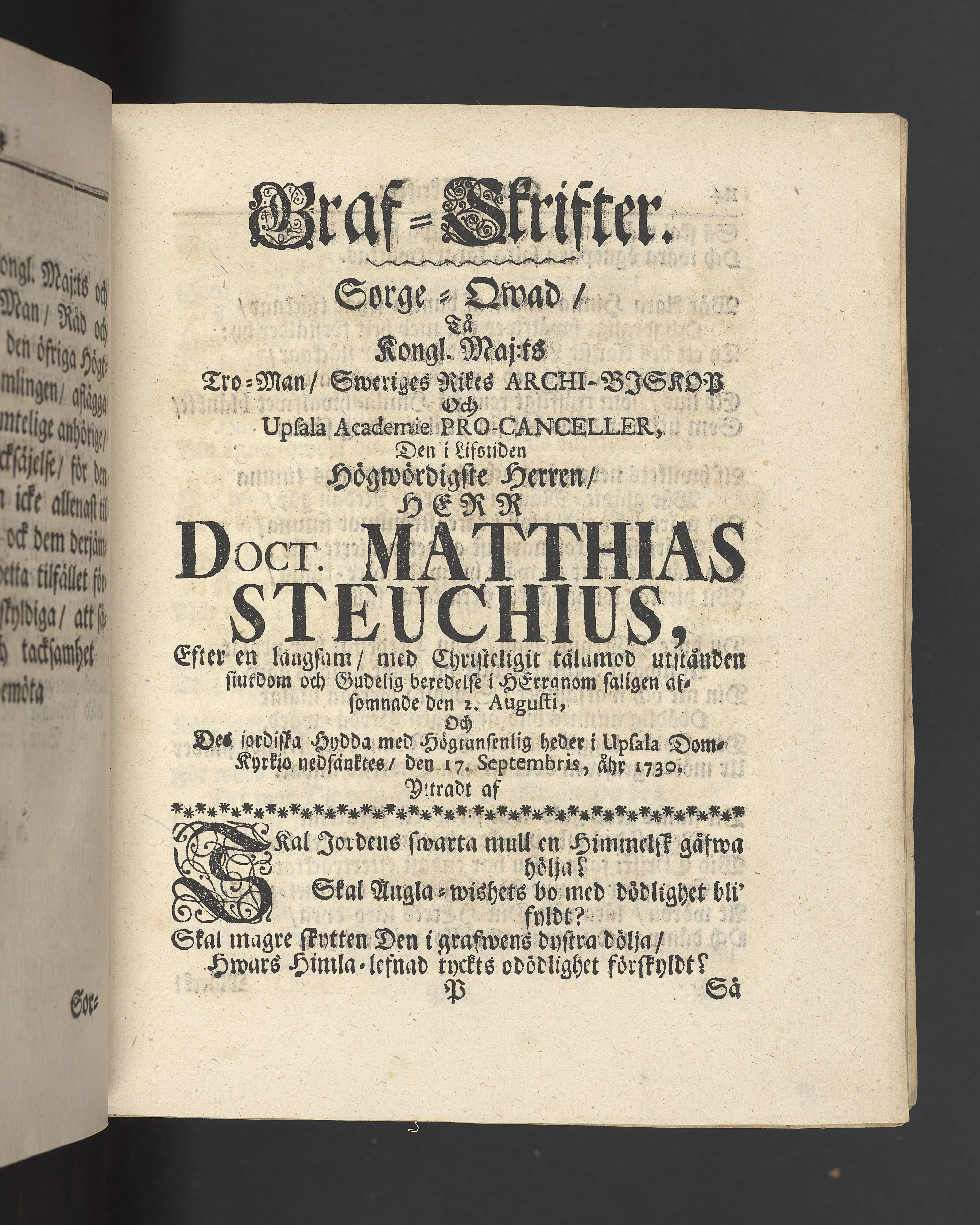 Begravningen av ärkebiskop Matthias Steuchius (Omnämnd på/i)