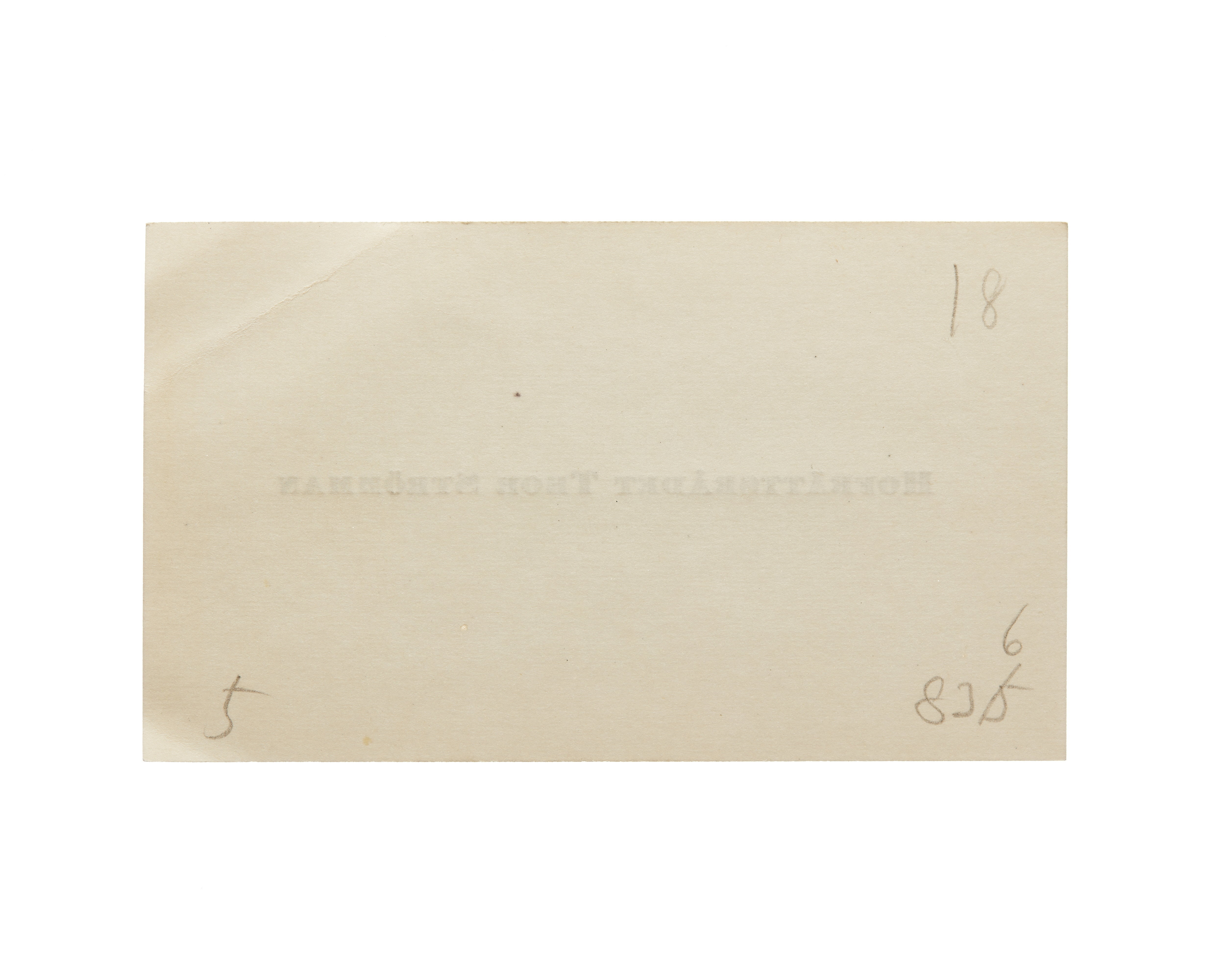 Elva visitkort från Hovrättsrådet Thor Strömman. Första kortet är utan datum, vikt i övre högra hörnet. Andra kortet är utan datum, vikt i övre högra hörnet. Tredje kortet daterat 1917, vikt i övre högra hörnet. Fjärde kortet daterat 1918, vikt i övre högra hörnet. Femte kortet daterat 1918, vikt i övre högra hörnet. Sjätte kortet daterat 1920, vikt i övre högra hörnet. Sjunde kortet daterat 1921, vikt i övre högra hörnet. Åttonde kortet daterat 1922 samt sorgkant, vikt i övre högra hörnet. Nionde kortet daterat 1924. Tionde kortet daterat 1925, vikt i övre högra hörnet. Elfte kortet daterat 1926, vikt i övre högra hörnet.