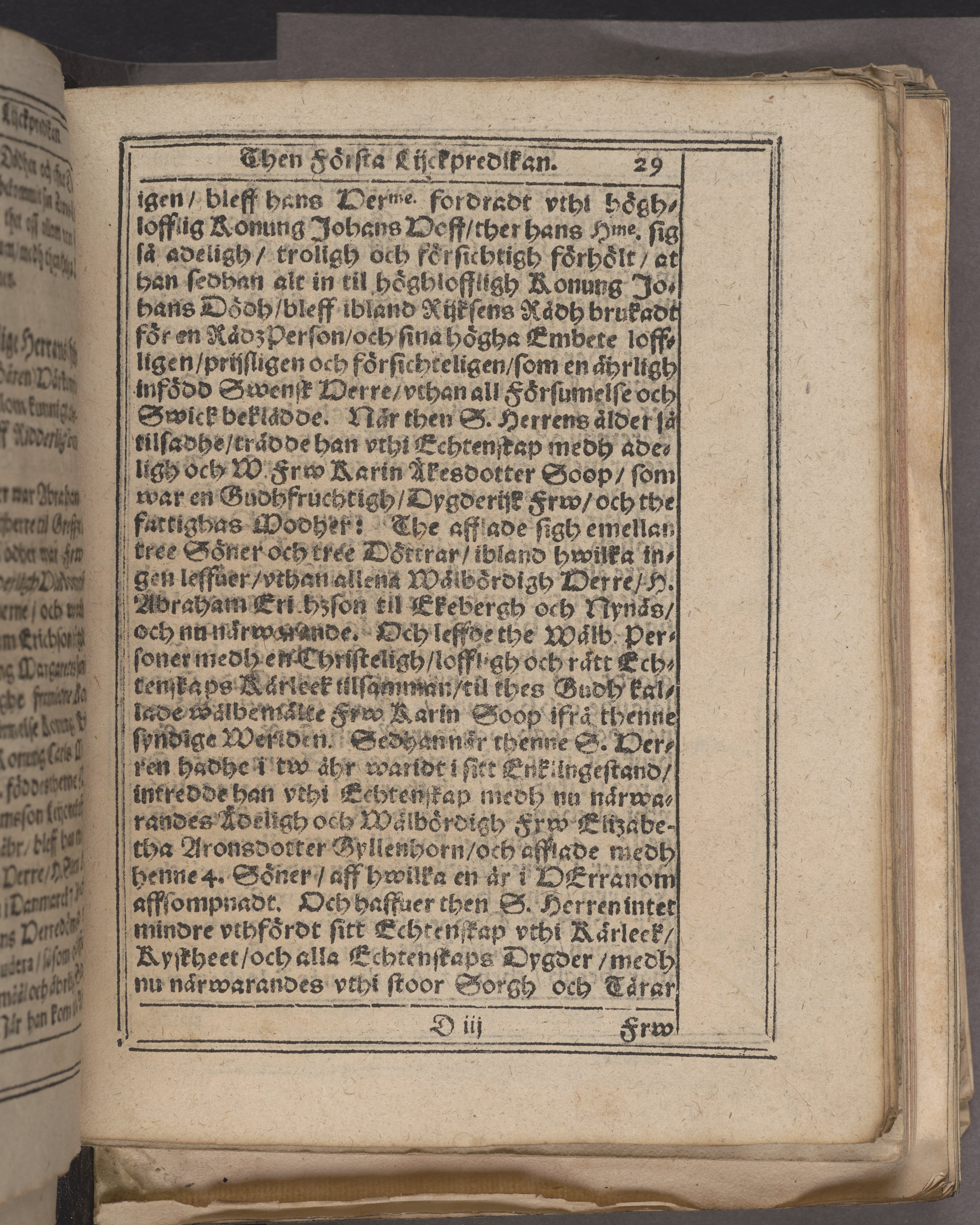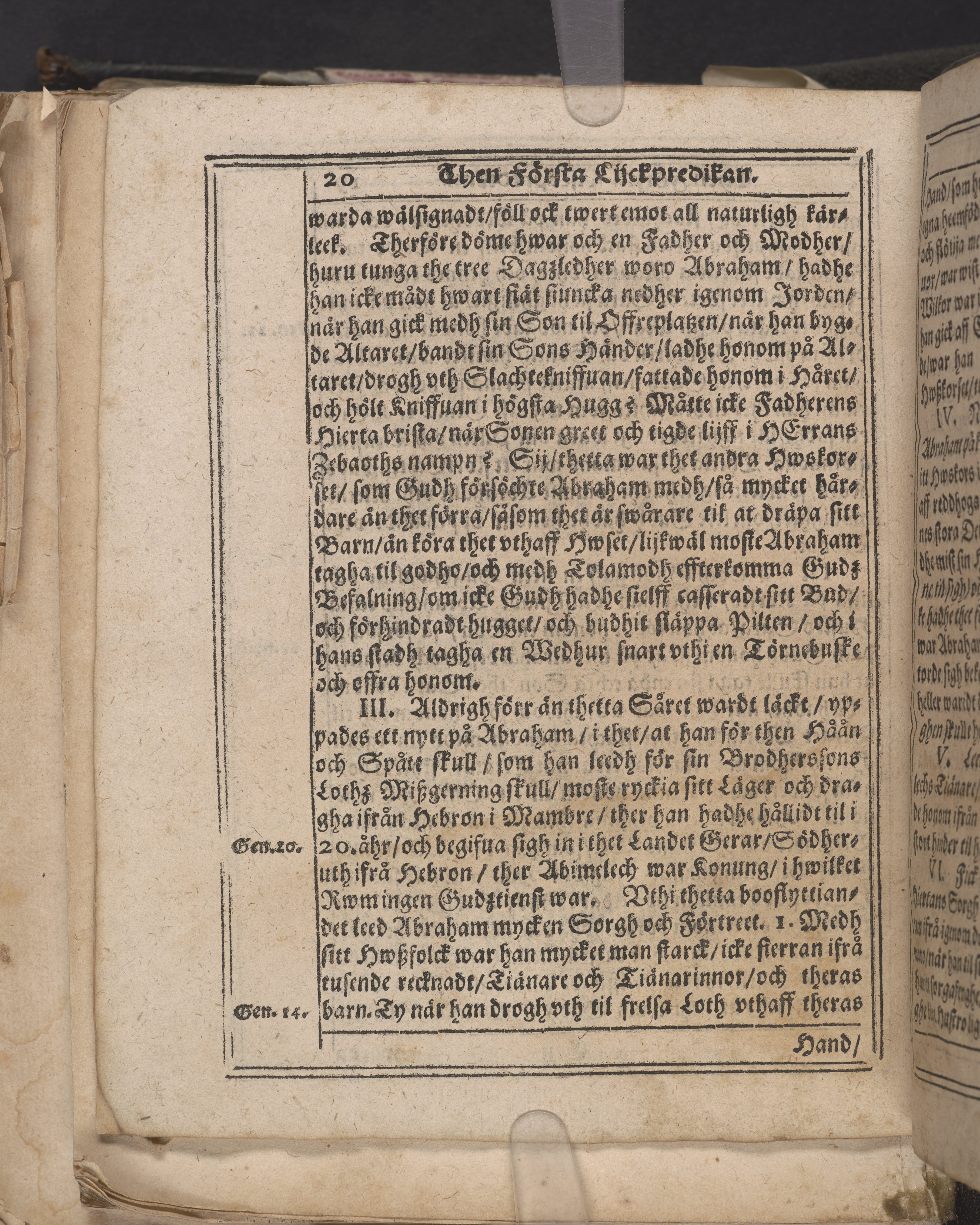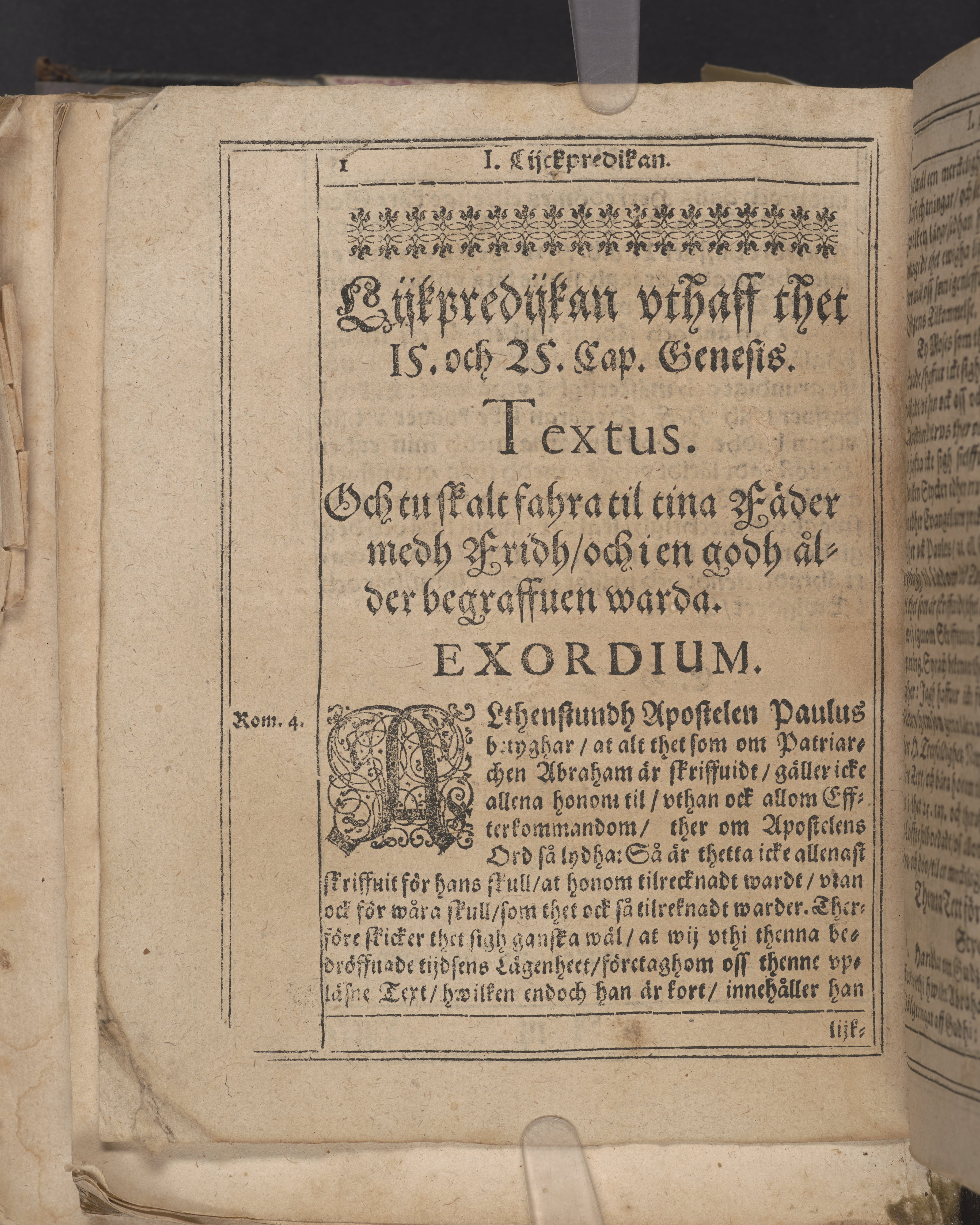 Twå lijkpredickningar, författade och håldne, aff Laurentio Benedicti Tuneboensi. Then första: Vthöffuer then edle, wälborne herre, Herr Erick Abrahamsson Leijonhuffuudh, frijherre til Ådöö ... tå hans herredömes s. lijk begroffs i Glaushammar, hwilket skedde, åhr 1616. then 28. julij. Then andra: Vthöffuer hans herredömes elskelige käre sons lijk, then edle, wälborne herre, Herr Abraham Leijonhuffuudh, Sweriges rijkes rådh och laghman vthi Nerike. Hwilkens s. lijk begroffs i Lillekyrkia, trettondedagh juul, åhr 1618 ... Tryckt i Stockholm aff Chr. Reusner, åhr 1620.