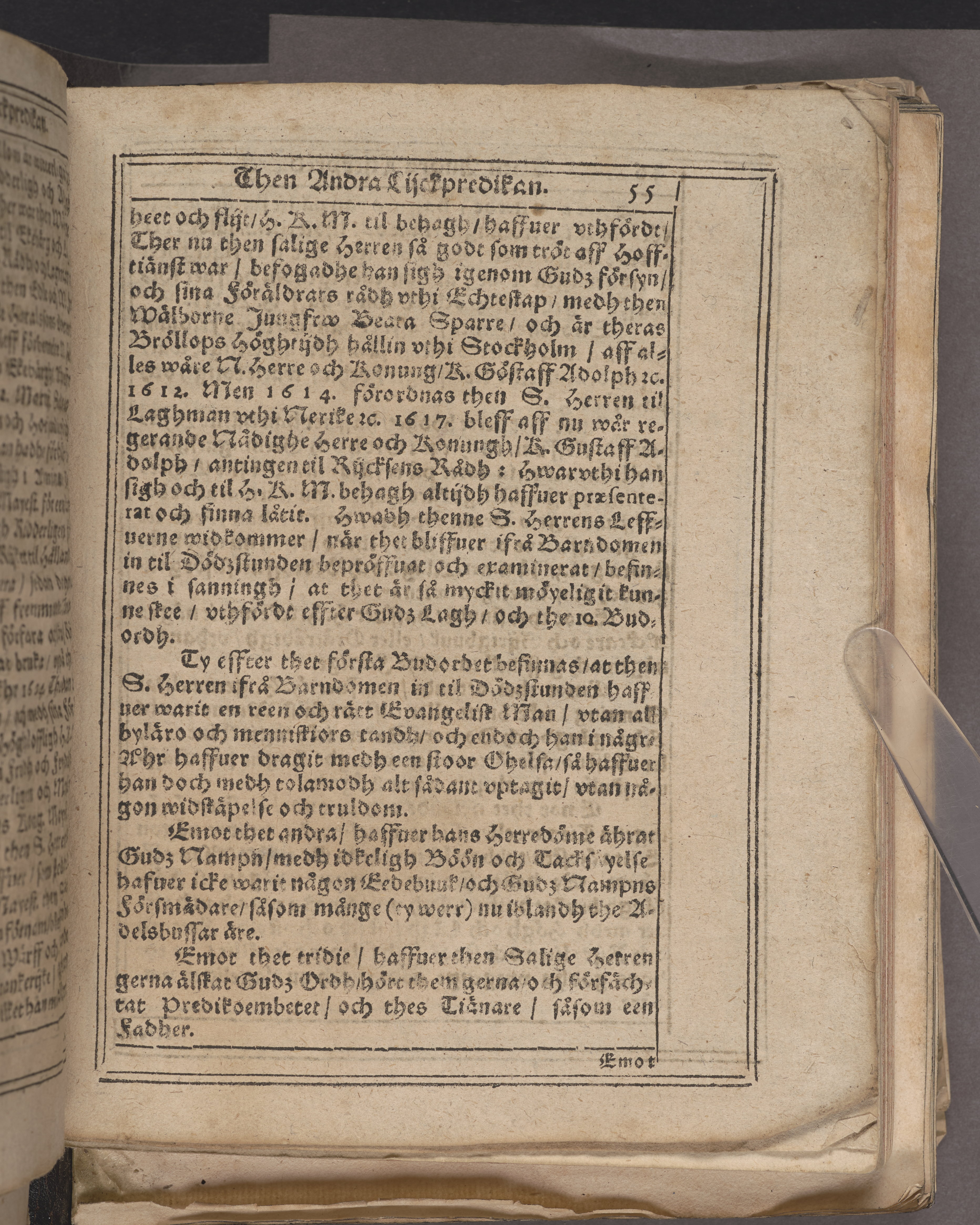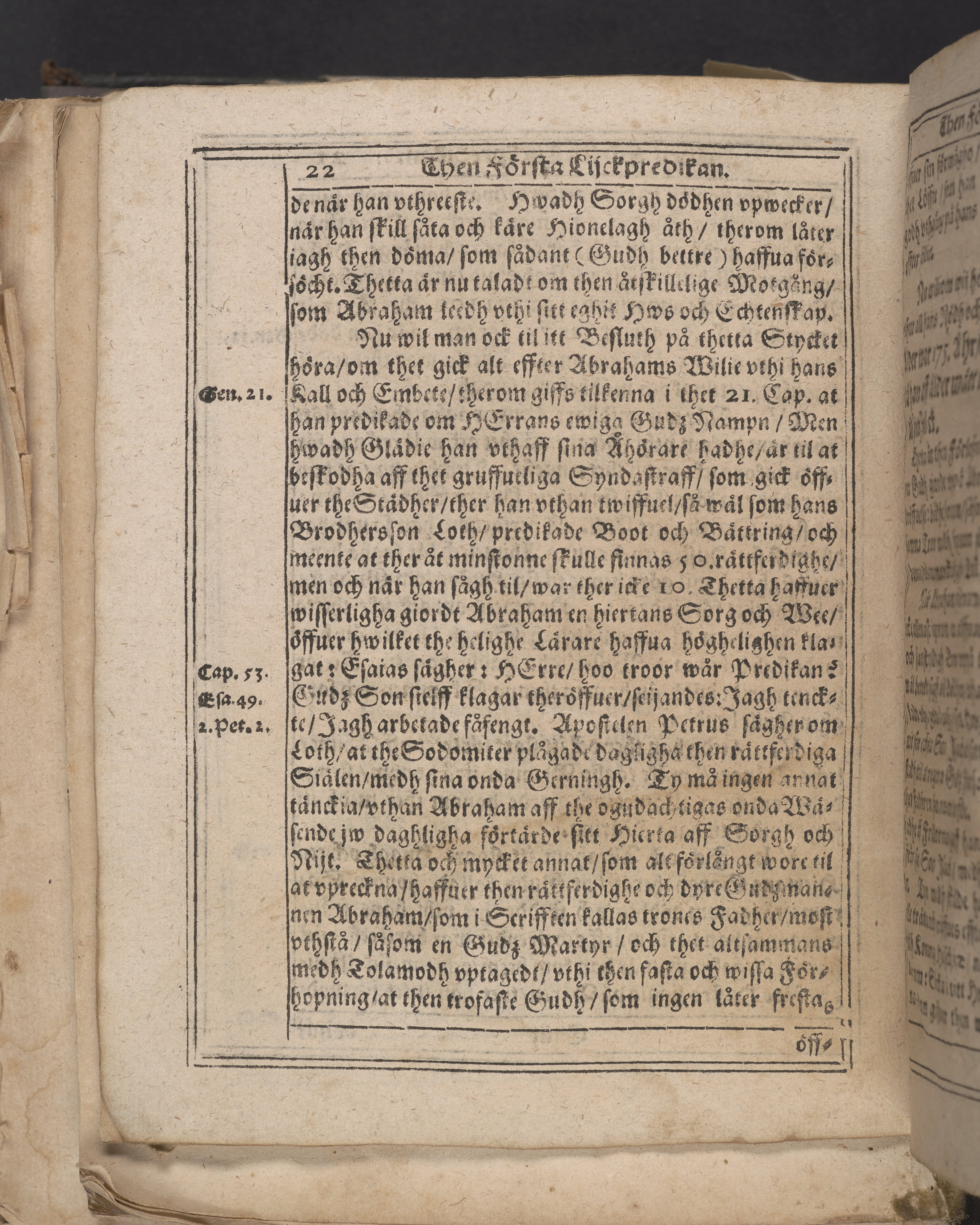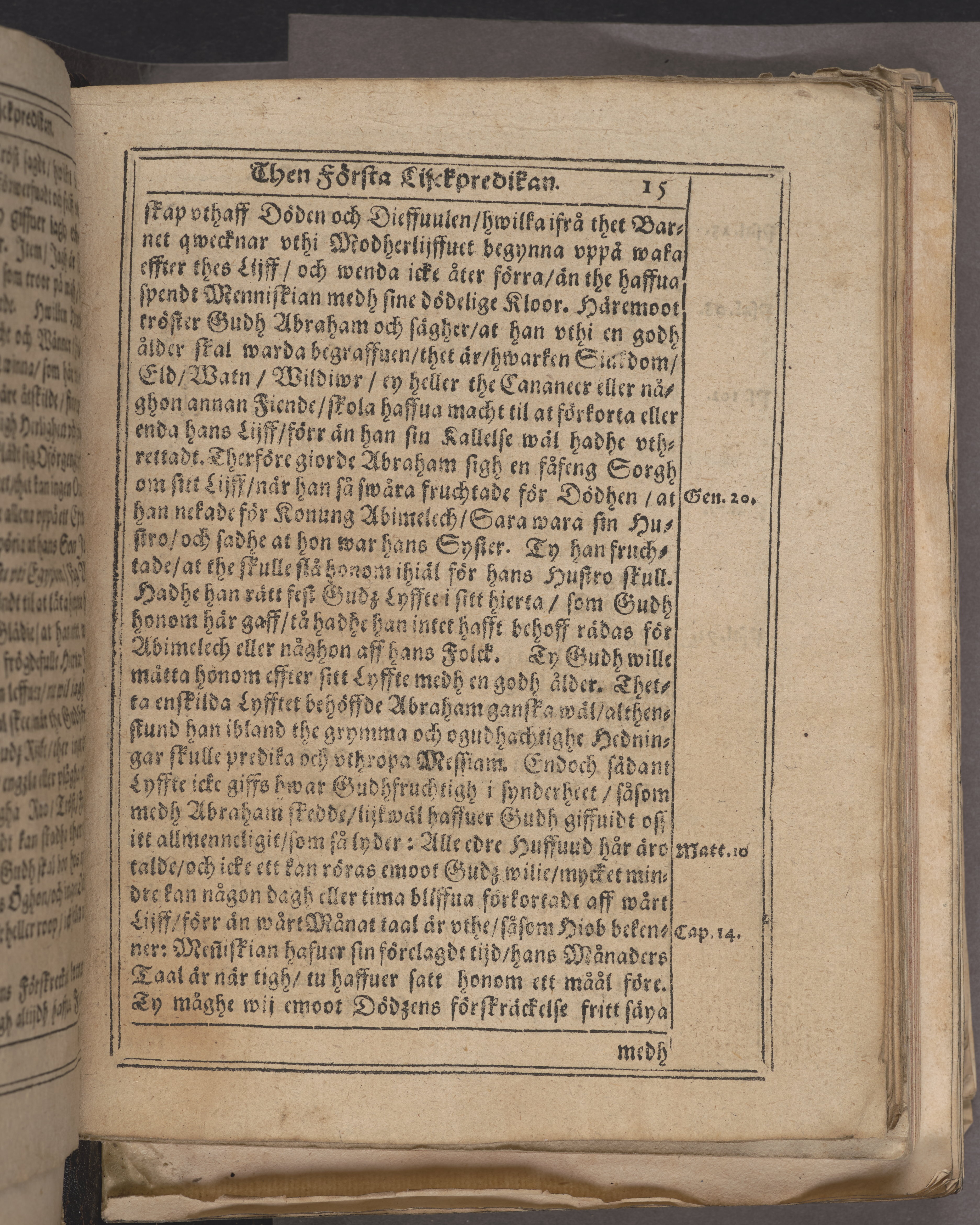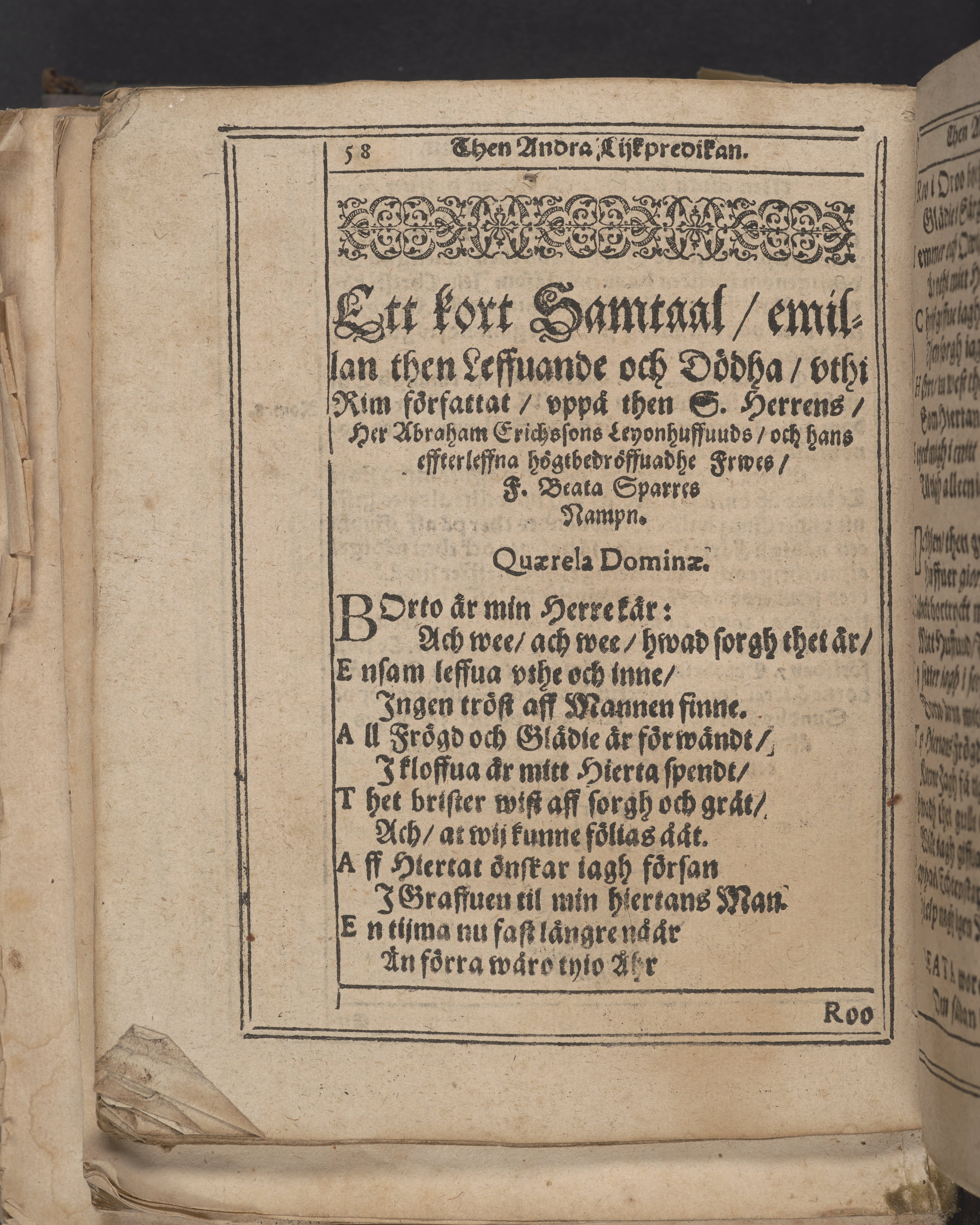Twå lijkpredickningar, författade och håldne, aff Laurentio Benedicti Tuneboensi. Then första: Vthöffuer then edle, wälborne herre, Herr Erick Abrahamsson Leijonhuffuudh, frijherre til Ådöö ... tå hans herredömes s. lijk begroffs i Glaushammar, hwilket skedde, åhr 1616. then 28. julij. Then andra: Vthöffuer hans herredömes elskelige käre sons lijk, then edle, wälborne herre, Herr Abraham Leijonhuffuudh, Sweriges rijkes rådh och laghman vthi Nerike. Hwilkens s. lijk begroffs i Lillekyrkia, trettondedagh juul, åhr 1618 ... Tryckt i Stockholm aff Chr. Reusner, åhr 1620.