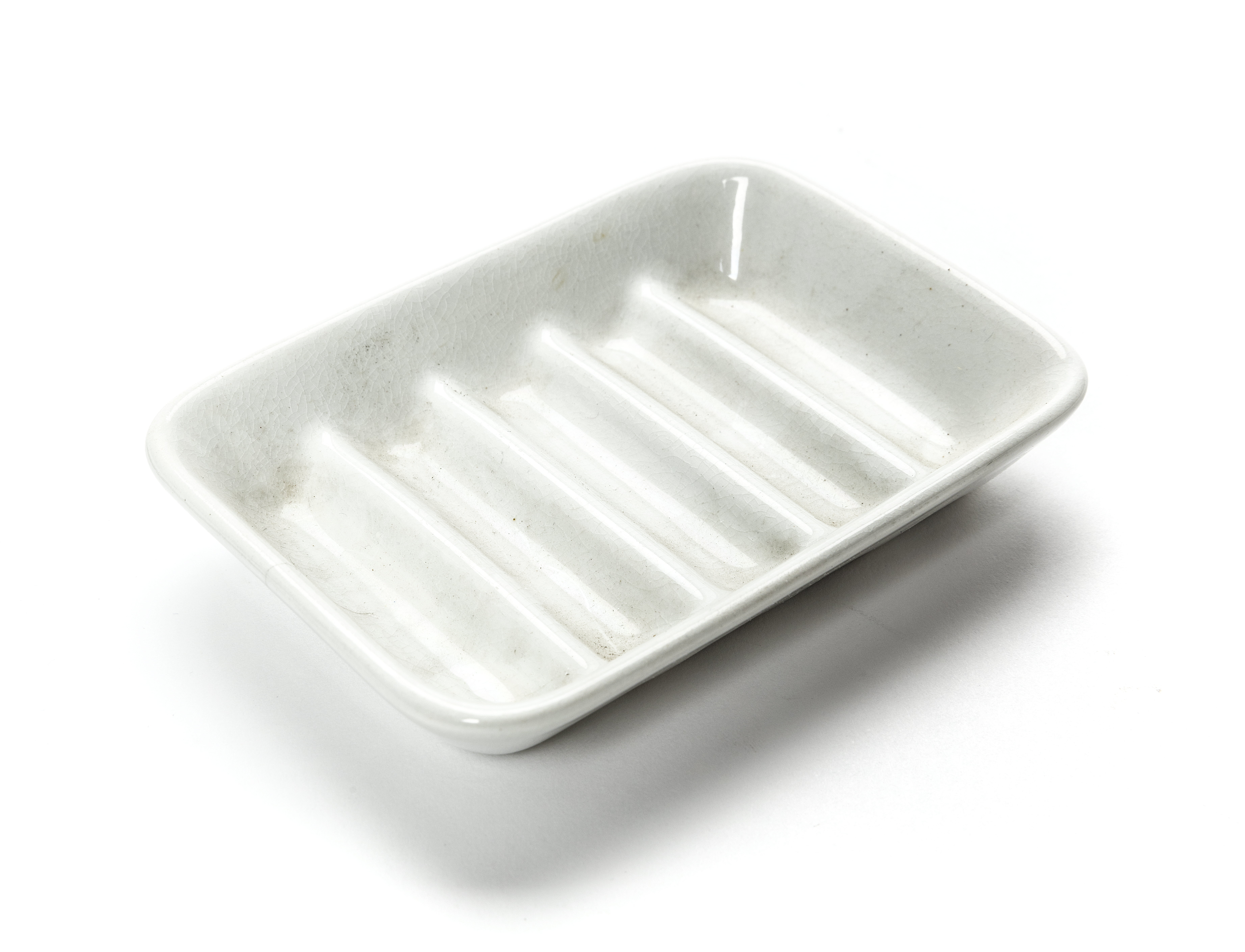 Rektangulär tvålkopp av vitglaserat flintporslin.