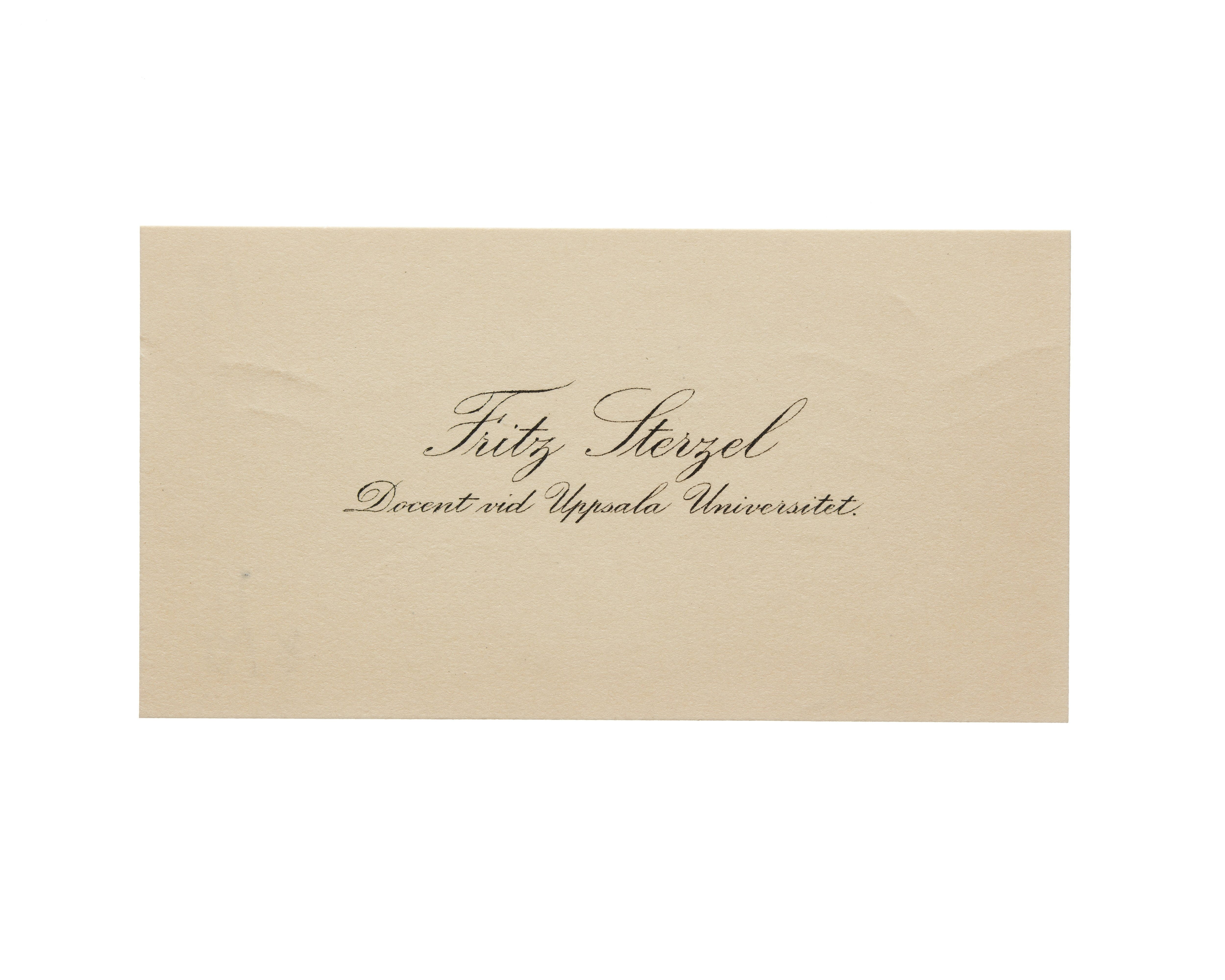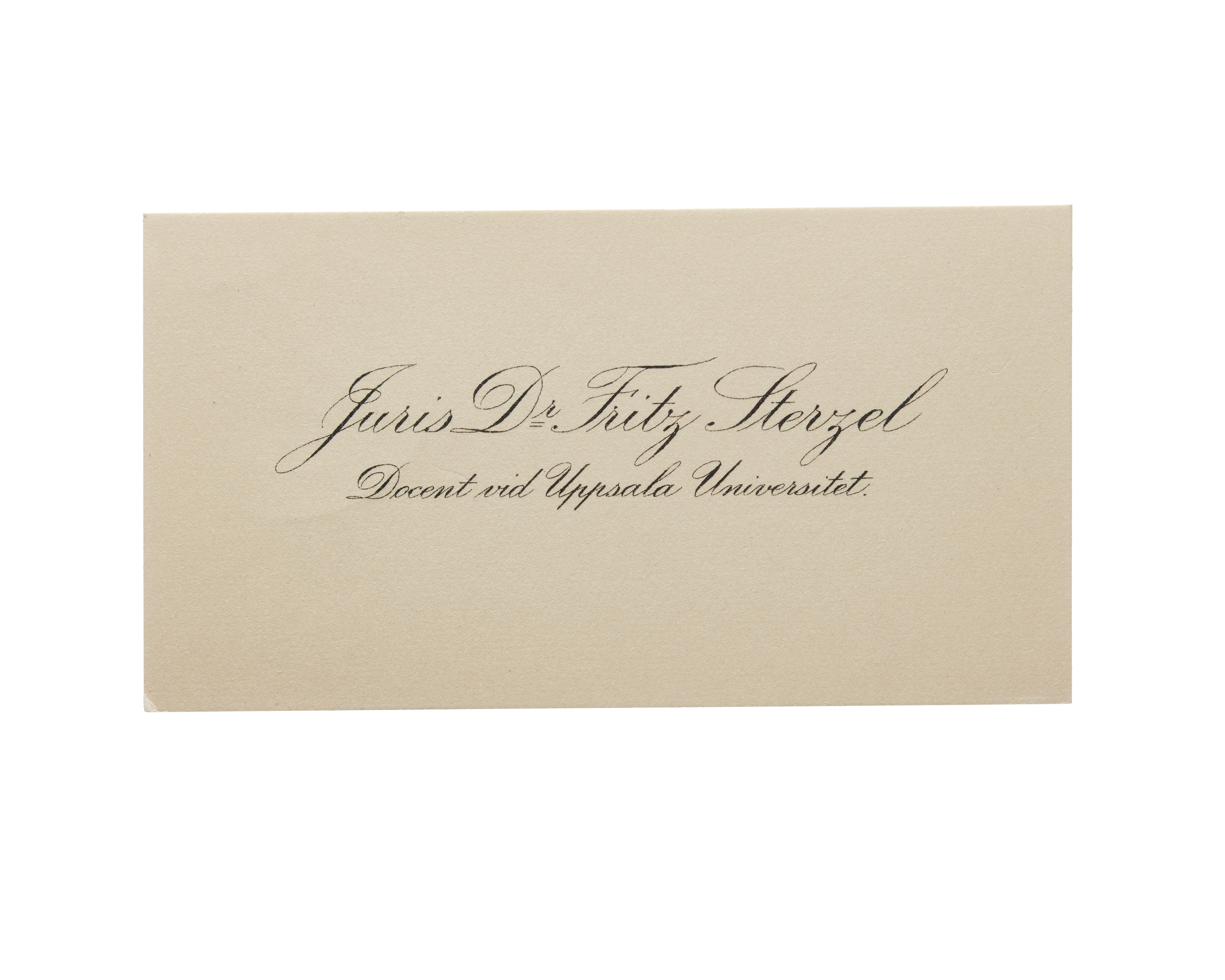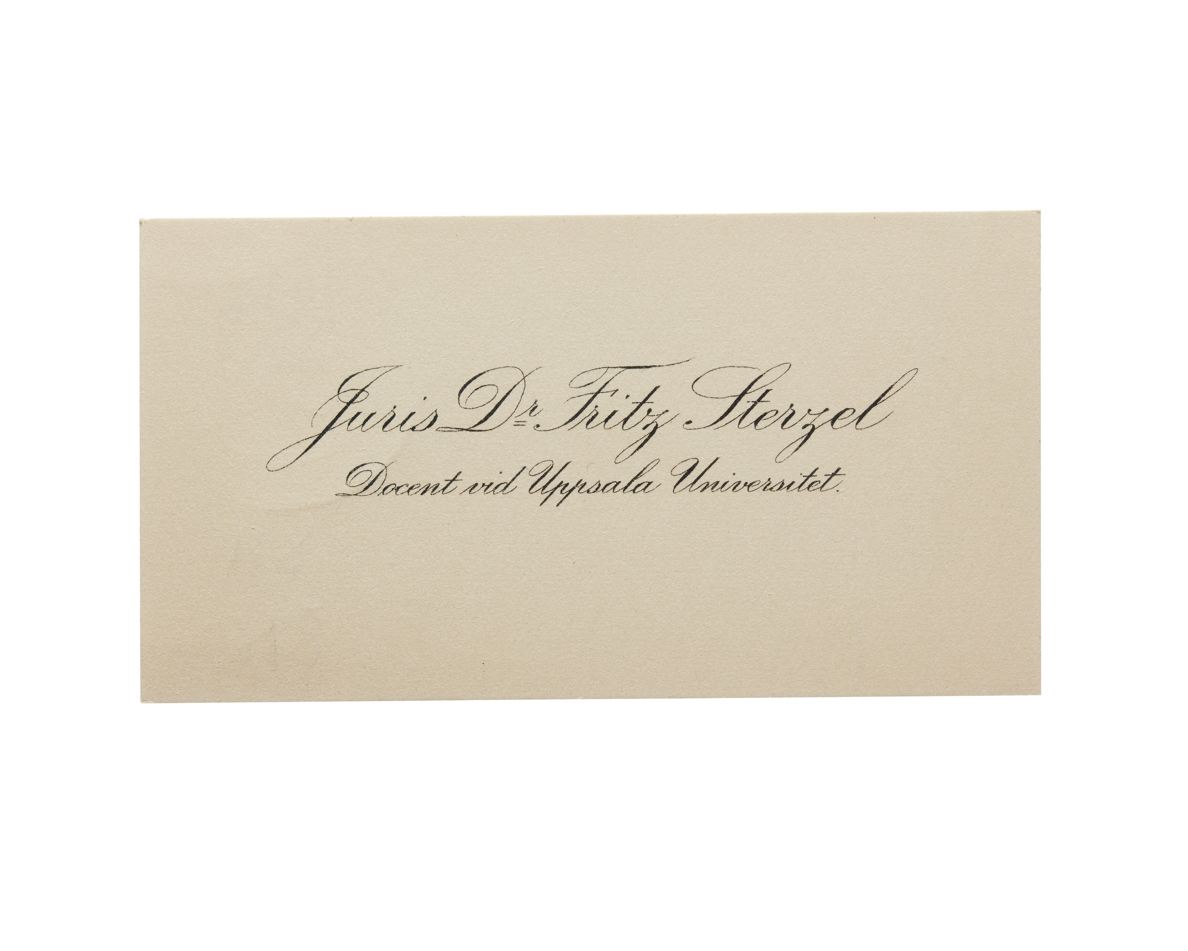 Visitkort från Juris Dr. Fritz Sterzel, docent vid Uppsala Universitet.