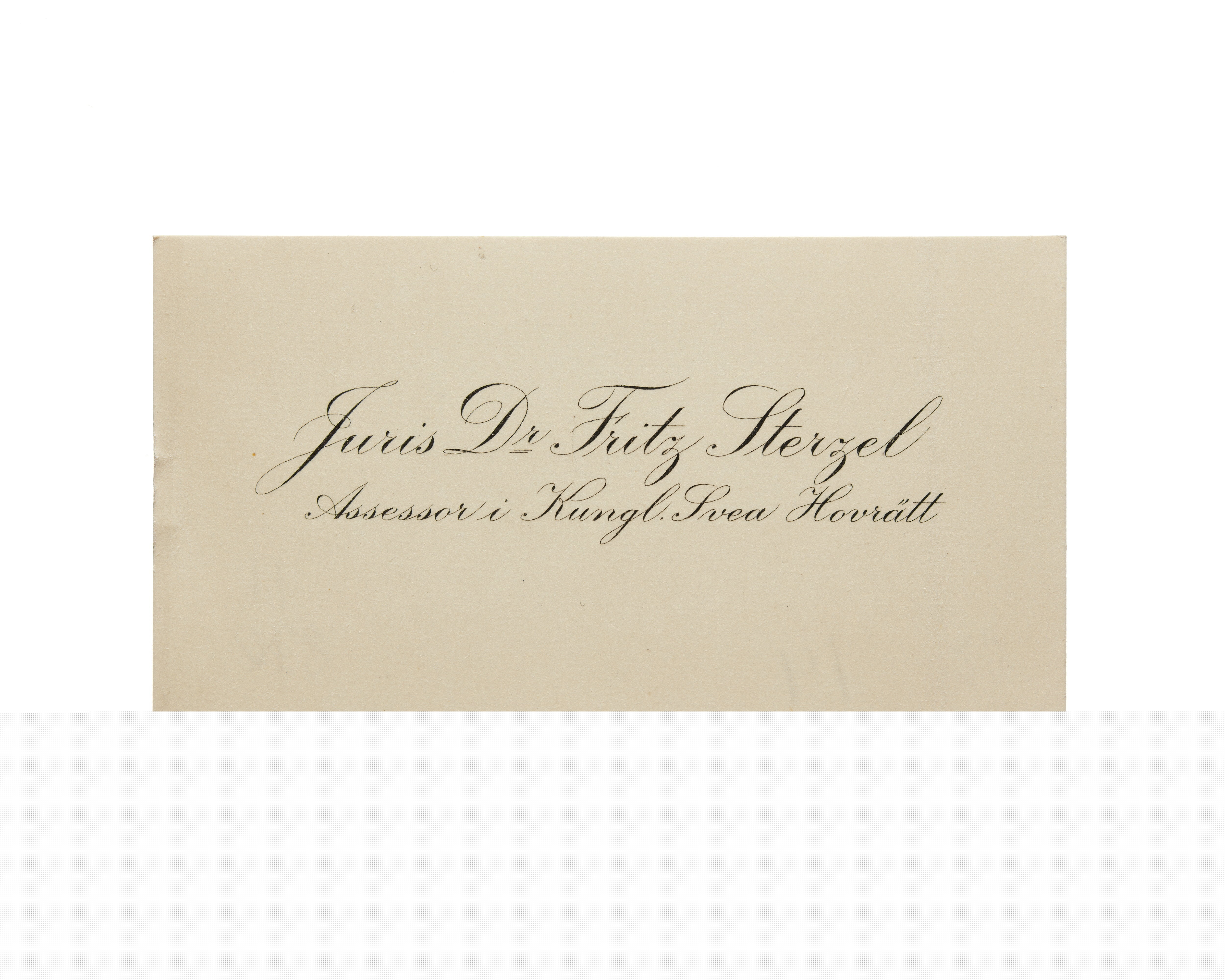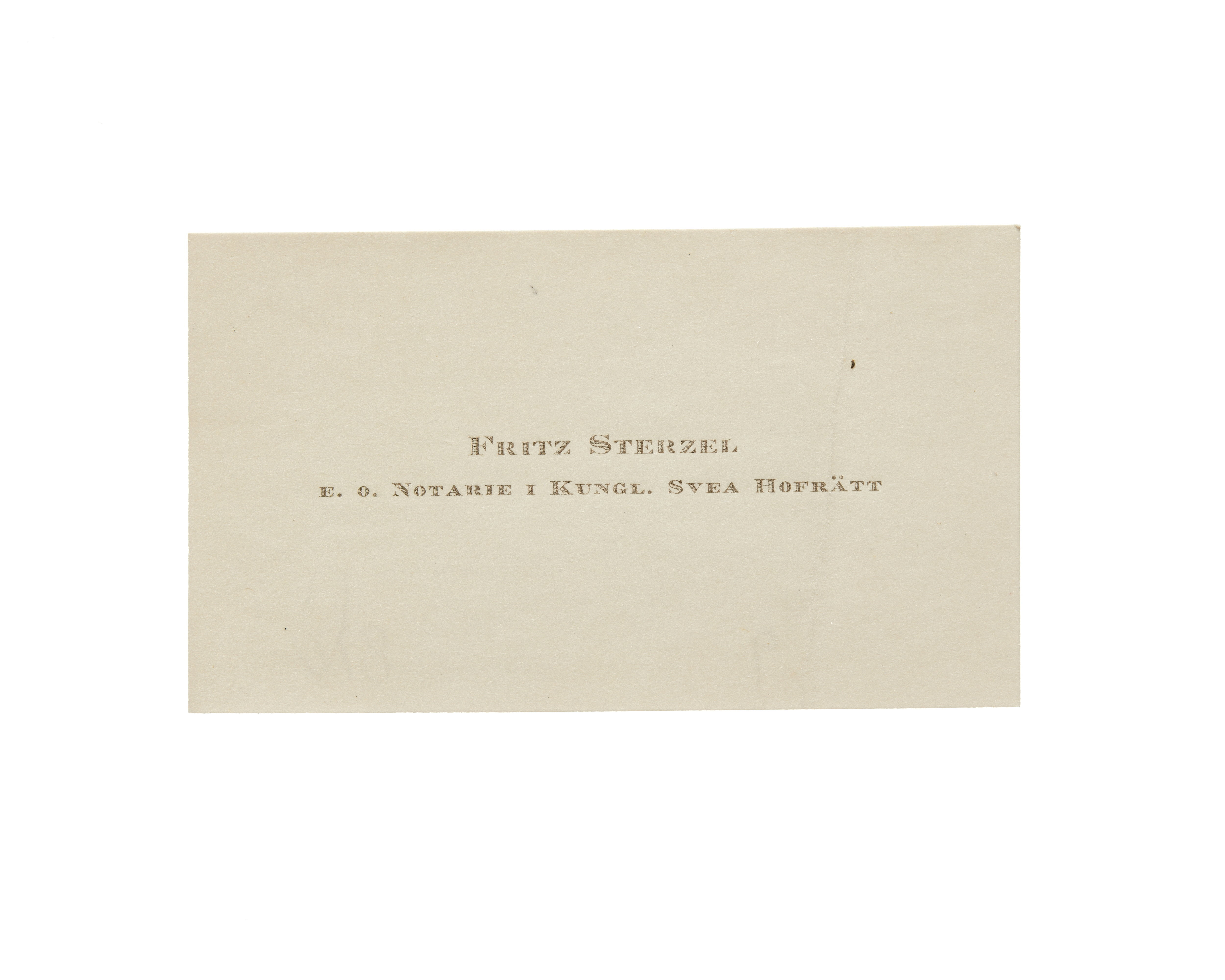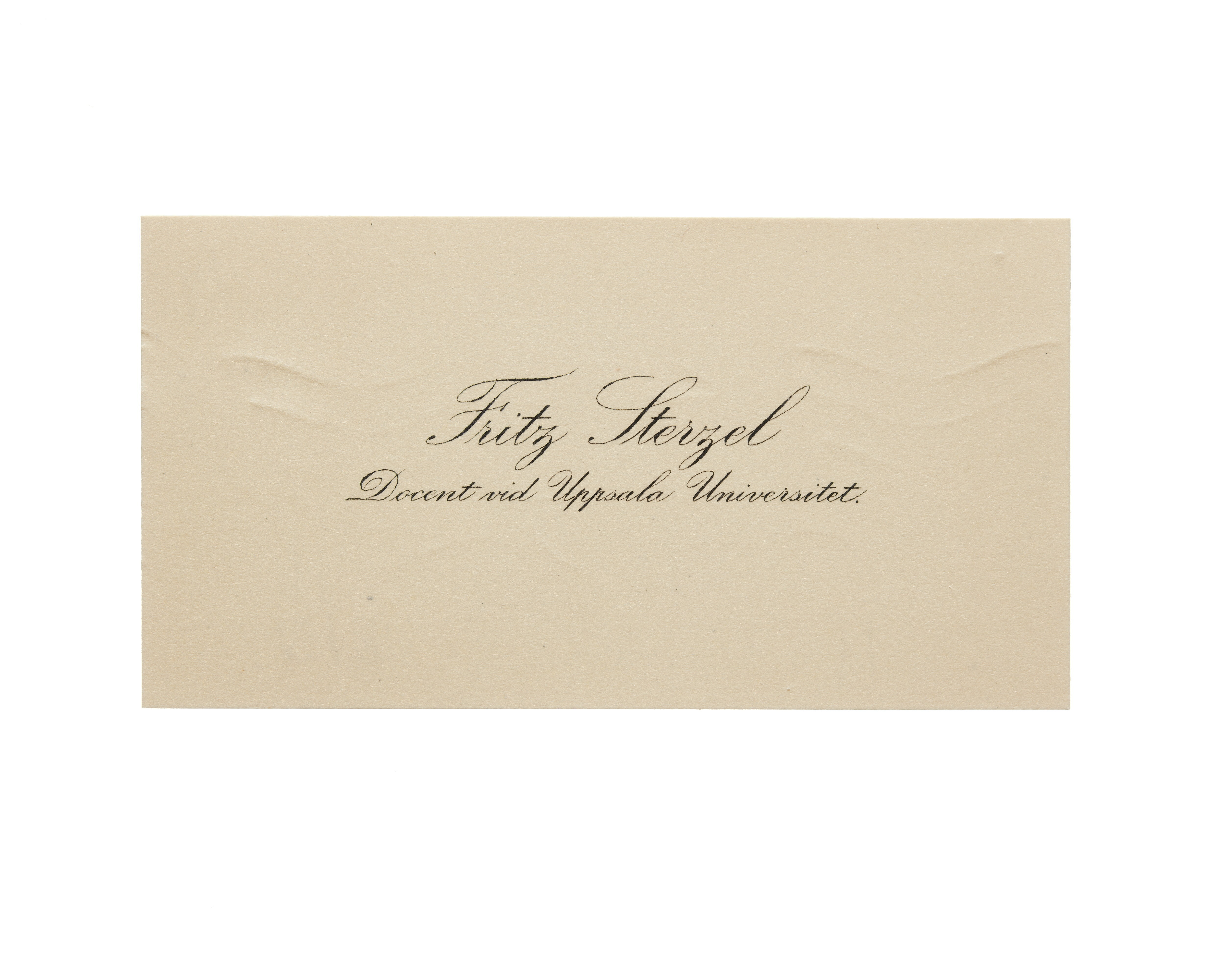 Visitkort från Juris Dr. Fritz Sterzel, docent vid Uppsala Universitet.