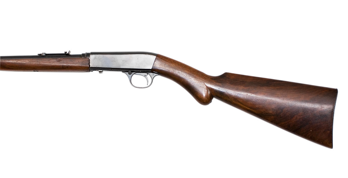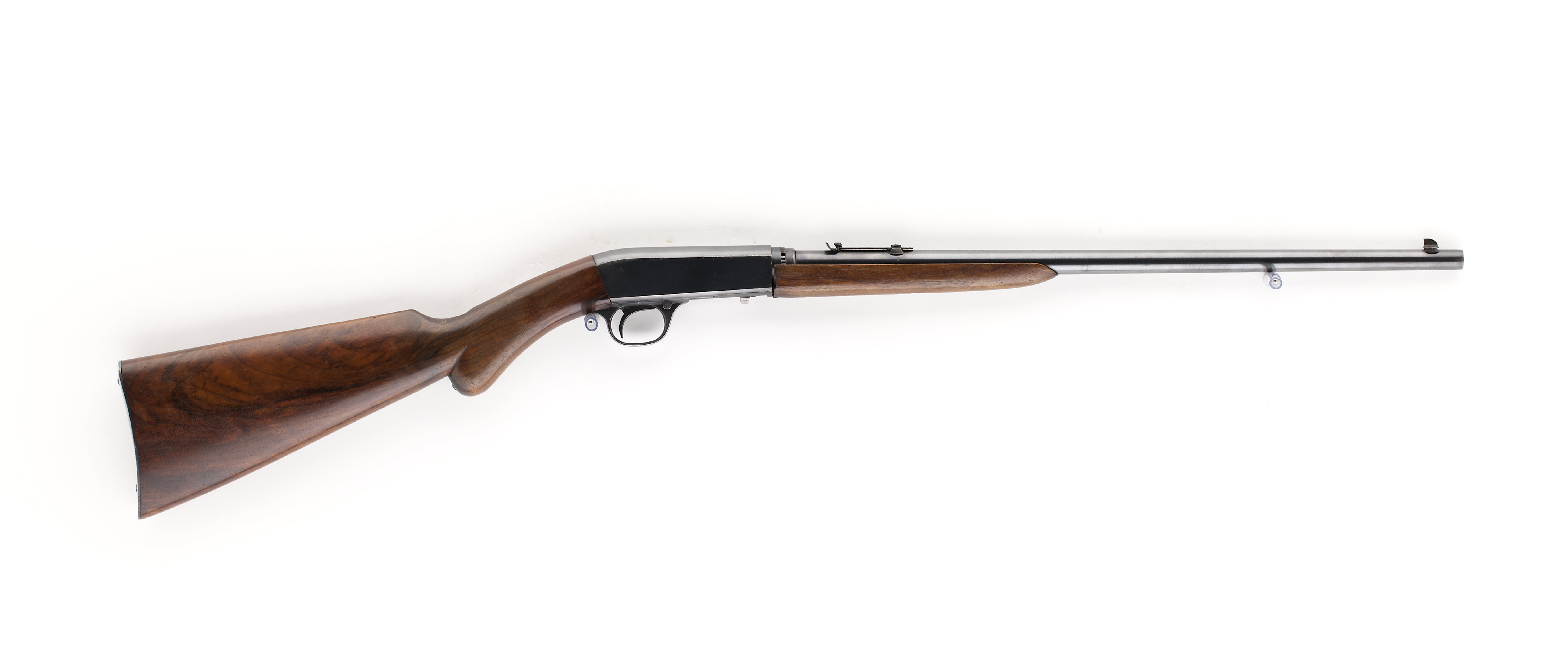 Helautomatiskt salongsgevär, 22 long rifle smokeless, Brownings patent, tillverkad av Fabrique Nationale d'armes de guerre, Herstal, tillverkningsnr: 85983.