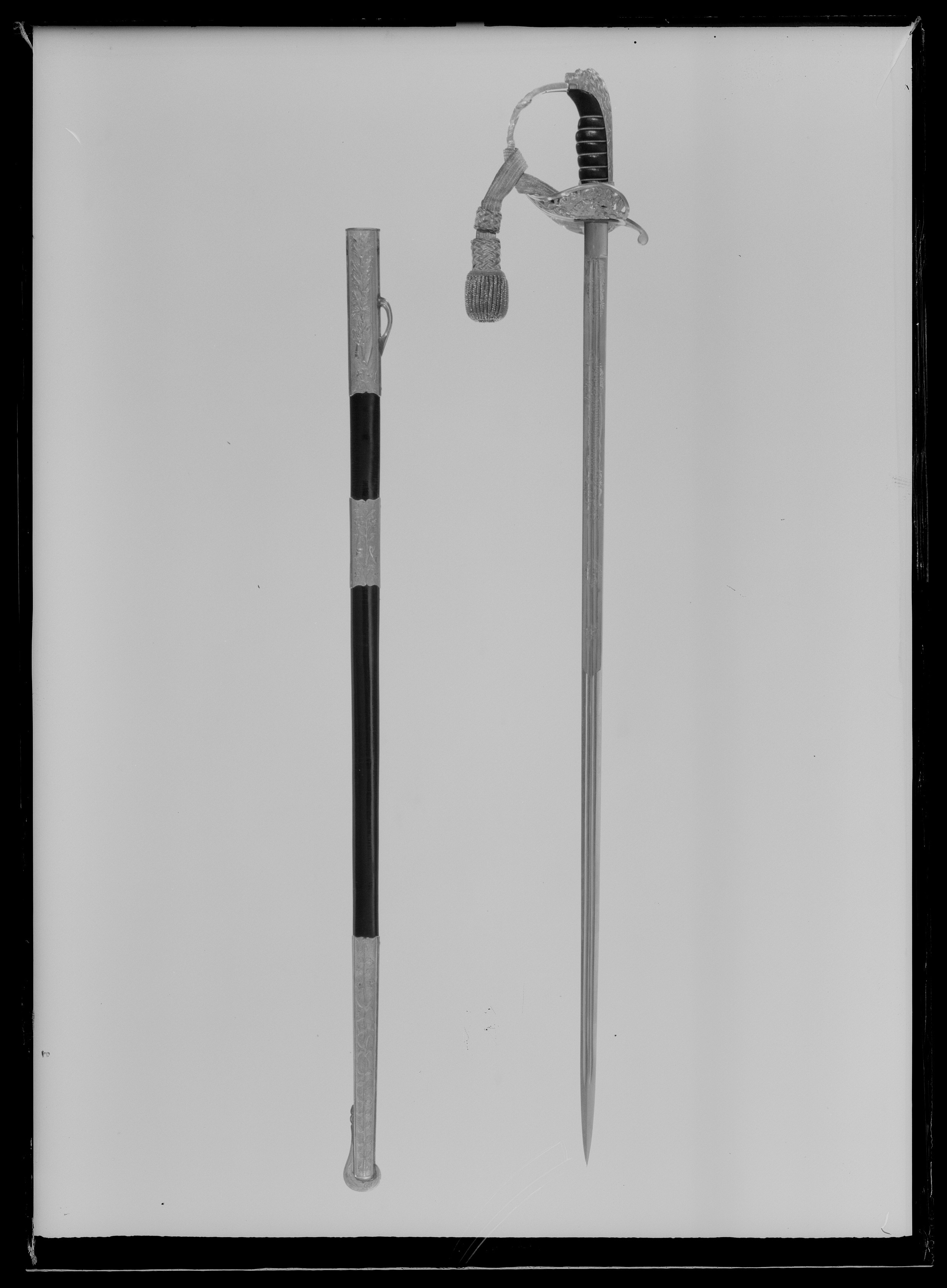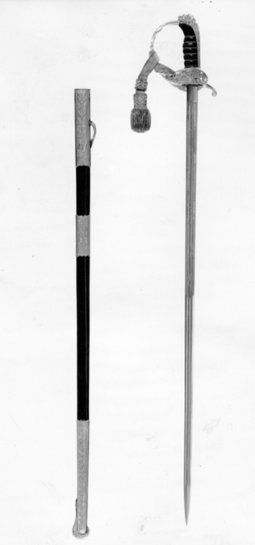 Sabel troligen buren till hovjägmästareuniform, fästet ansluter till m: 1859 och klingan till m: 1899, Sverige, 1900-talets början