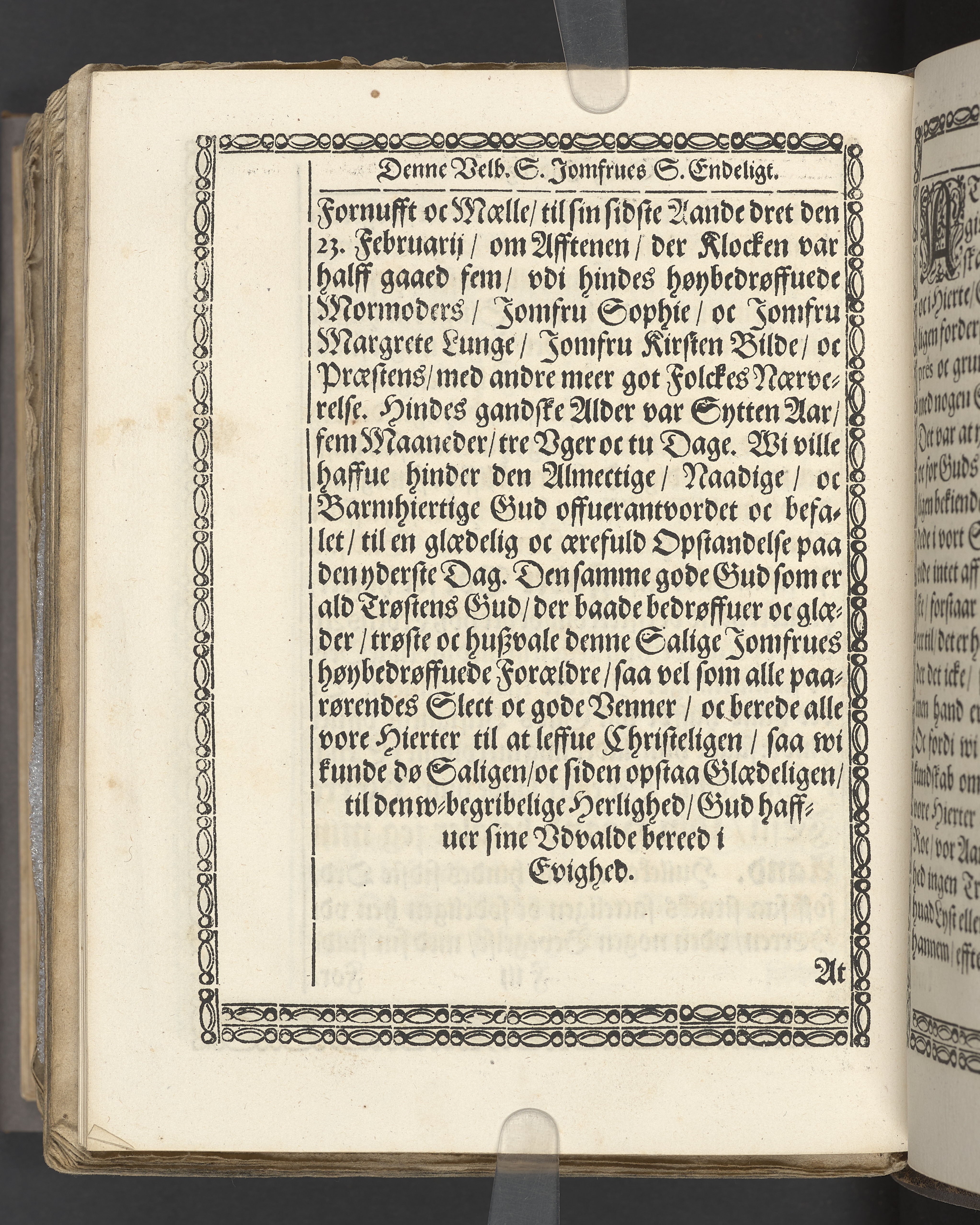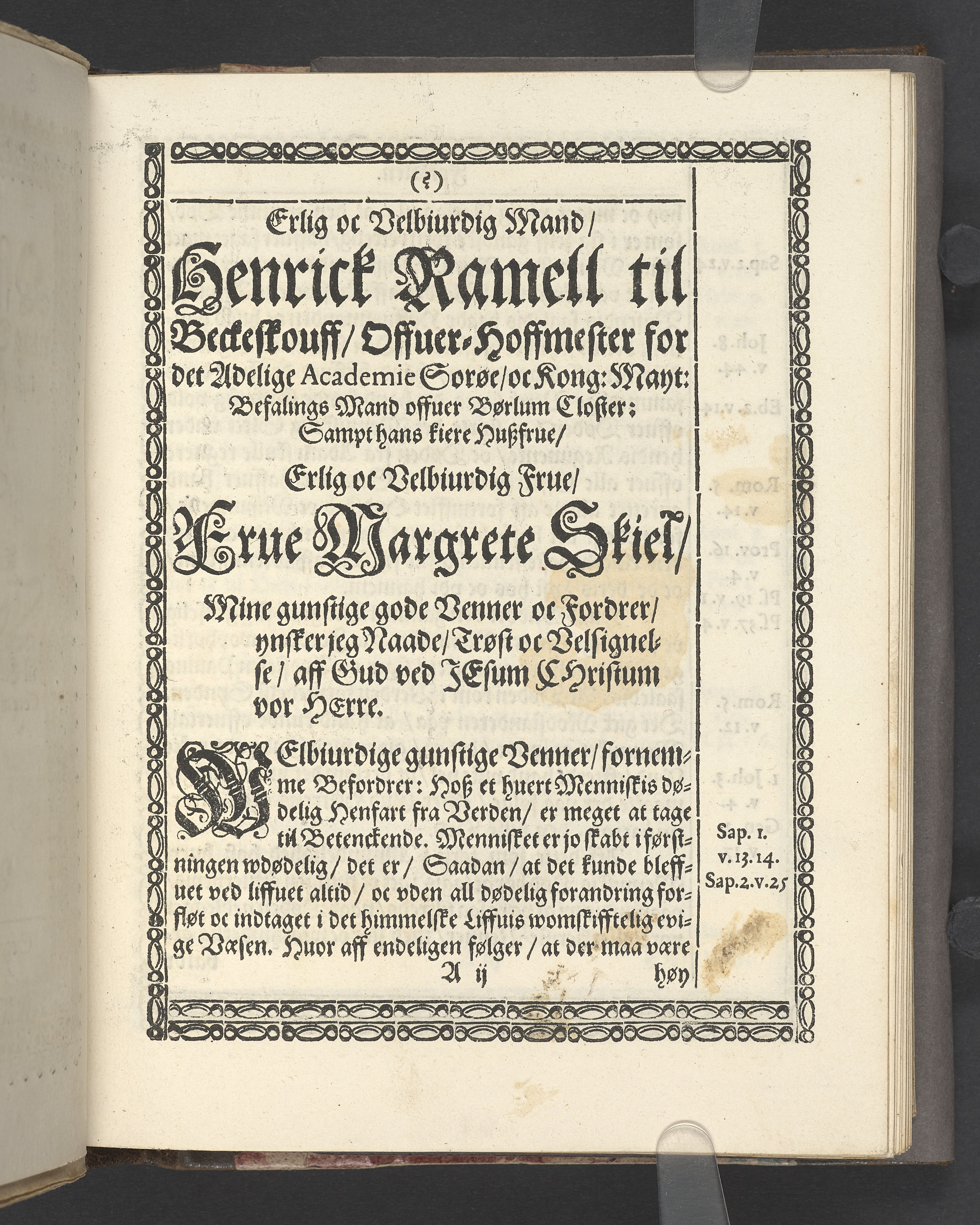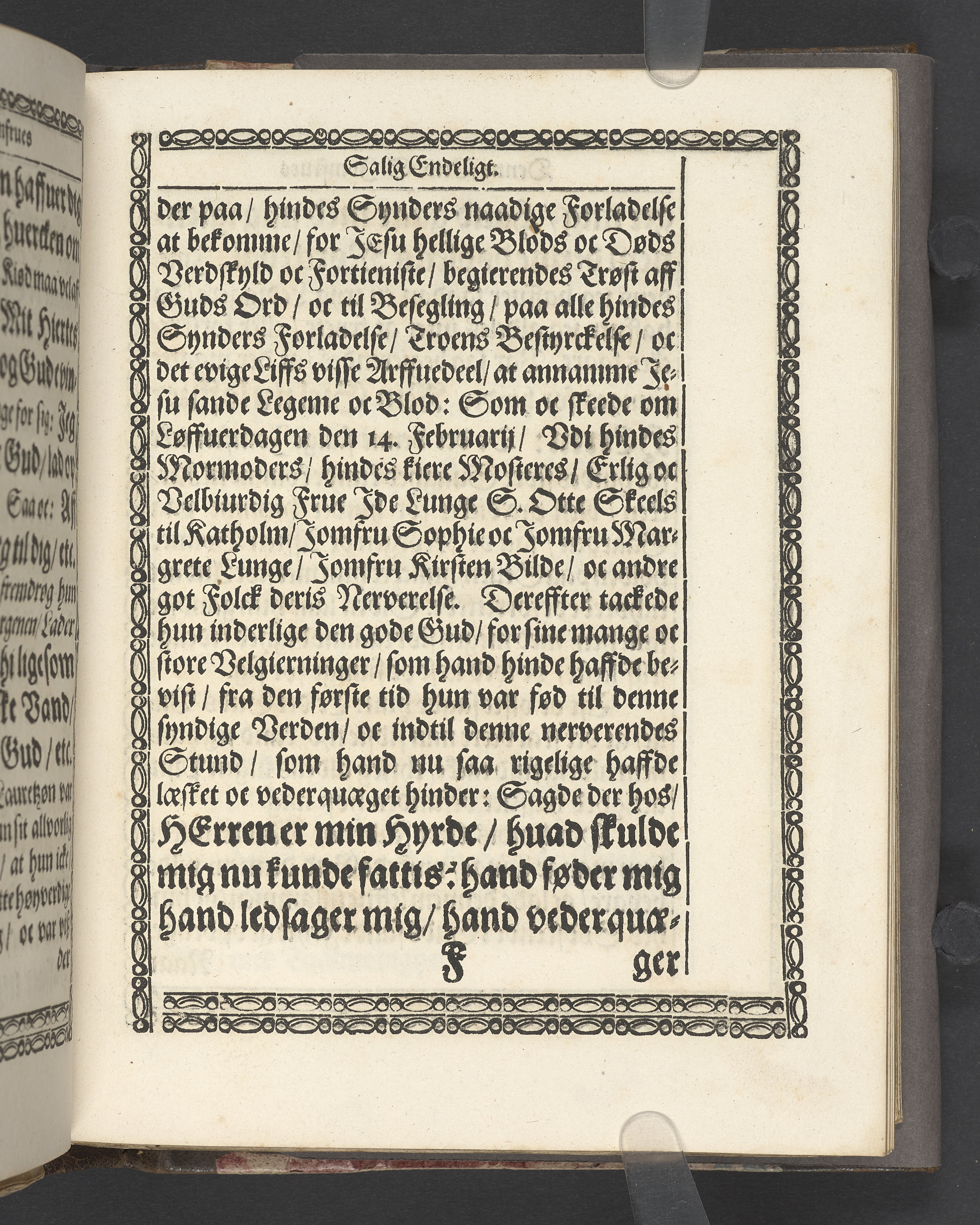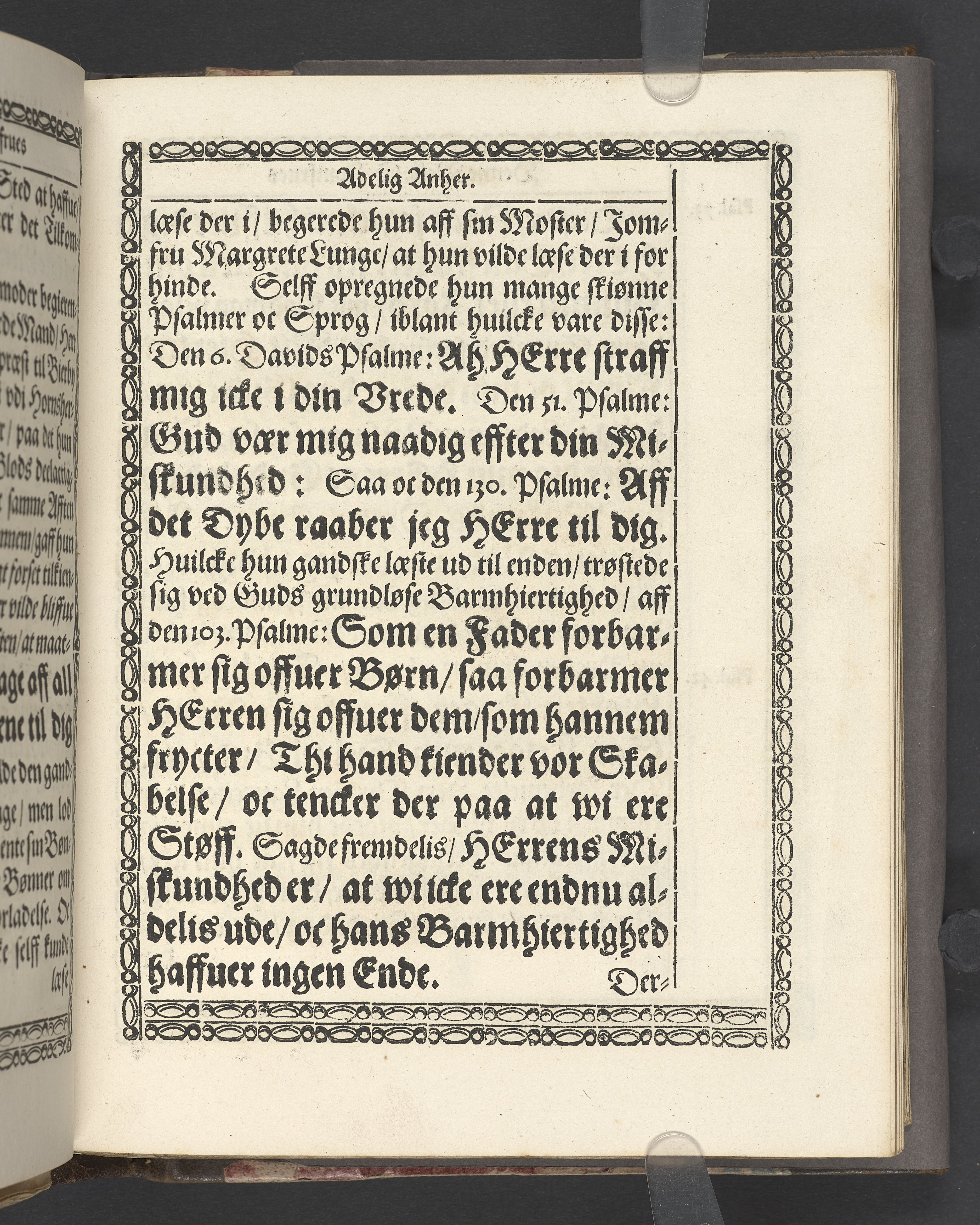 Een kort Forklaring Offuer den 23 Konung Davids Psalme/ som er een Beretning/ Huorledis den Himmelske Hyrde Christus Jesus omgaaes med sine Udvolde Børn/ Udi een Lijgpredicken fremsat/ Da Erlig oc Velbiurdig/ nu Salig/ Jomfru Jomf. Birgethe Ramel til Elkier/ hendis Salig Lijg bleff med Adelige Ceremonier, udi een anseenlig och folckerig Forsamling/ haederliugen nedersat i Vor Frue Kircke i Aalborg Aar 1646. Aff Anders Anderßøn S.A. Sorøe/ Prentet aff Henrich Kruse/ Aar 1647.