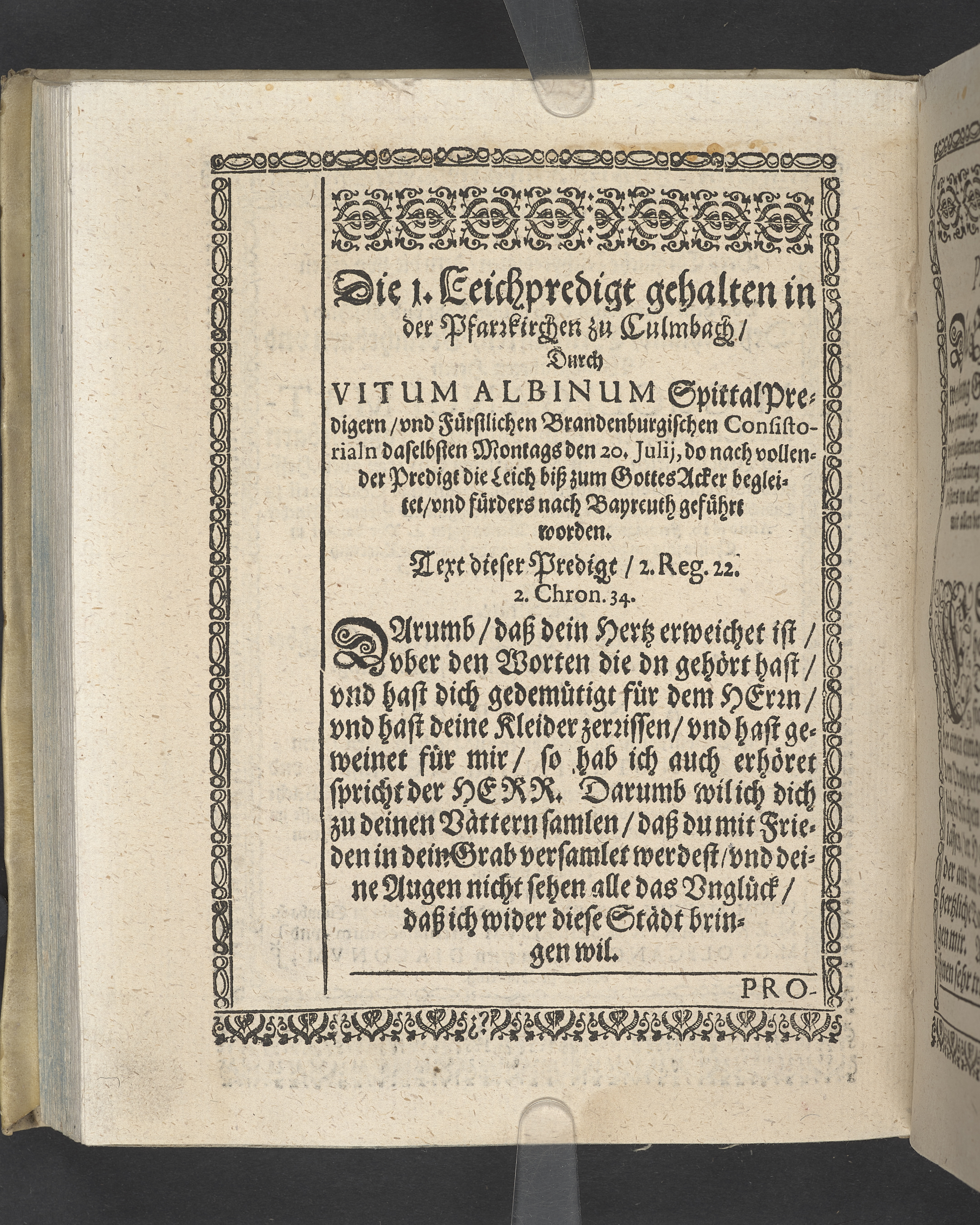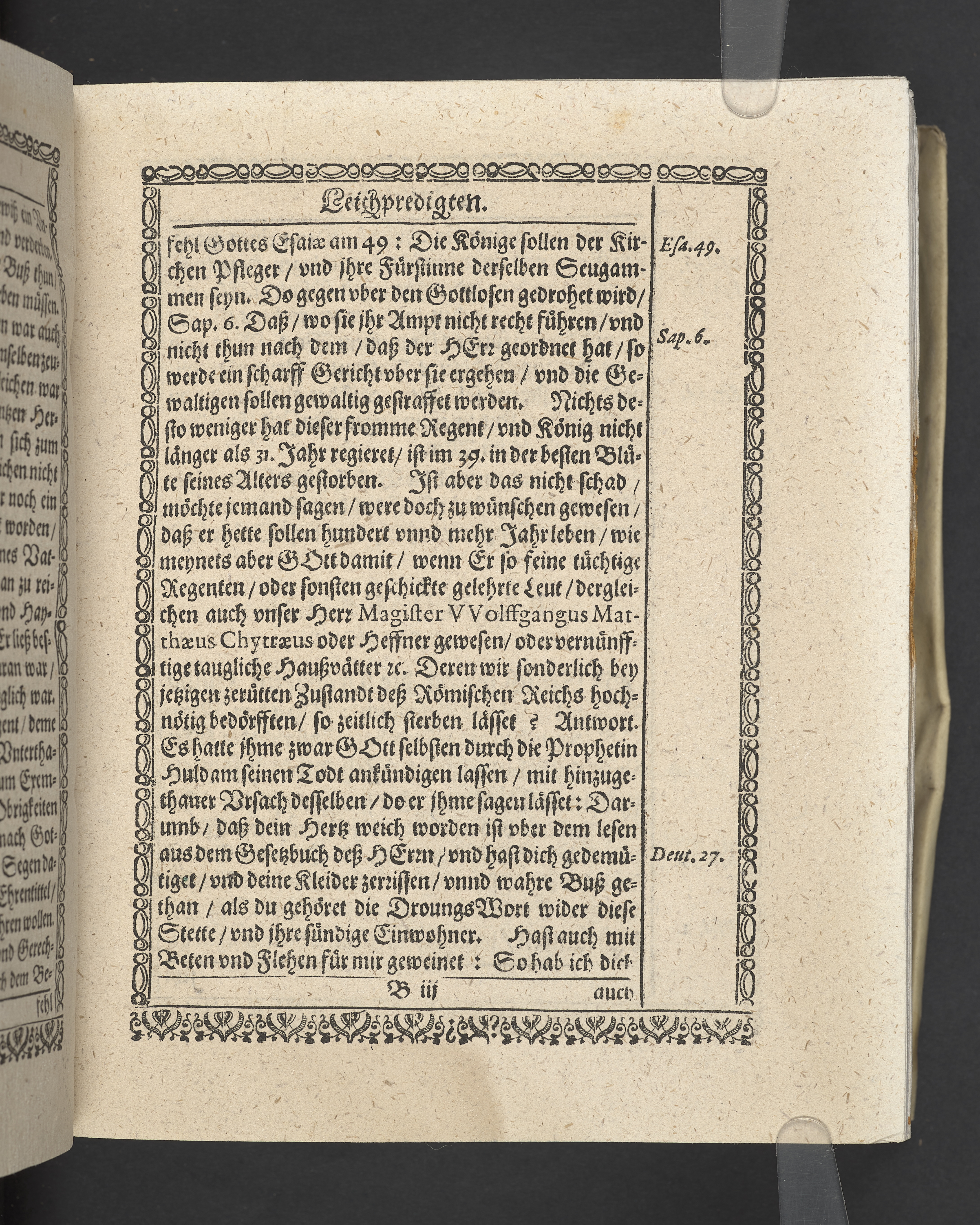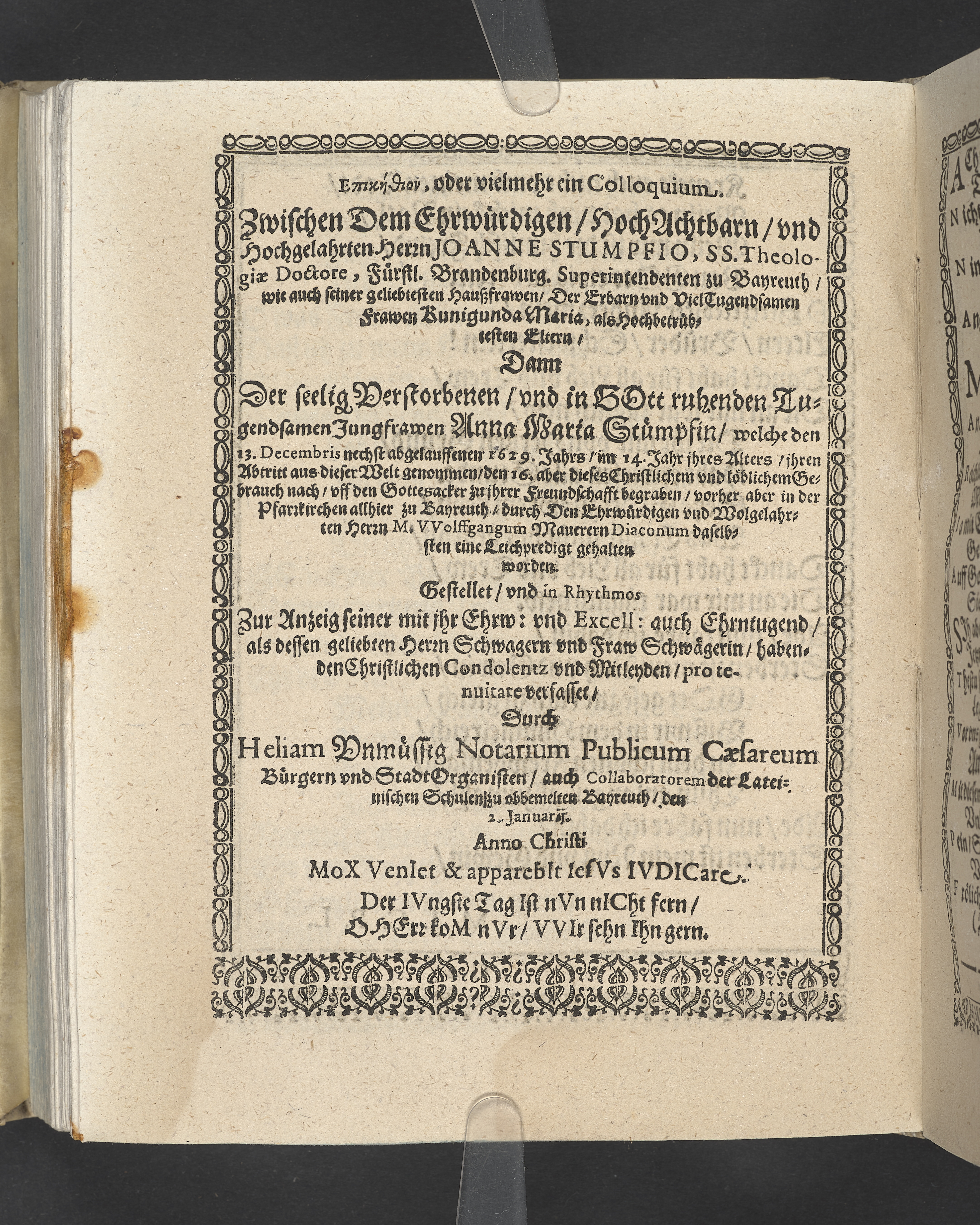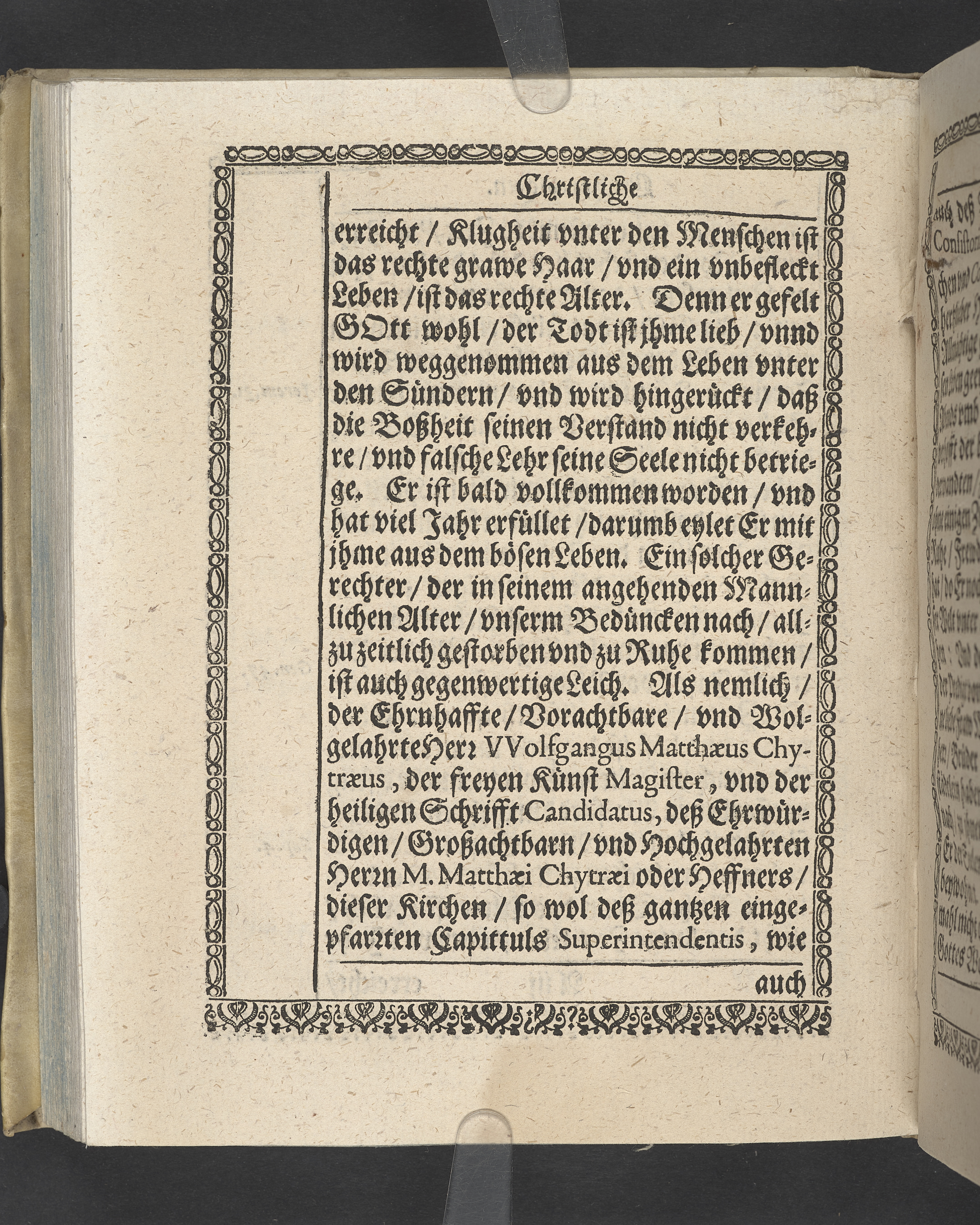 Triga concionum funebrium Drey christliche Leichpredigten, dern die zwo ersten gehalten uber dem... Todt... M. Guolfgangi Matthæi Chytræi... Die dritte... der... Jungfrawen Annæ Marien, dess... Herrn... Johann Stumpfii... Tochter... Durch Vitum Albinum... M. Zachariam Seidelium... und M. Guolfgangum Mauerern... Gedruckt zu Coburgk in der fürstl. Druckerey, durch Joh. Forckel... 1630.