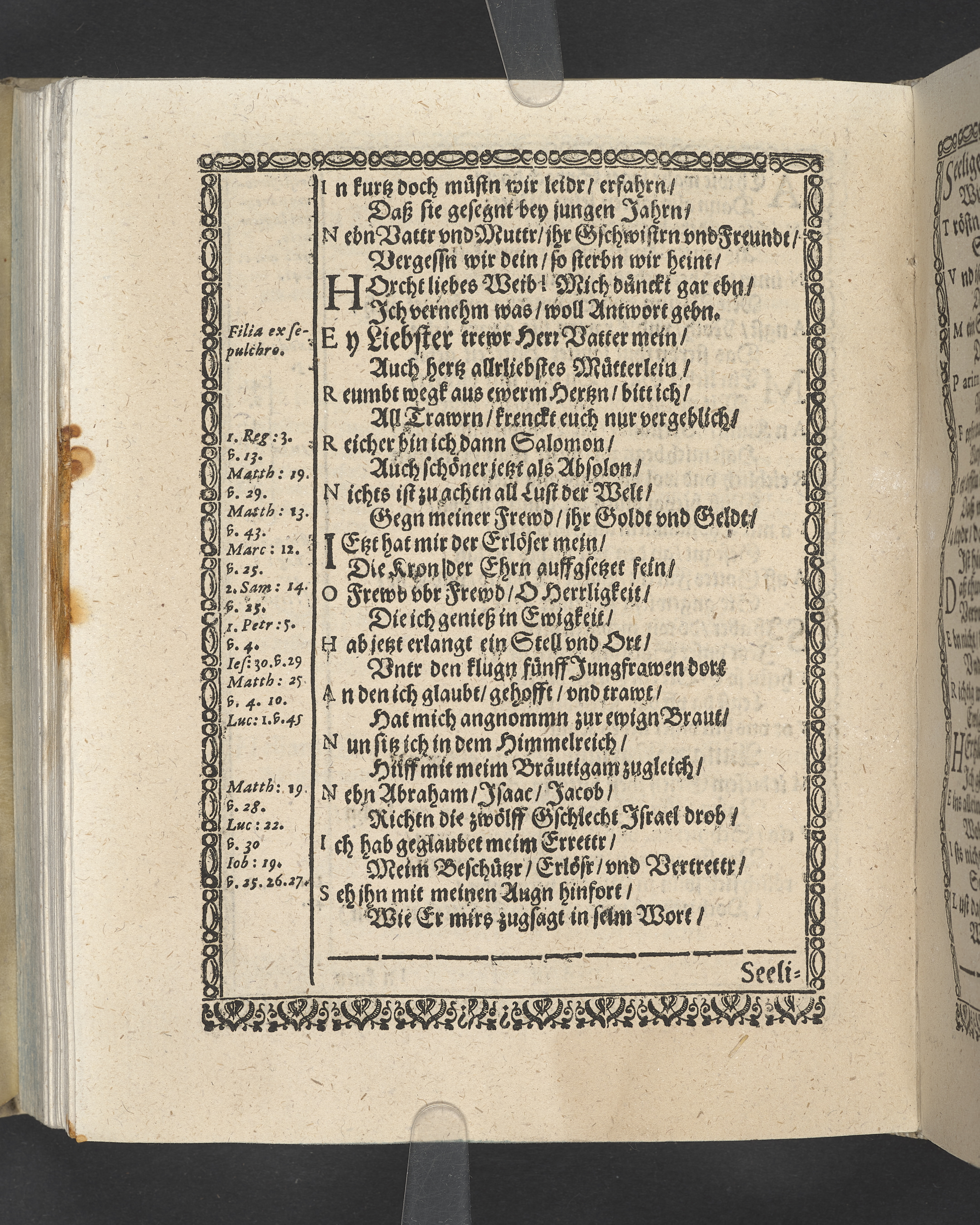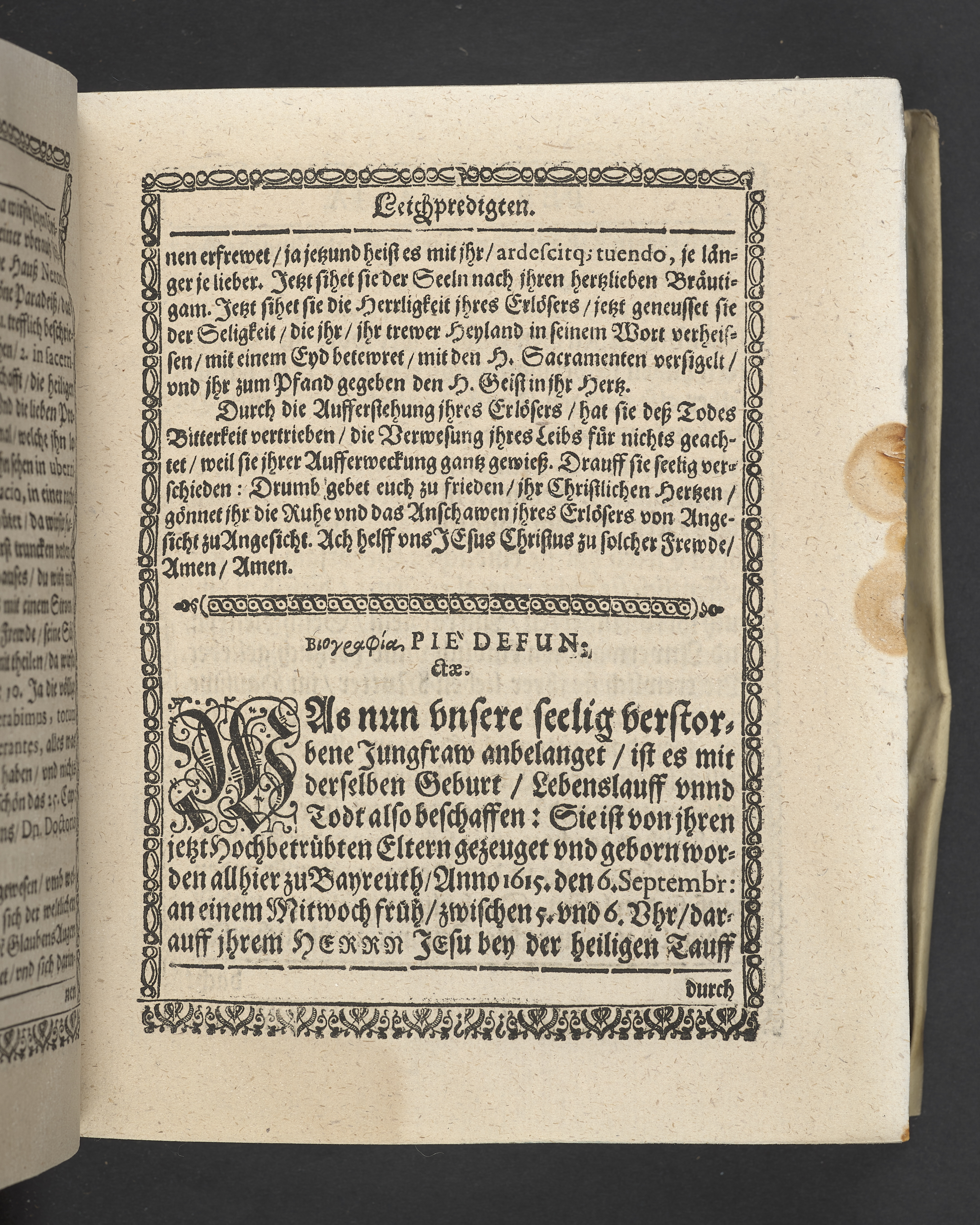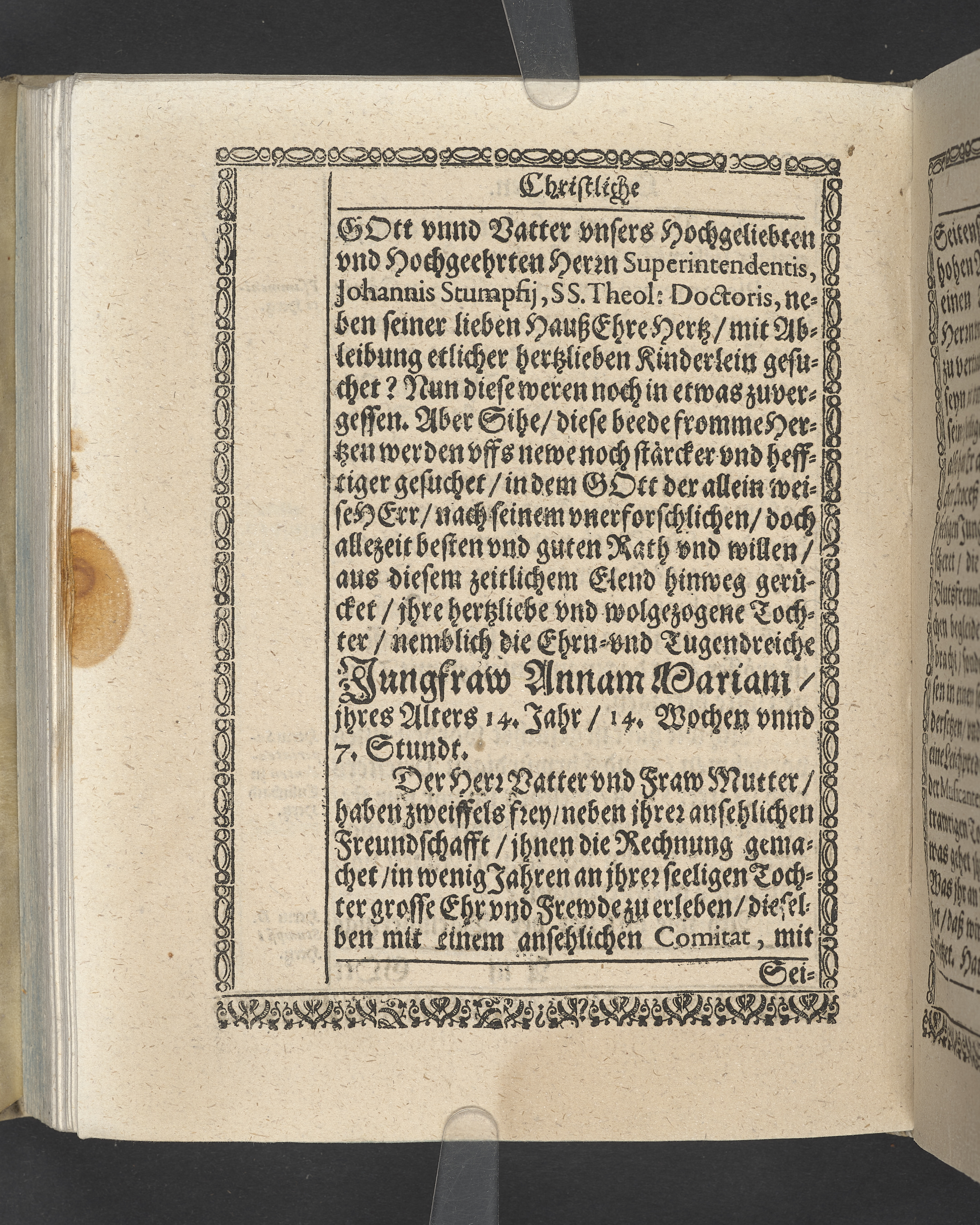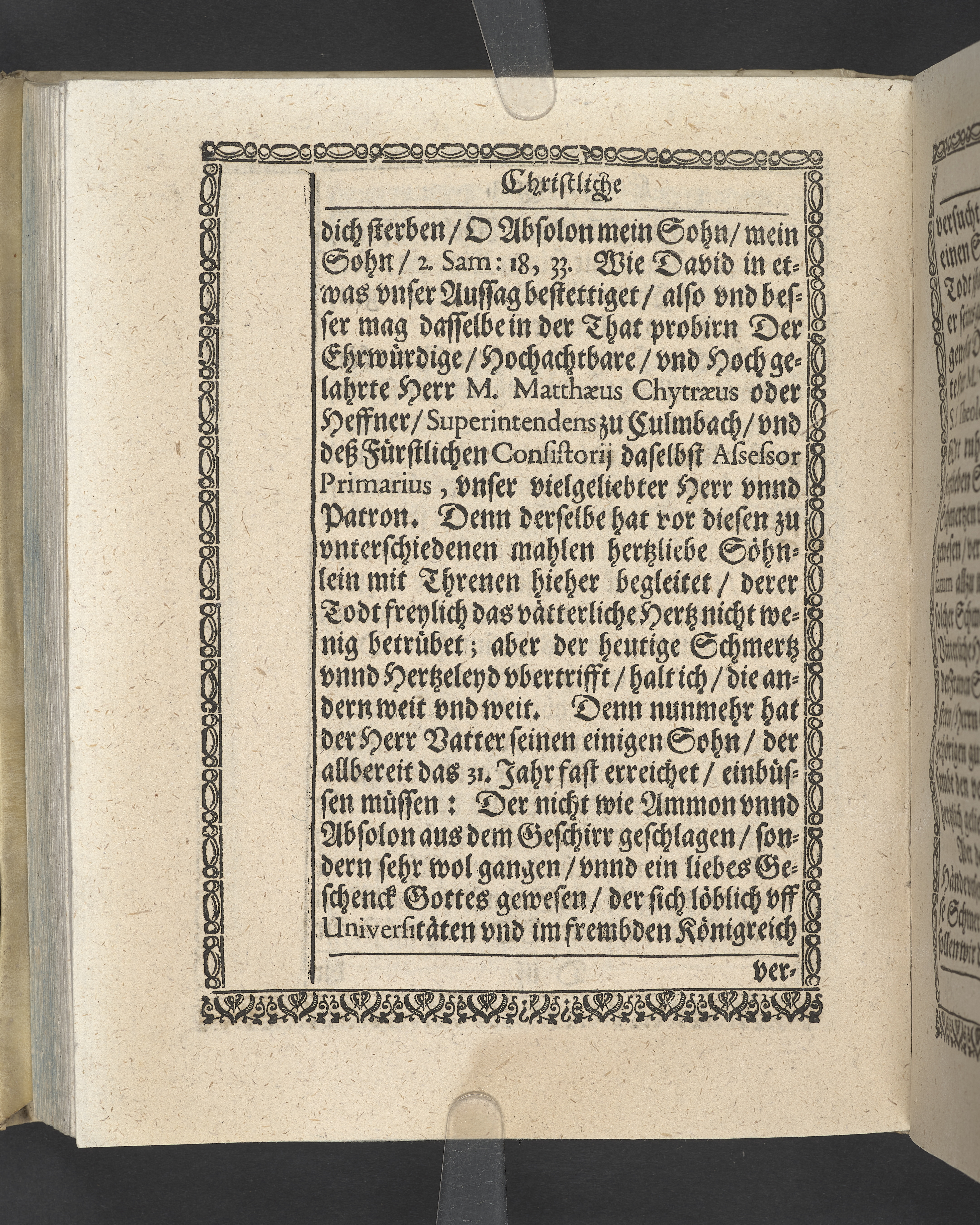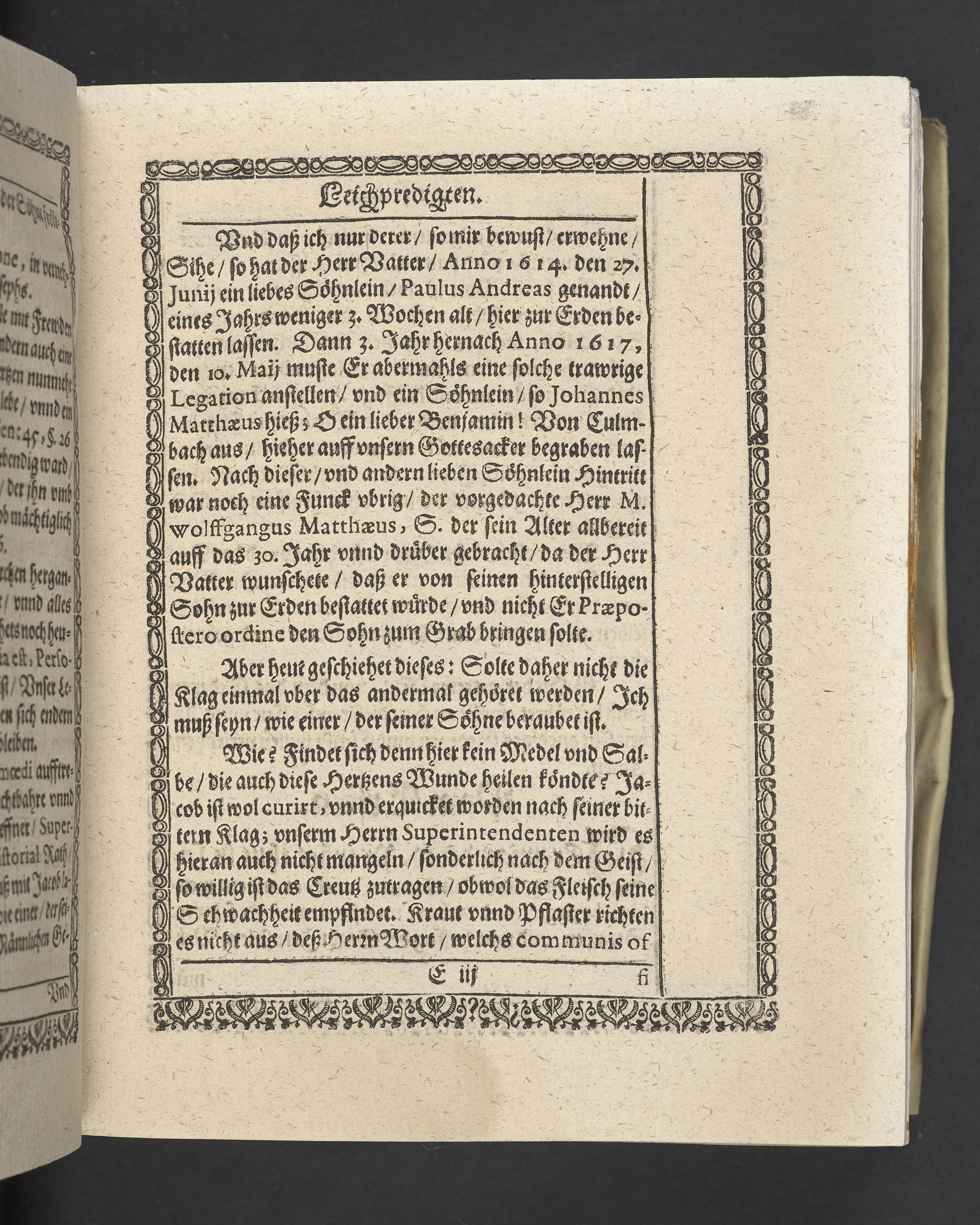 Triga concionum funebrium Drey christliche Leichpredigten, dern die zwo ersten gehalten uber dem... Todt... M. Guolfgangi Matthæi Chytræi... Die dritte... der... Jungfrawen Annæ Marien, dess... Herrn... Johann Stumpfii... Tochter... Durch Vitum Albinum... M. Zachariam Seidelium... und M. Guolfgangum Mauerern... Gedruckt zu Coburgk in der fürstl. Druckerey, durch Joh. Forckel... 1630.